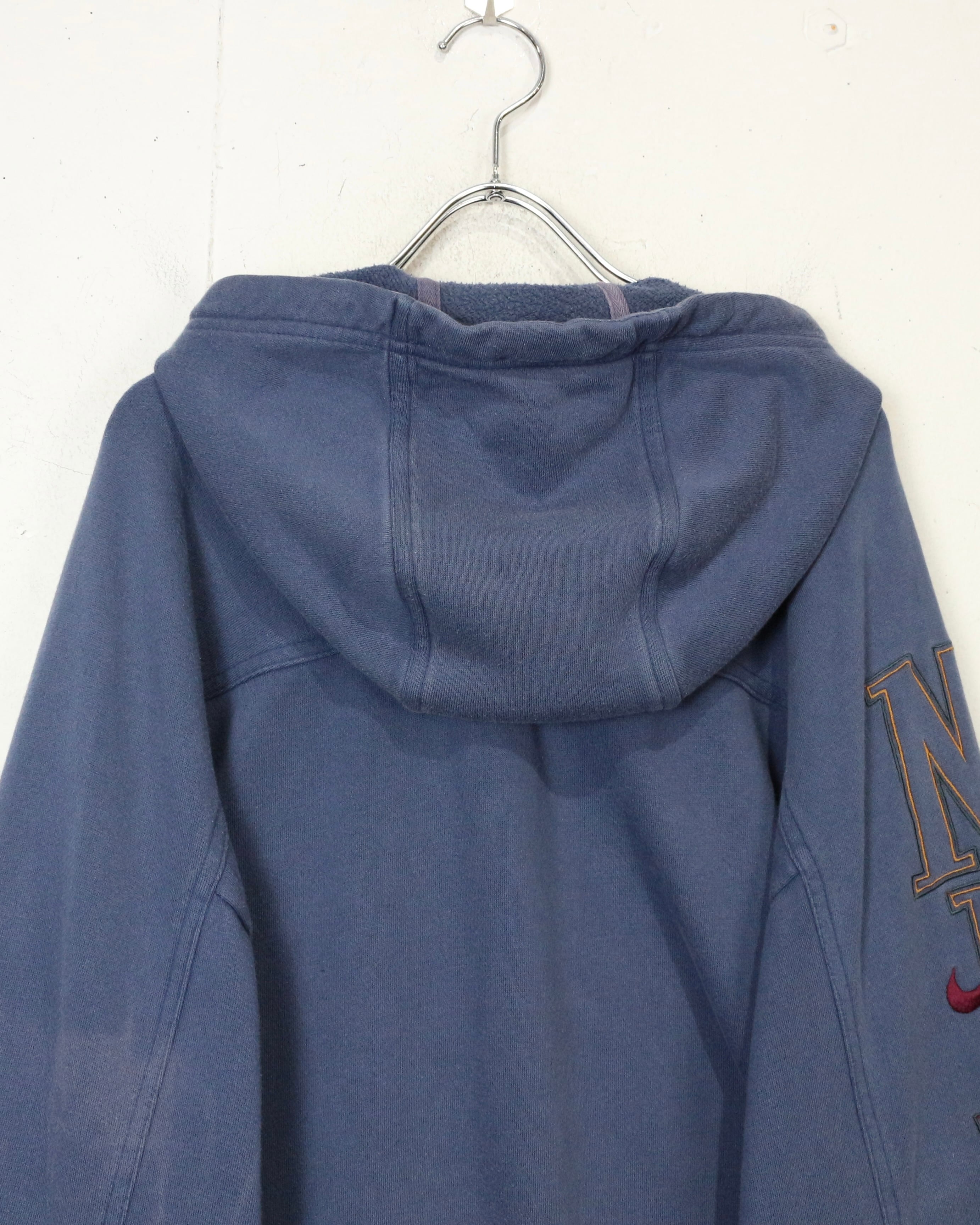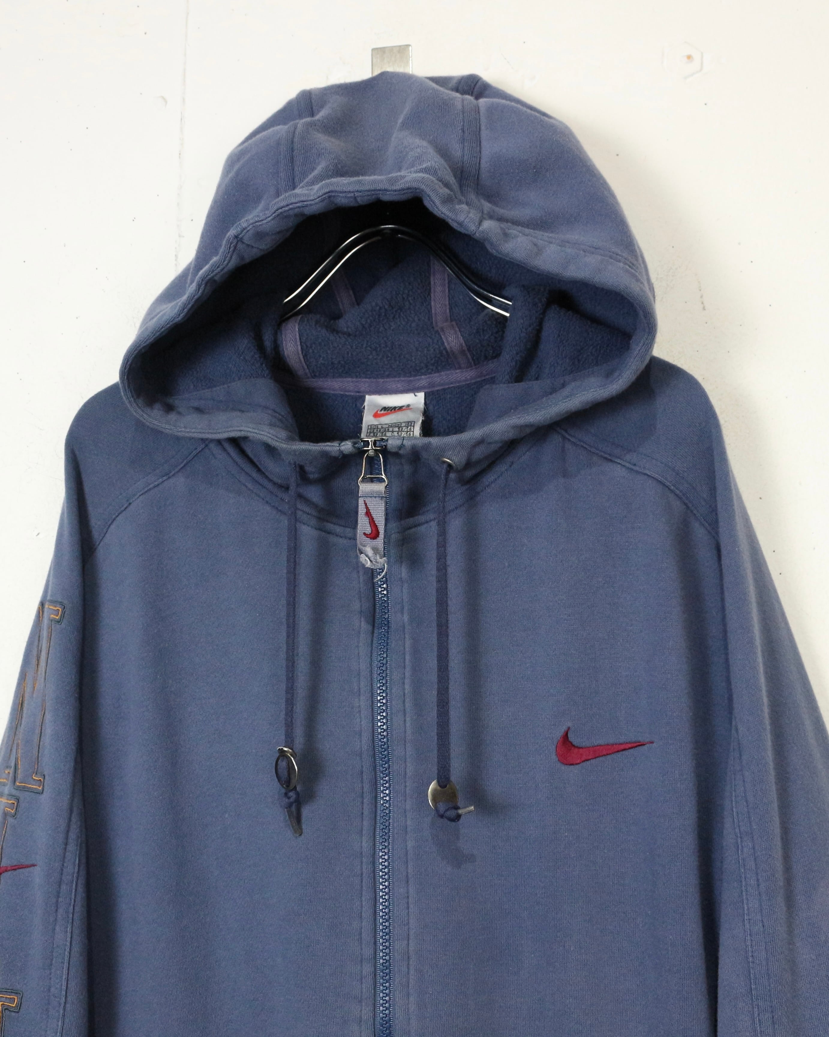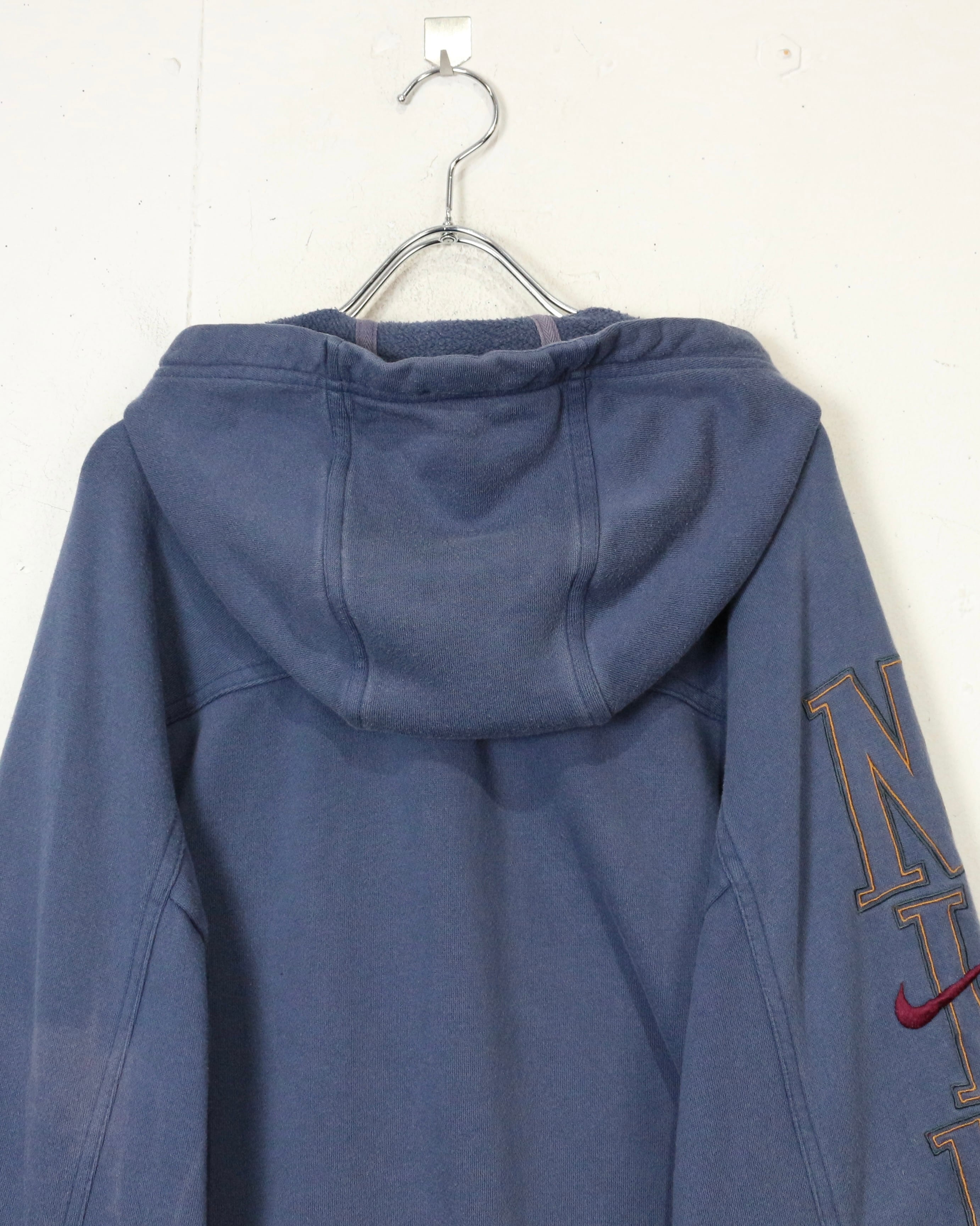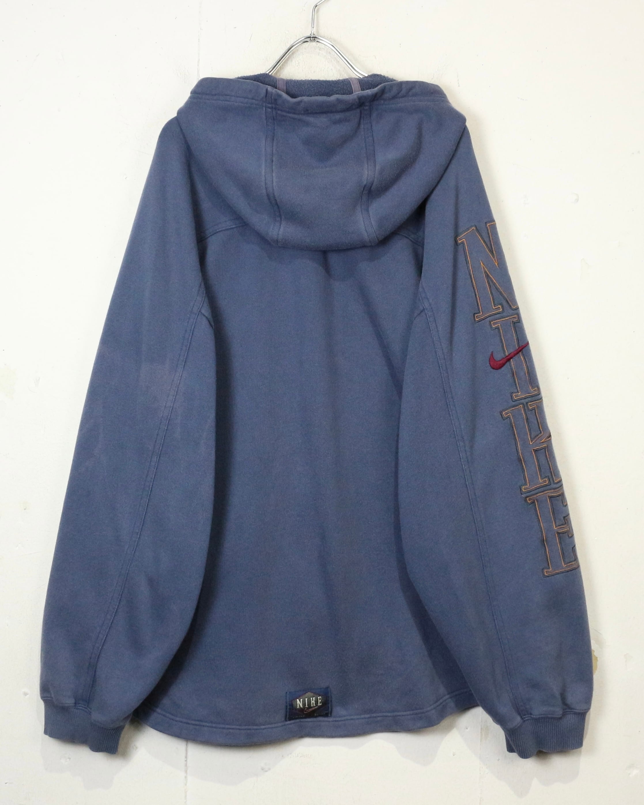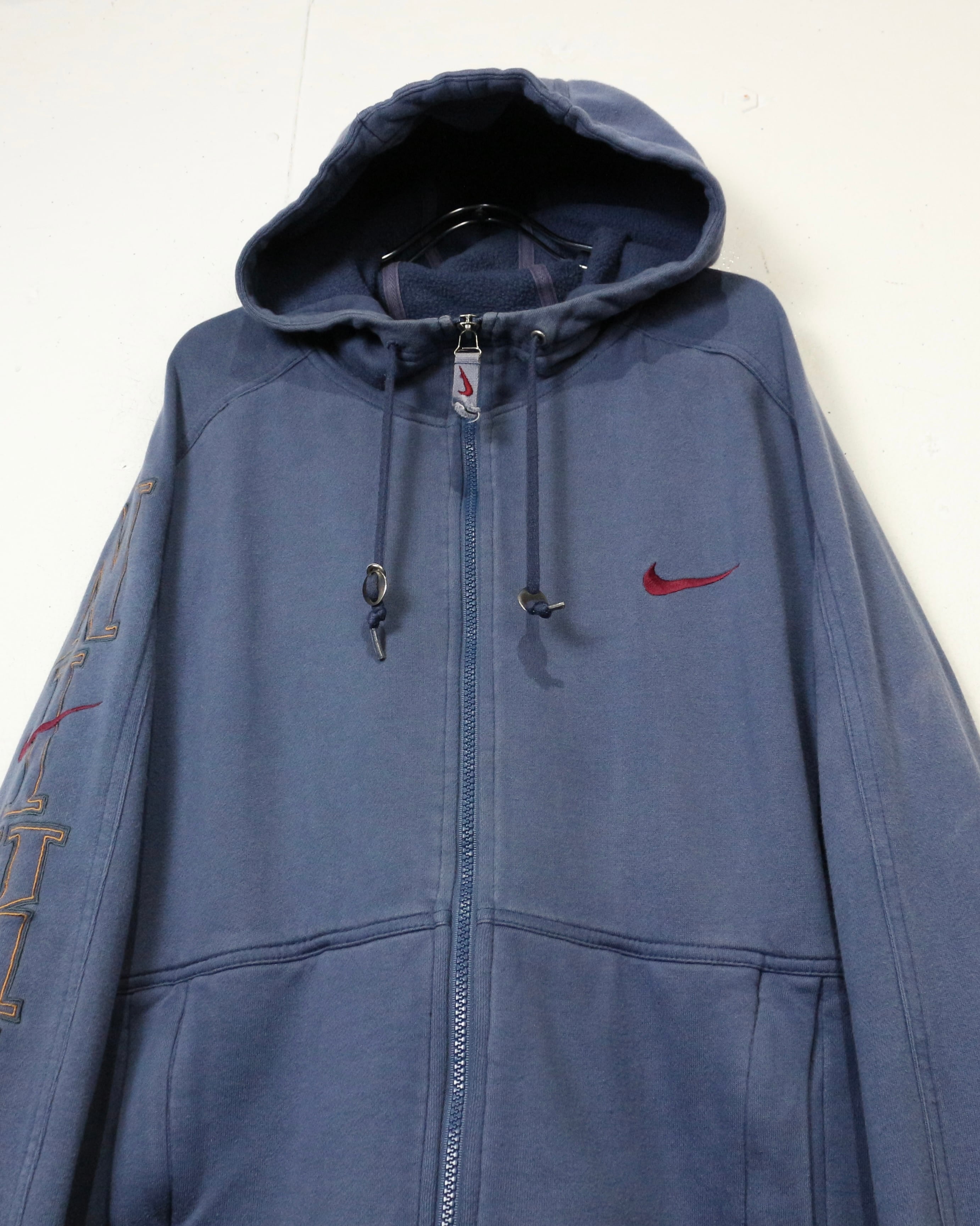 ロゴの存在感と経年変化の味わいを兼ね備えた、今の空気感にハマる“NIKE”のジップアップフーディです。