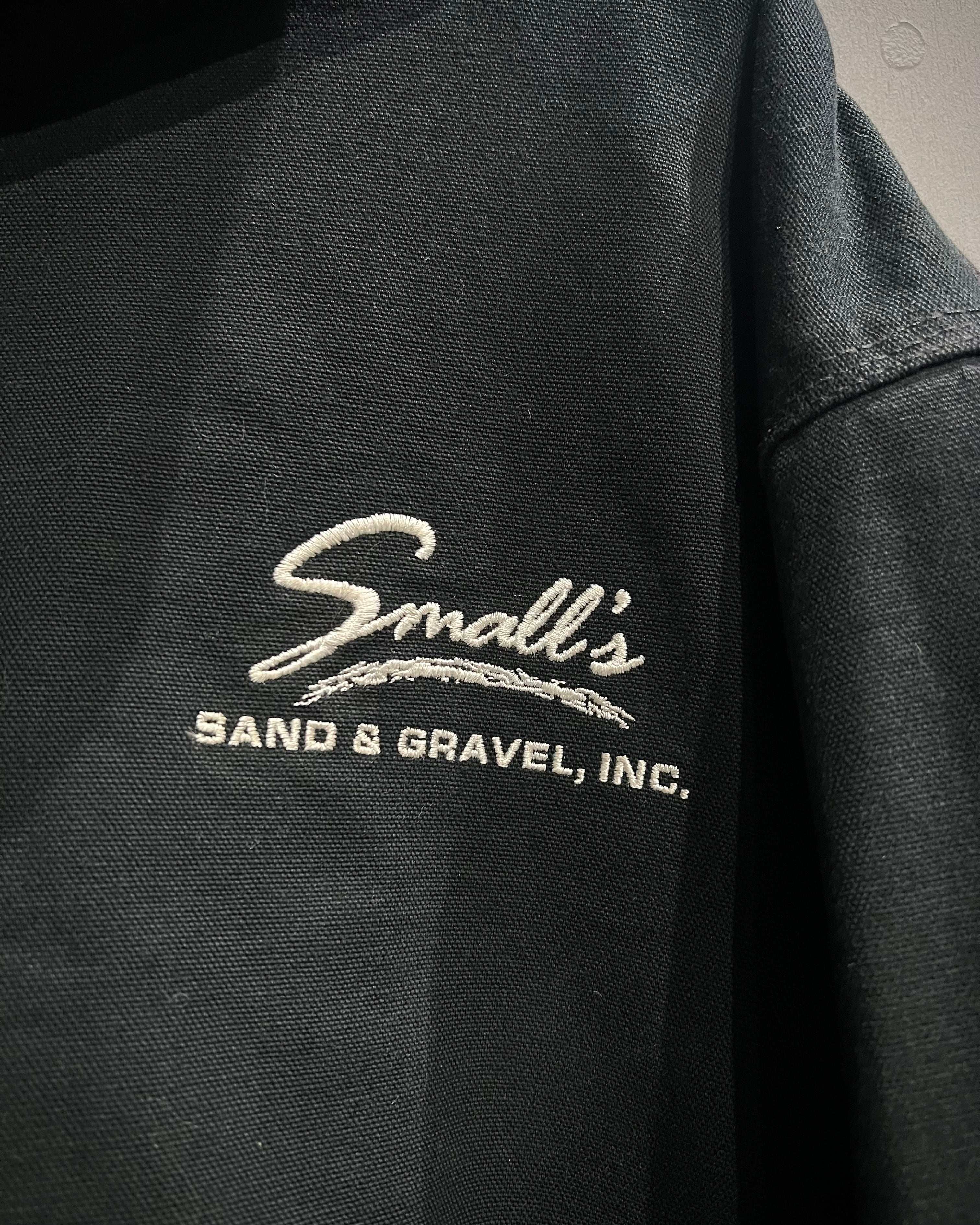 フロントはジップ仕様、ポケットにはブランドを象徴するスクエアロゴパッチを配置。胸元には企業ネームの刺繍が入り、リアルワークの背景を感じさせますね。