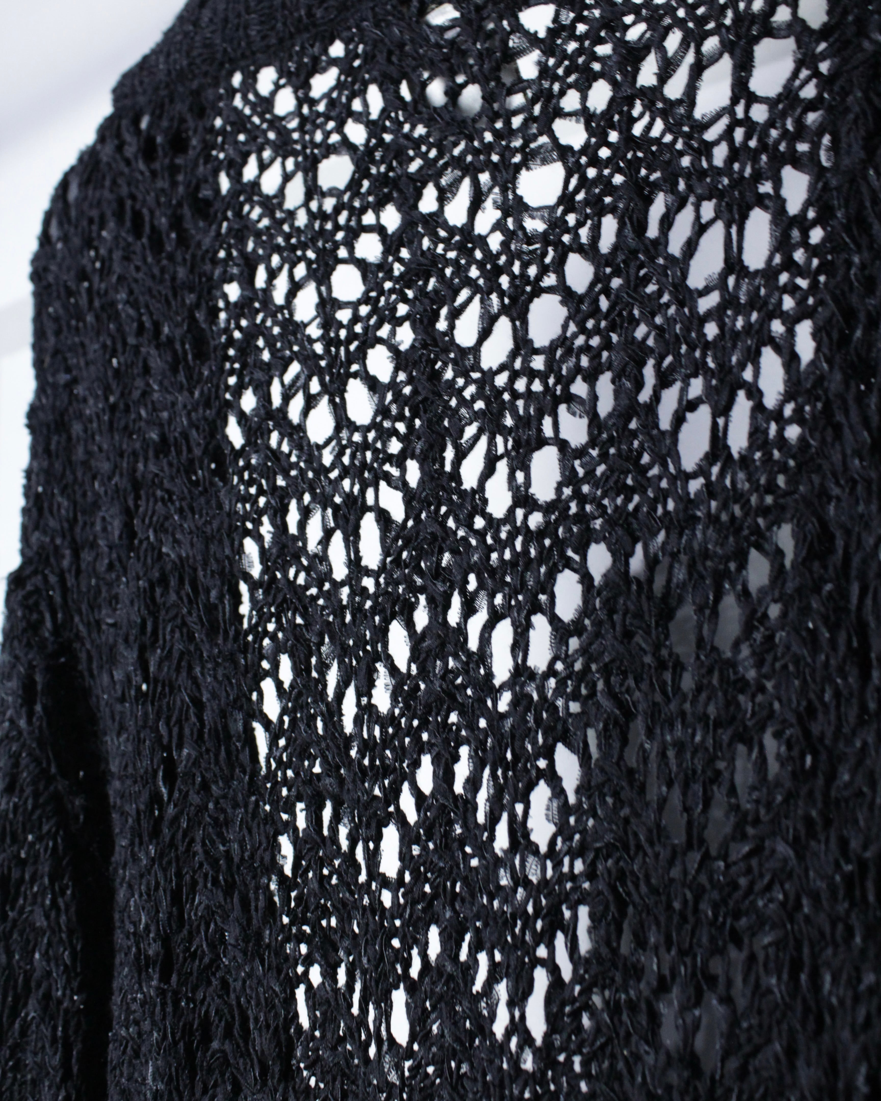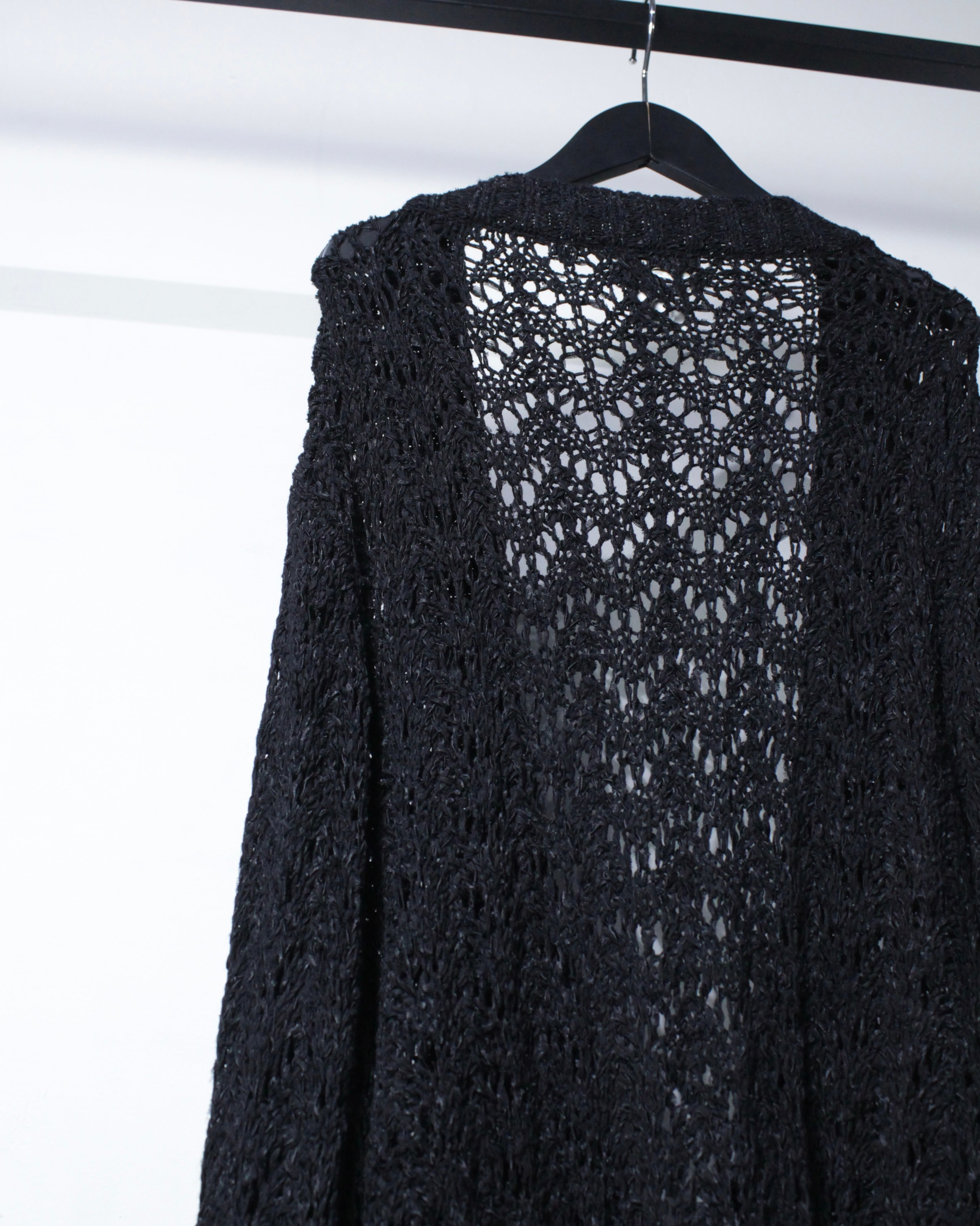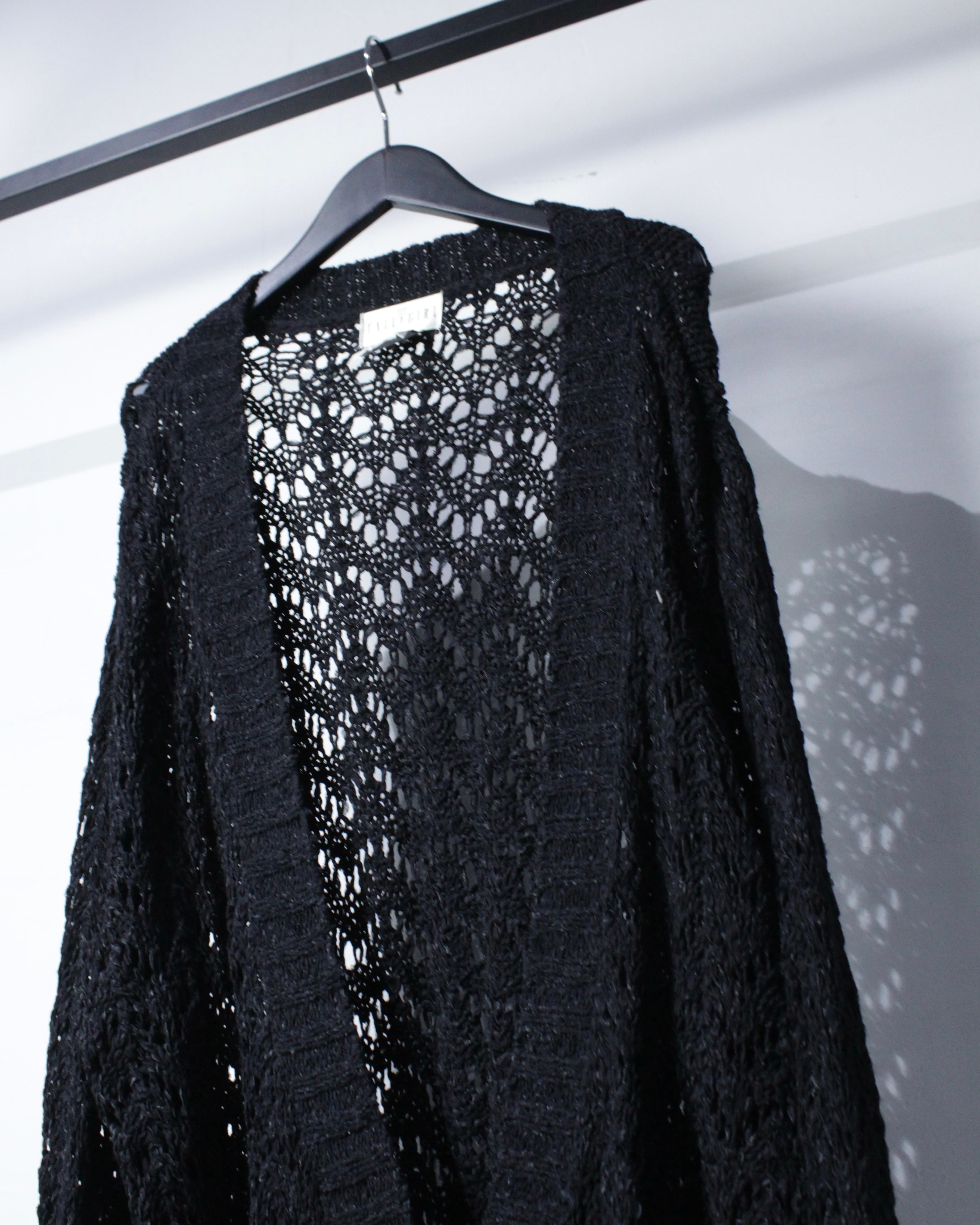 軽やかな抜け感と奥行きあるブラックの表情が魅力のメッシュニットカーディガンをご紹介いたします。