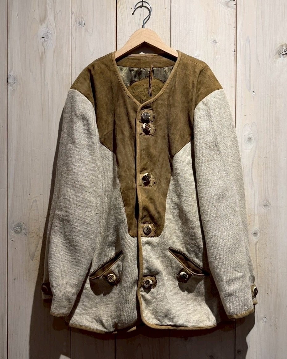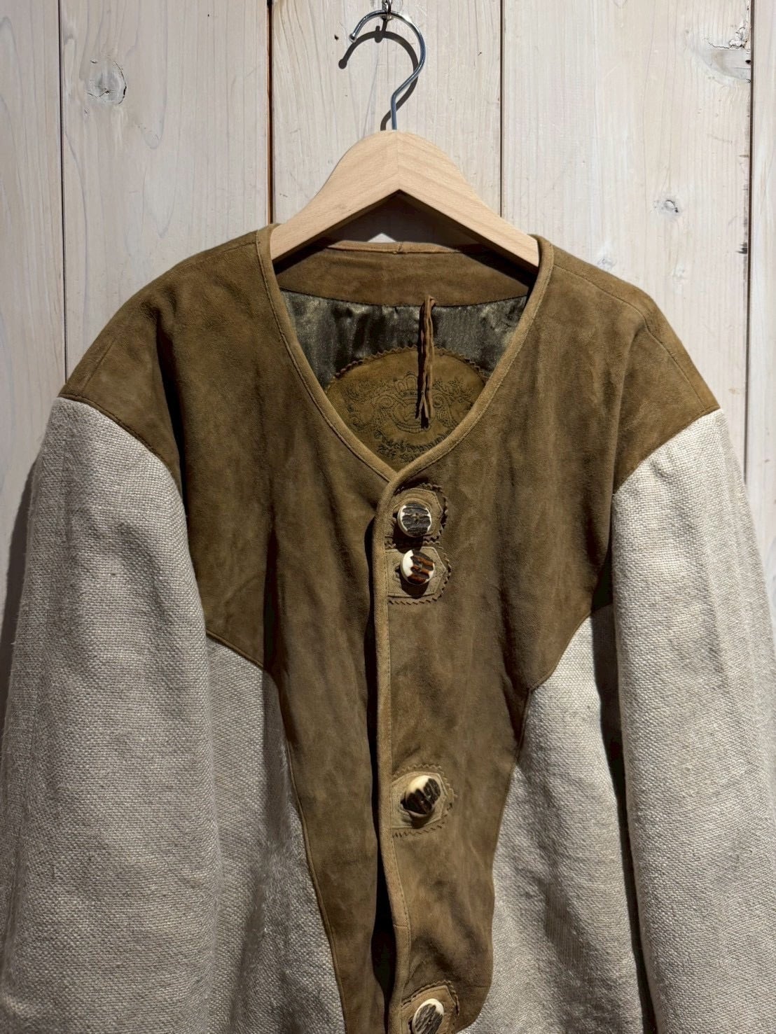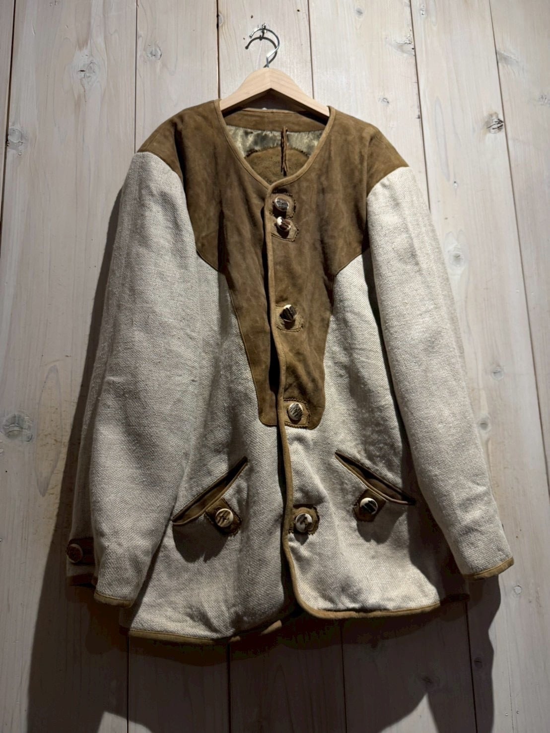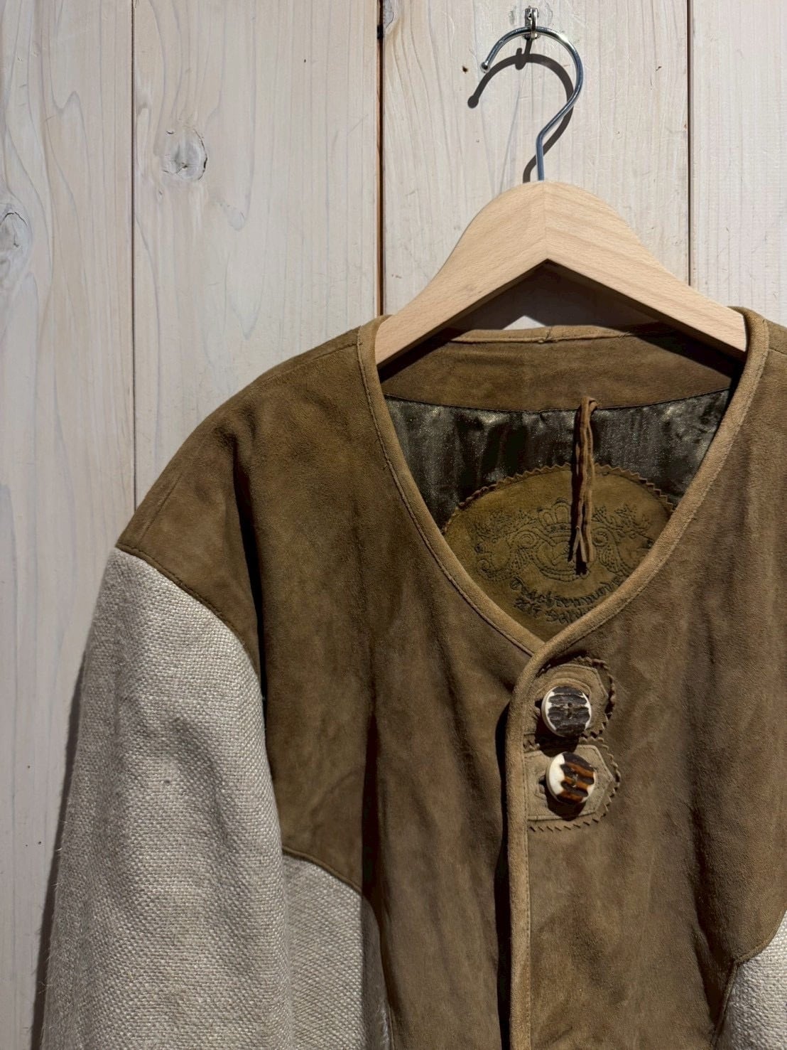 ヨーロッパの民族衣装をルーツに持つチロリアンジャケットをベースに、スエードレザーで大胆に切り替えた存在感抜群の1着。