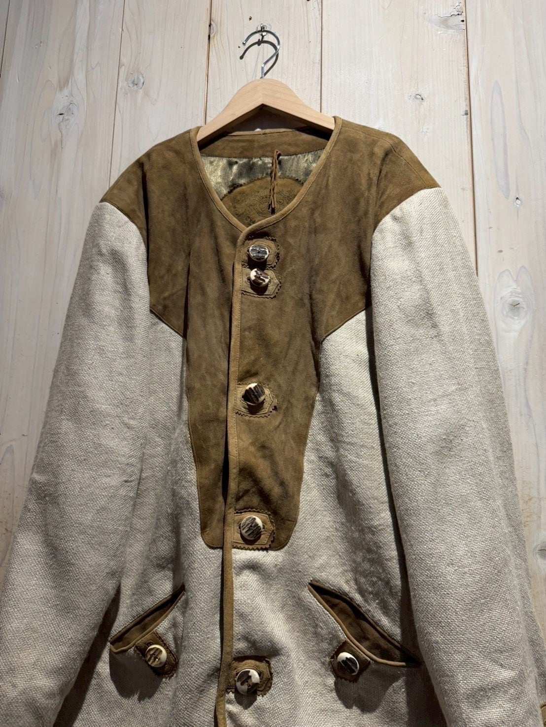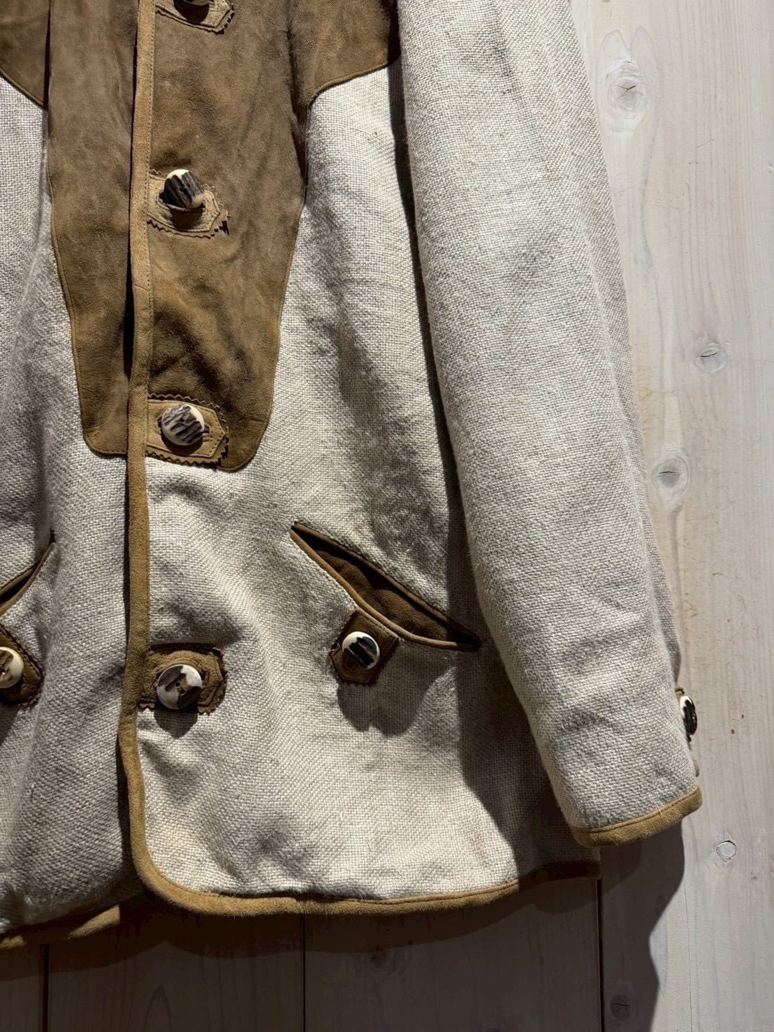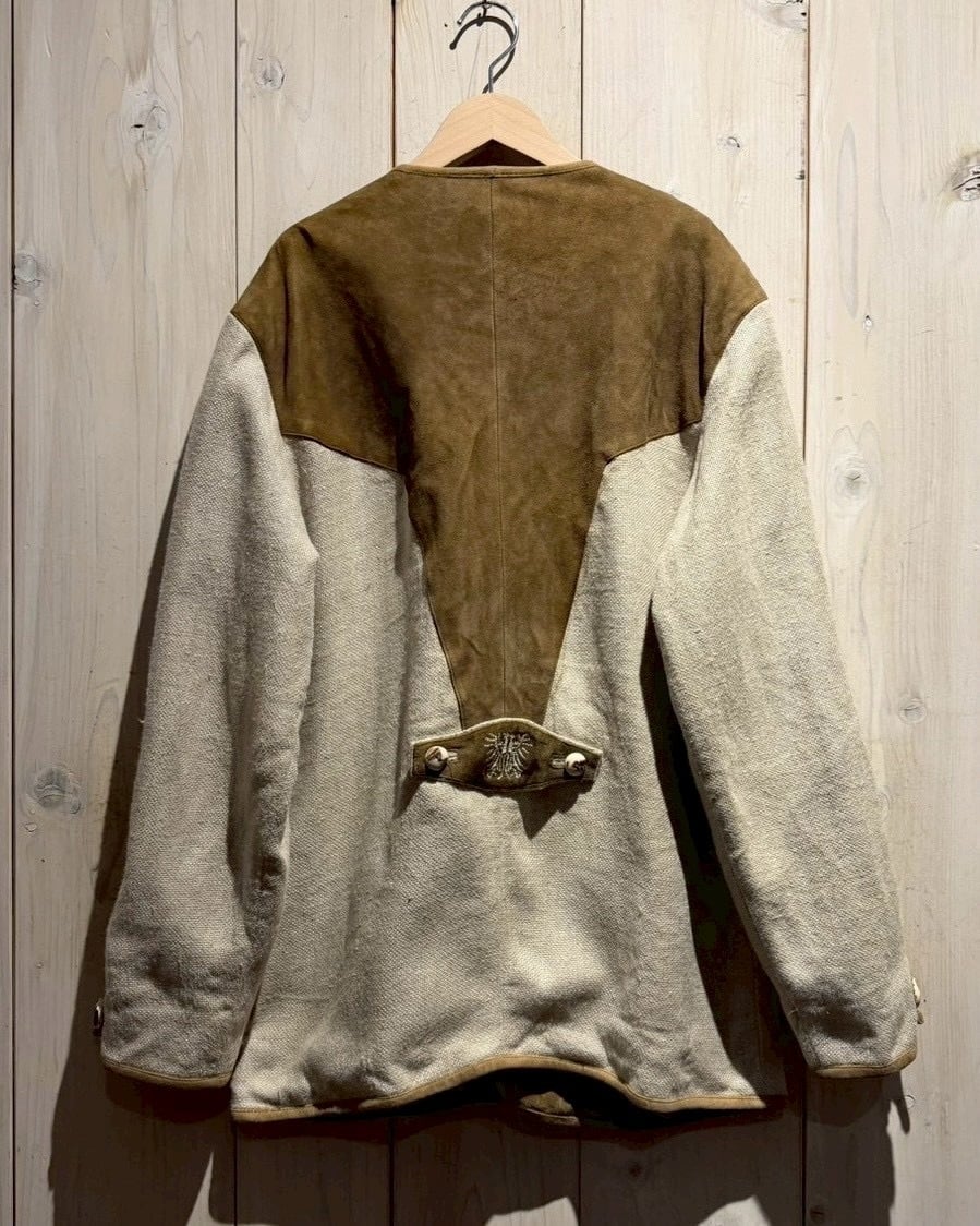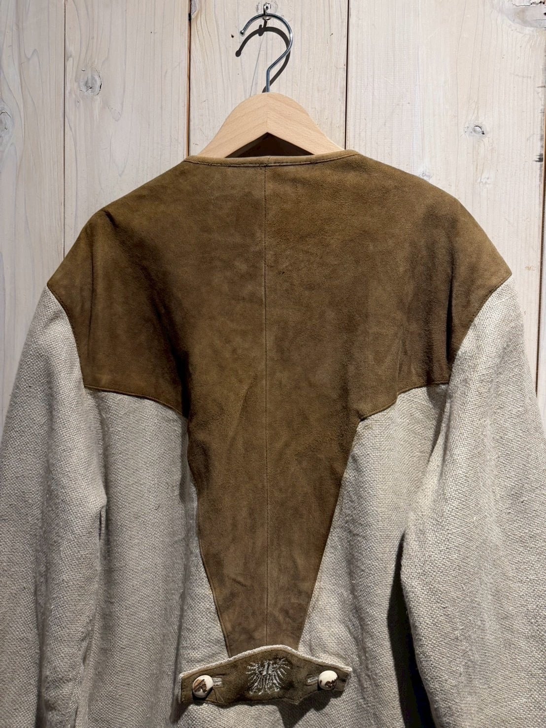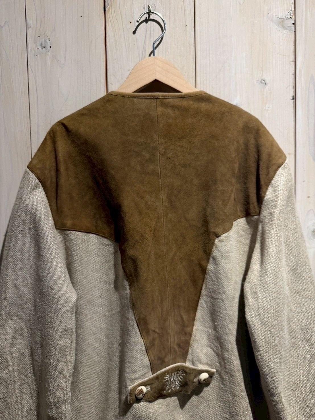 ヨーロッパの民族衣装をルーツに持つチロリアンジャケットをベースに、スエードレザーで大胆に切り替えた存在感抜群の1着。