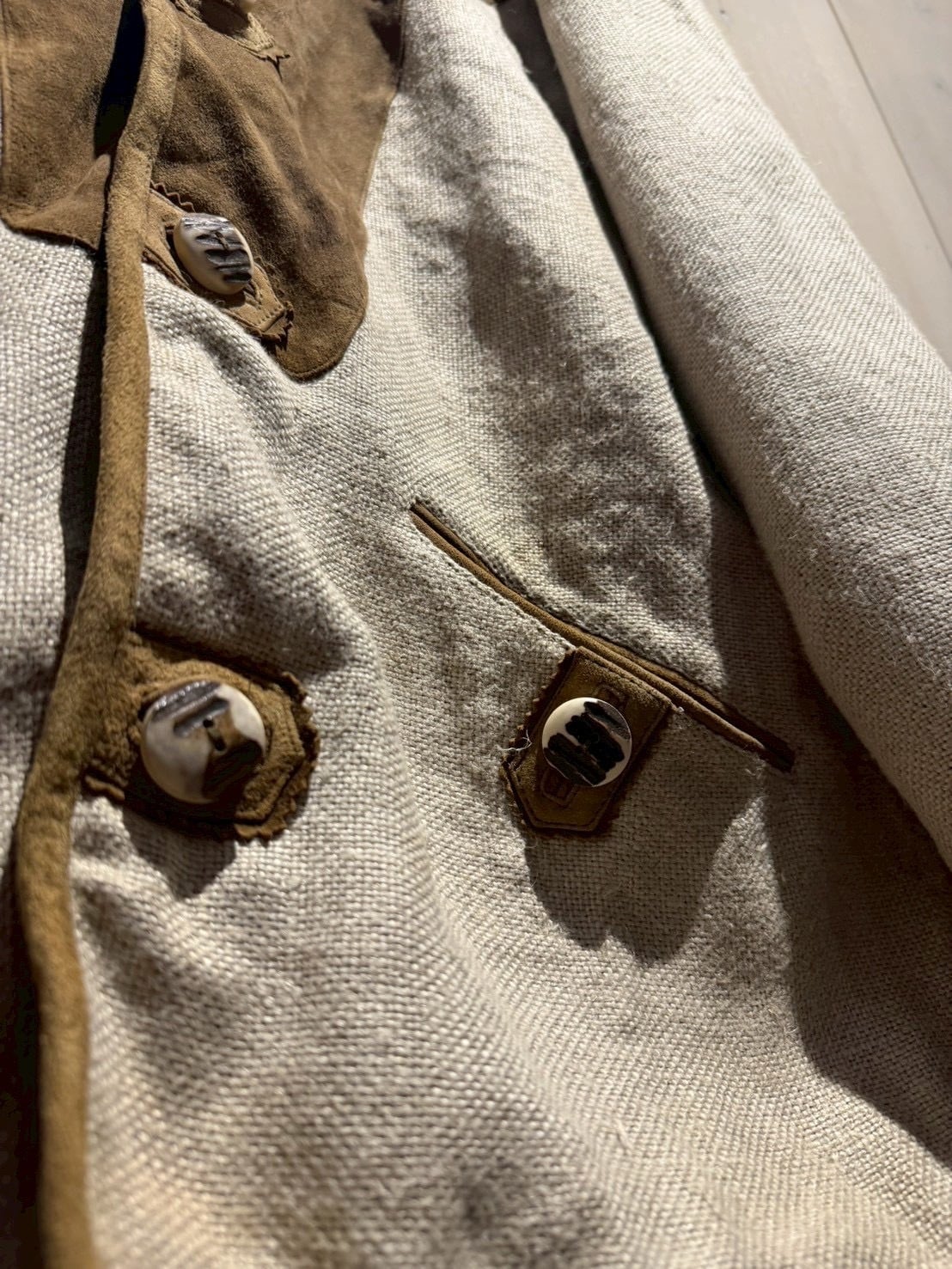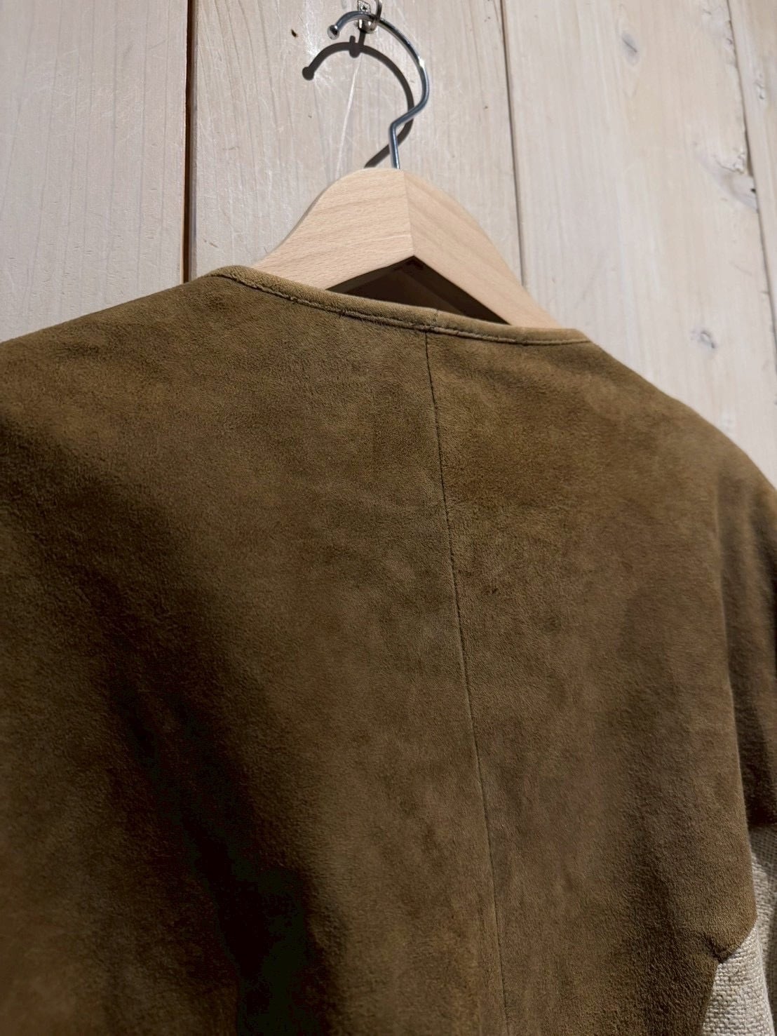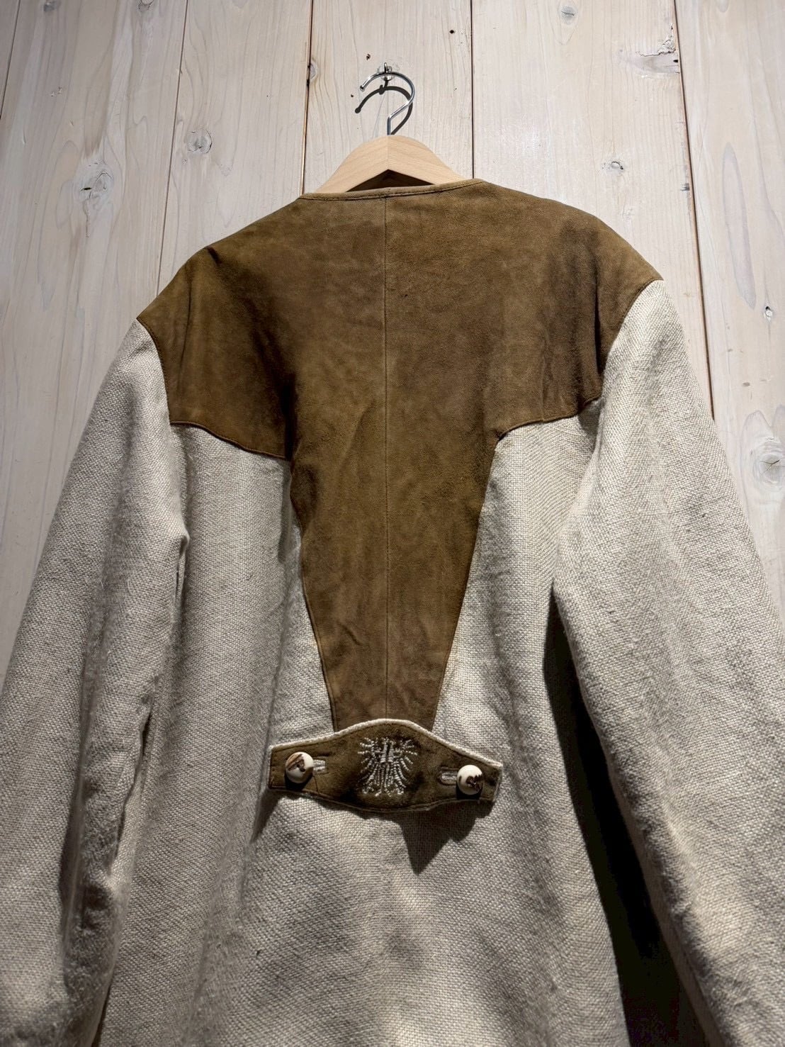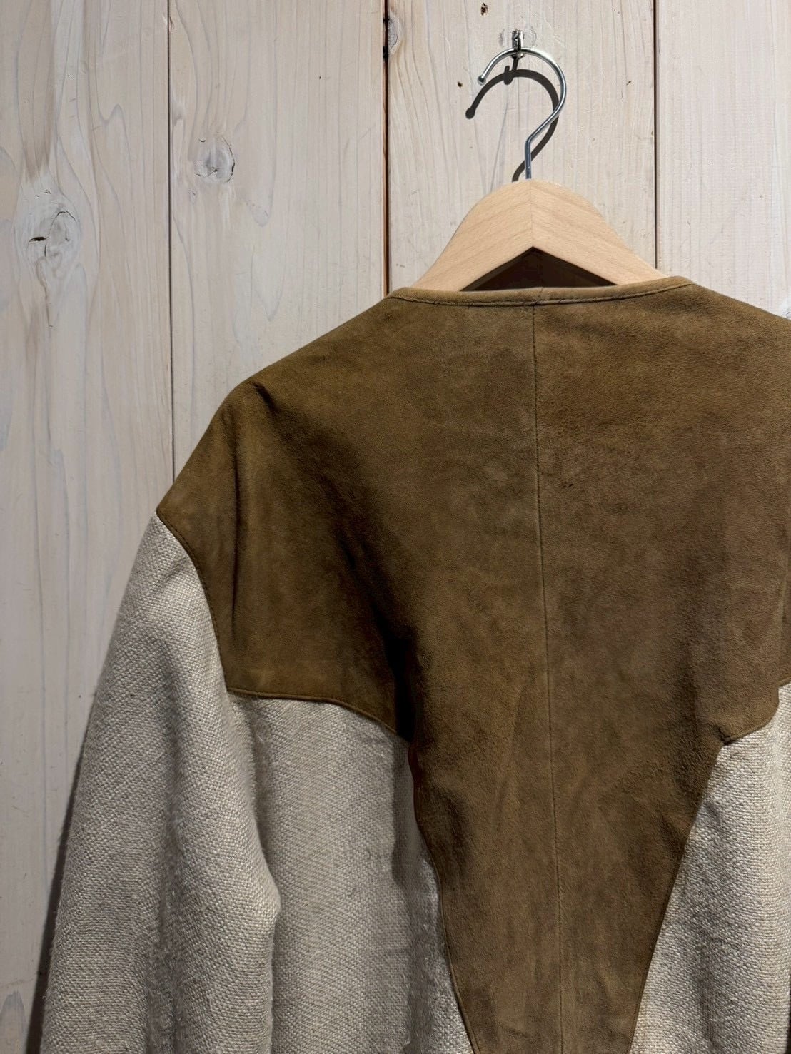 ヨーロッパの民族衣装をルーツに持つチロリアンジャケットをベースに、スエードレザーで大胆に切り替えた存在感抜群の1着。
