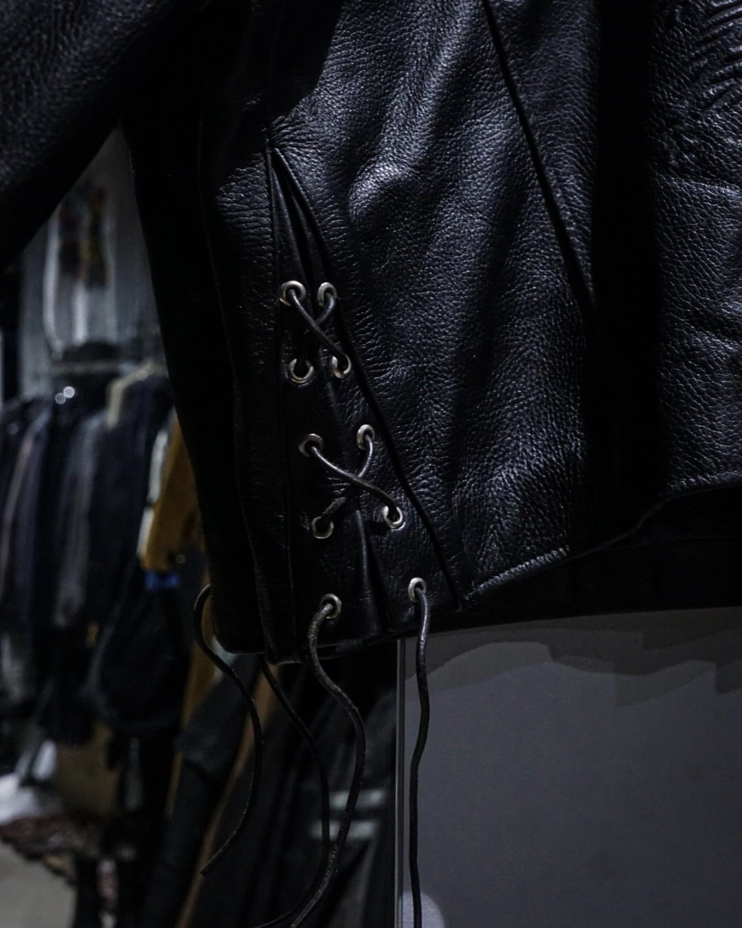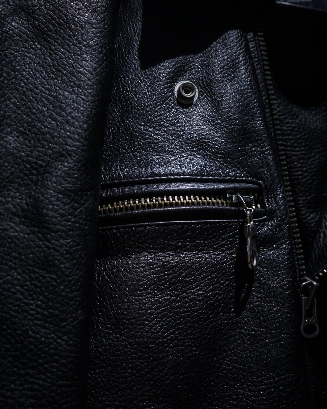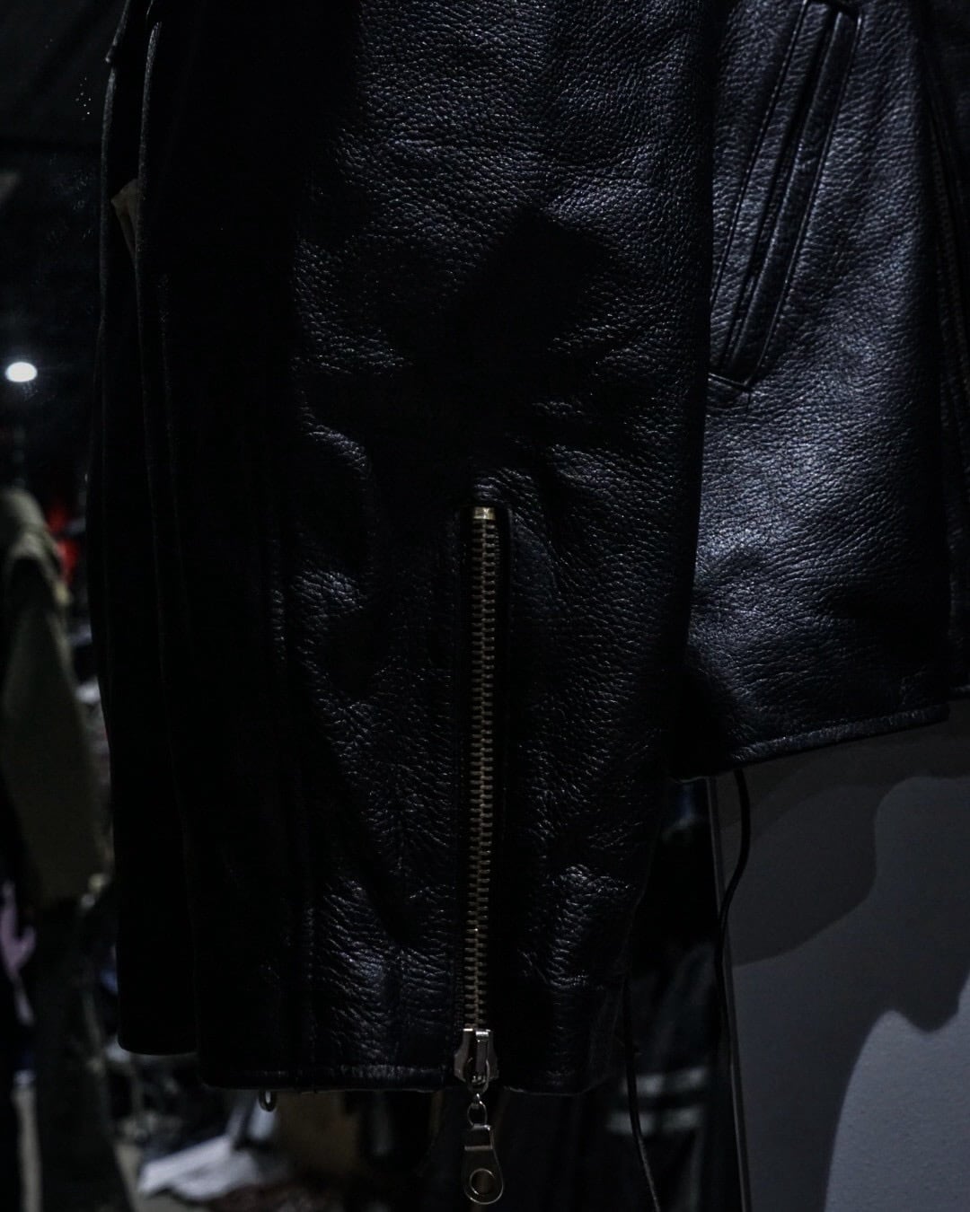 レザー特有の防風性に加え、裏地付きで安心感のある着心地。袖口ジップやウエストのアジャスターなど、実用的なディテールも完備し、作り込みも抜かりなし。