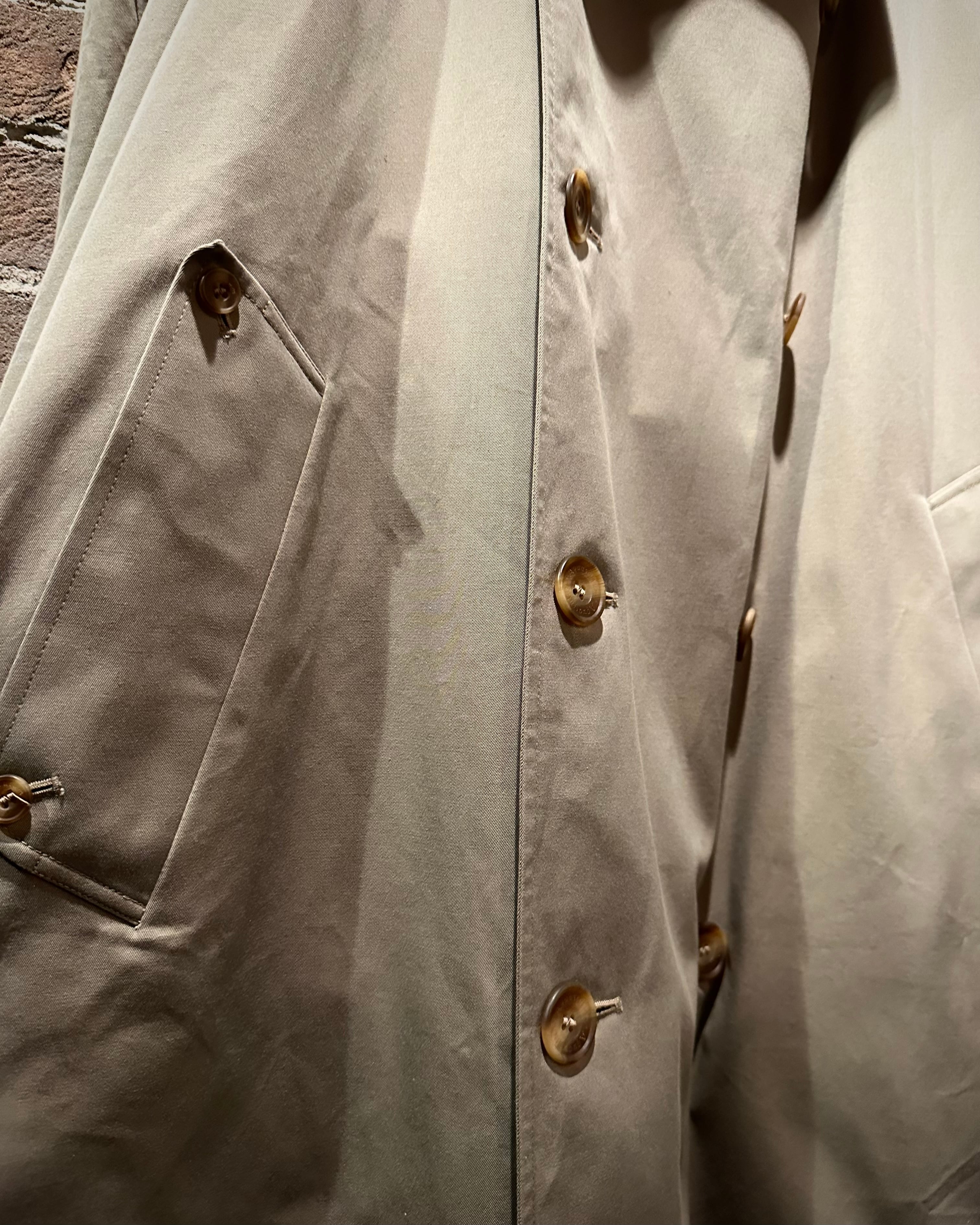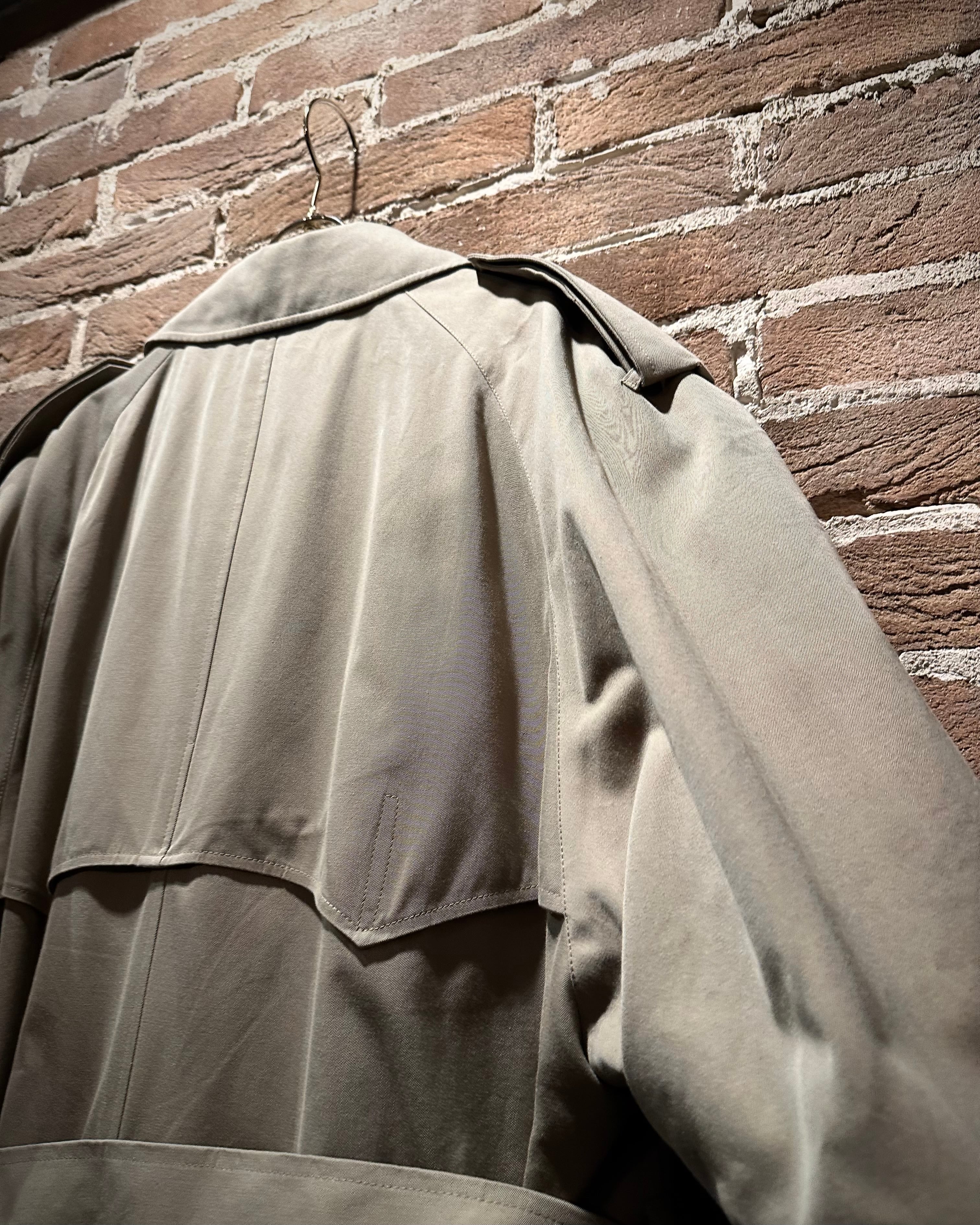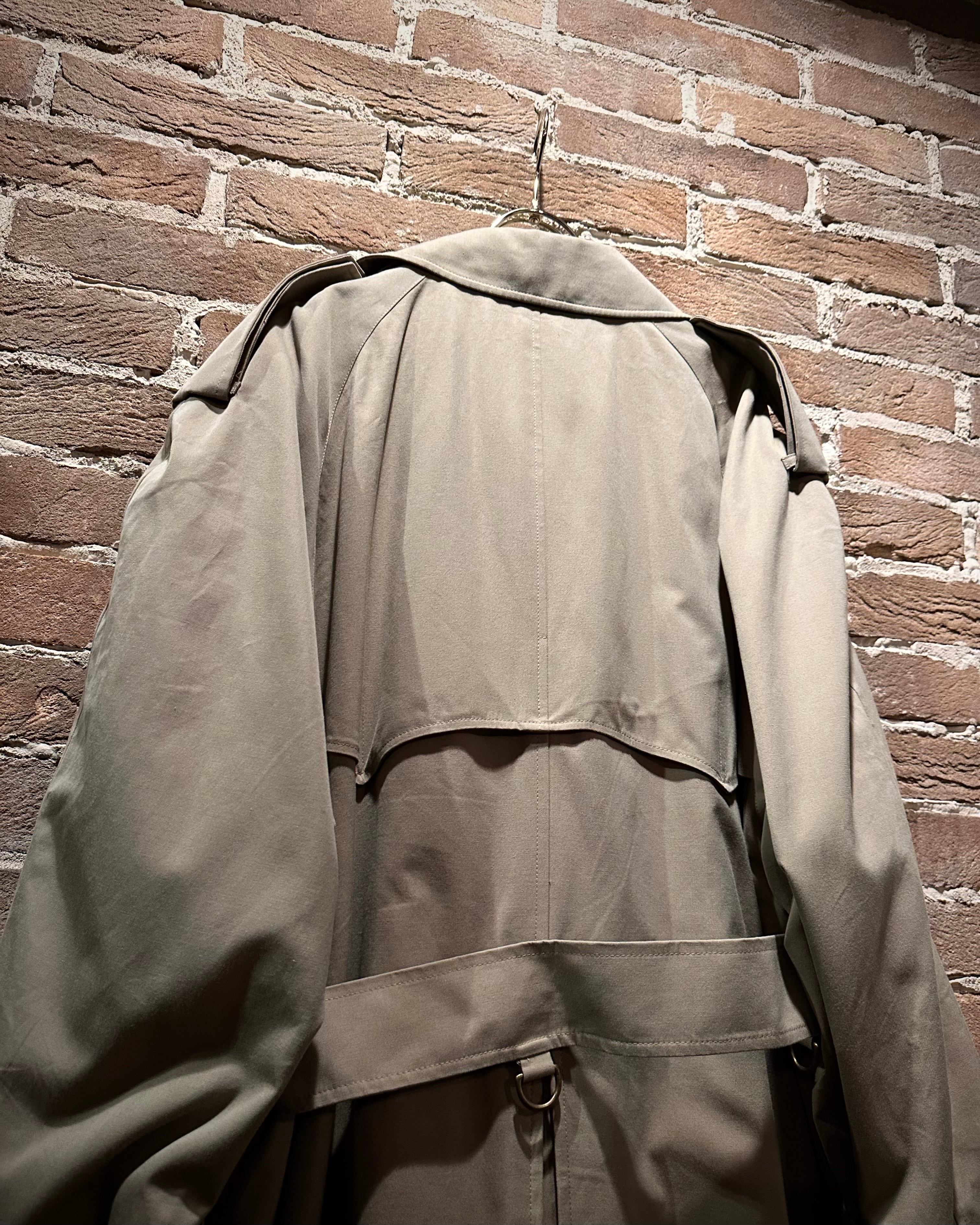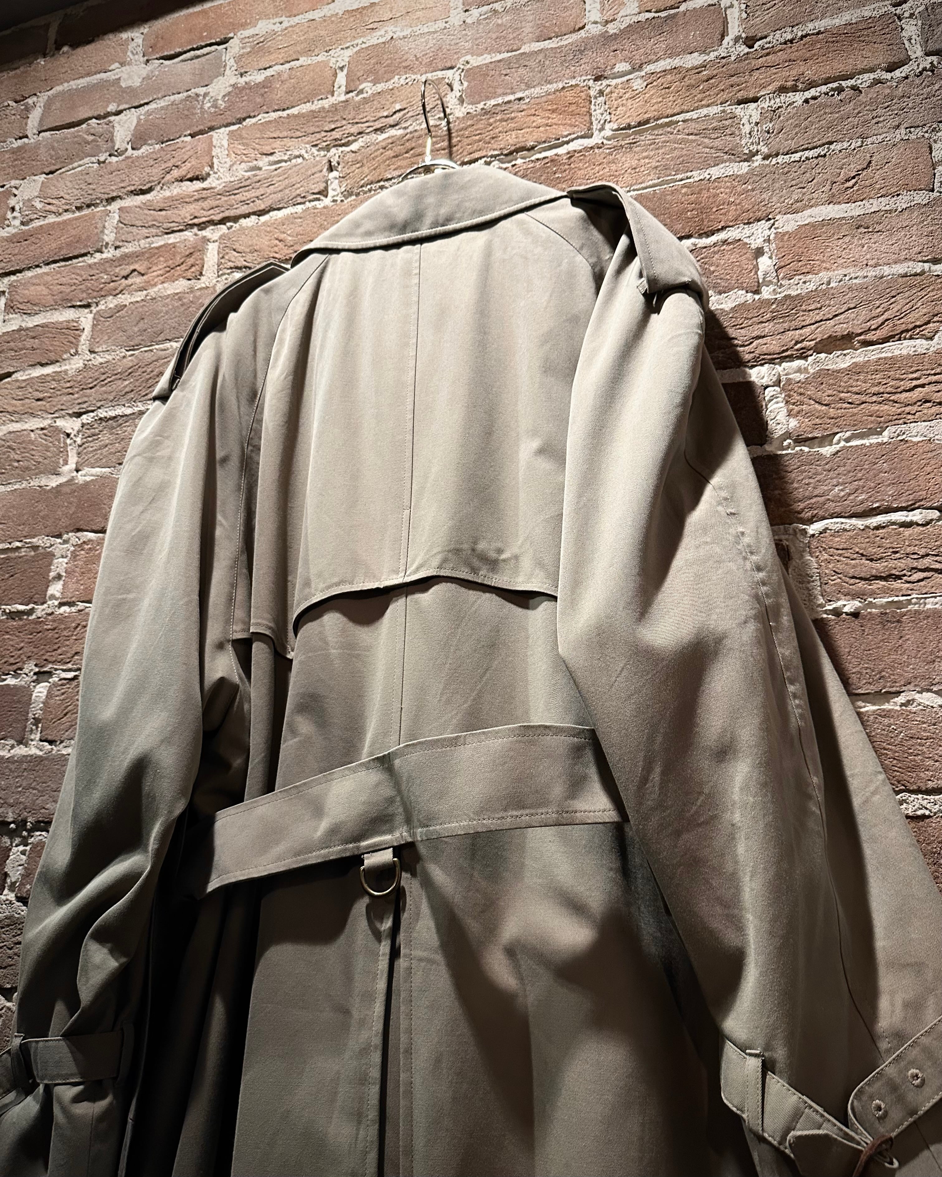 フロントはダブル仕様。エポレットやストームシールドなど、トレンチの王道ディテールも抜かりなく、取り外し可能なライナーとベルトを備えた完品コンディション。3シーズン活躍してくれる実用性も兼備しています。