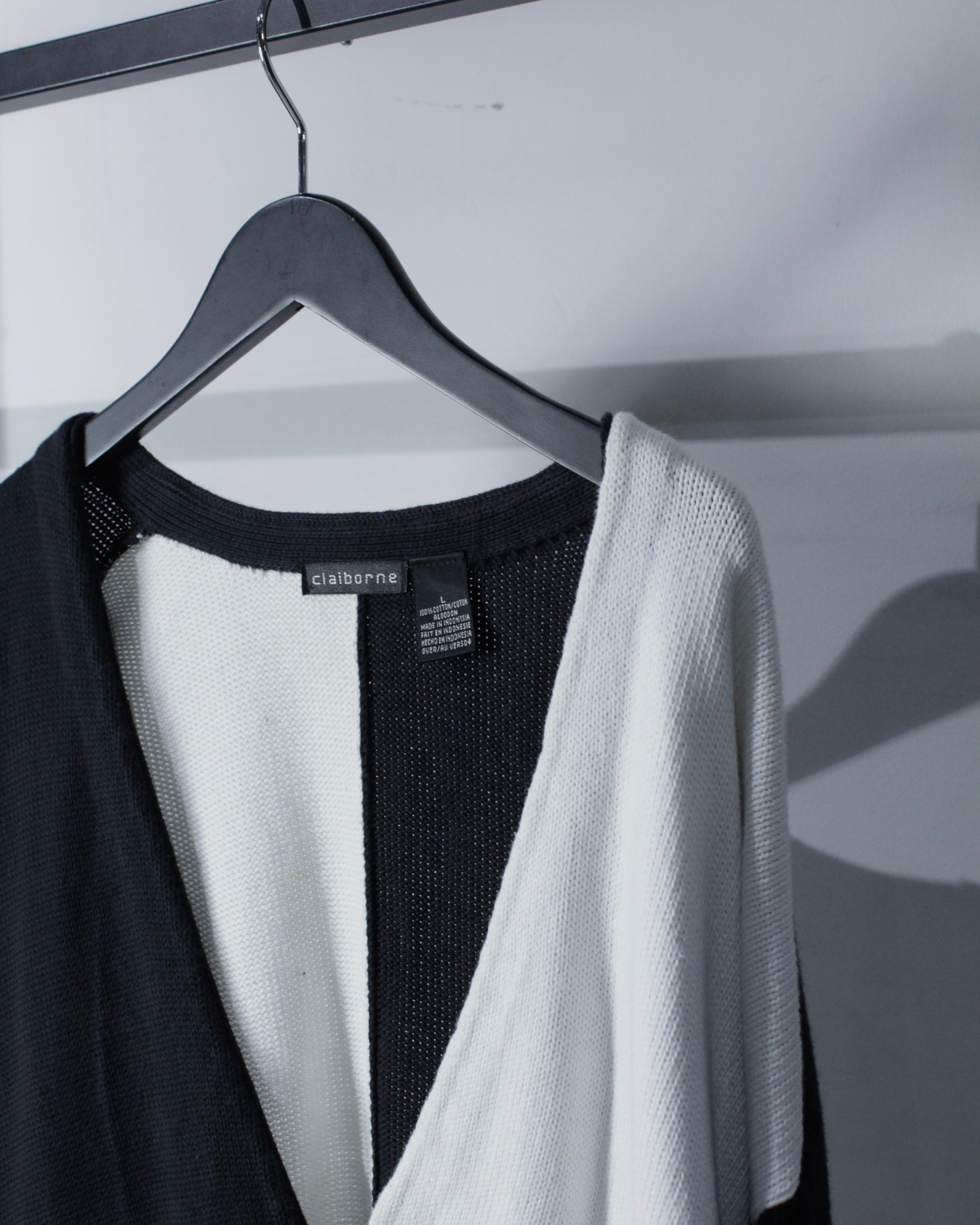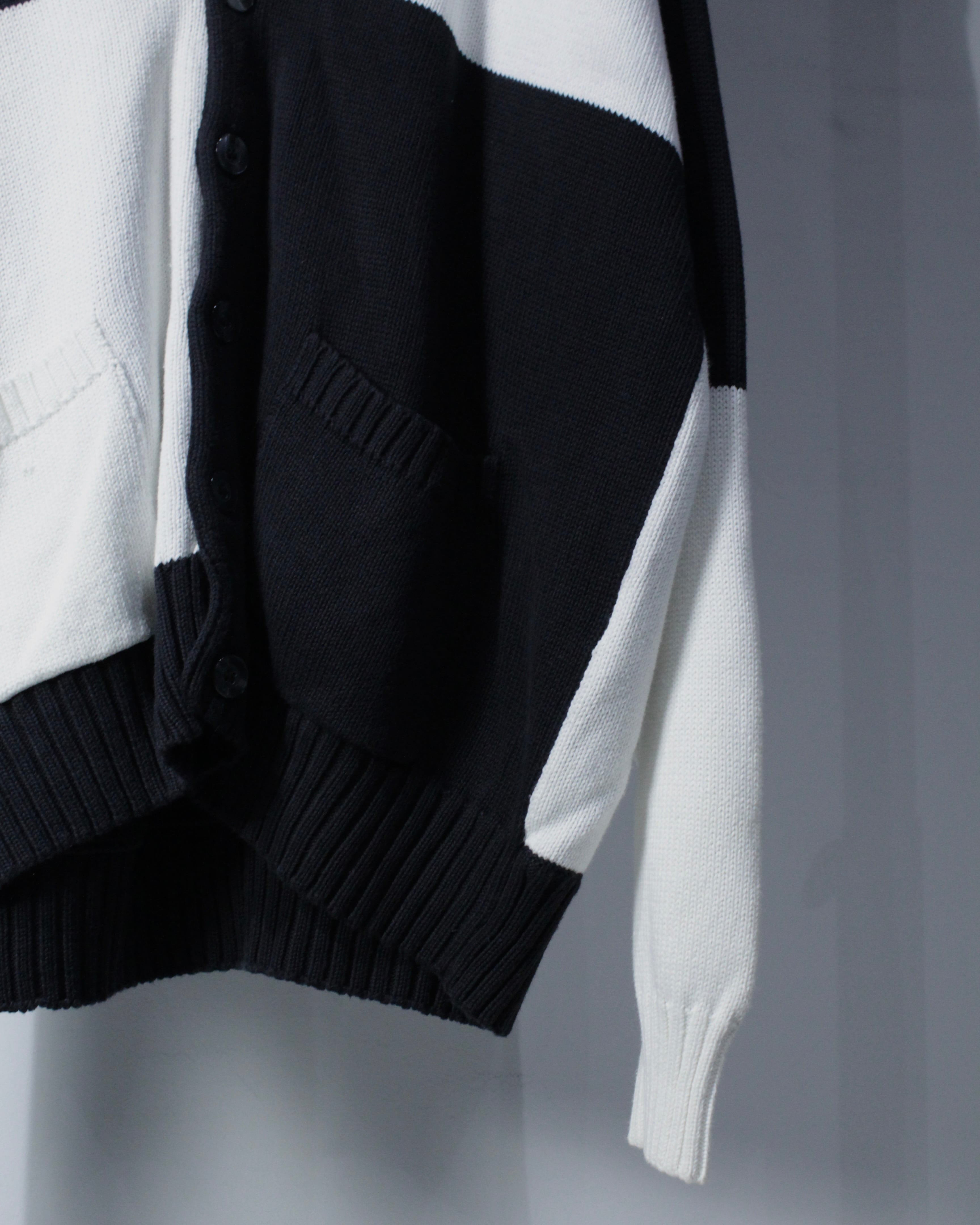 モダンな配色で魅せる、モノトーンのコットンカーディガンをご紹介いたします。