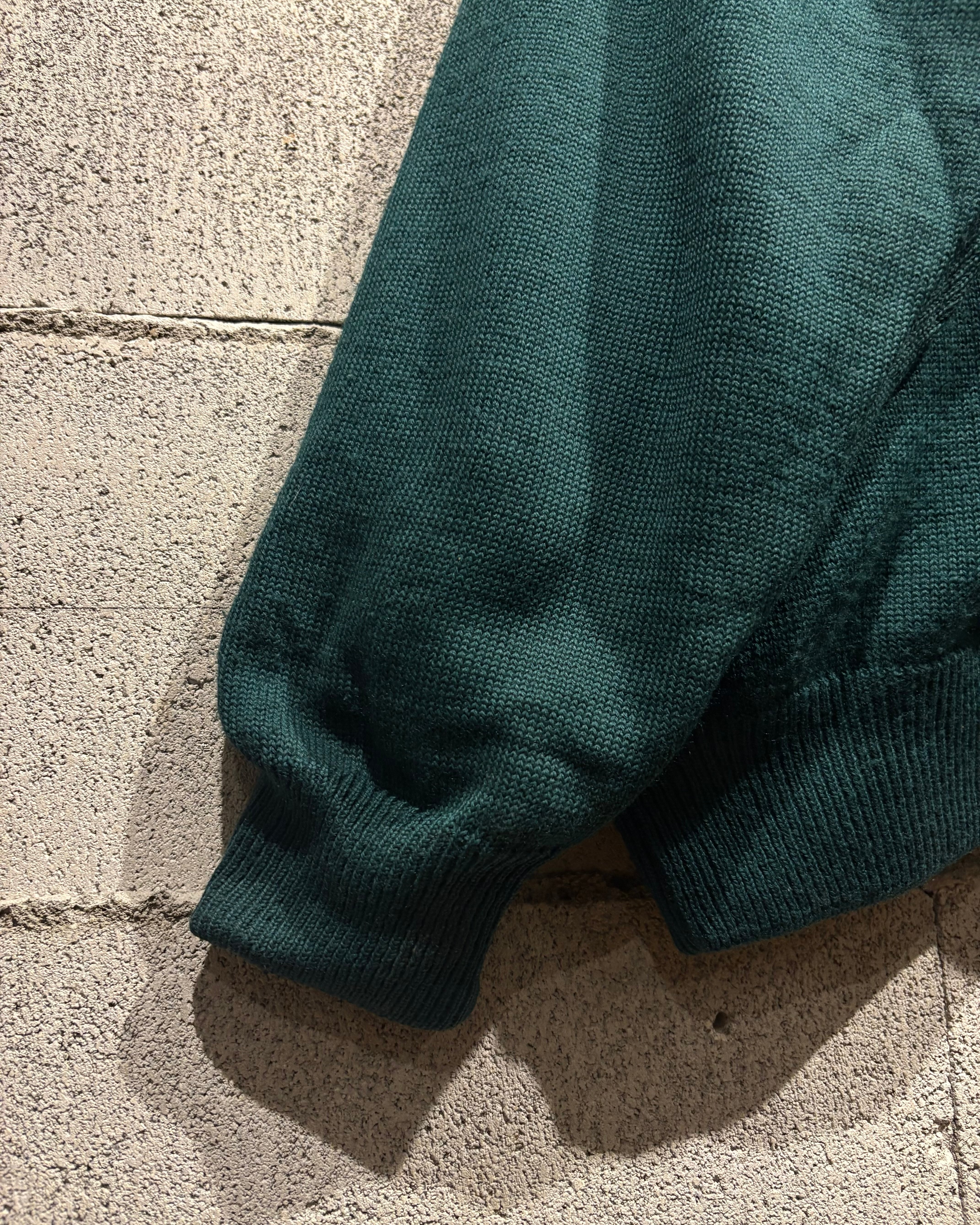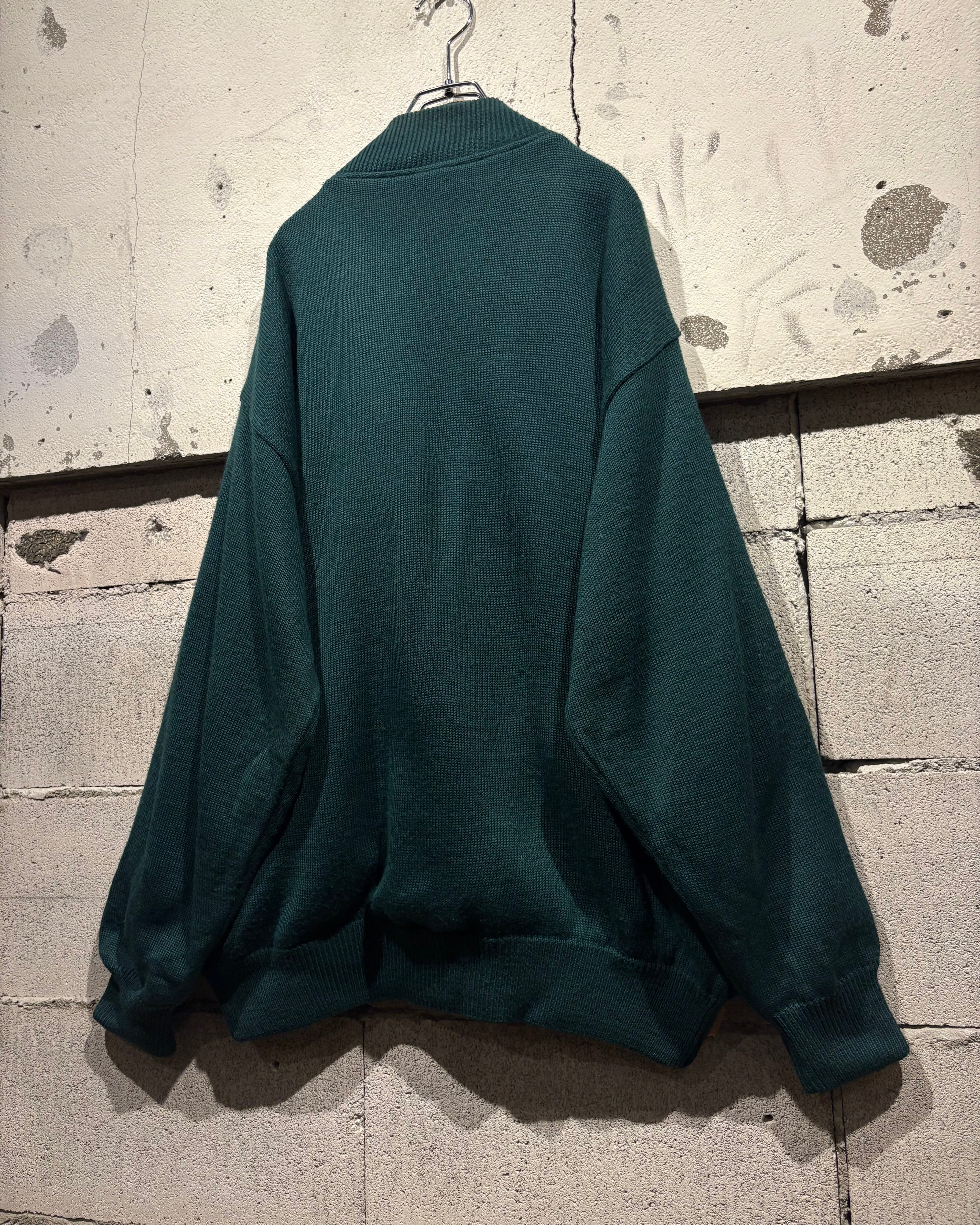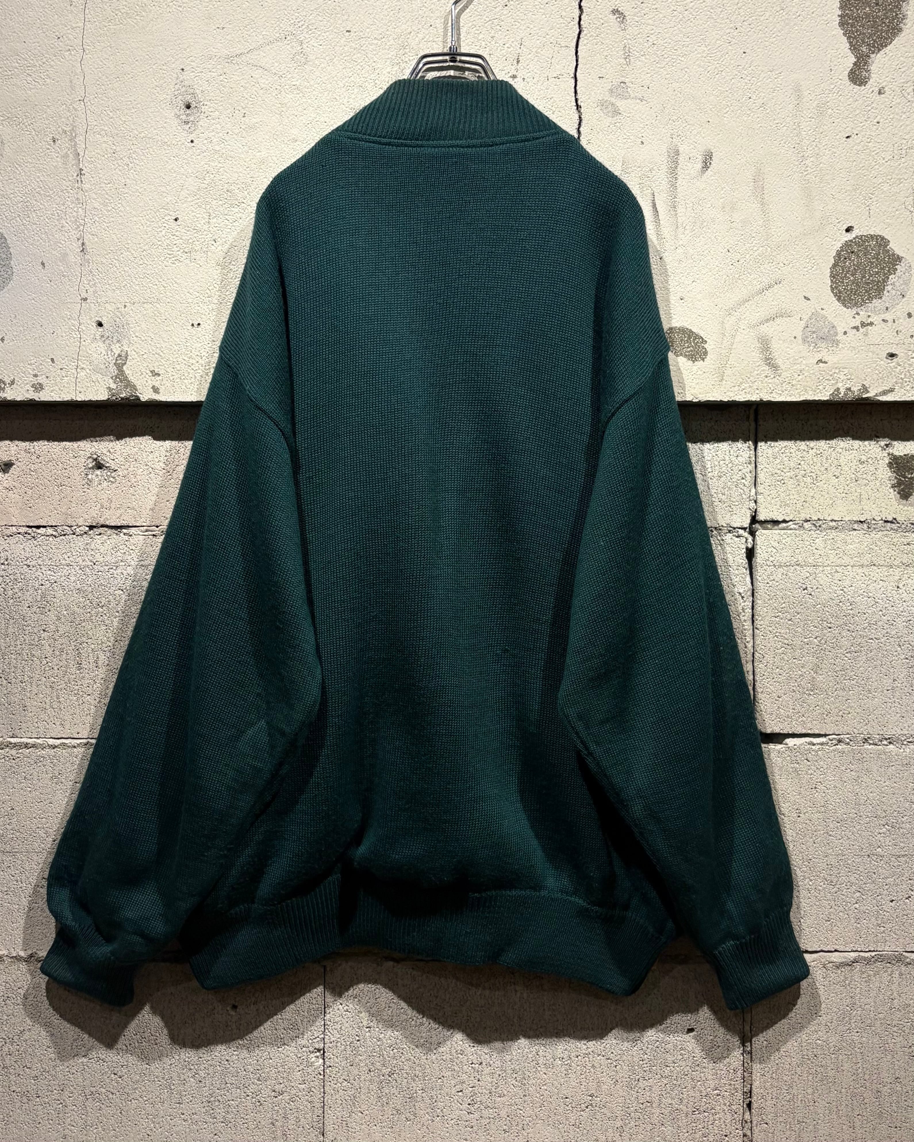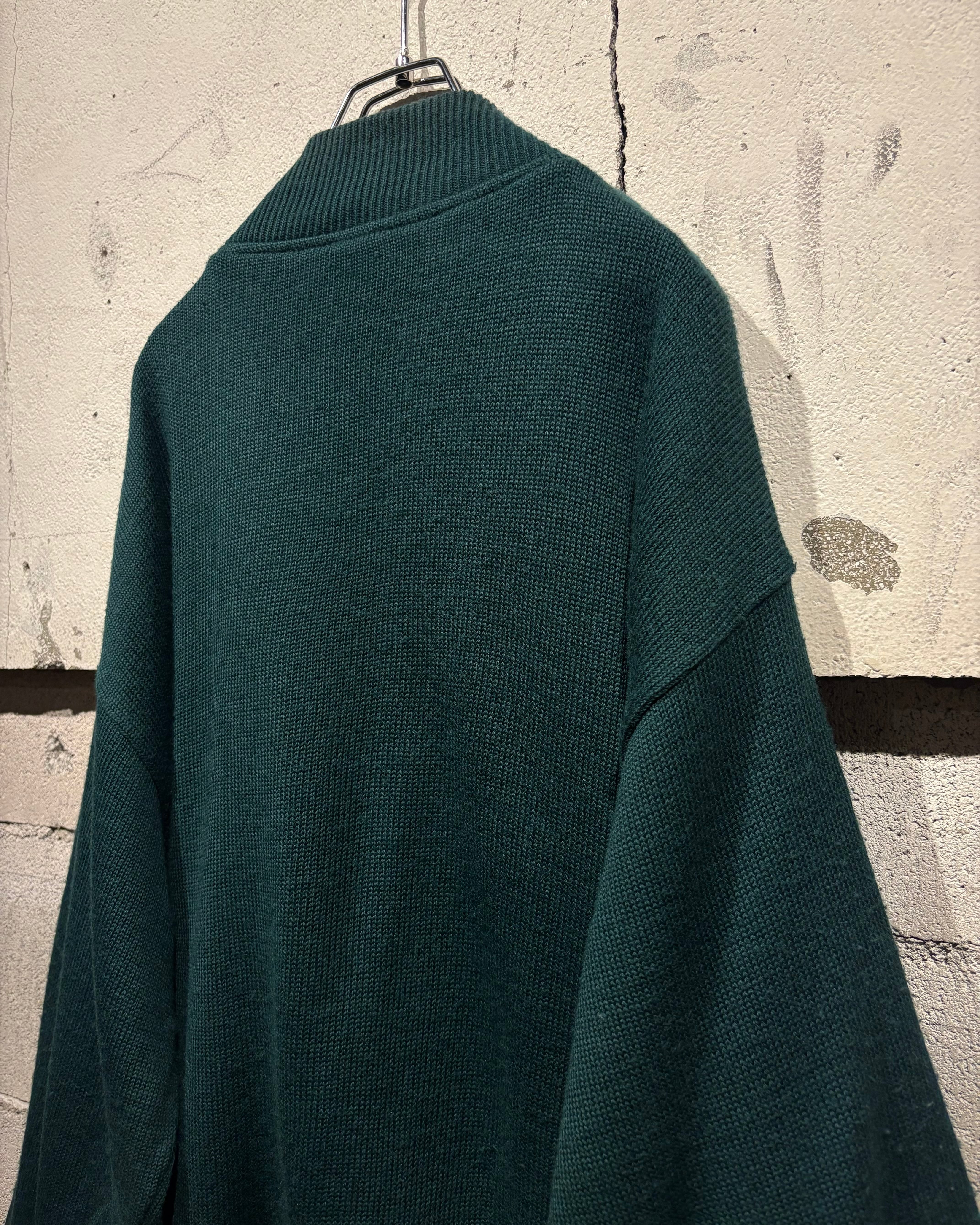 深みのあるグリーンカラーが印象的な、異素材を切り替えたニットジャケットをご紹介いたします。