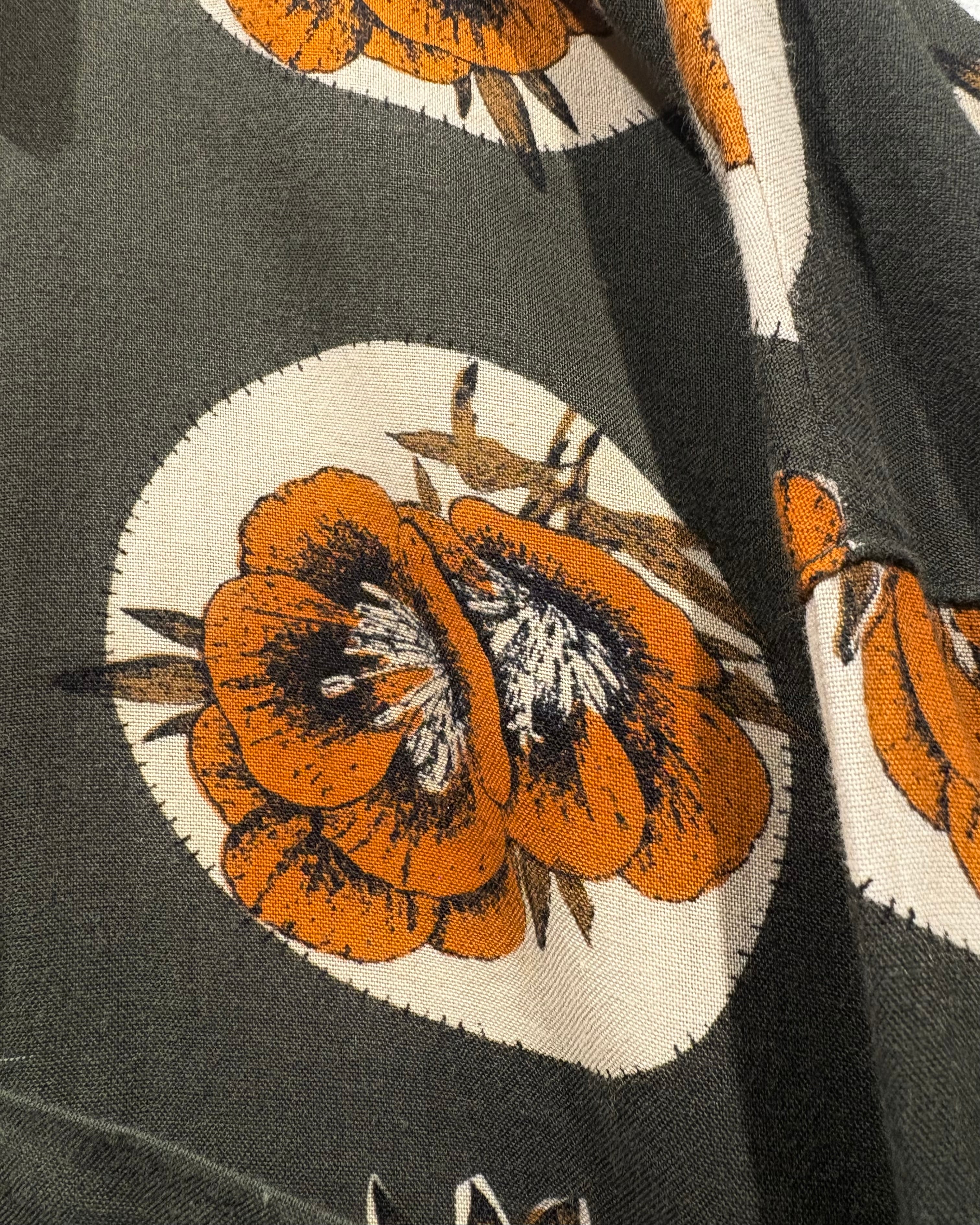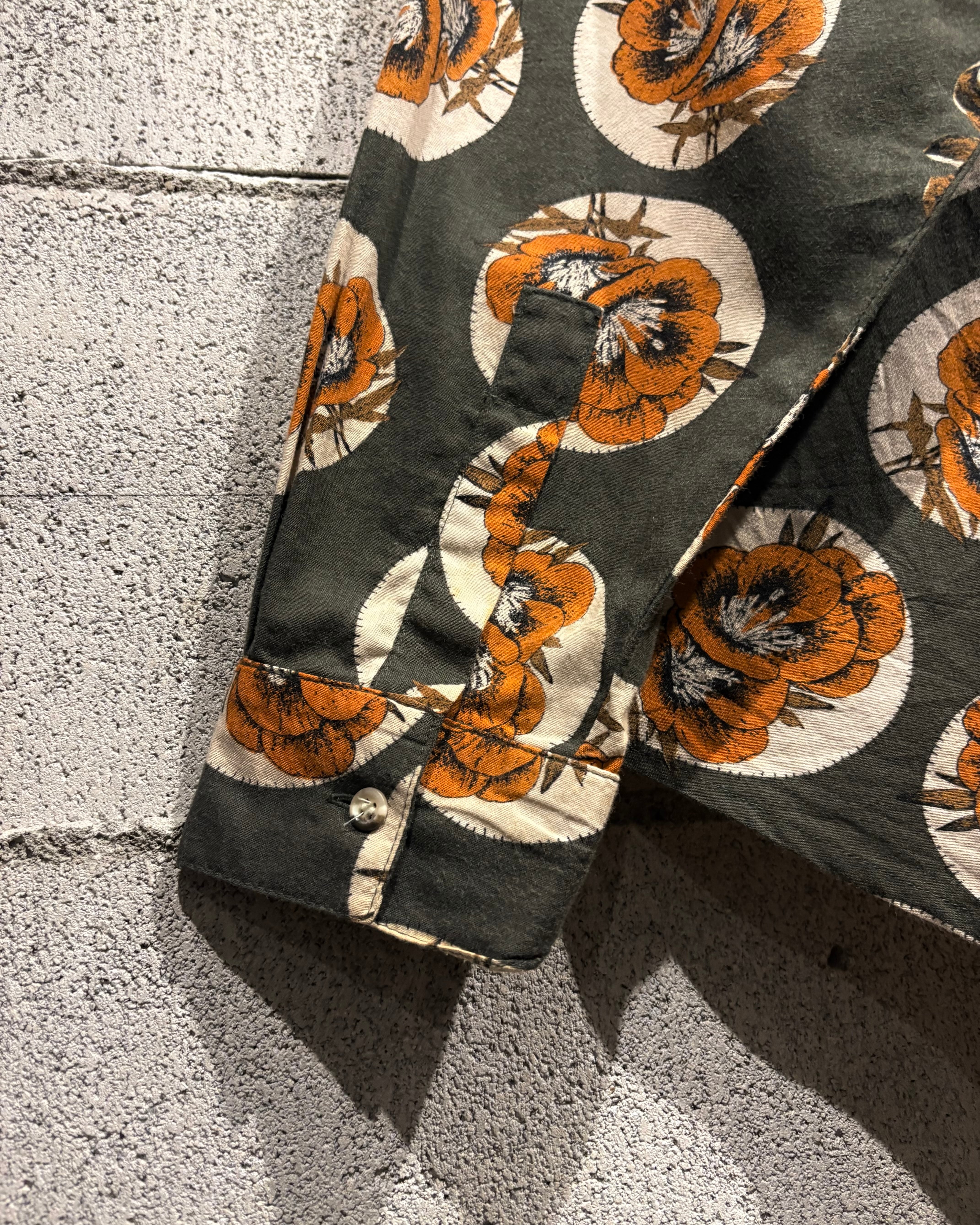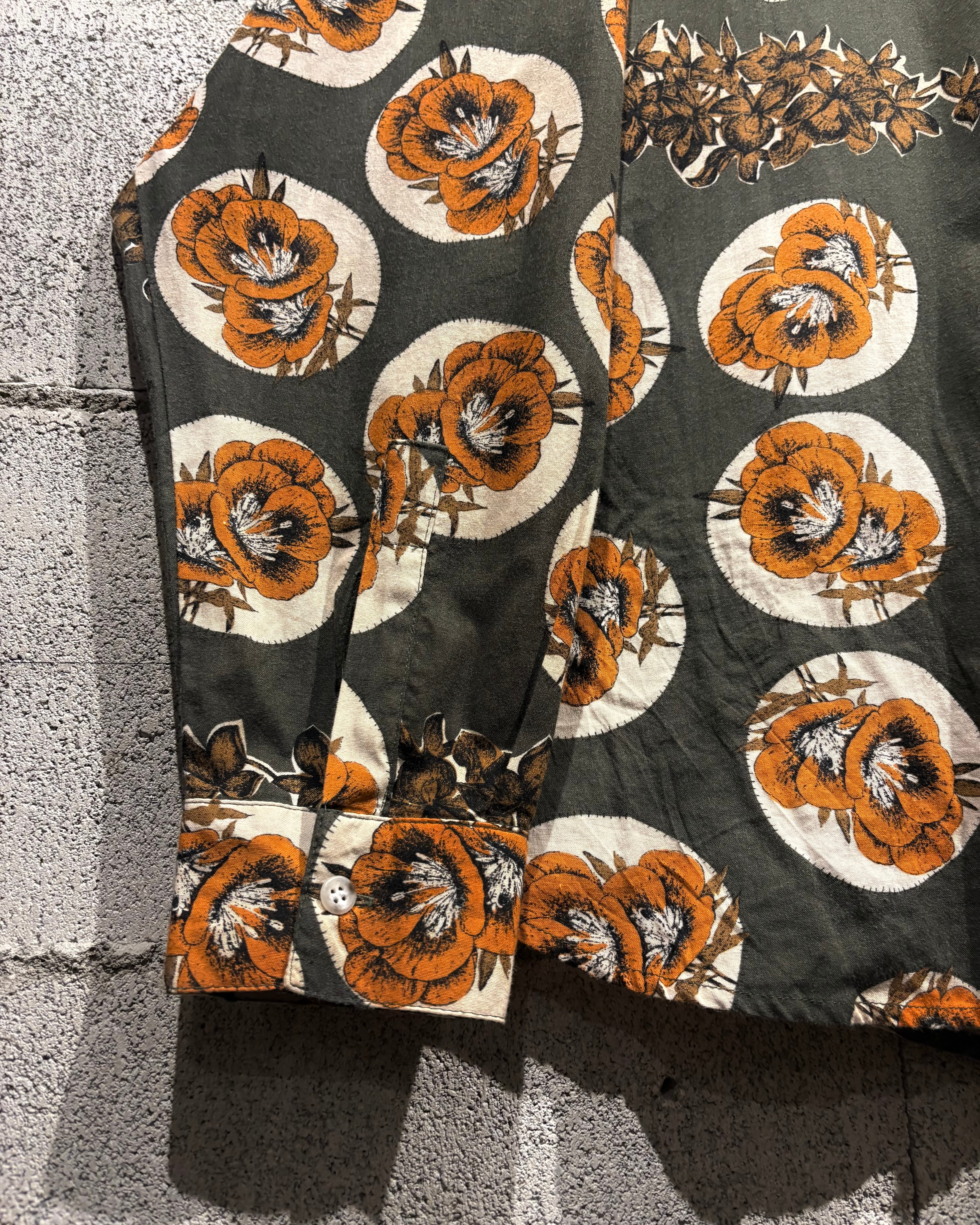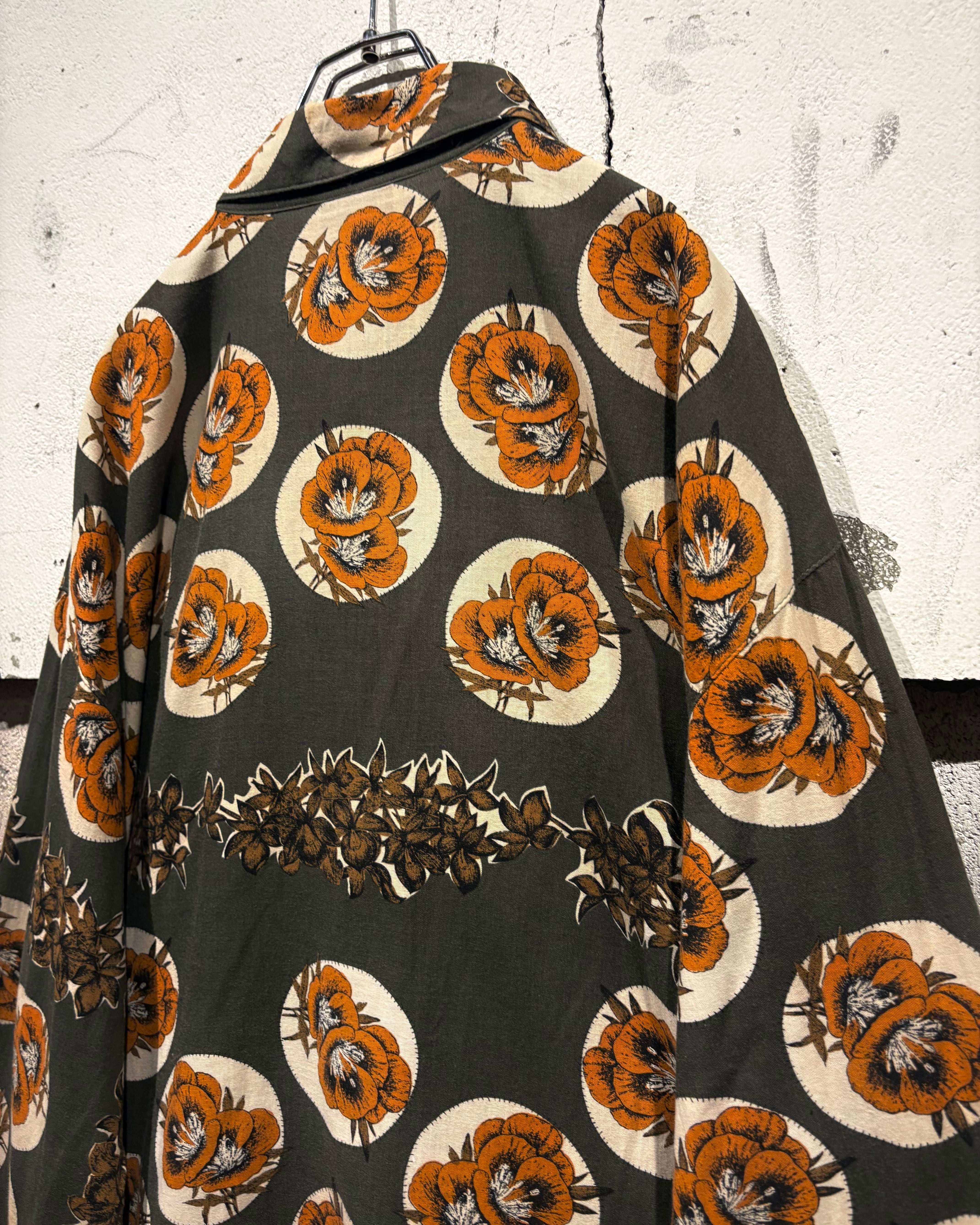 シルエットはゆったりとしたリラックスフィット。ワイドスラックスでモードに寄せるも良し、デニムやフレアパンツで70'sライクに振るも良し。ジャケットのインナーとして柄を覗かせるスタイリングもオススメ。