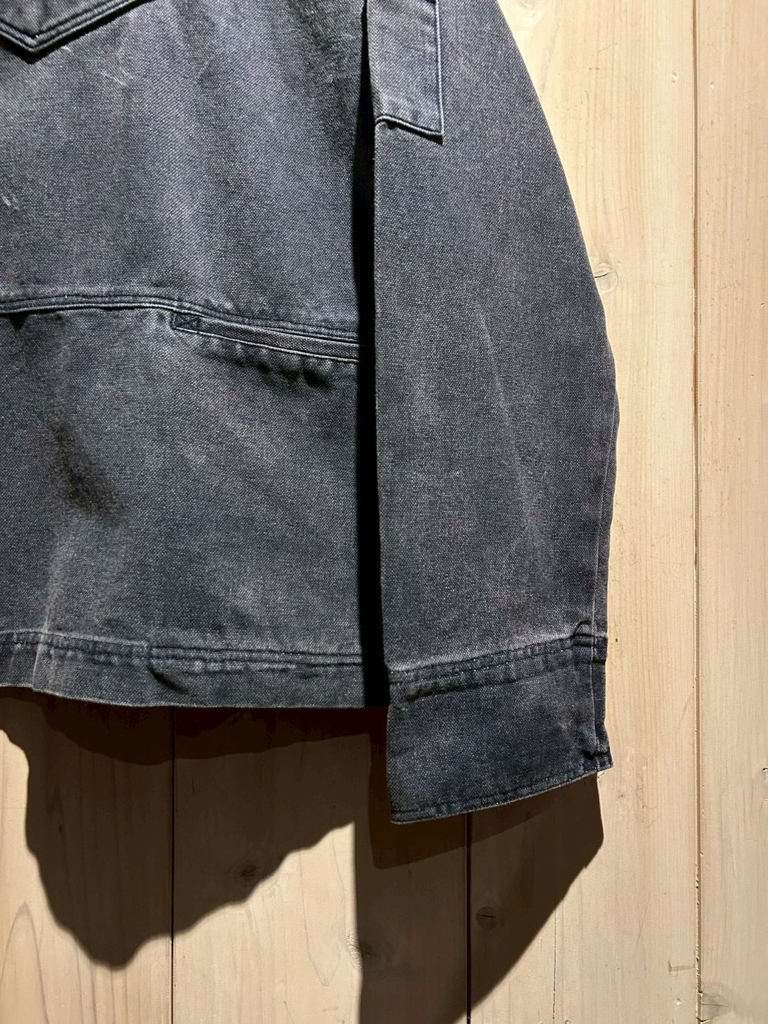素材のタフさ、ディテールの個性、そしてフェードが生み出す退廃的な雰囲気を纏った、ダック地スモックの逸品です。