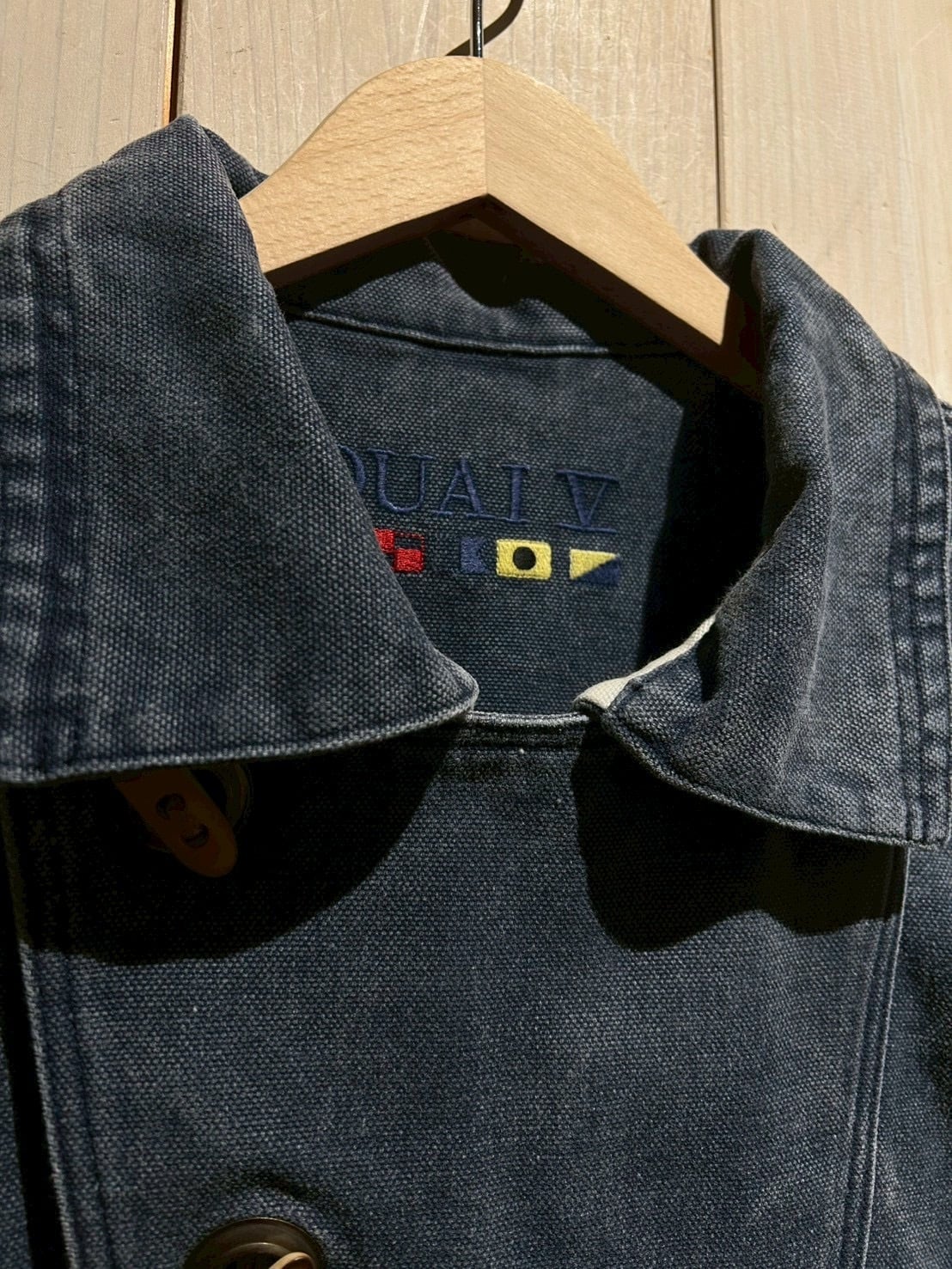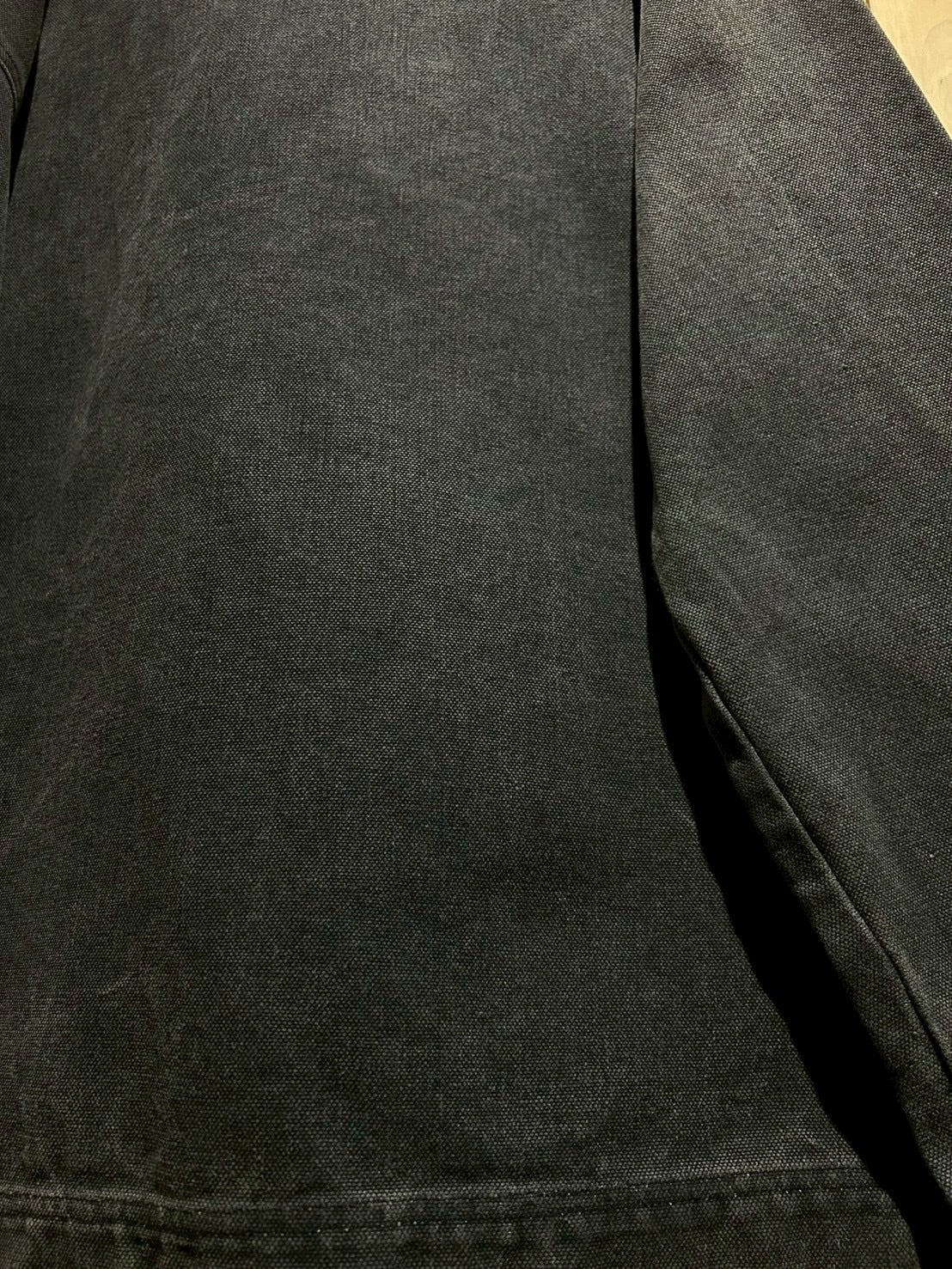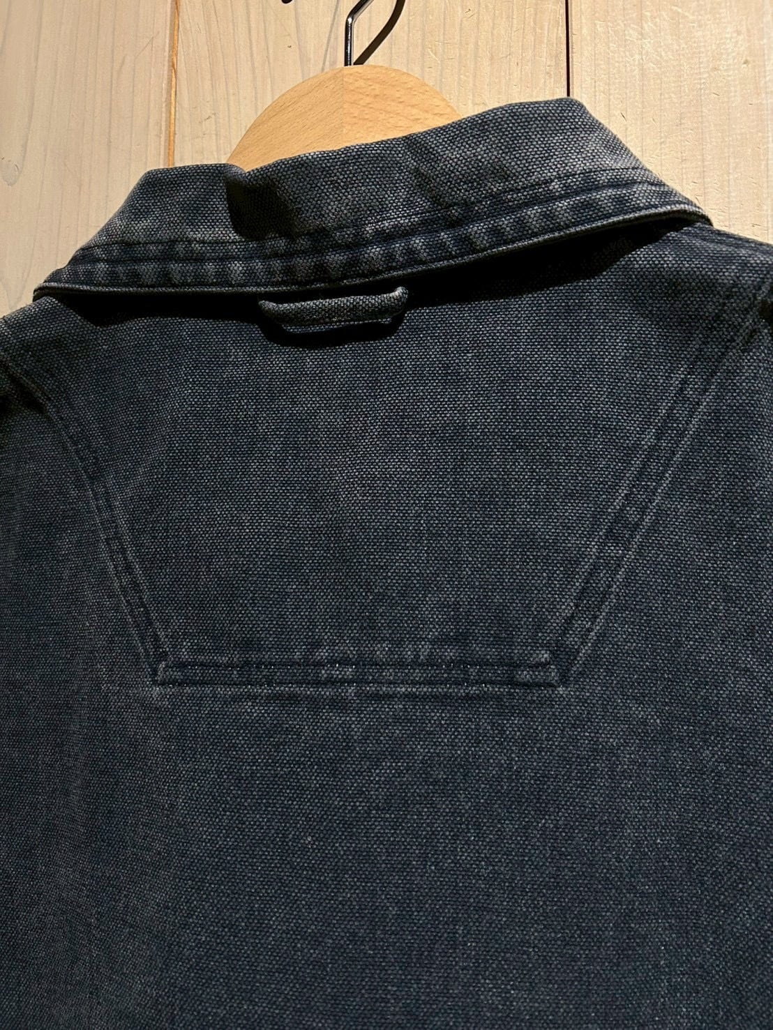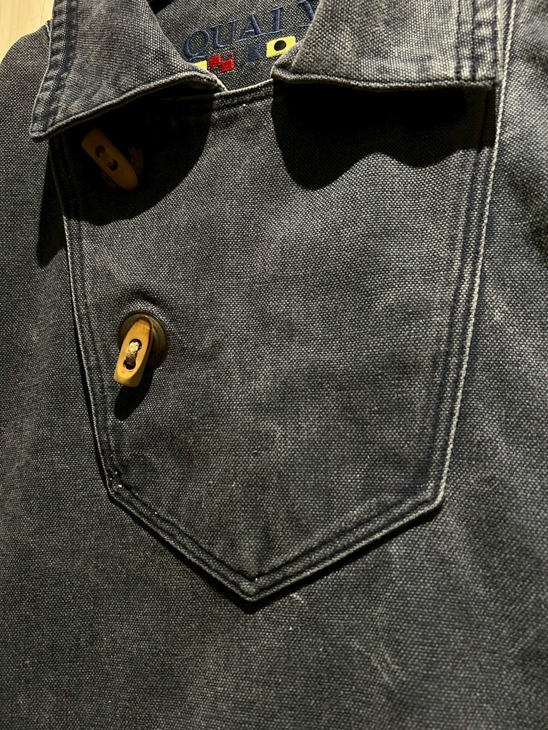 しっかりと打ち込まれた100%コットンのダックファブリックを採用し、肉厚でタフ、着込むほどにフェードしていく風合いが魅力。スモーキーなネイビーの色味が経年変化によるアタリと相まって、既に抜群の雰囲気を醸し出しています。