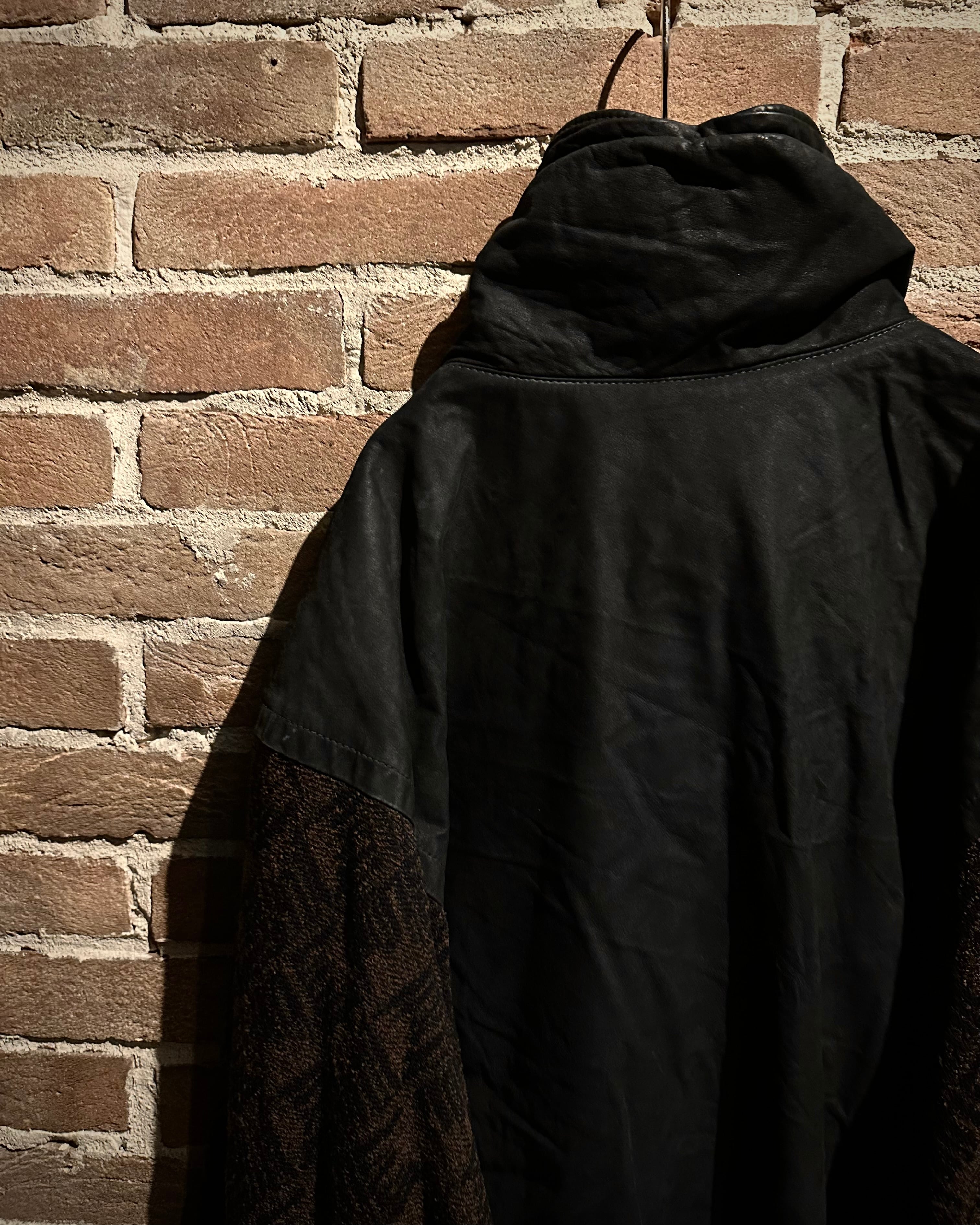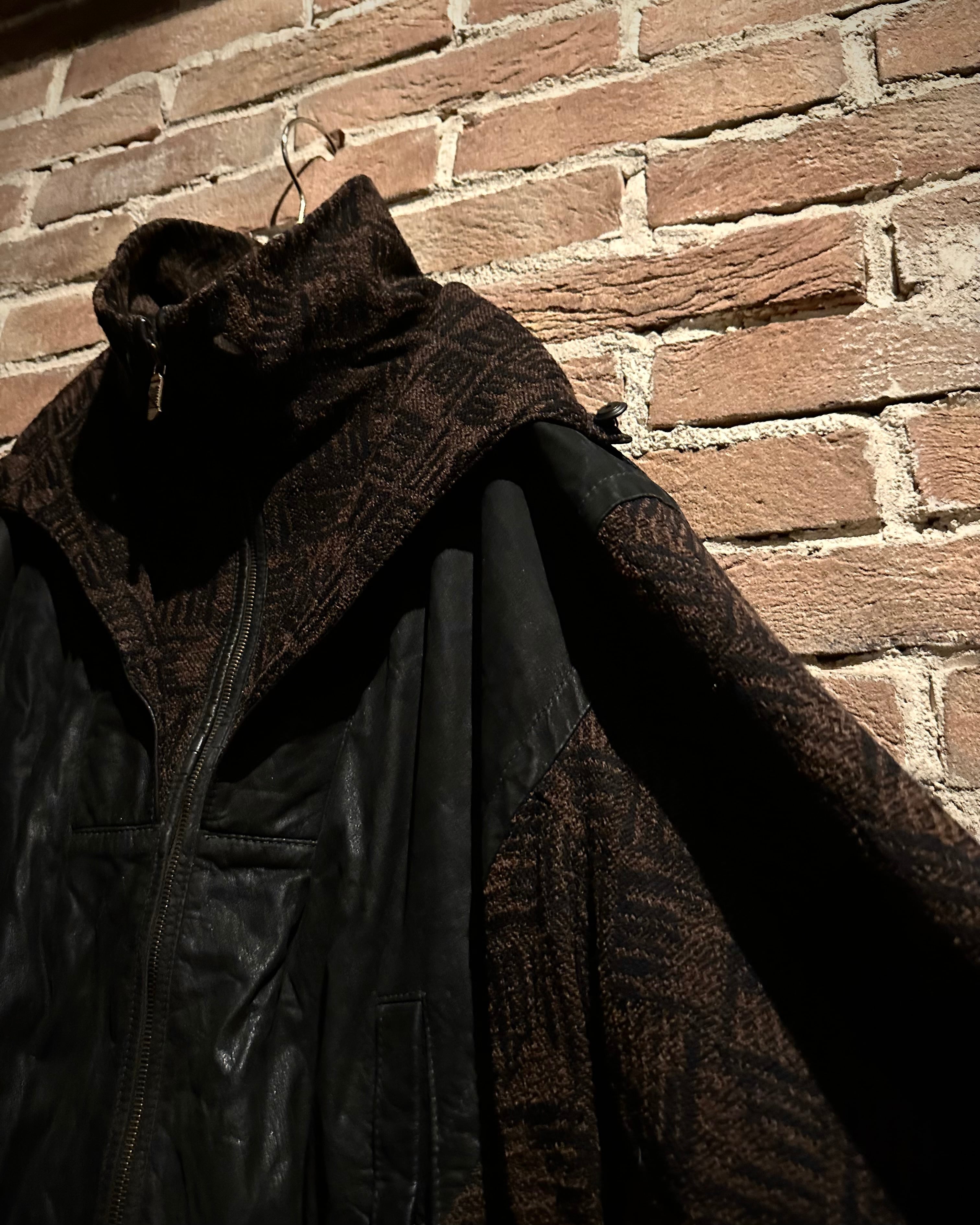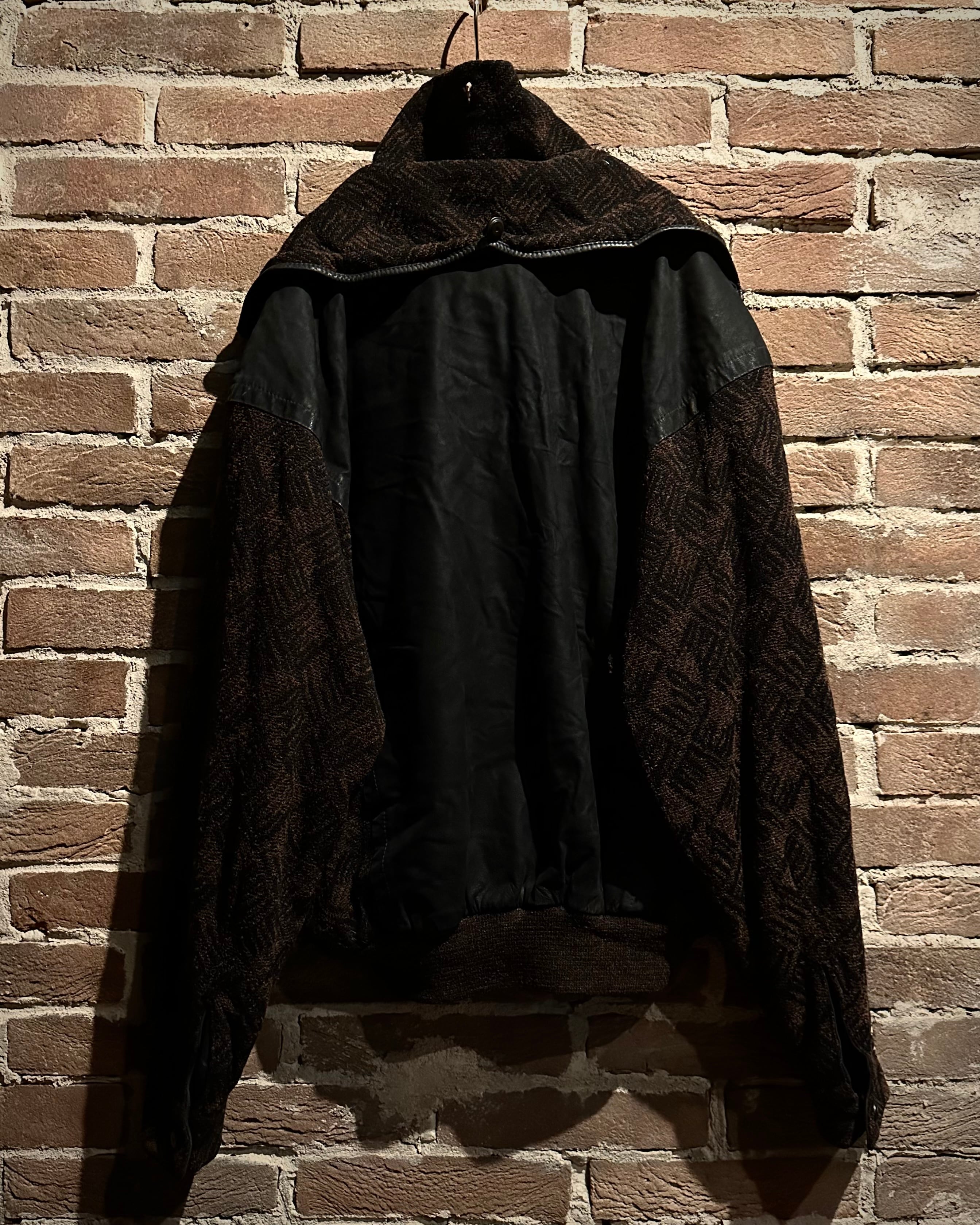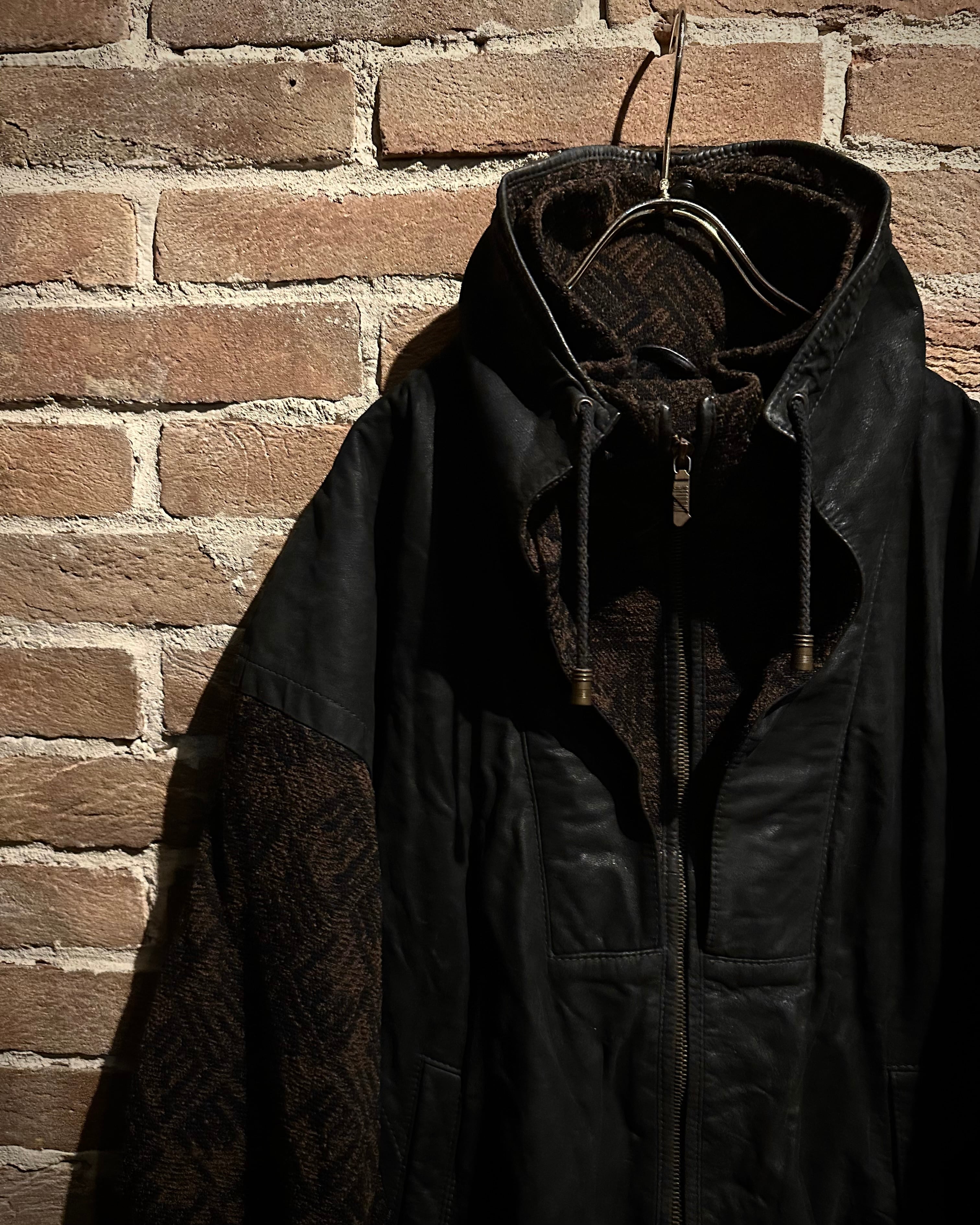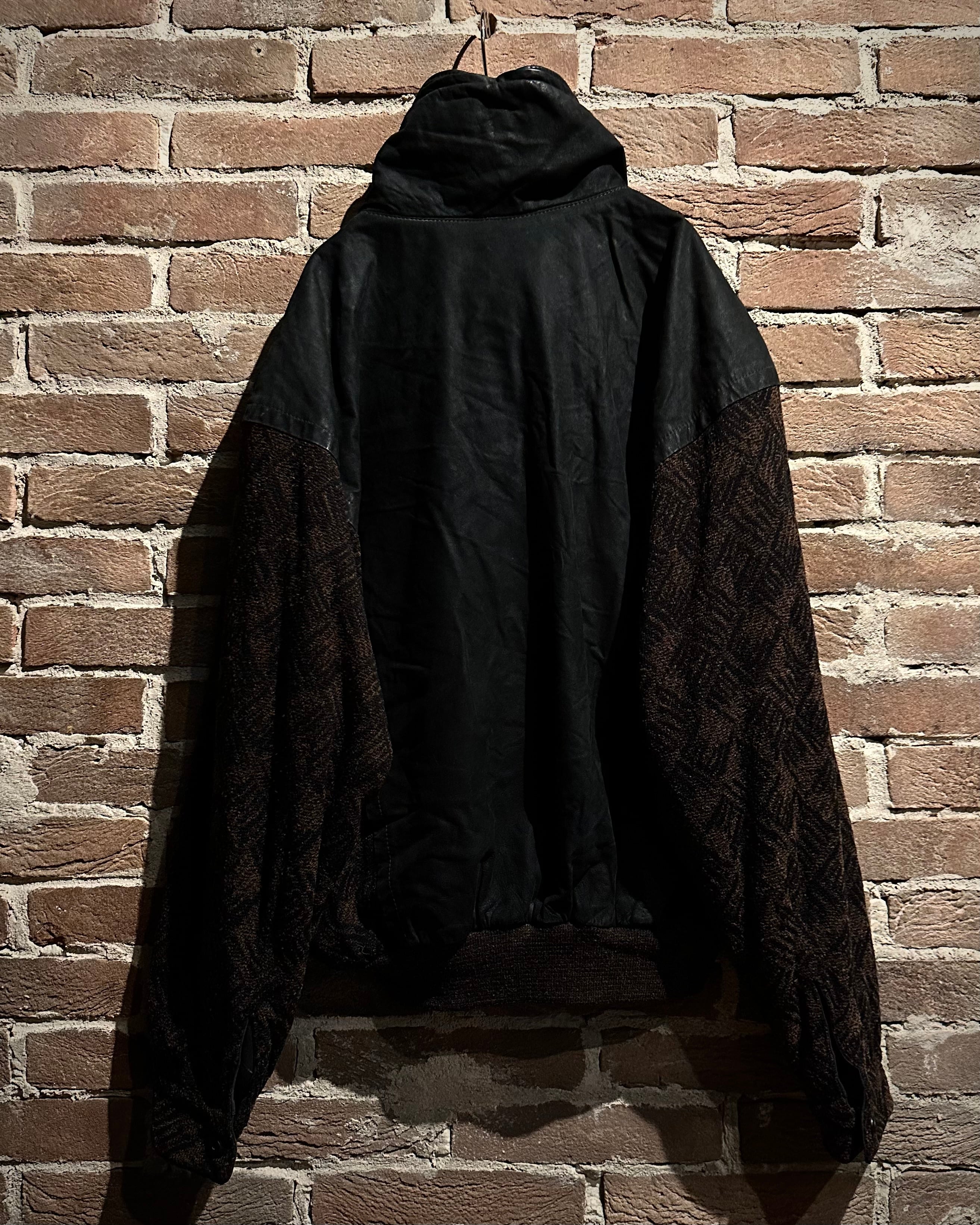 ニット×レザーの異素材を巧みに掛け合わせた、存在感抜群の80's ユーロヴィンテージのジャケット。