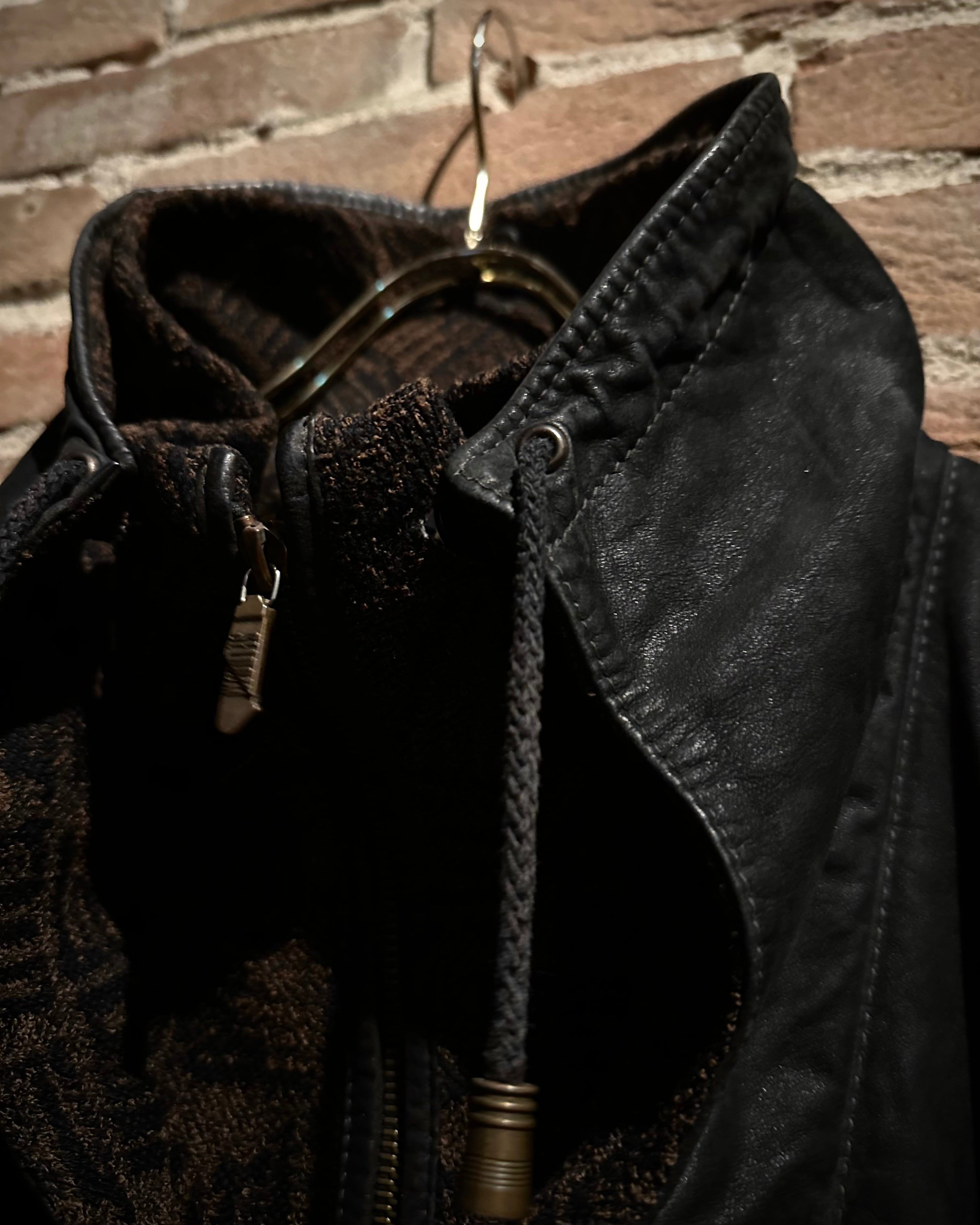 ニットの柔軟性とレザーの防風性を兼ね備え、保温性も十分。春秋冬のメインアウターとして活躍します。