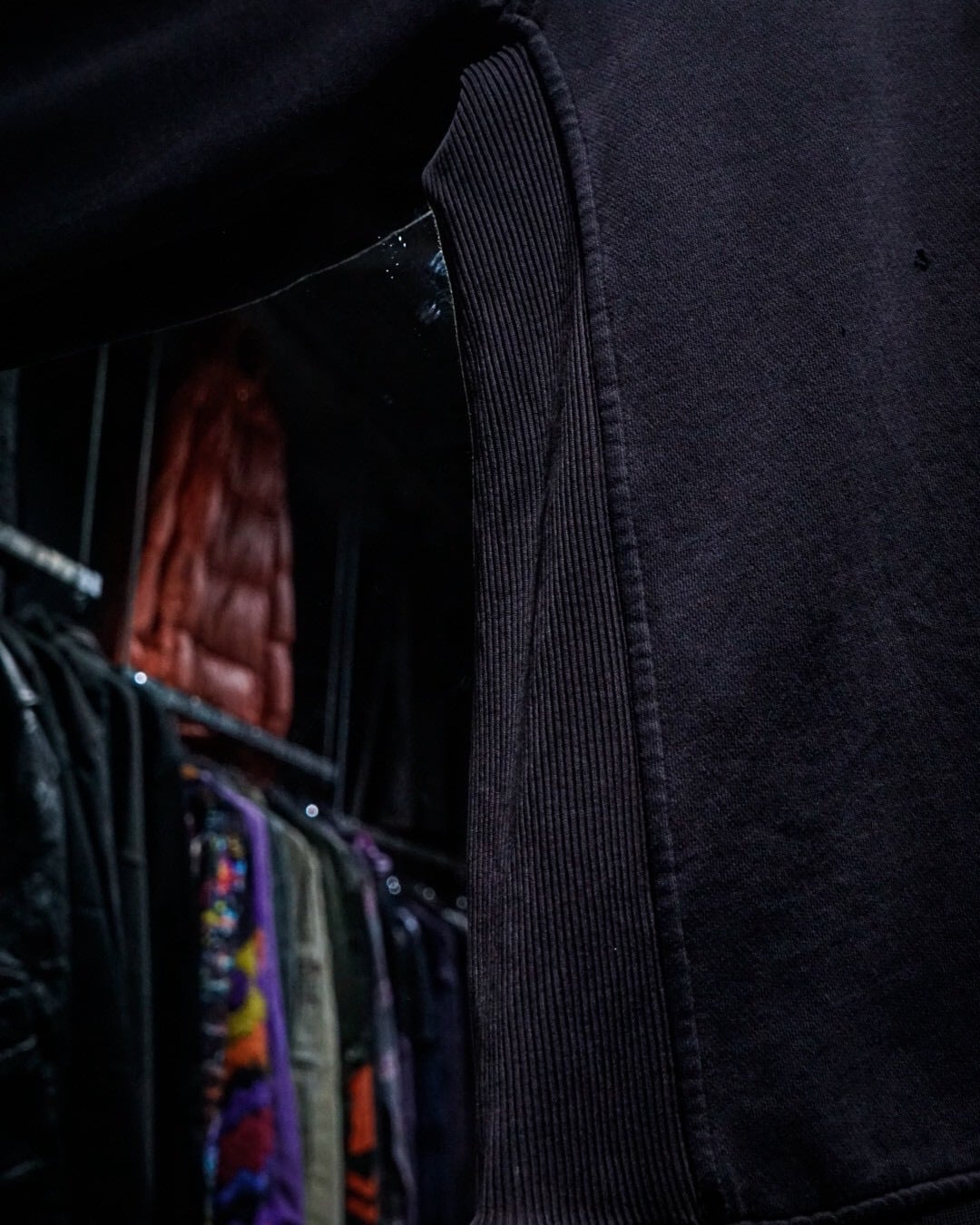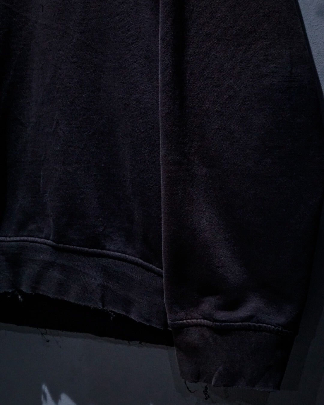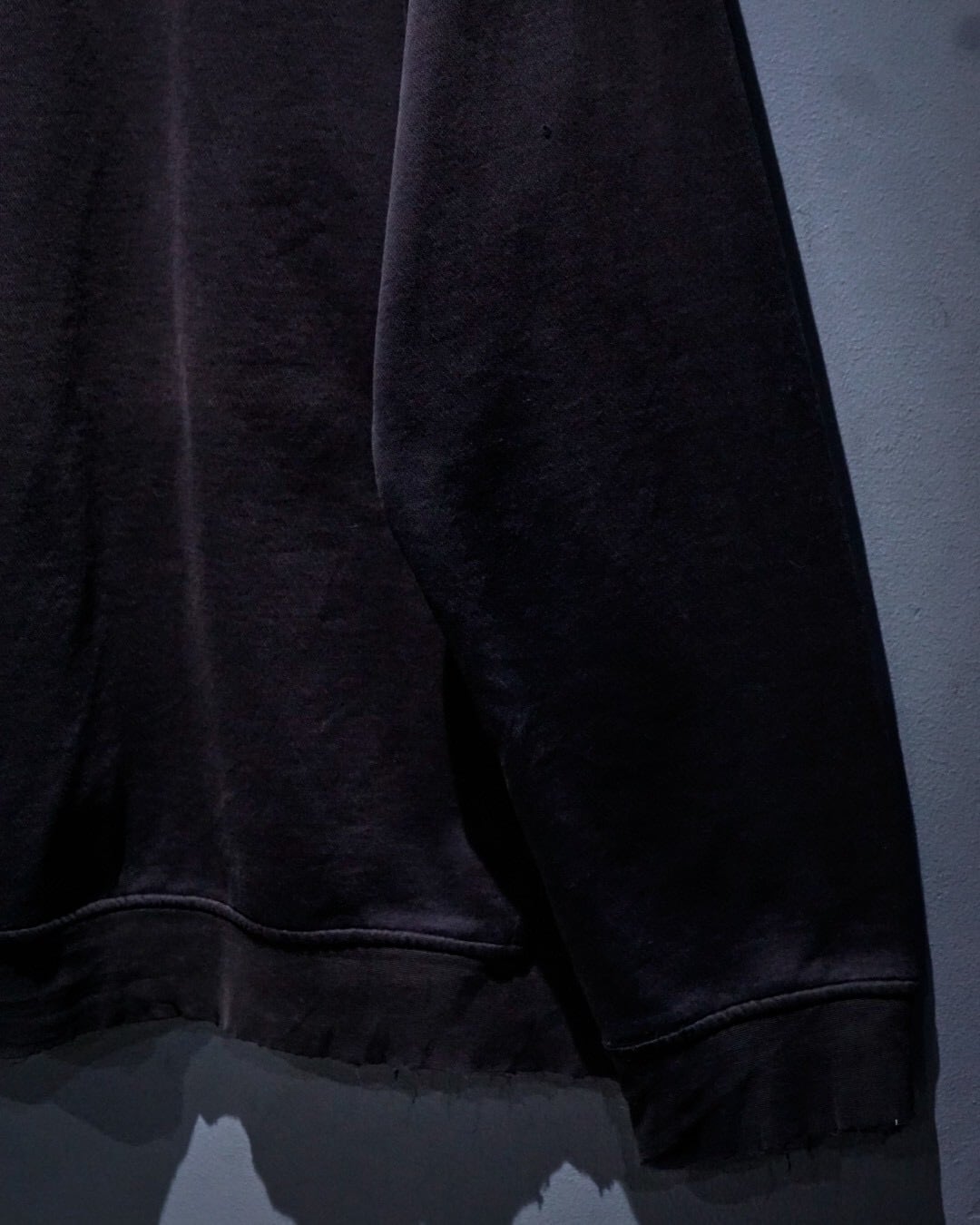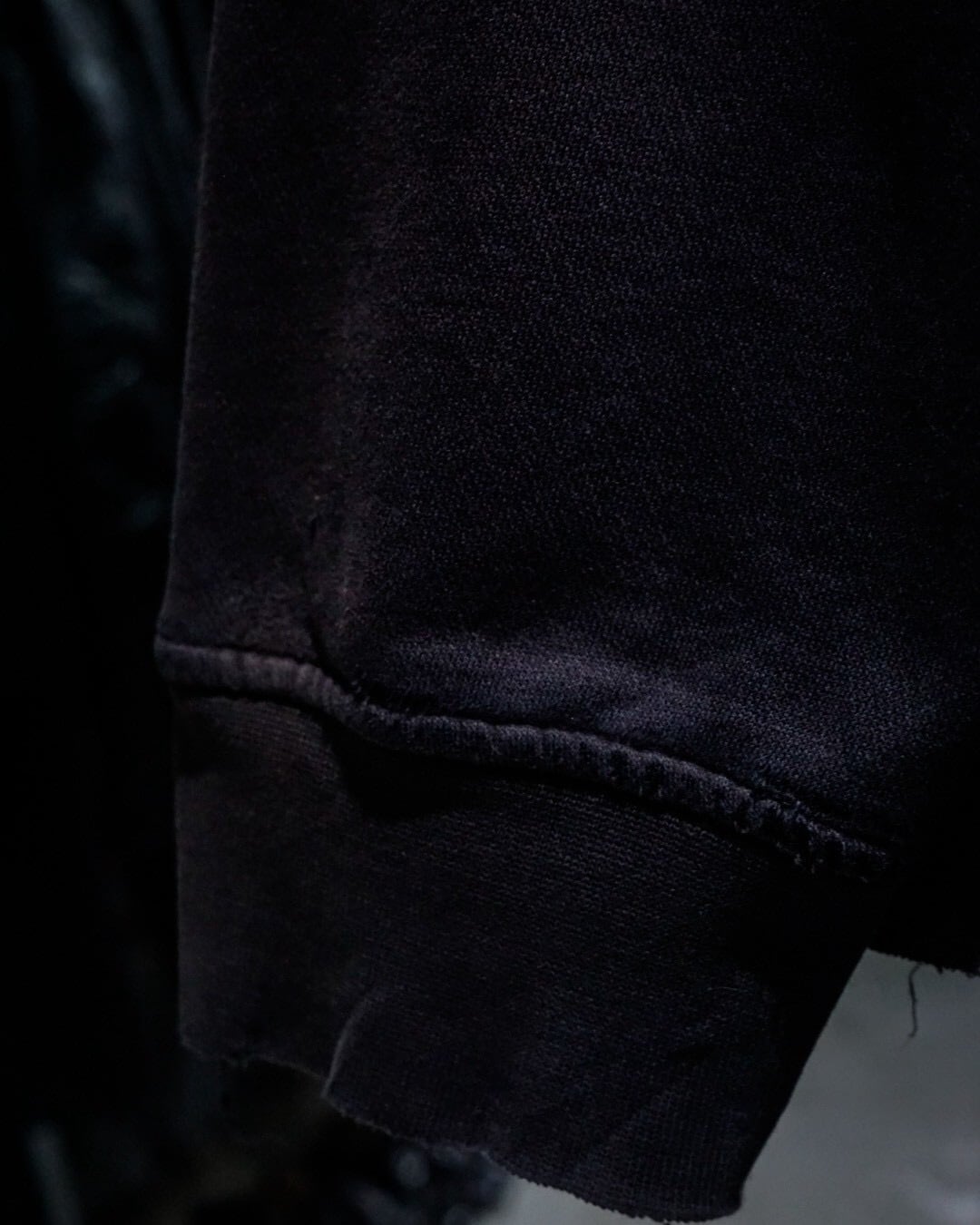 肉厚なスウェット地は、着込まれることで落ち感のある絶妙な質感に。リブのテンションや各所のアタリも相まって、ヴィンテージならではの重厚な空気を纏っています。