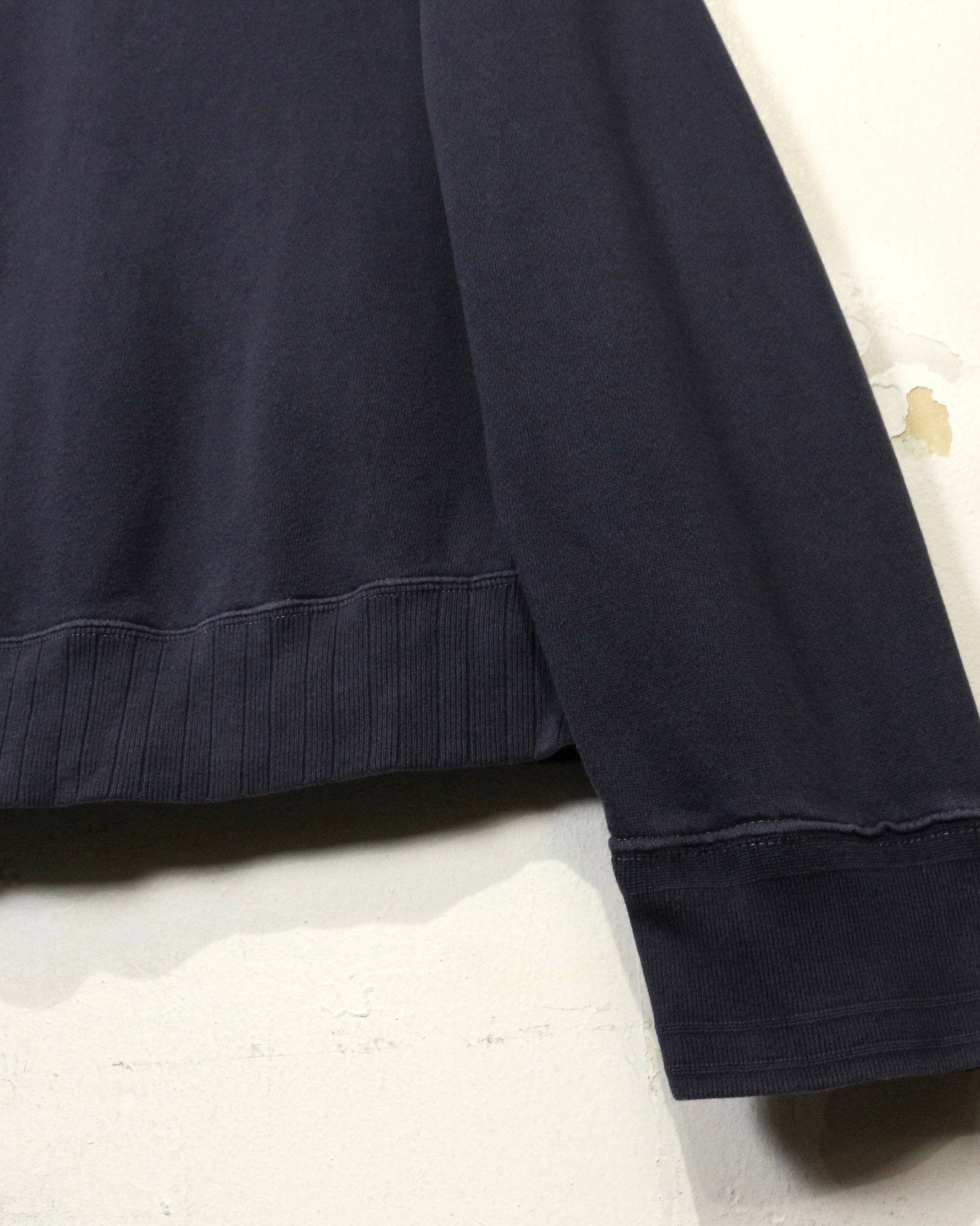 程よい肉感のコットンスウェット素材で、柔らかさと安心感のある着心地。スウェット特有のラフさでデイリーに落とし込め、春先は一枚で、秋冬はインナー使いとして是非。