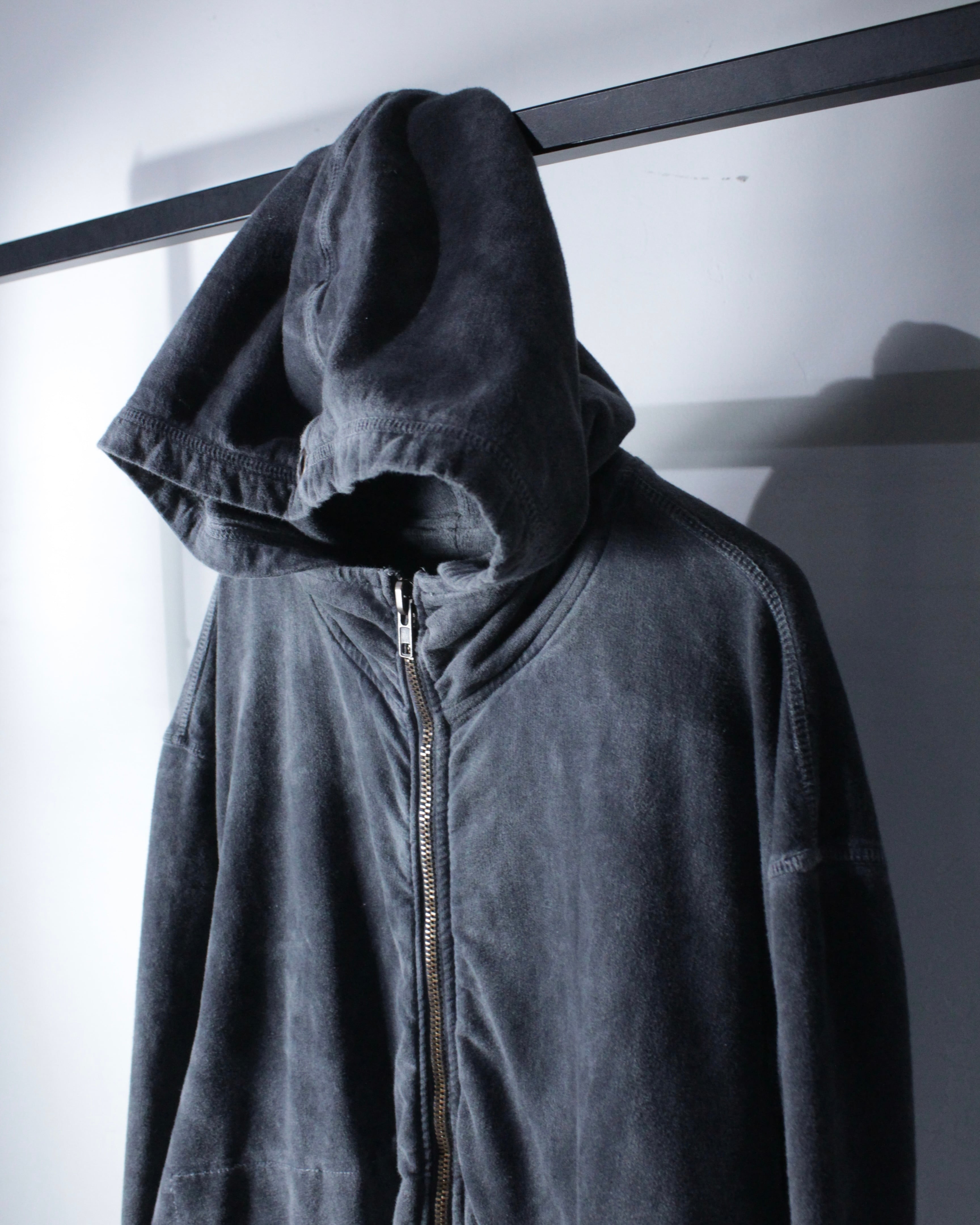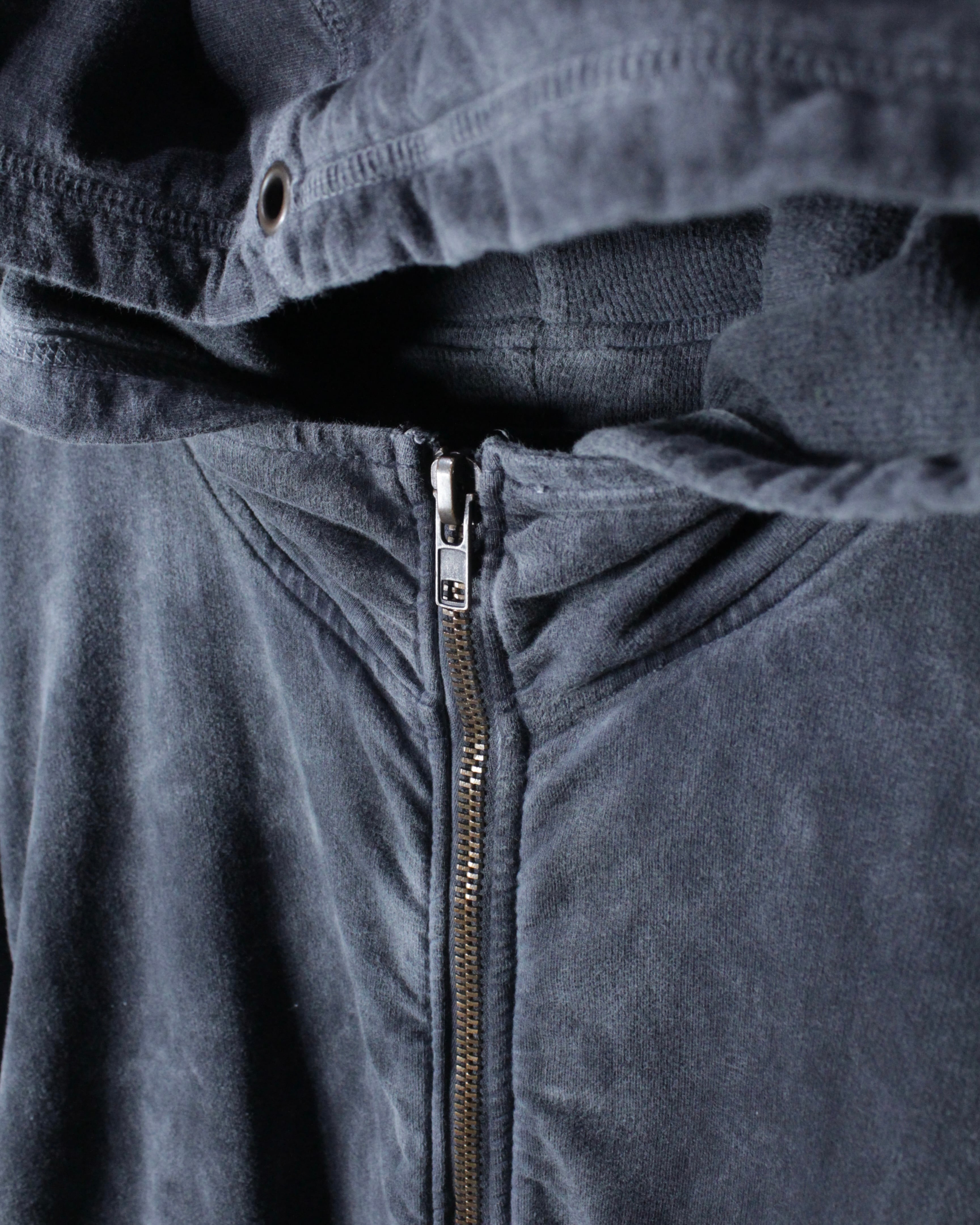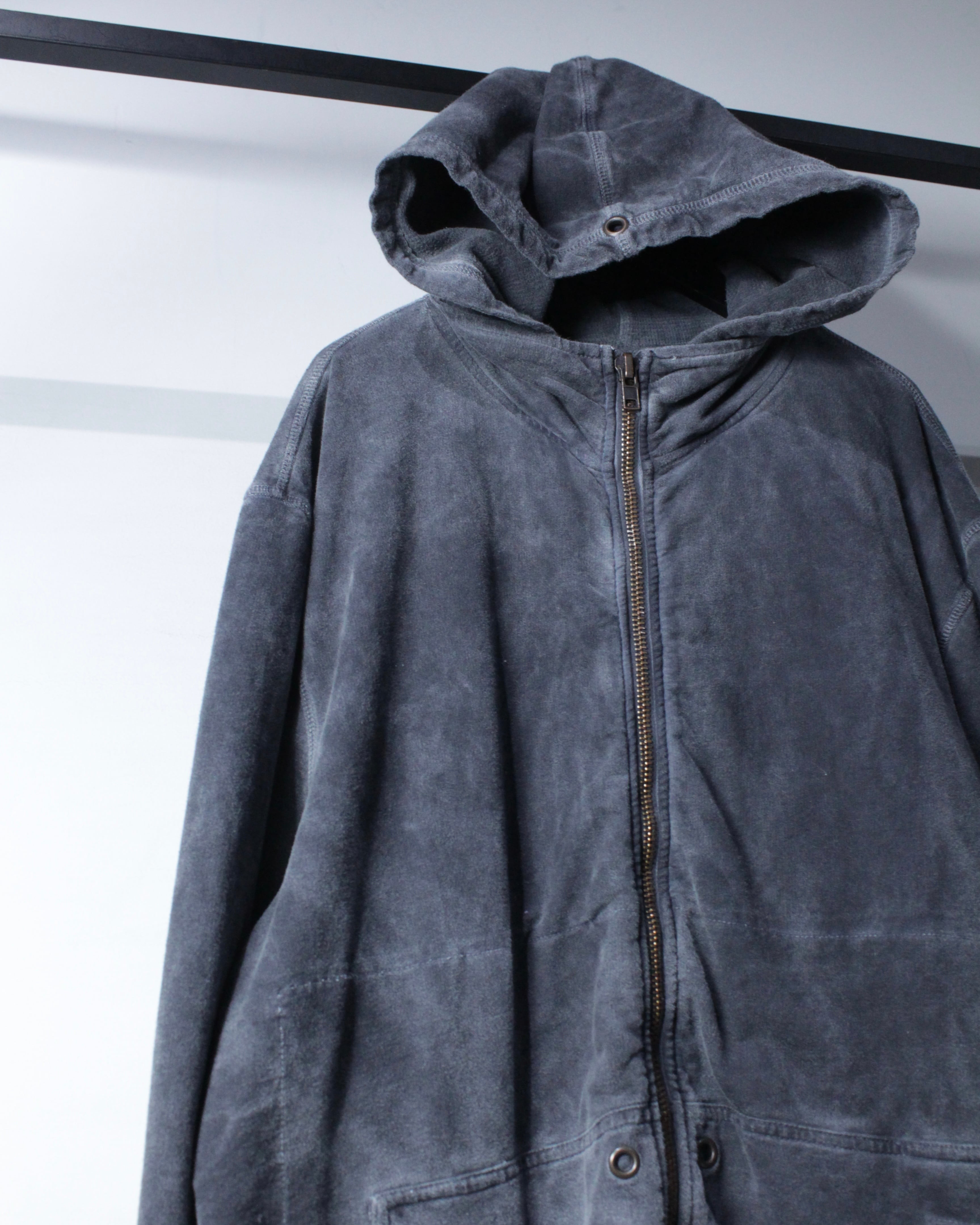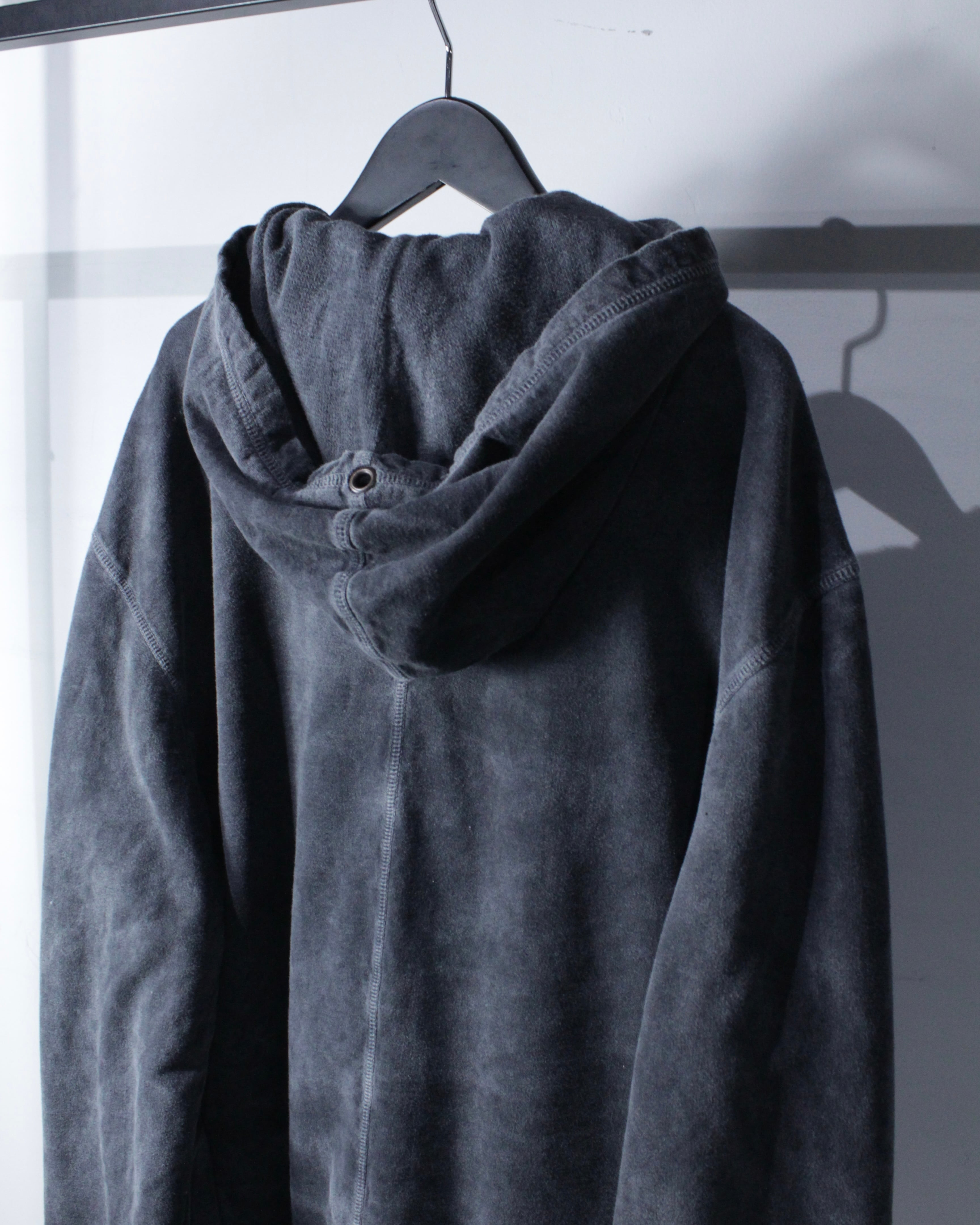 余計な装飾を削ぎ落とし、フェードという経年変化そのものをデザインとして成立させた一着。スタイリングのベースとしても主役としても活躍する、ジップアップフーディの逸品です。