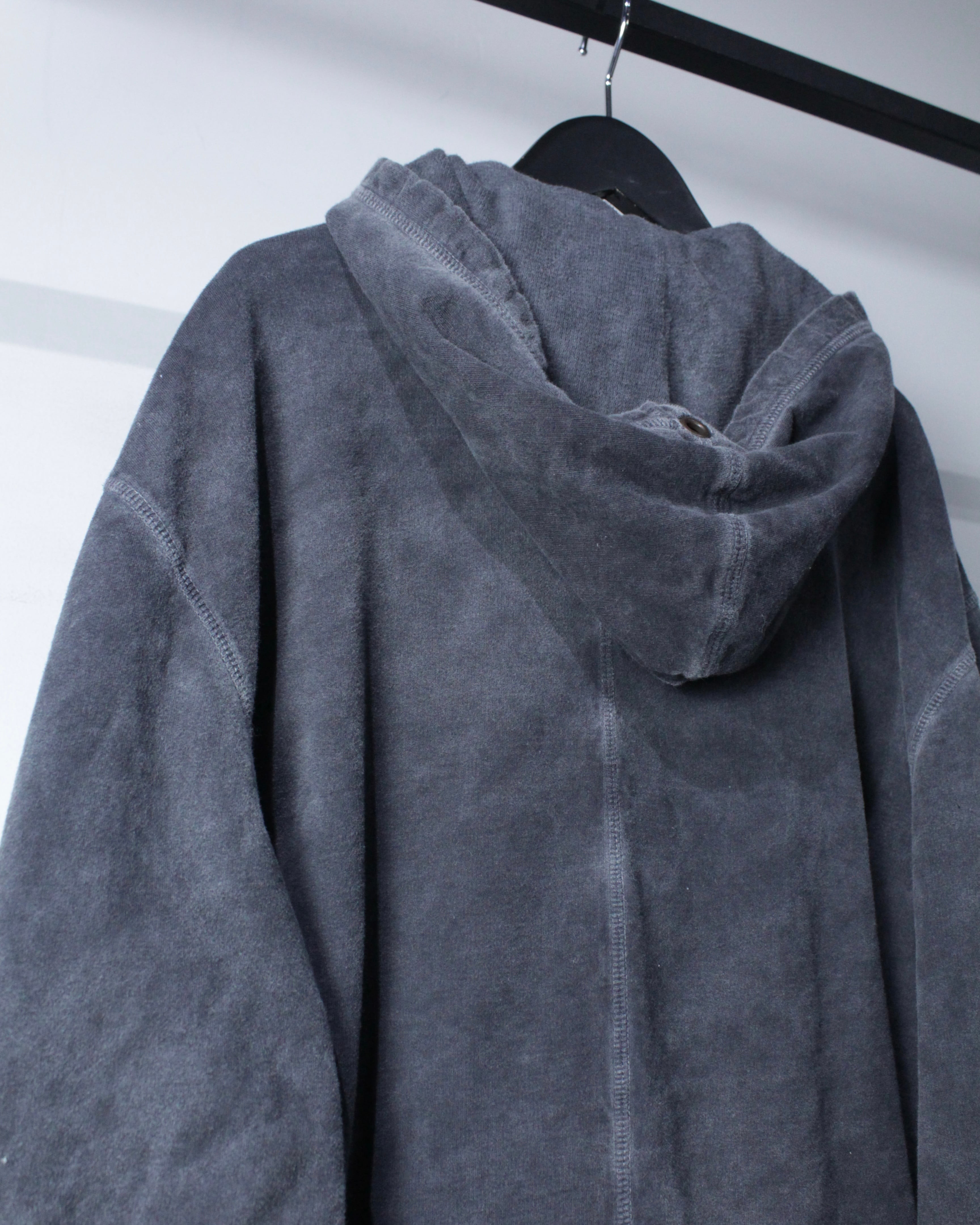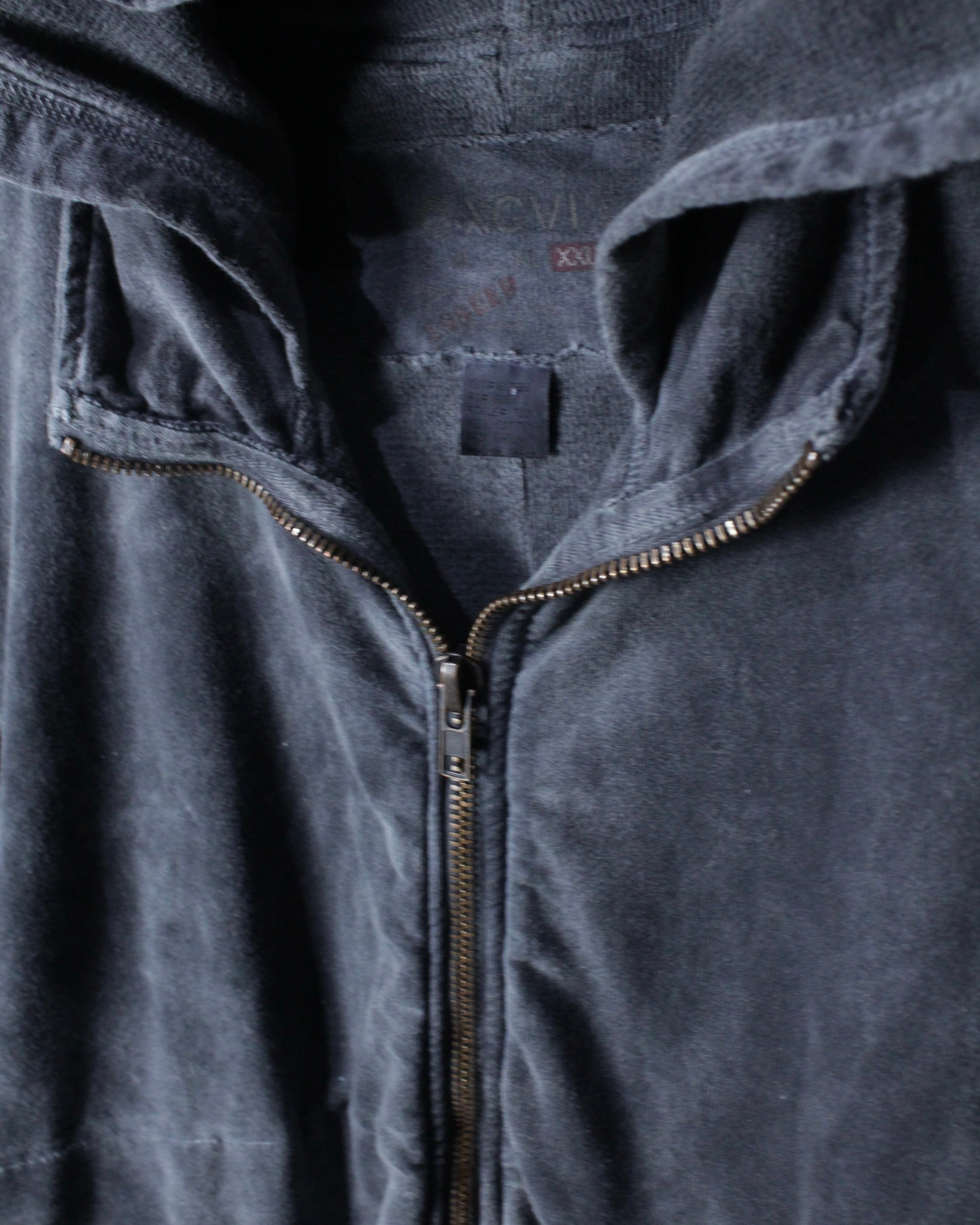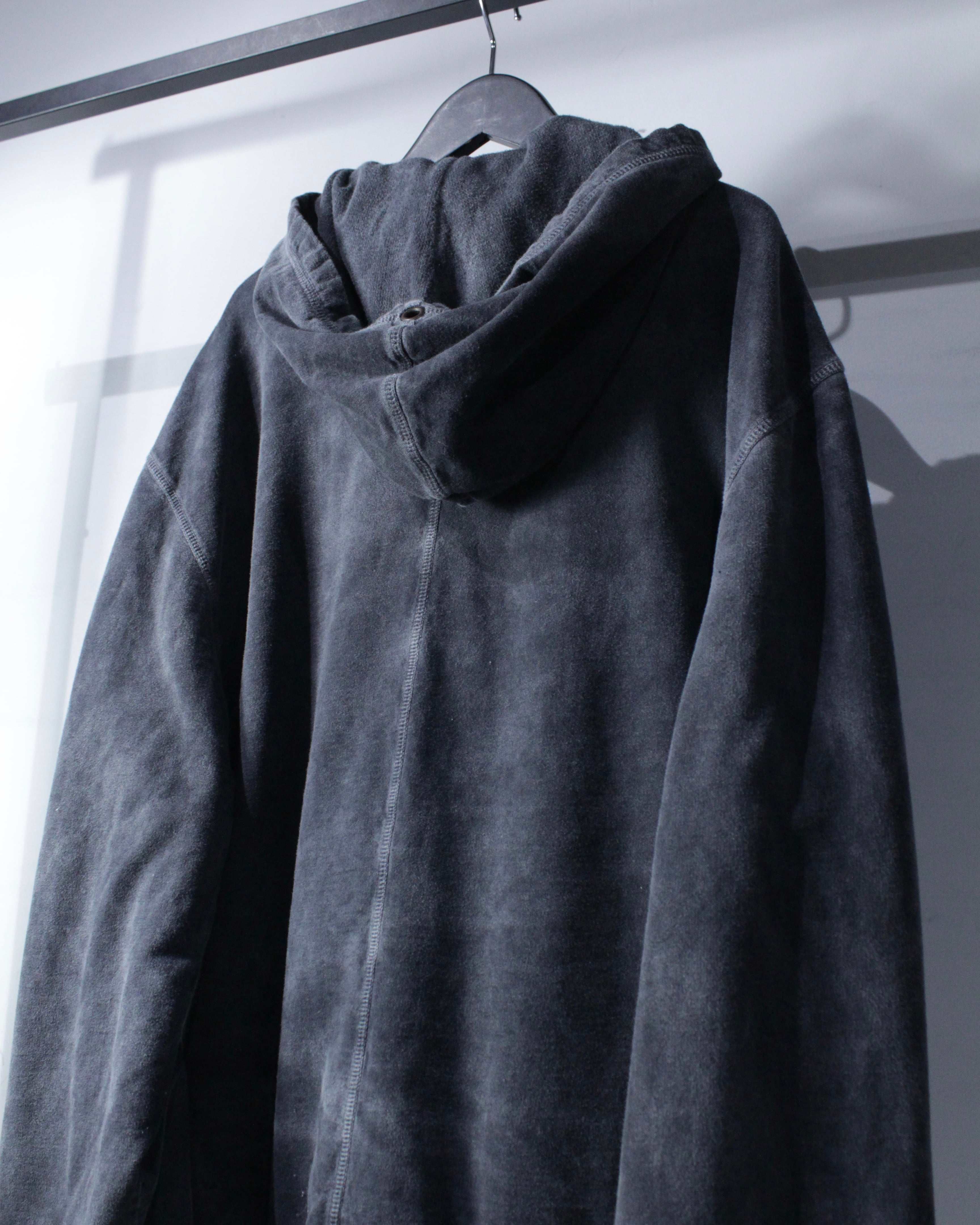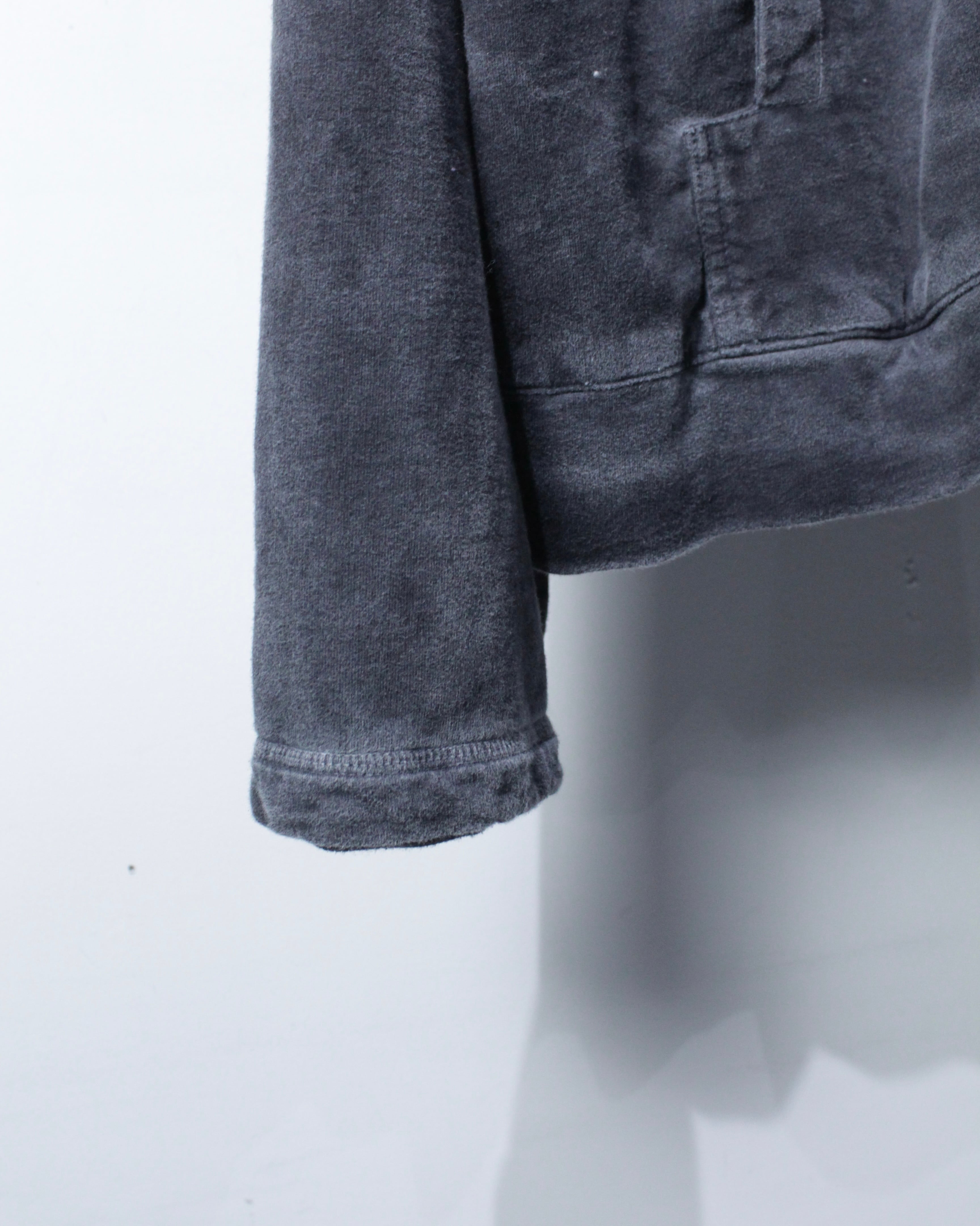 余計な装飾を削ぎ落とし、フェードという経年変化そのものをデザインとして成立させた一着。スタイリングのベースとしても主役としても活躍する、ジップアップフーディの逸品です。
