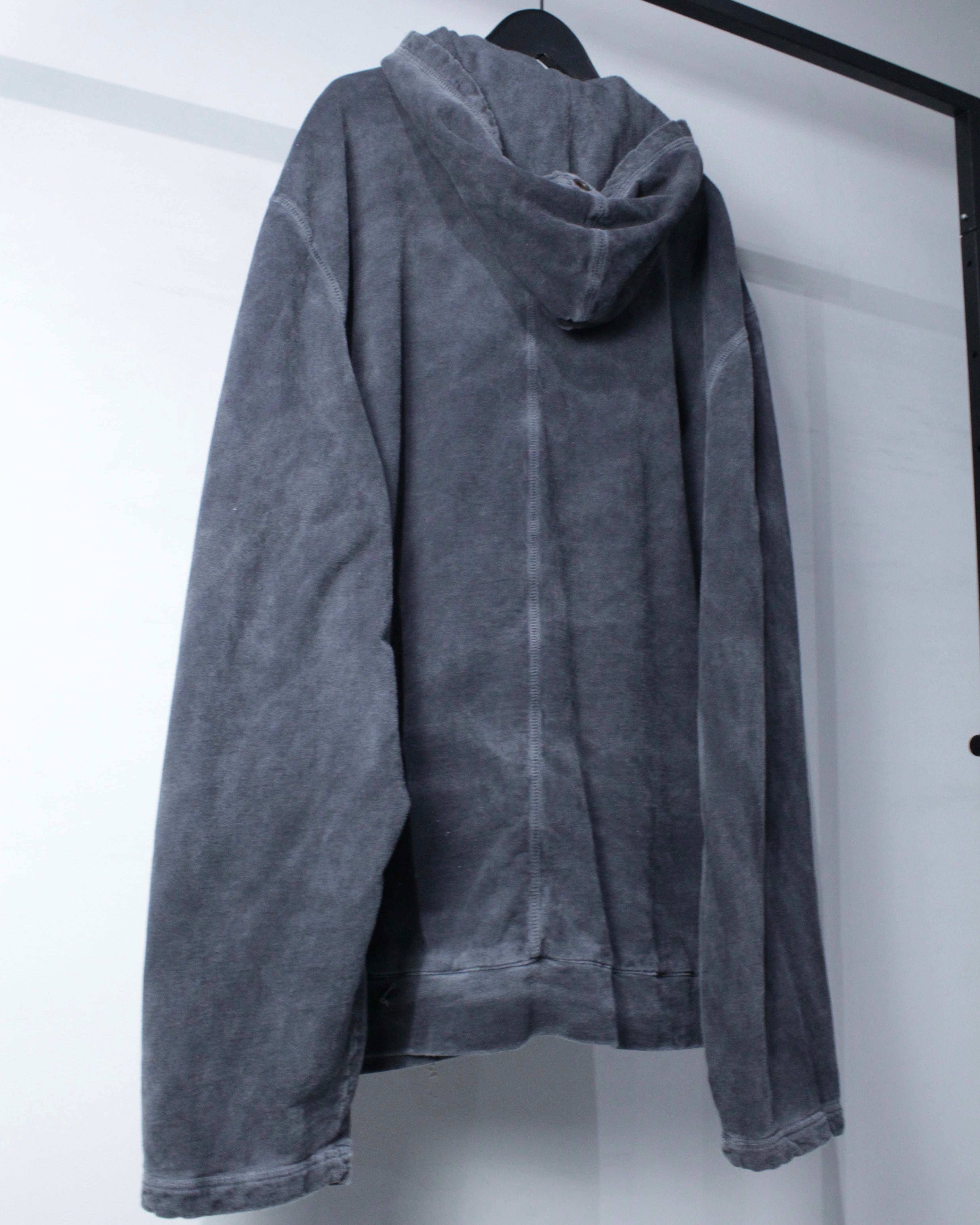 退廃的な空気感を纏った、フェードが美しいジップアップフーディをご紹介いたします。