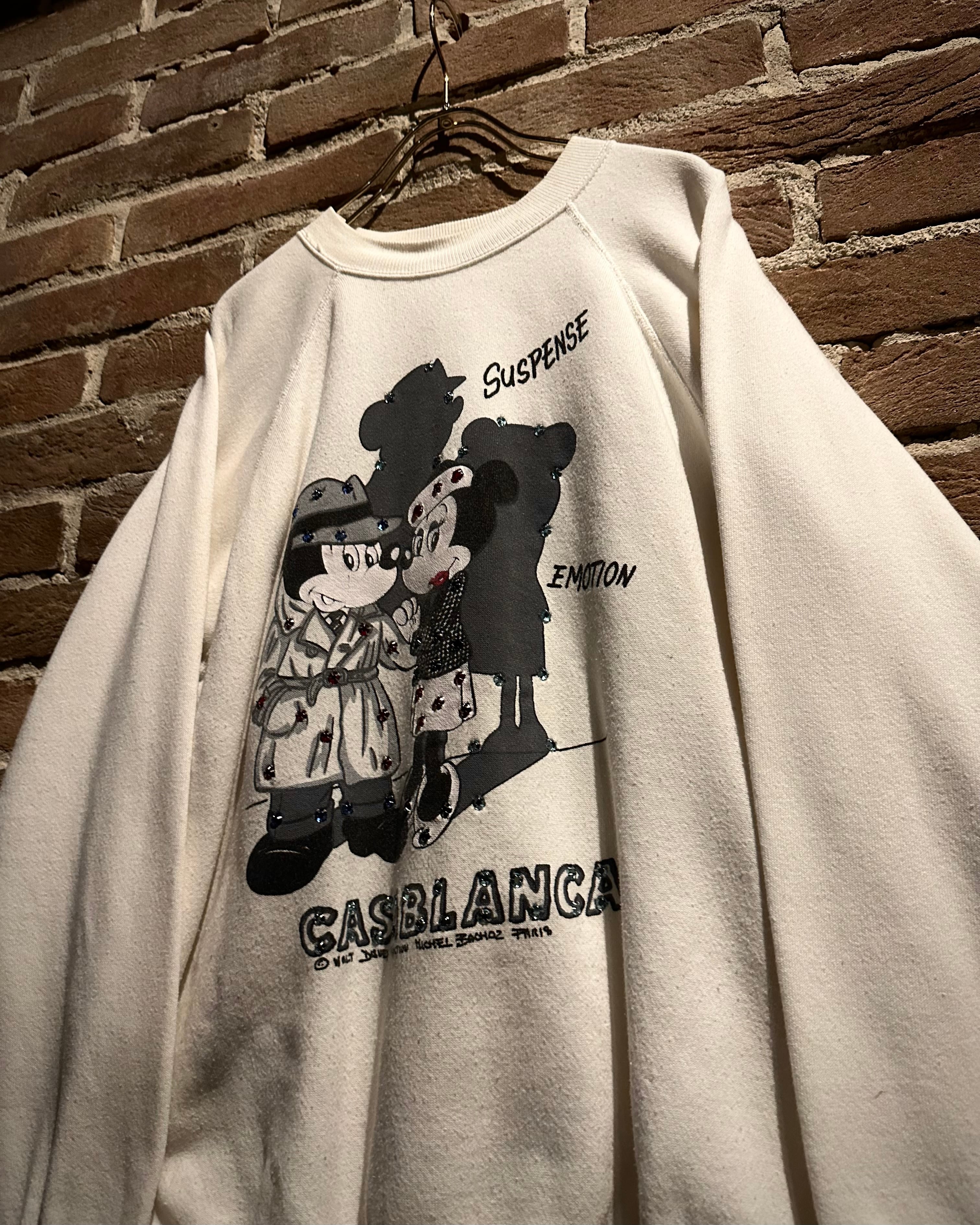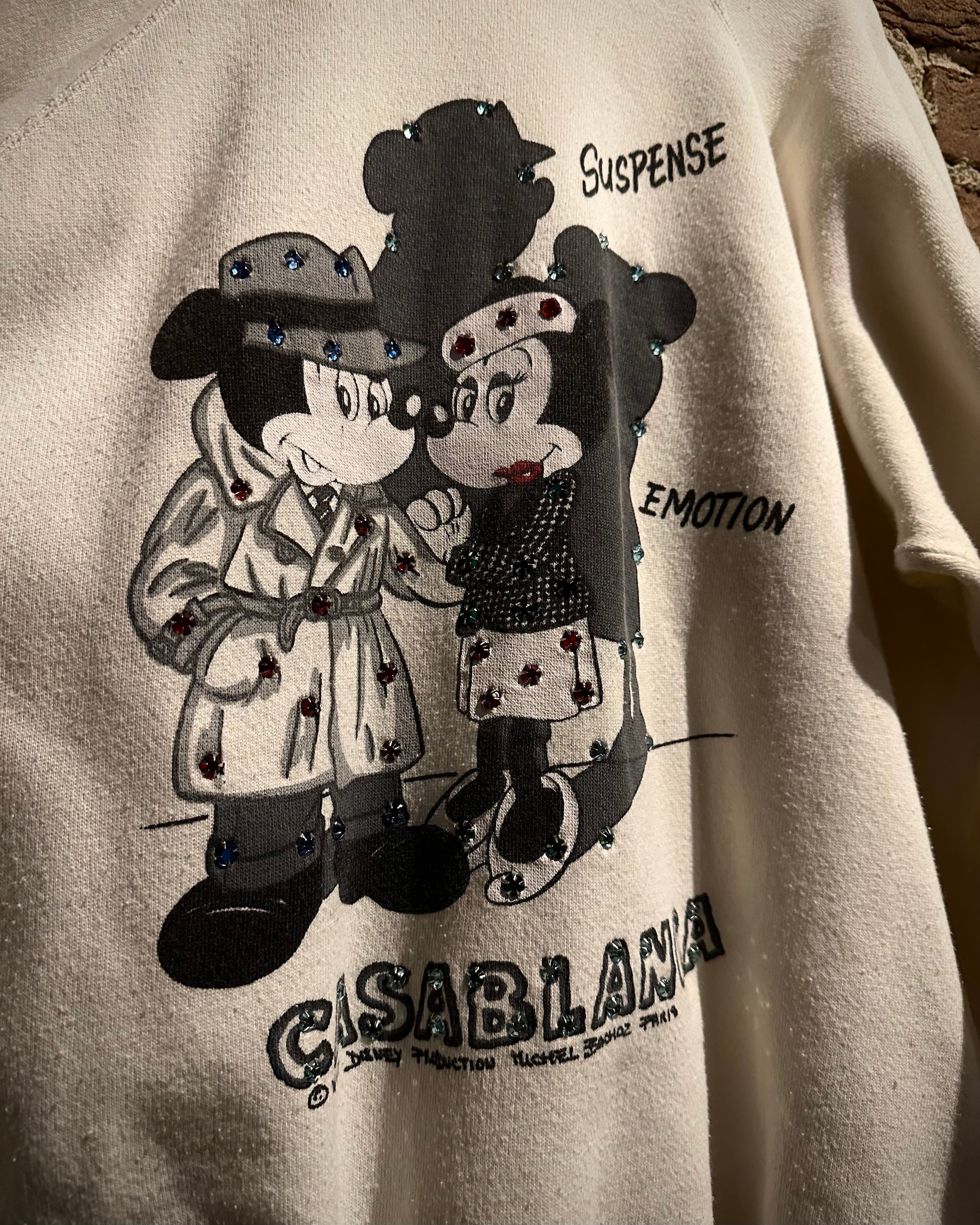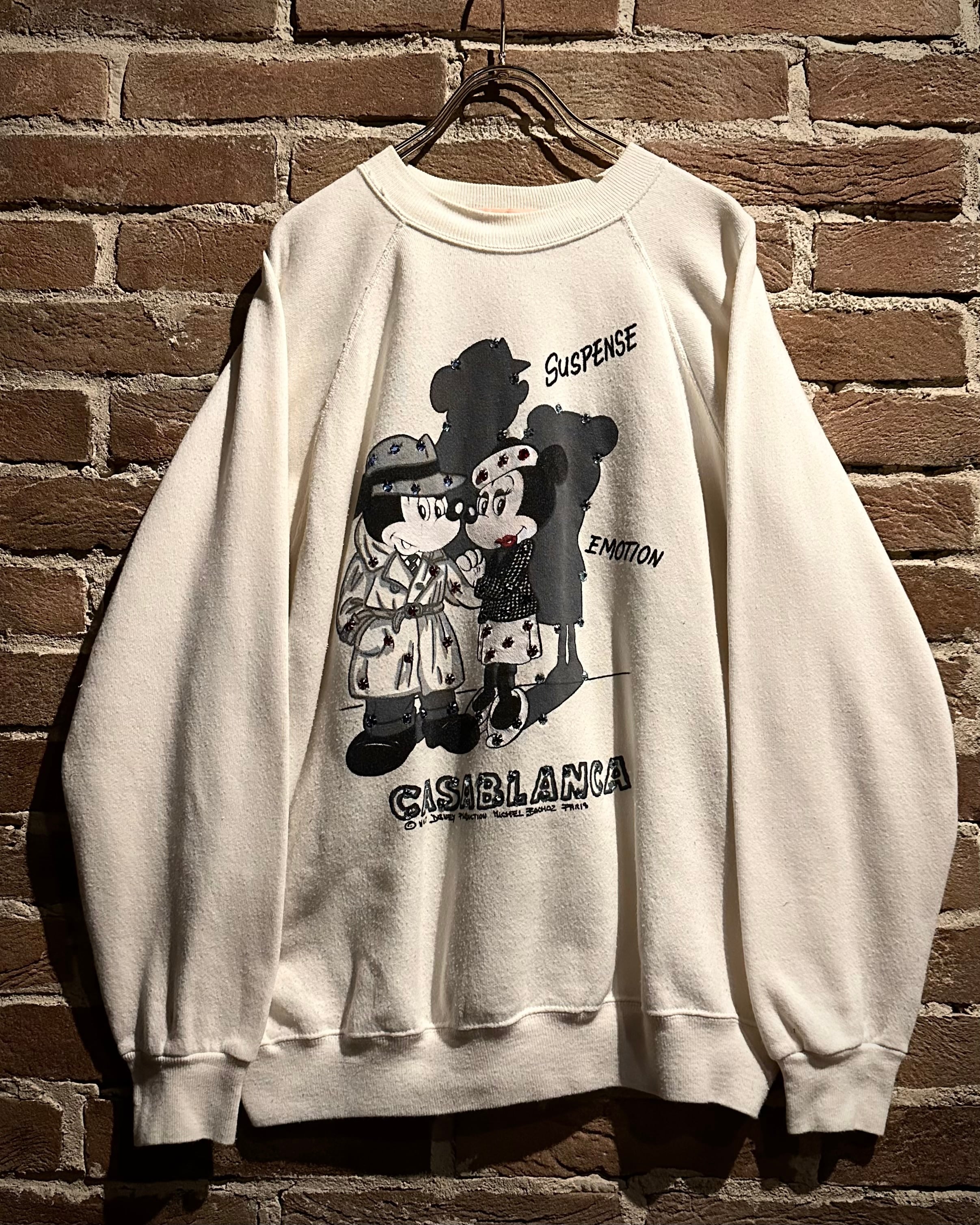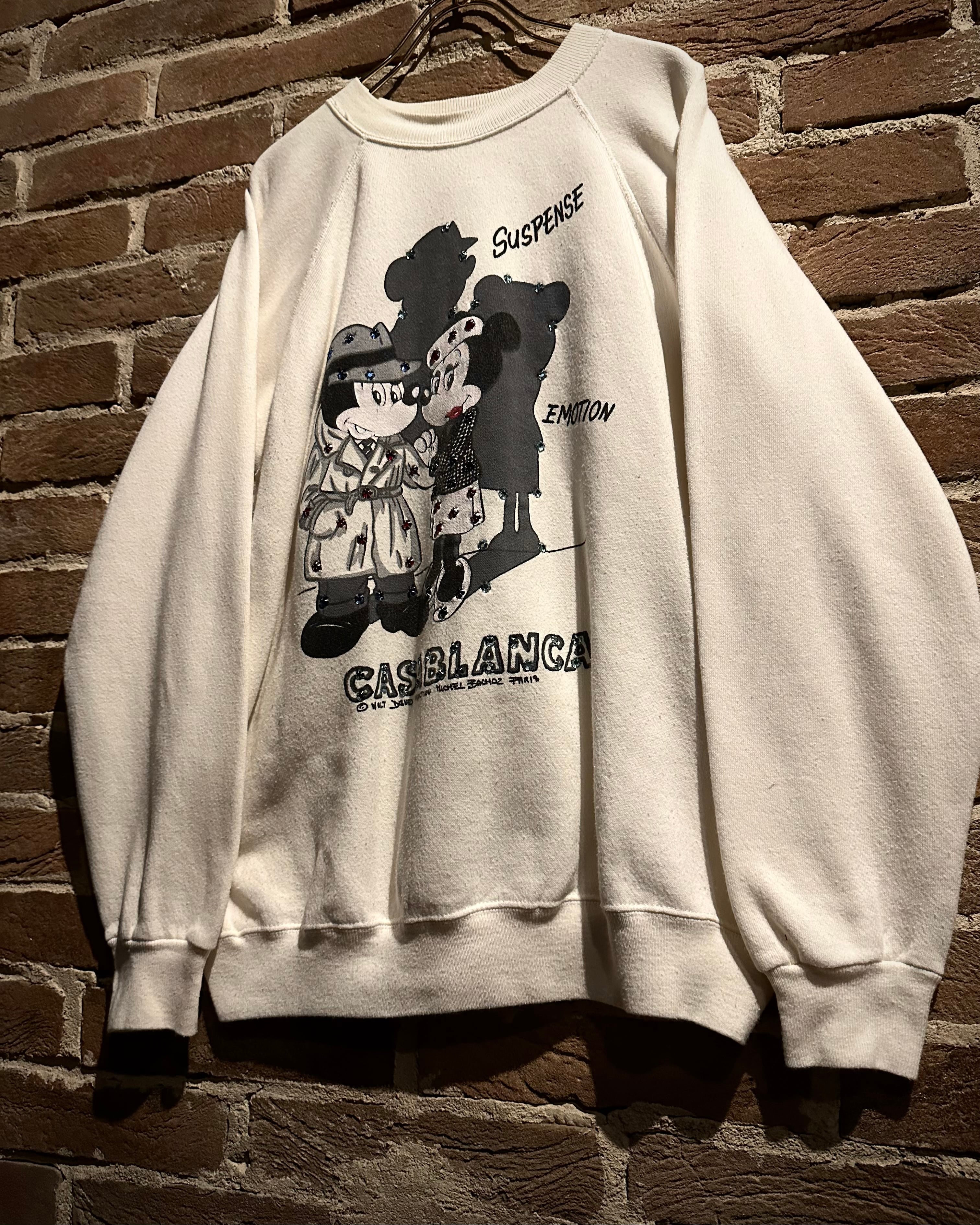 映画史に残る名作「CASABLANCA」をモチーフに、ディズニーの代表的なキャラクターであるミッキーとミニーで表現した80’sヴィンテージスウェット。