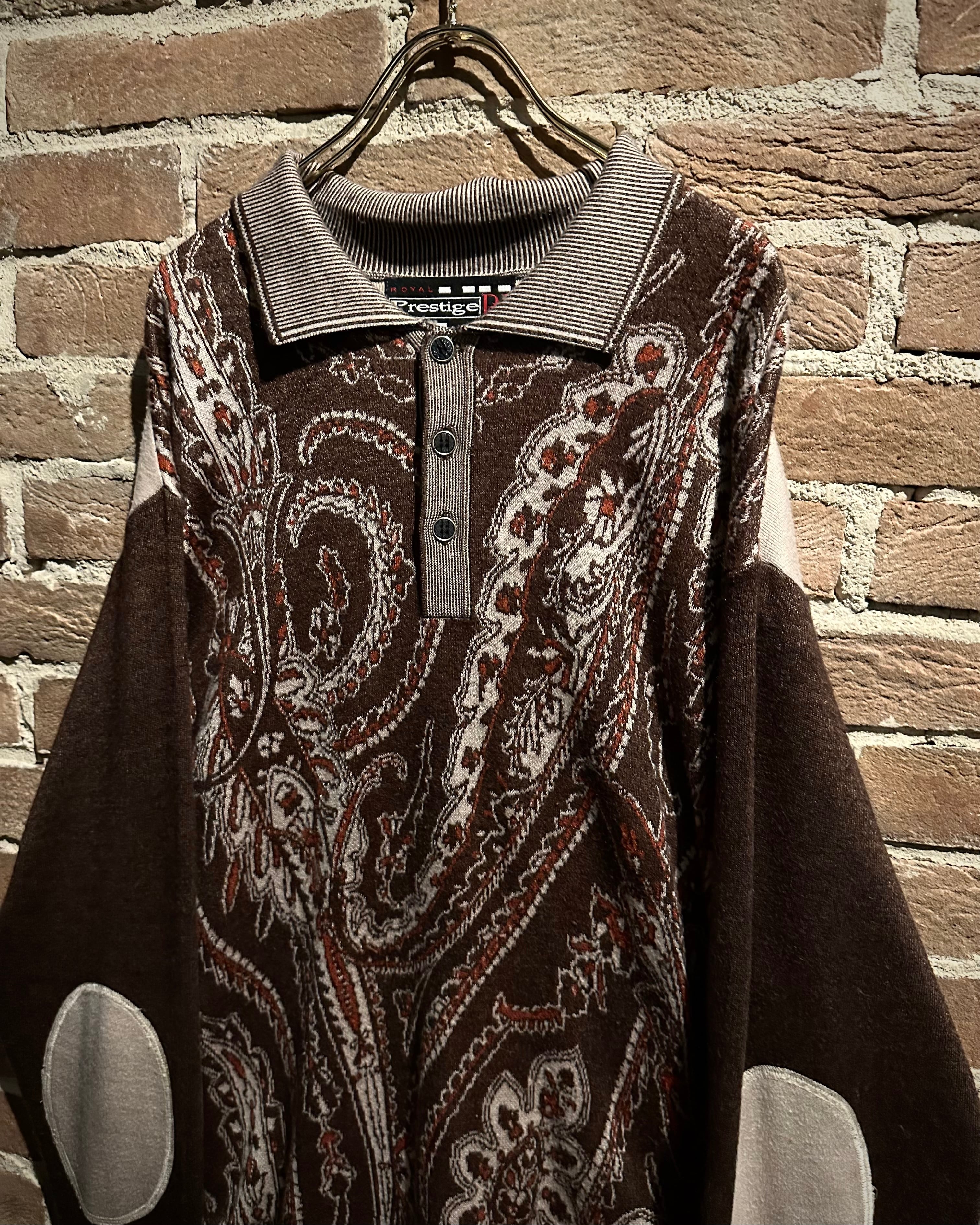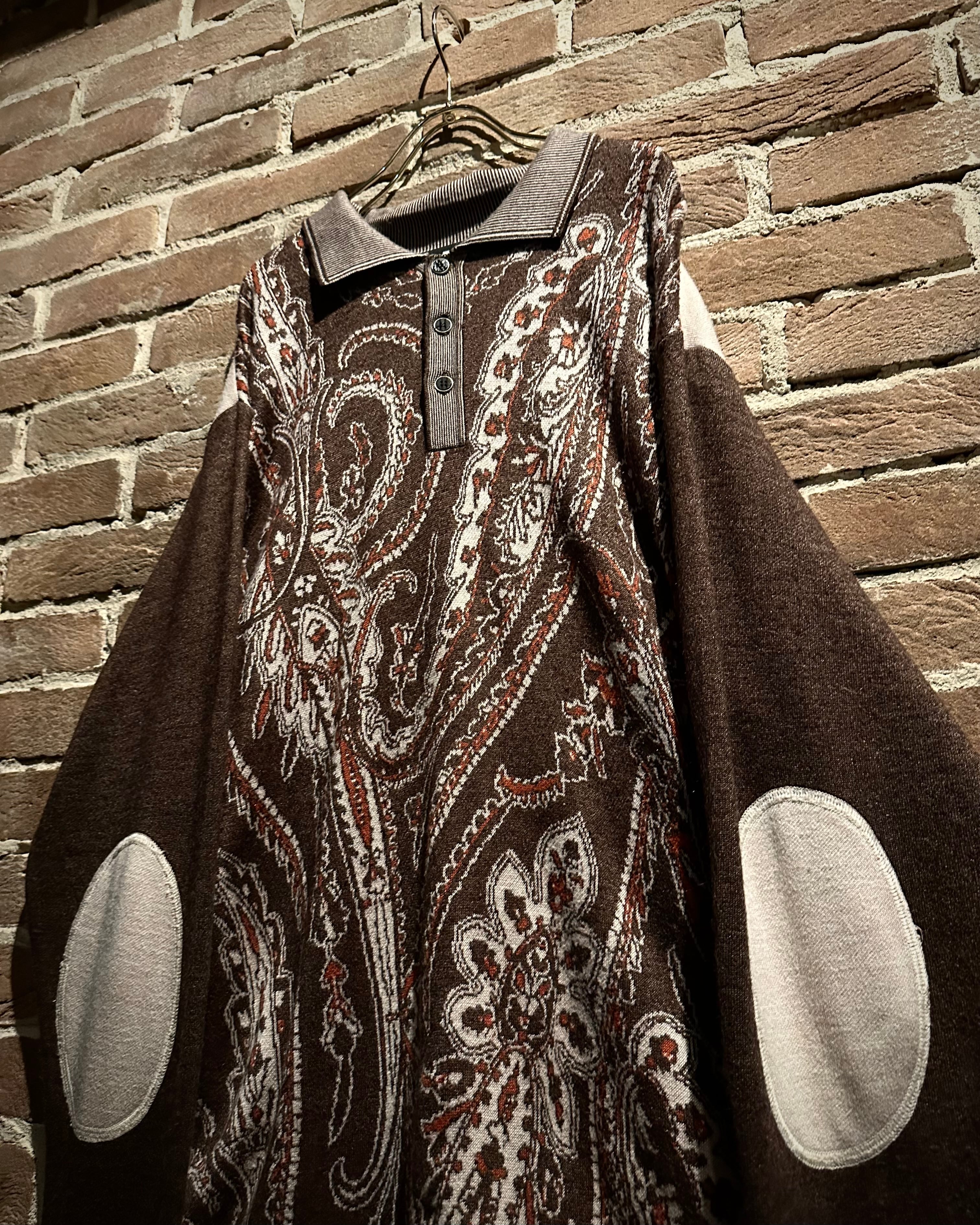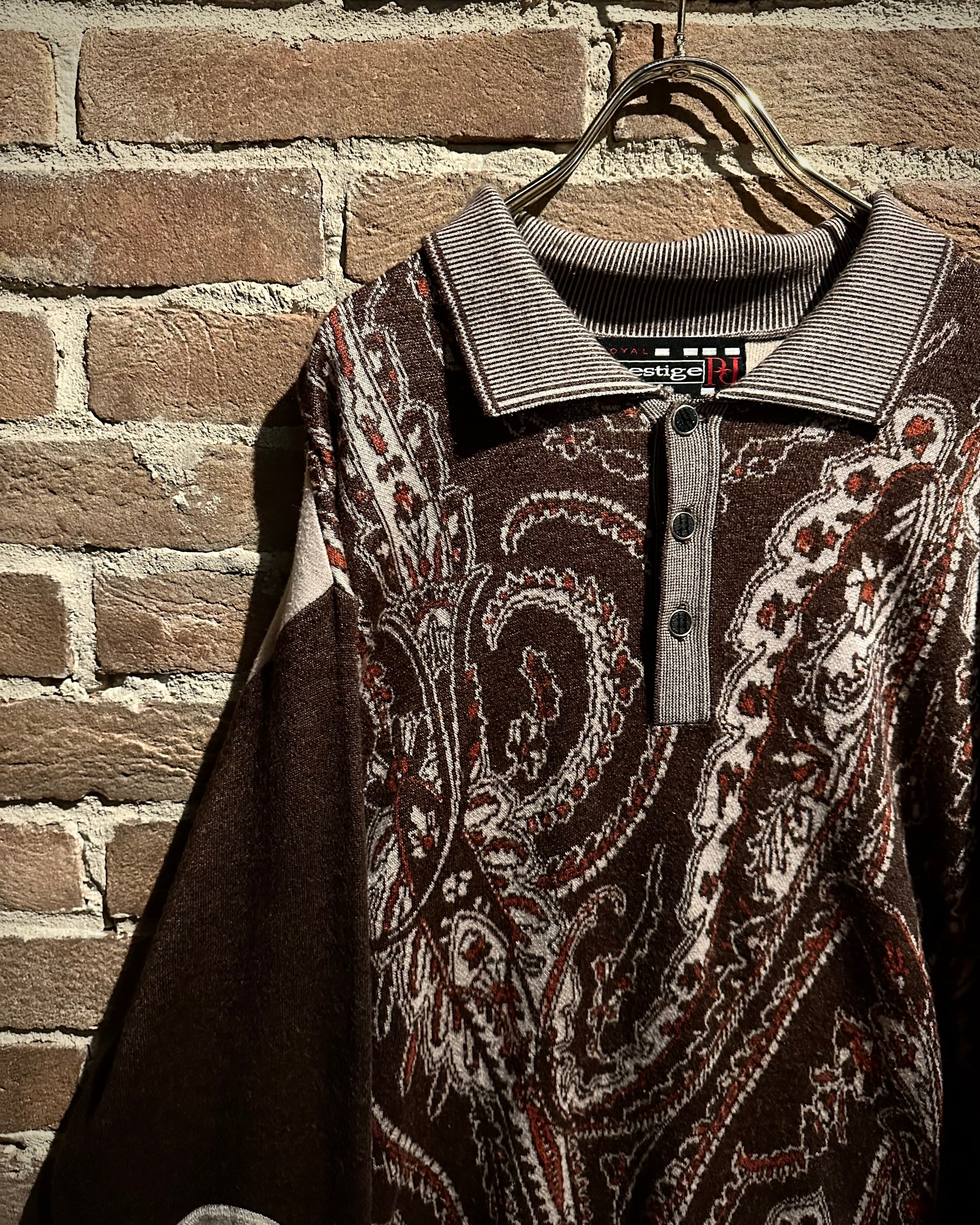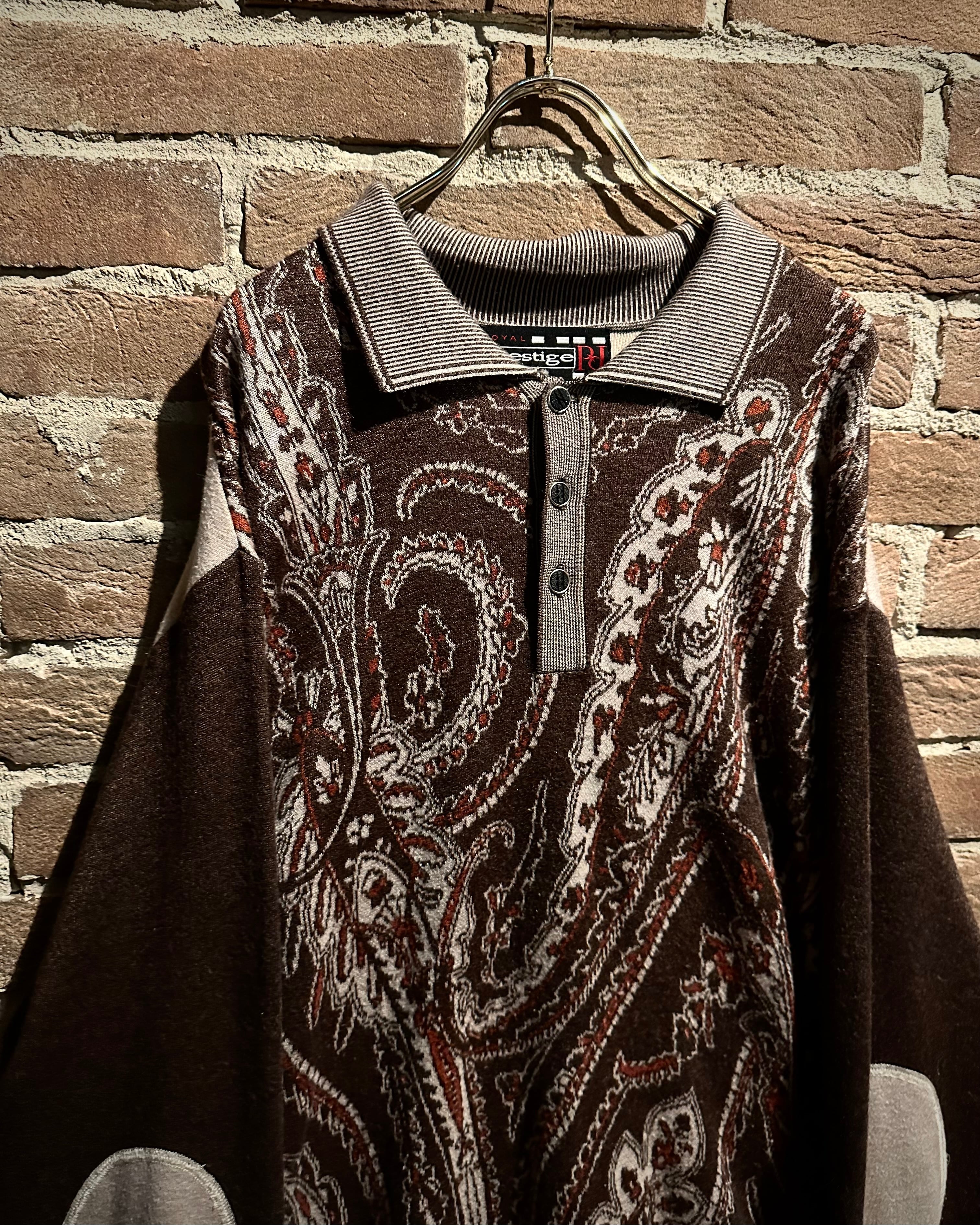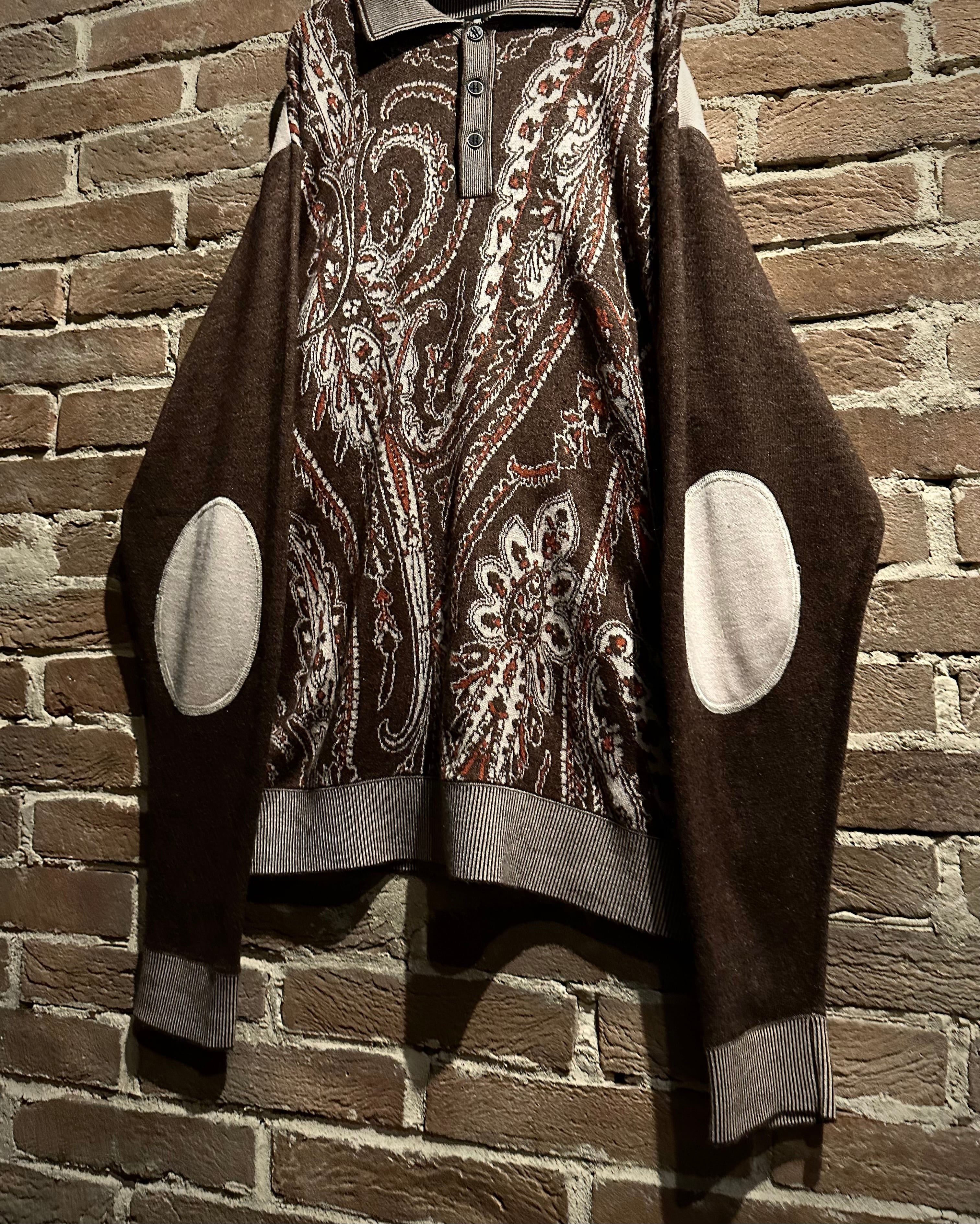 落ち着きのあるブラウンのボディに、非常に美しいペイズリー柄模様を載せたニットポロ。