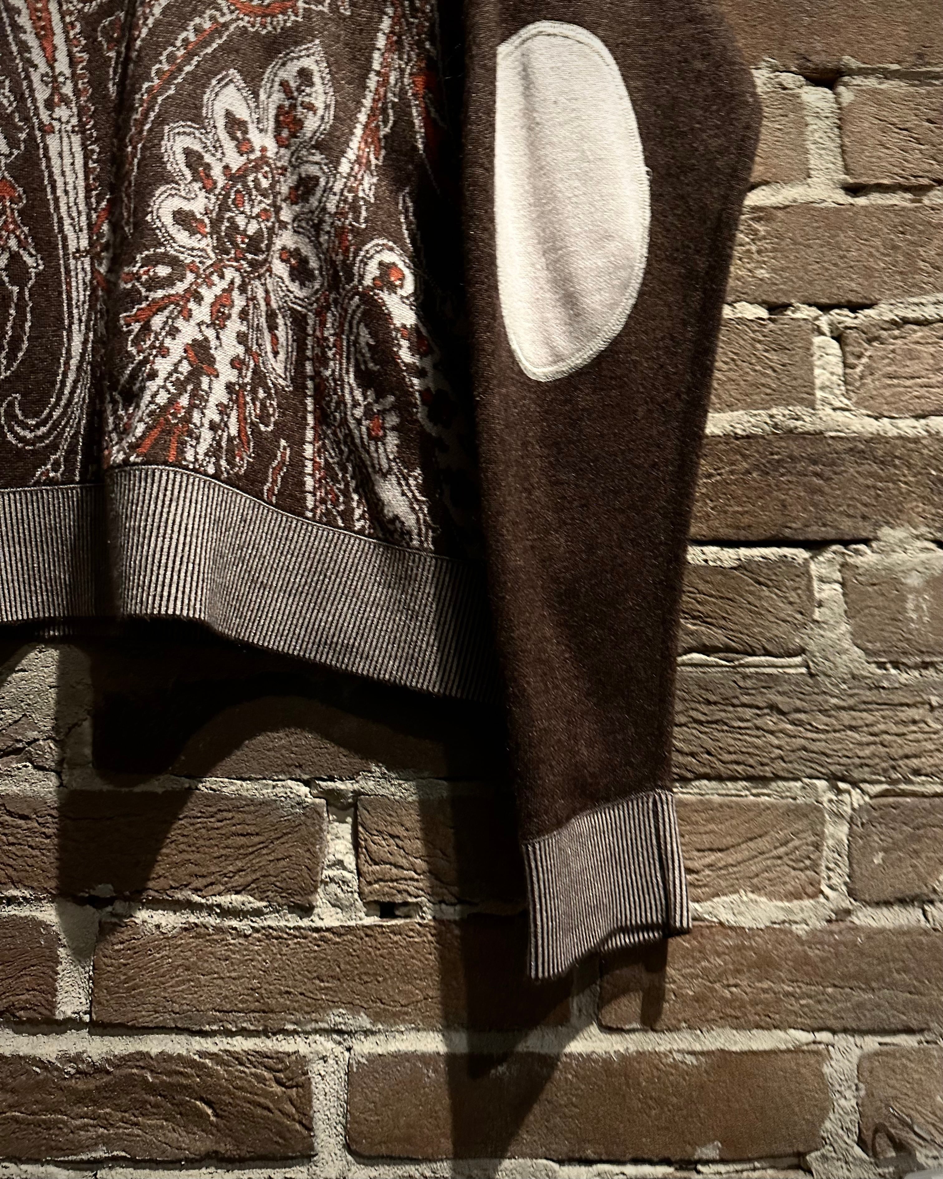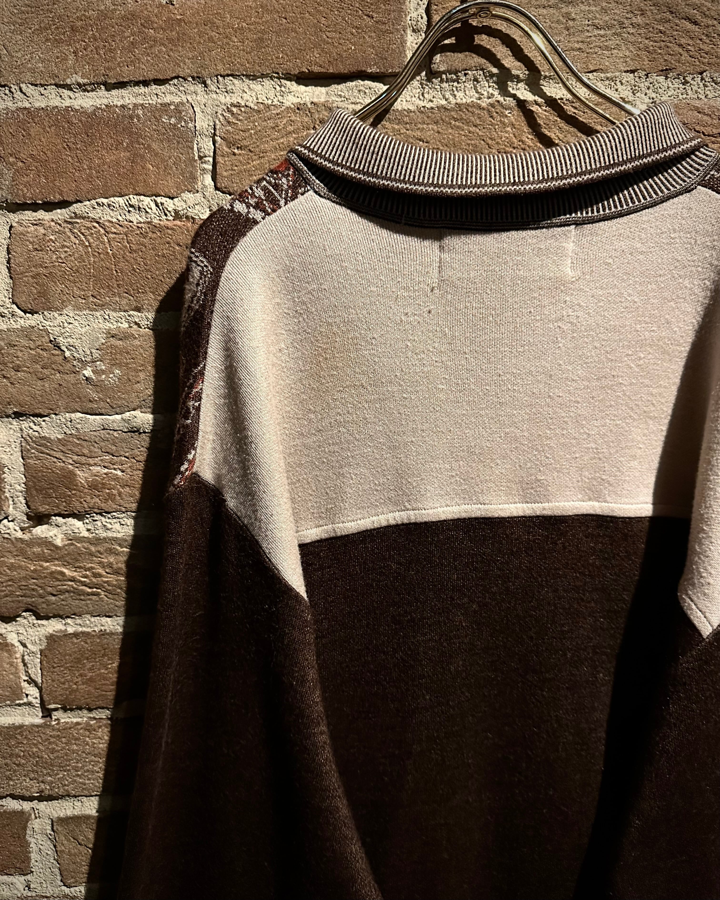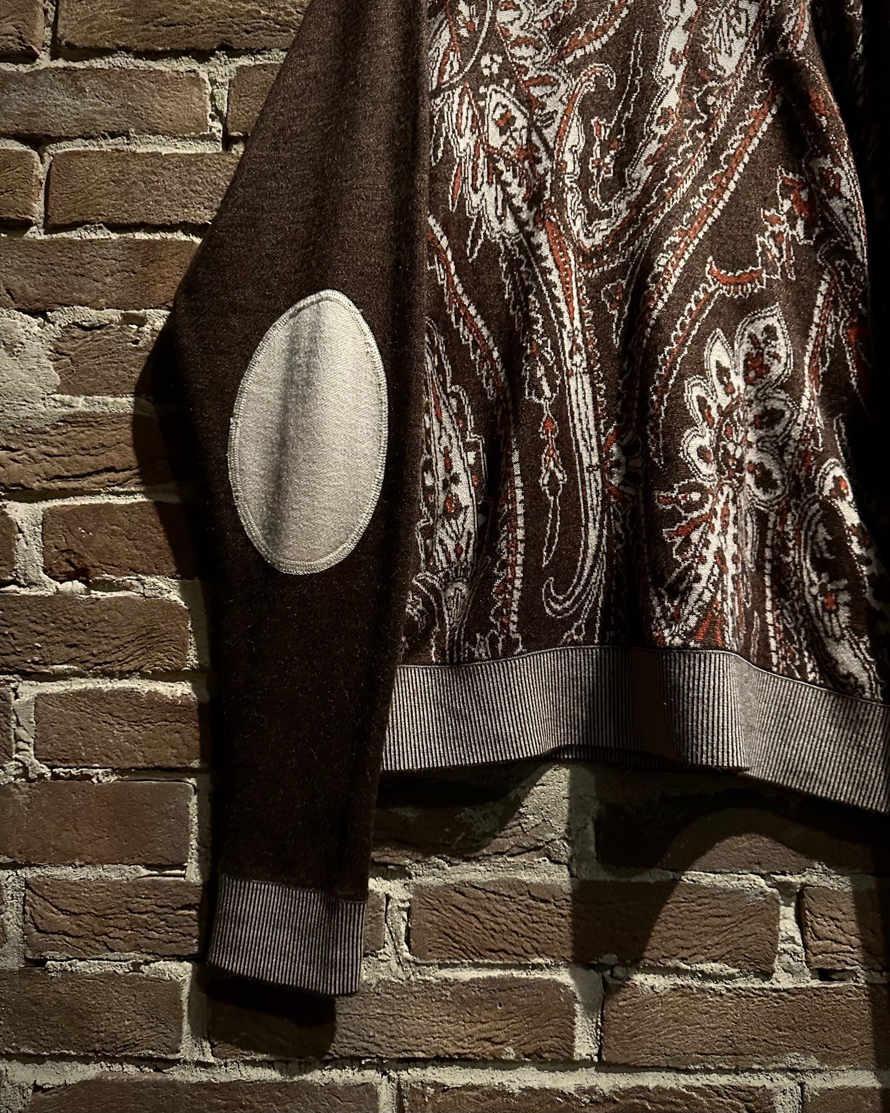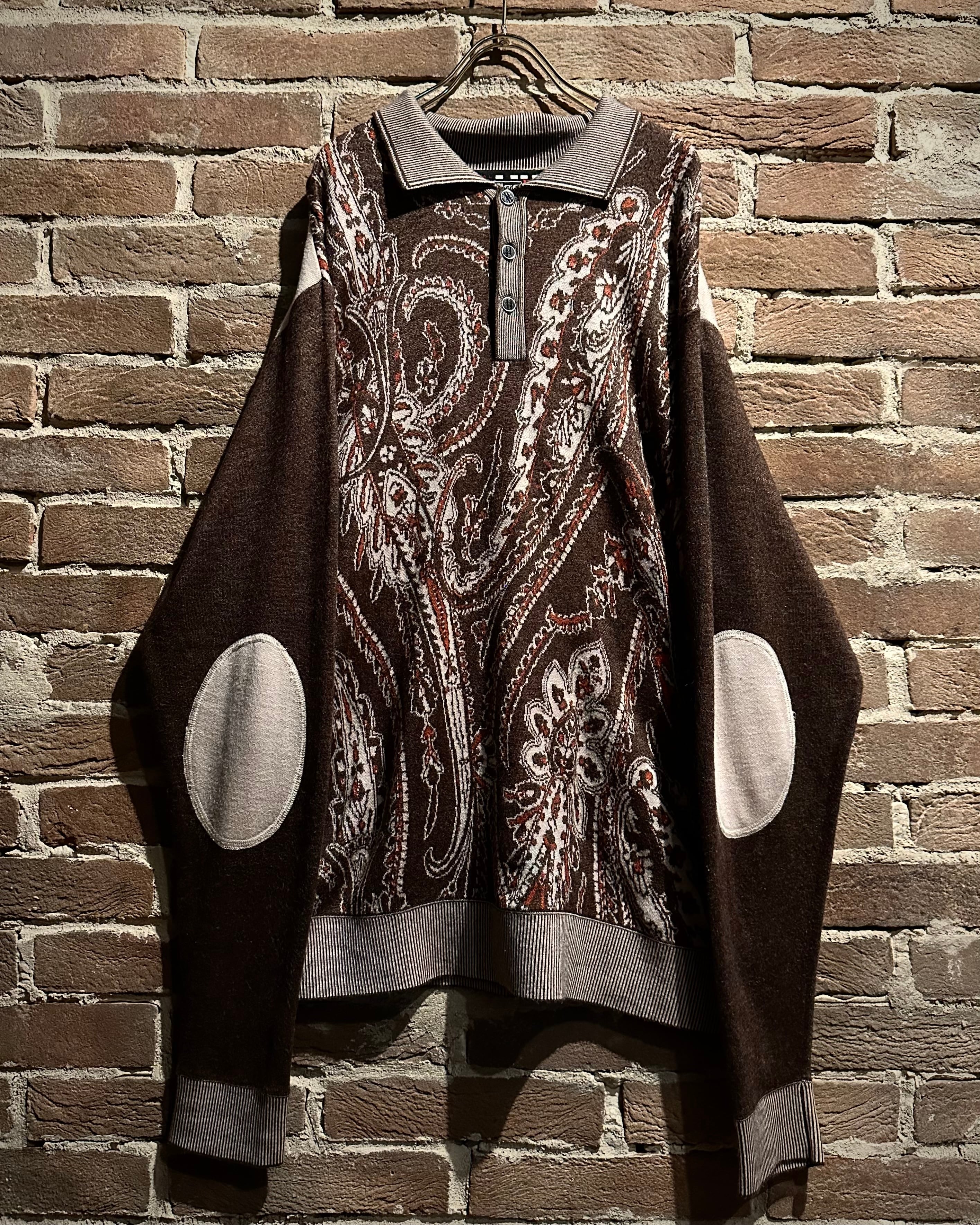 落ち着きのあるブラウンのボディに、非常に美しいペイズリー柄模様を載せたニットポロ。