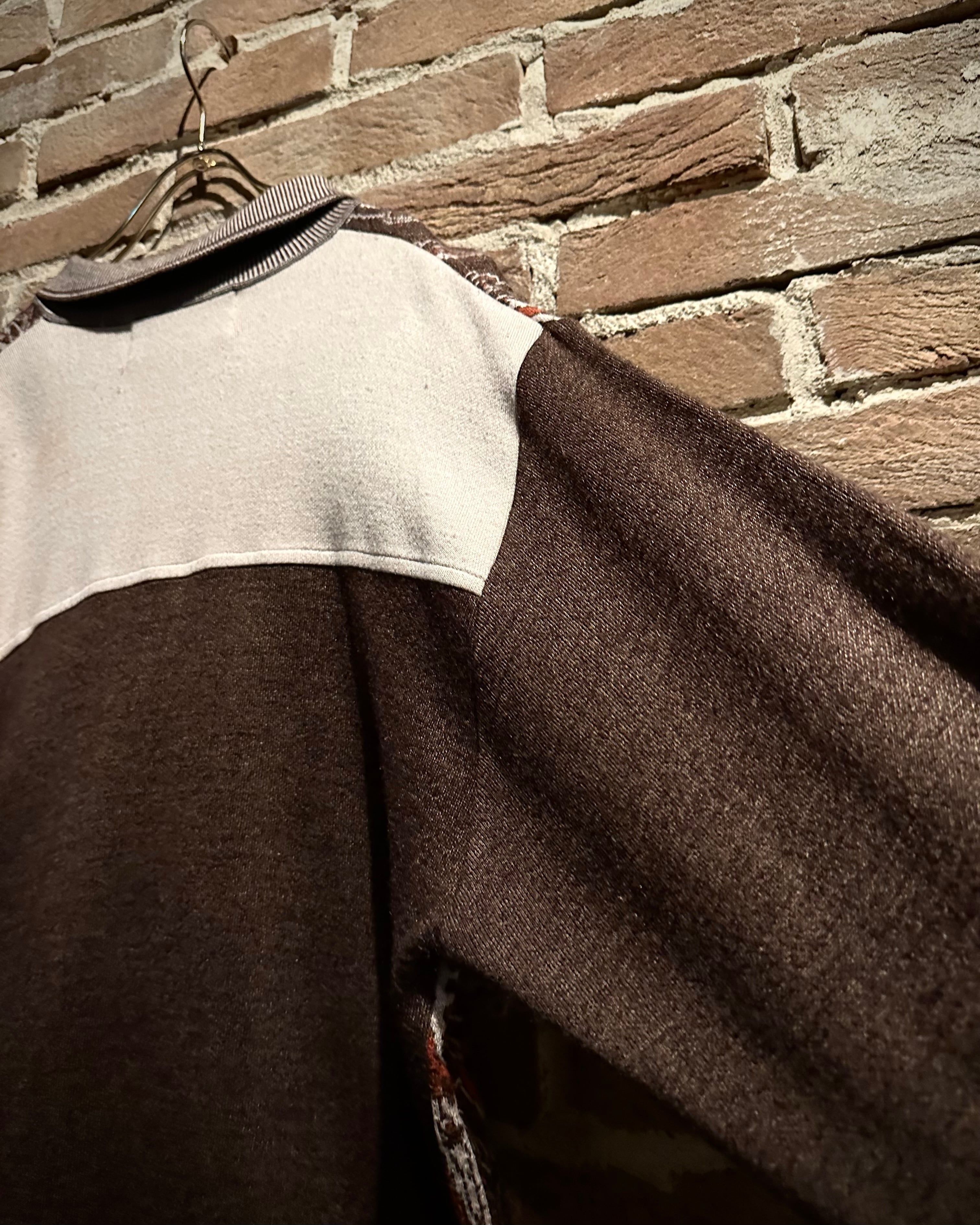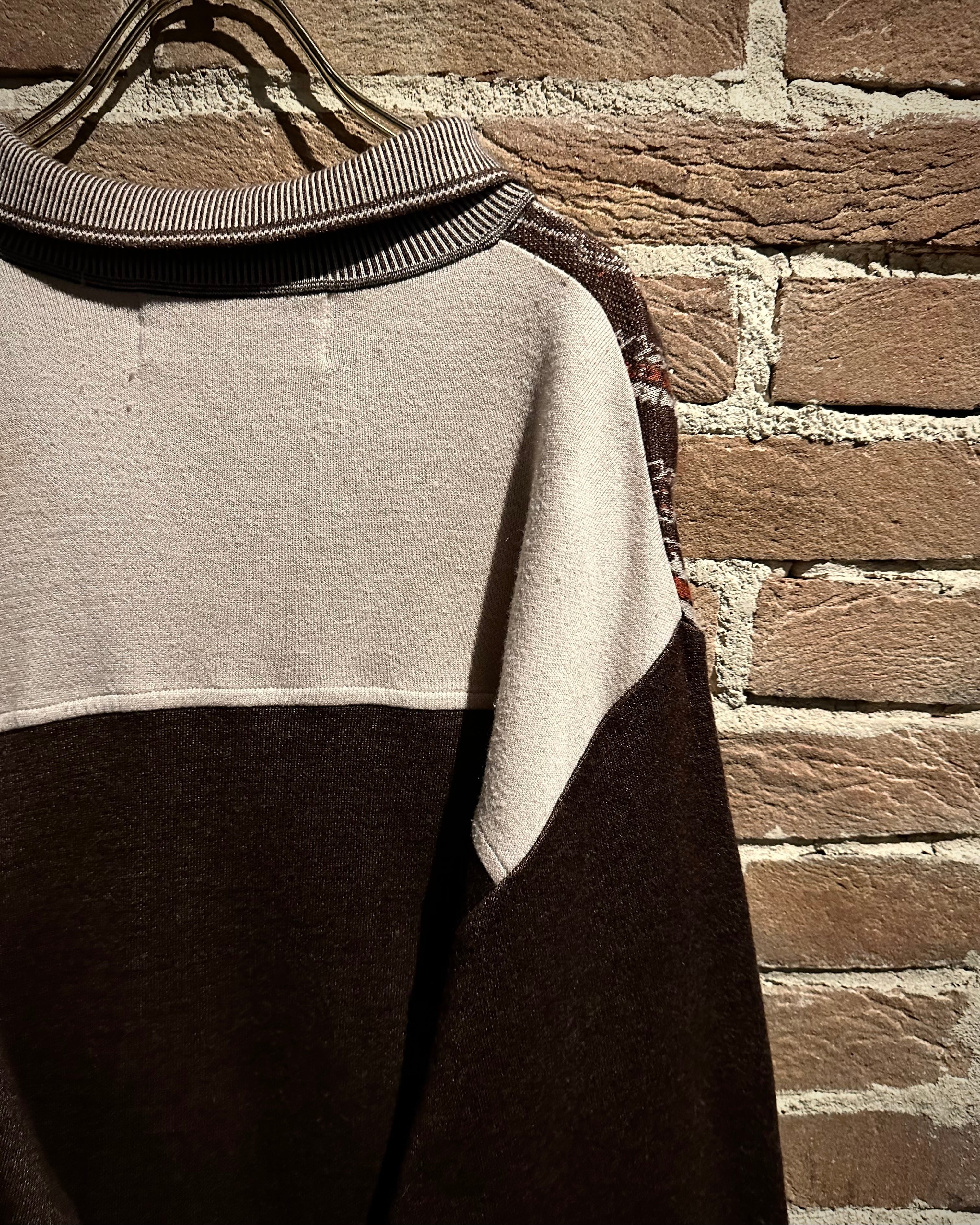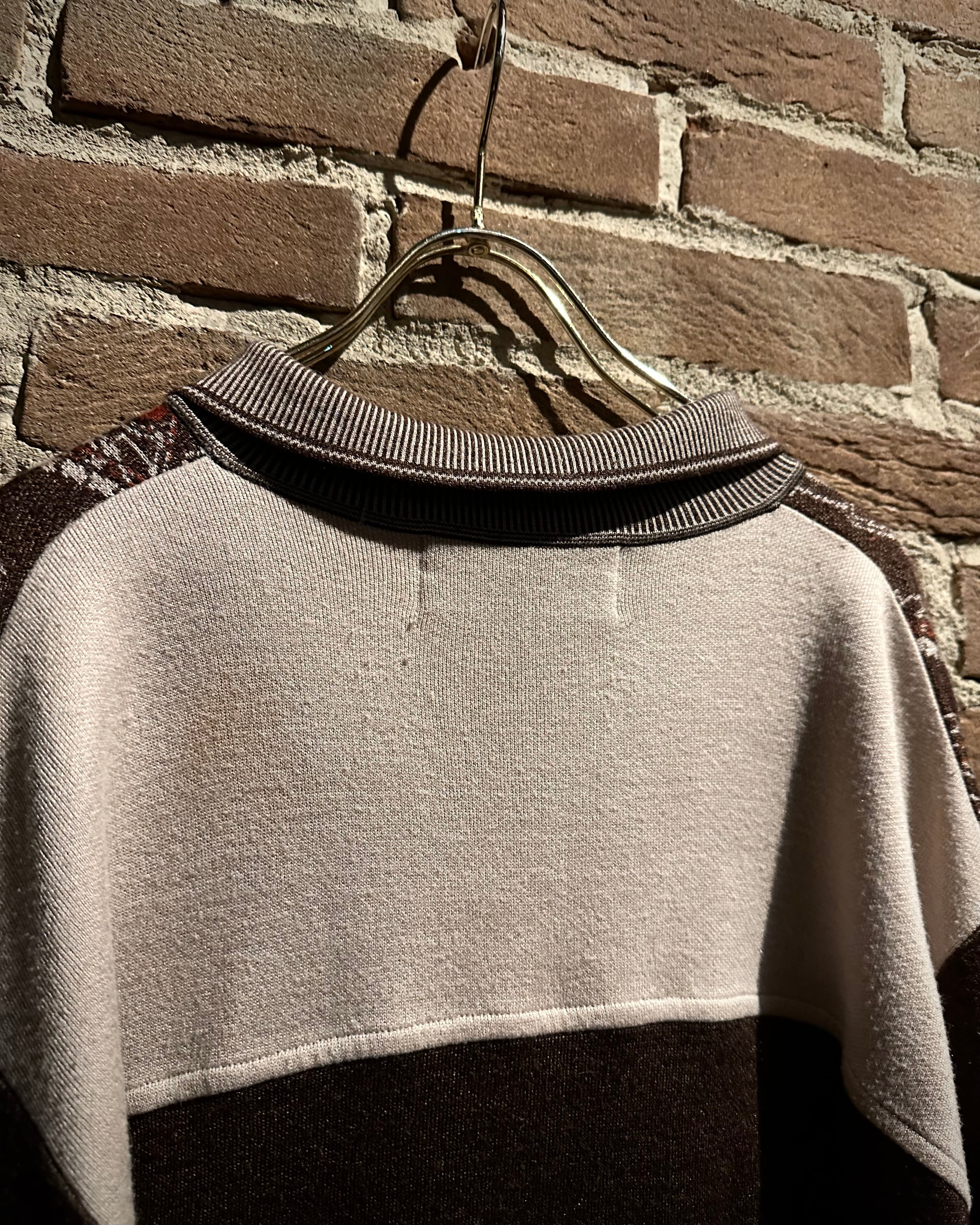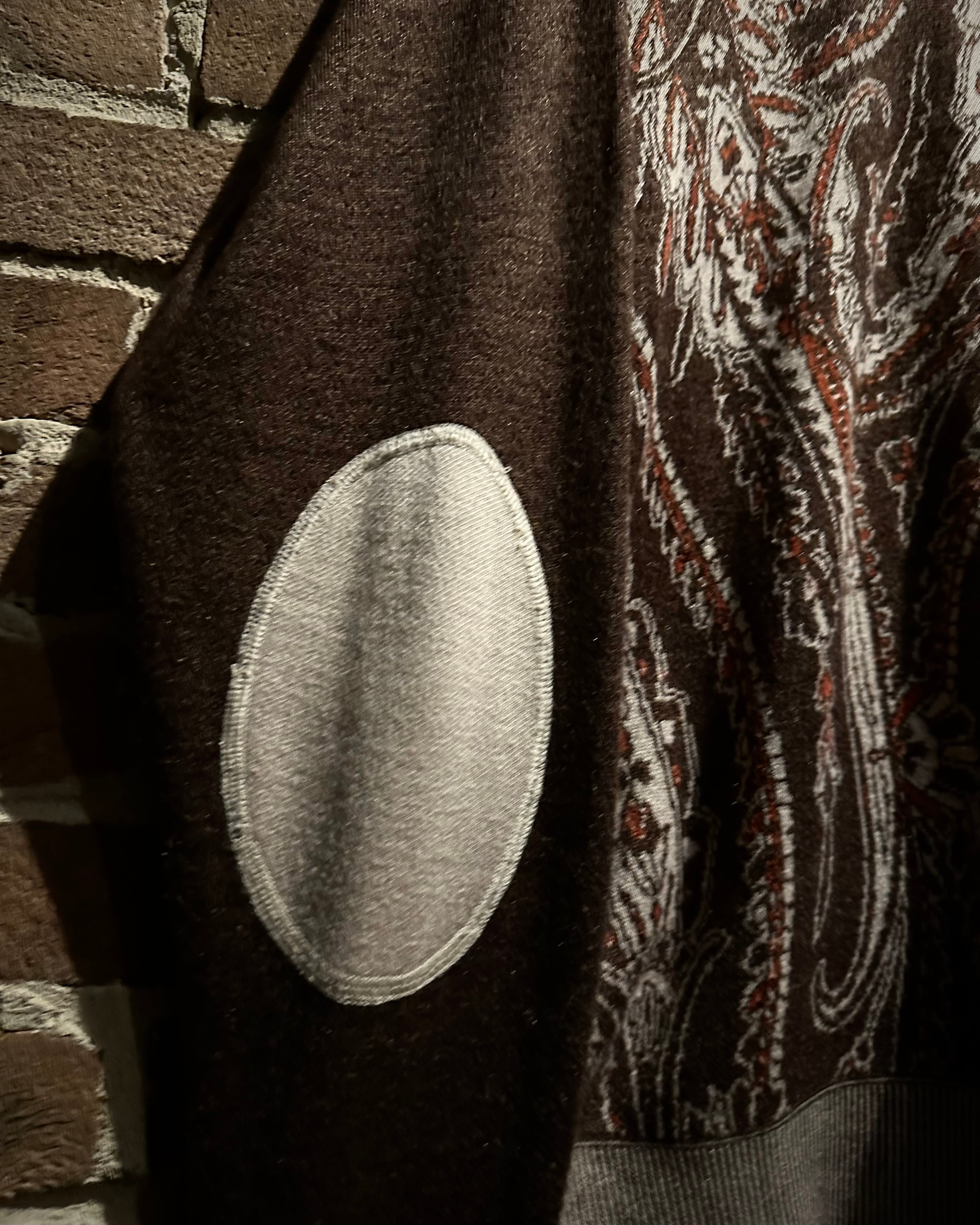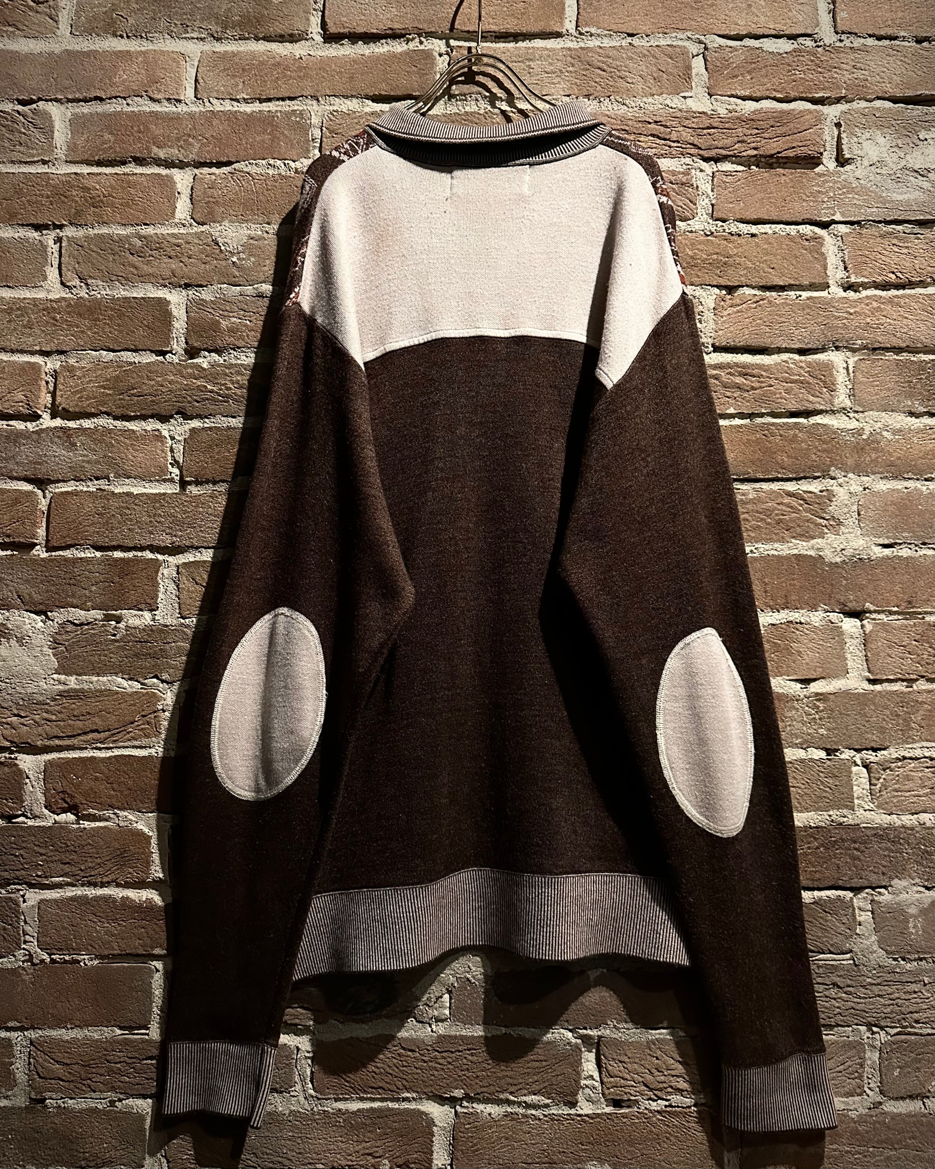 落ち着きのあるブラウンのボディに、非常に美しいペイズリー柄模様を載せたニットポロ。