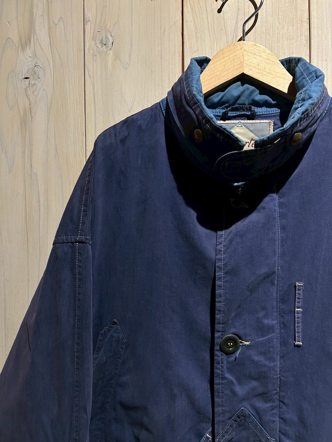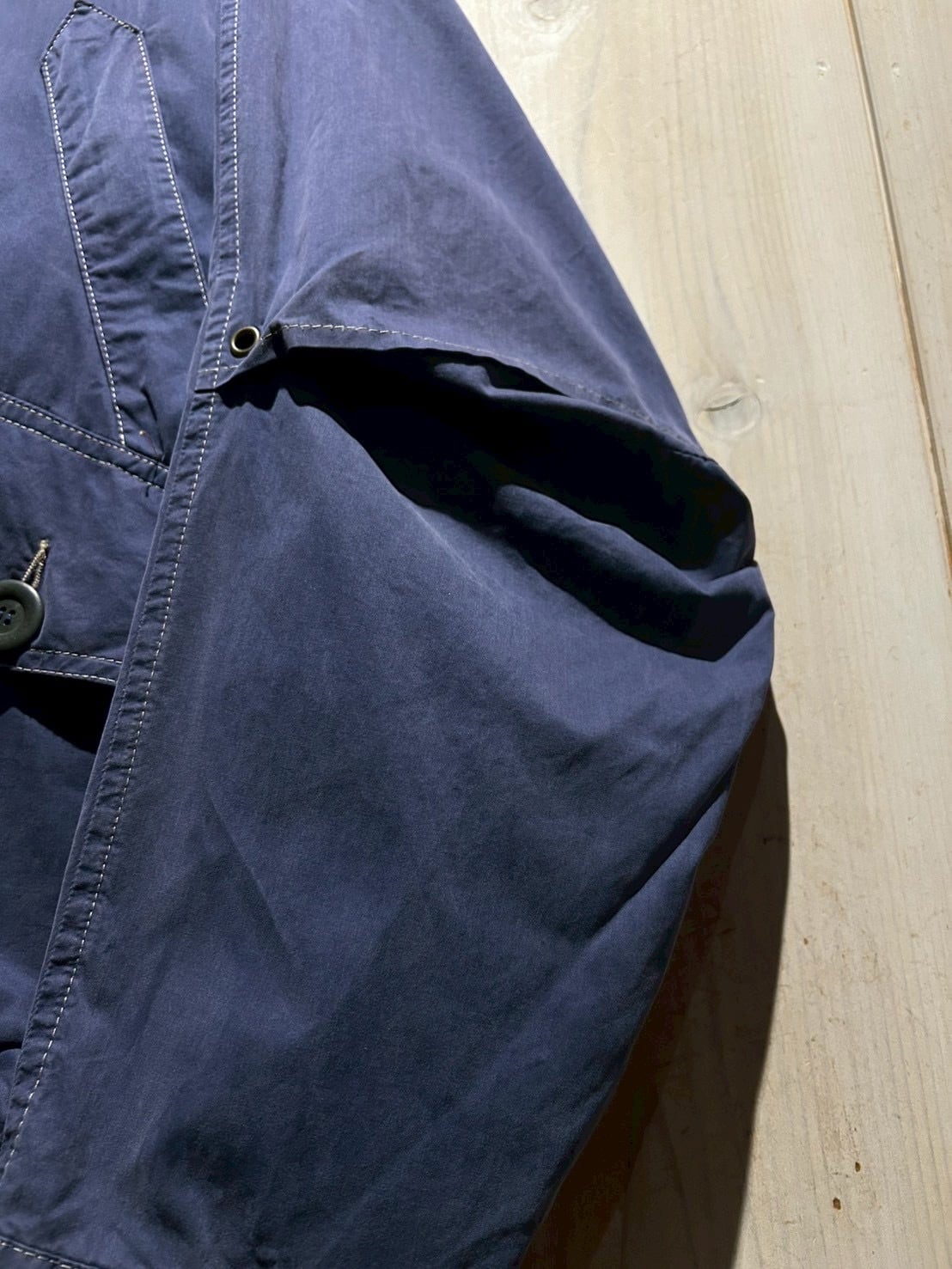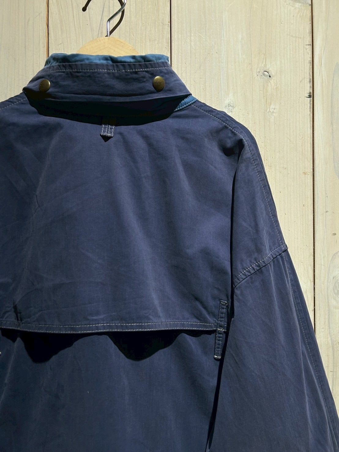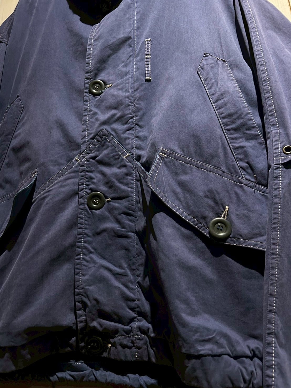 ボディにはマットな質感のコットンを採用。フェードしたネイビーカラーが上品な雰囲気を纏いながらも、程よいハリ感のある生地が立体的なシルエットを生み出し、現代のファッション感にもしっかりとハマってくれるかと。