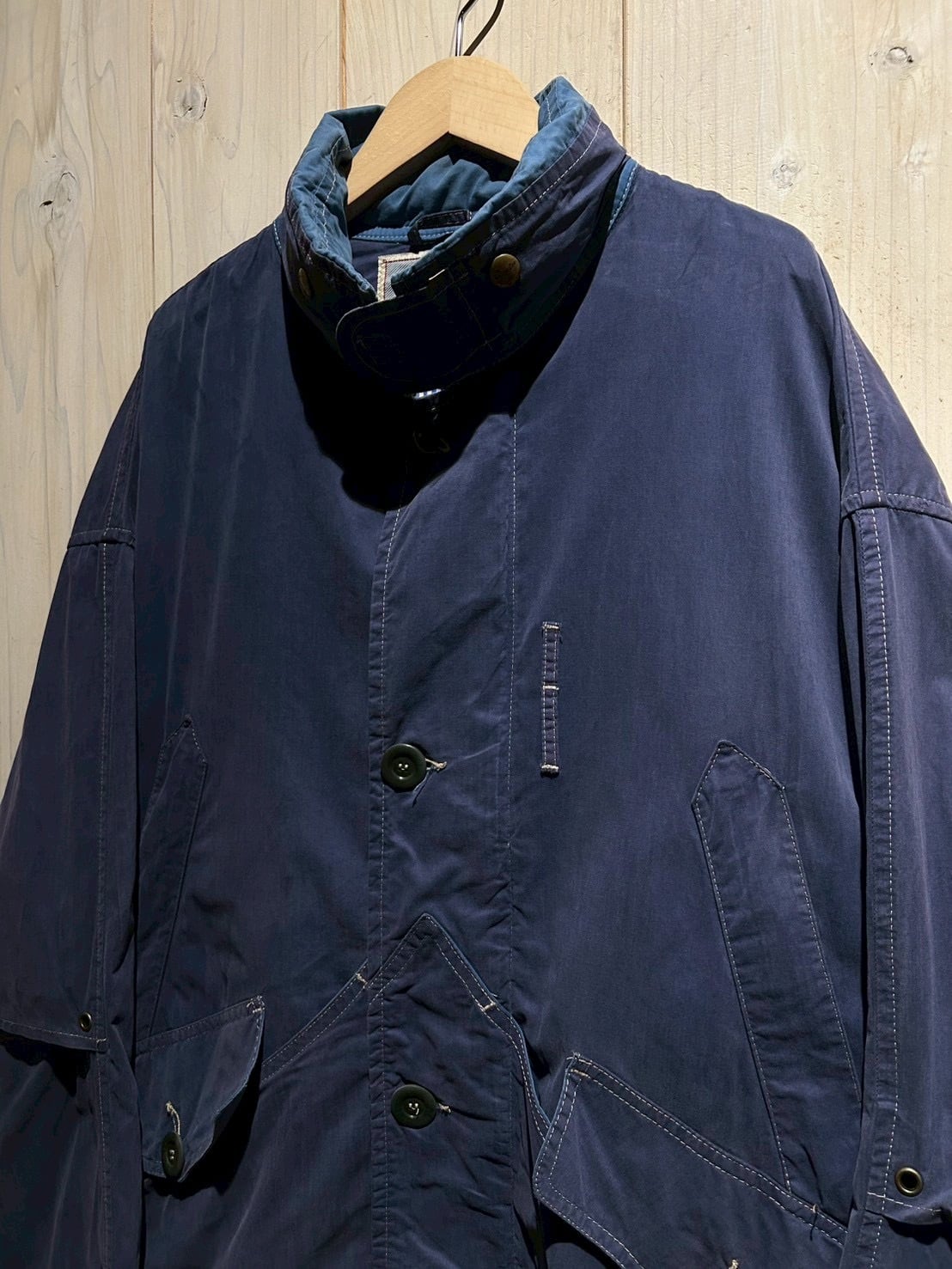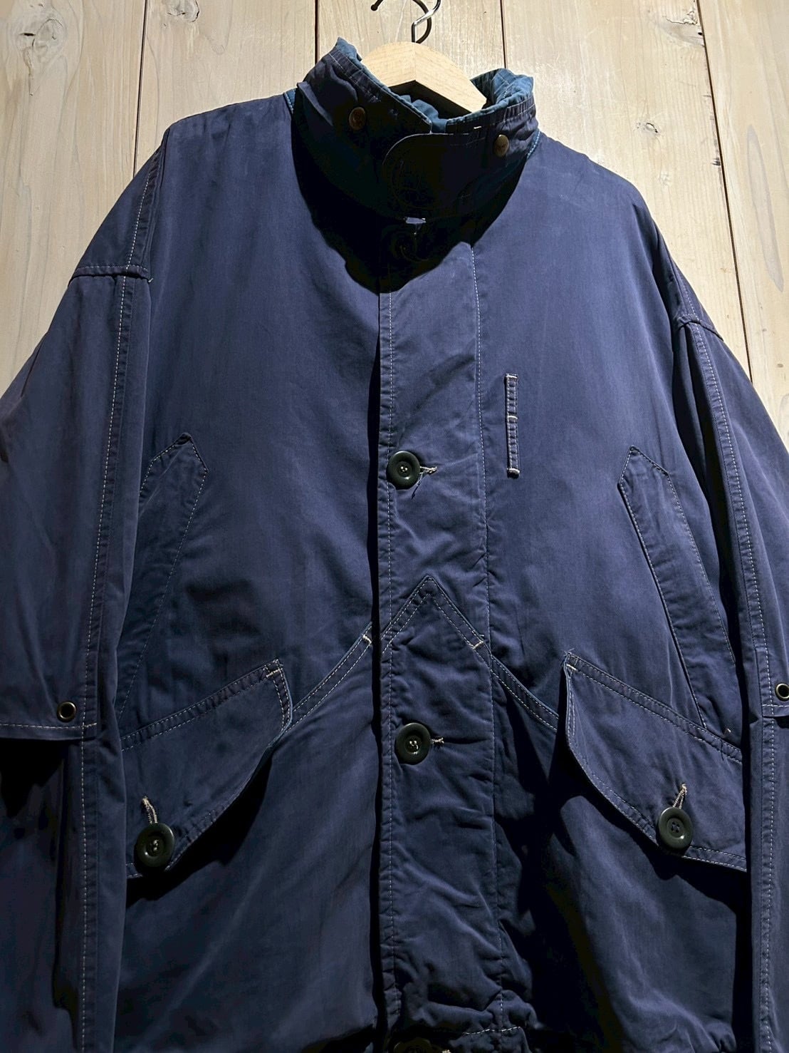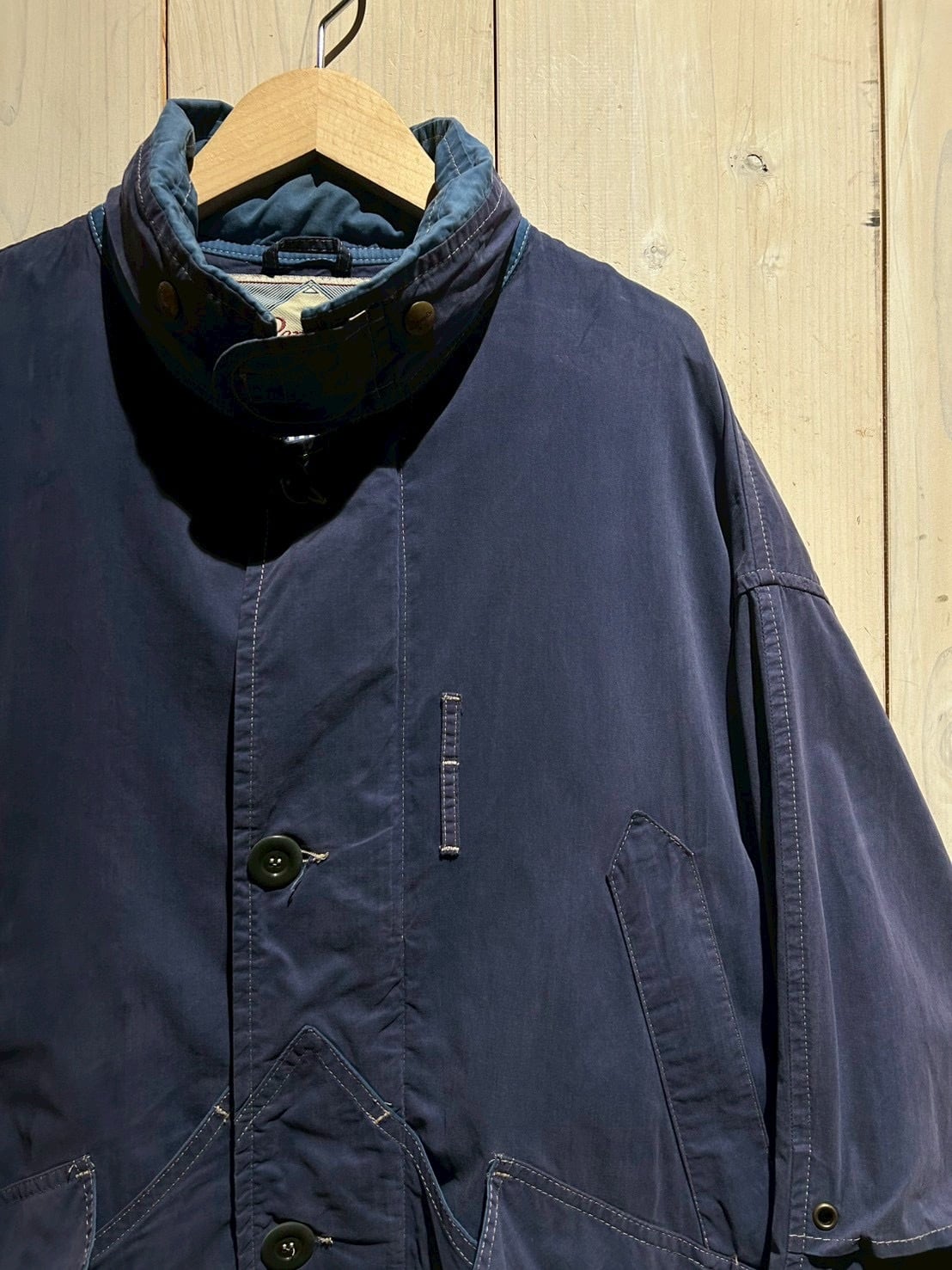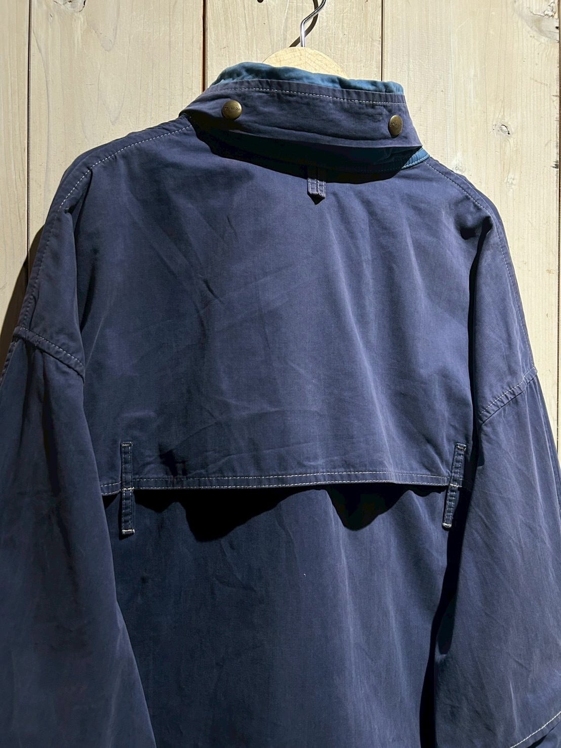 ボディにはマットな質感のコットンを採用。フェードしたネイビーカラーが上品な雰囲気を纏いながらも、程よいハリ感のある生地が立体的なシルエットを生み出し、現代のファッション感にもしっかりとハマってくれるかと。