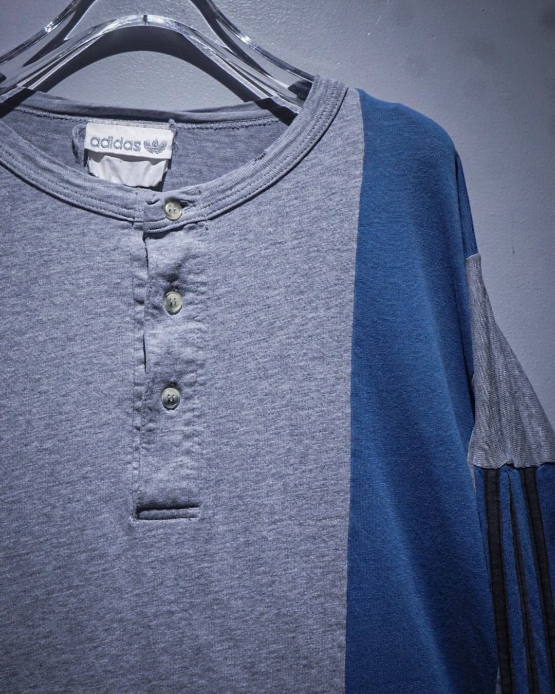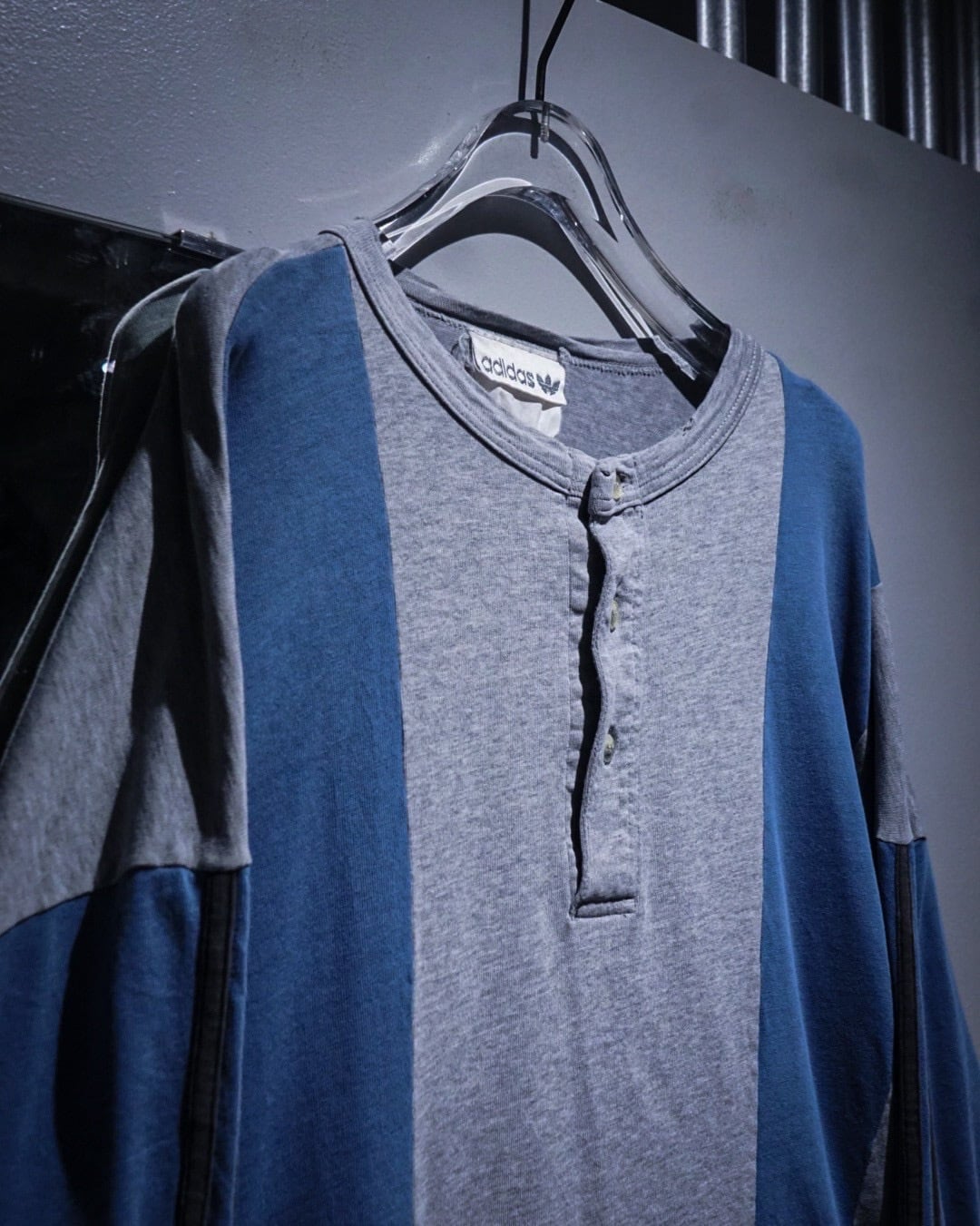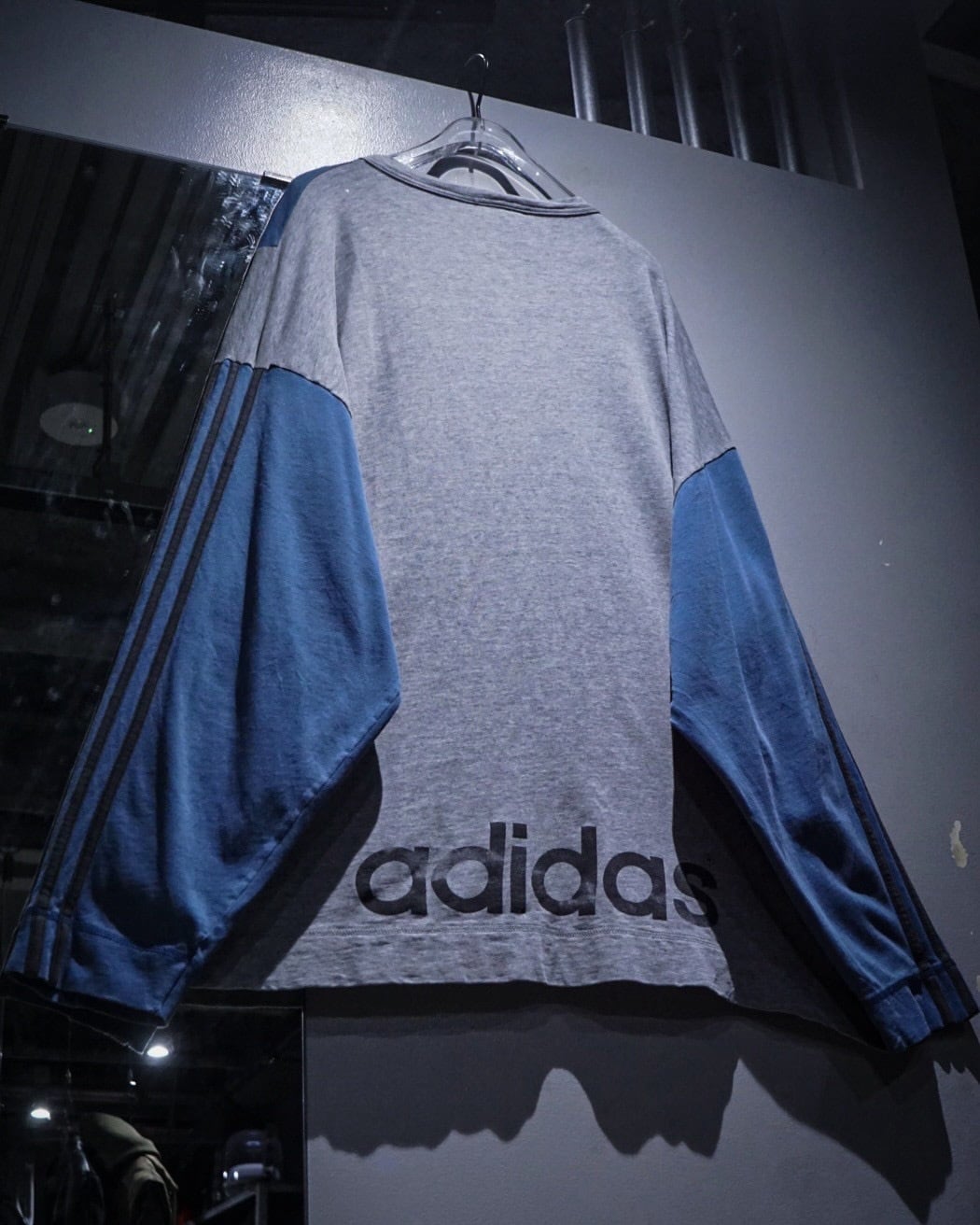 ボディはグレーをベースに、淡いブルーの大胆な切り替えデザインが印象的な1着。スポーティーな要素を残しながらもどこかストリートの雰囲気を纏った、この年代のadidasらしいデザインに仕上がっています。