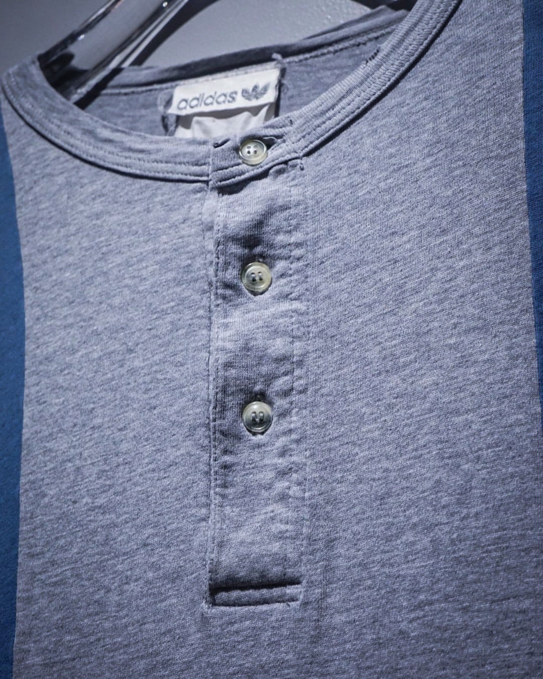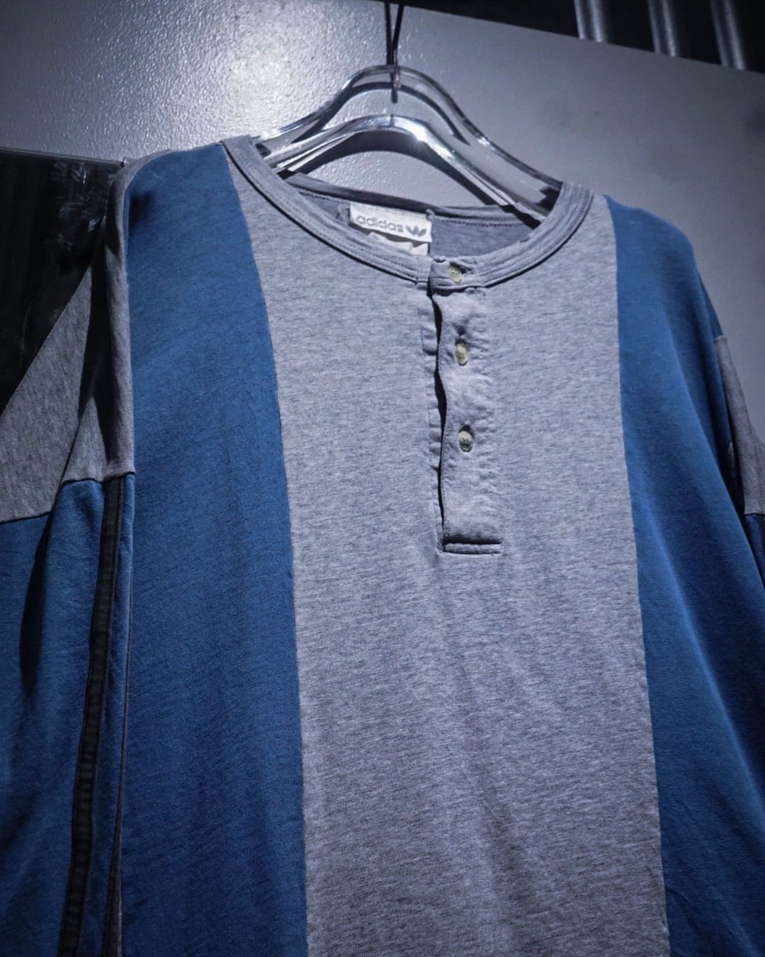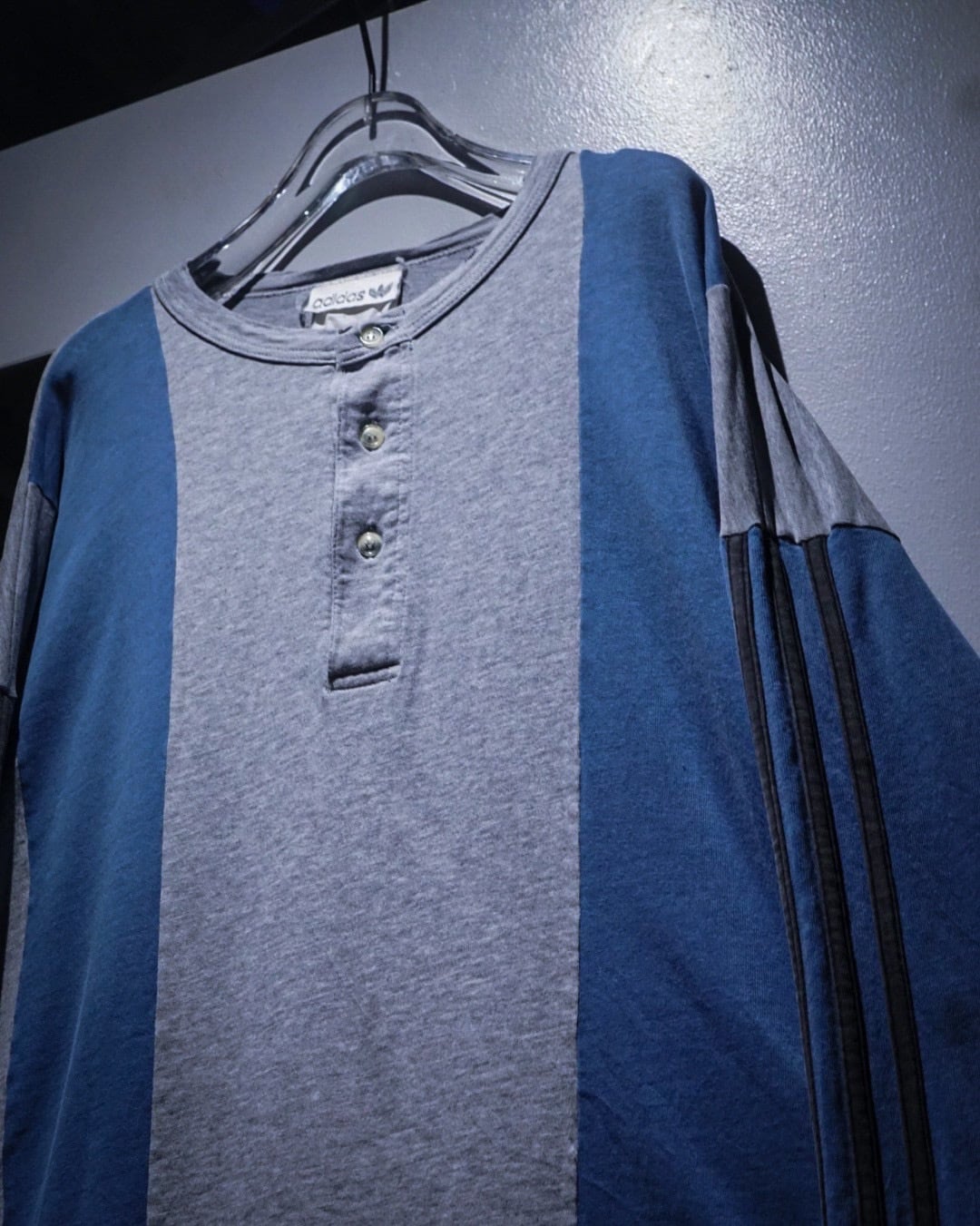 ボディはグレーをベースに、淡いブルーの大胆な切り替えデザインが印象的な1着。スポーティーな要素を残しながらもどこかストリートの雰囲気を纏った、この年代のadidasらしいデザインに仕上がっています。