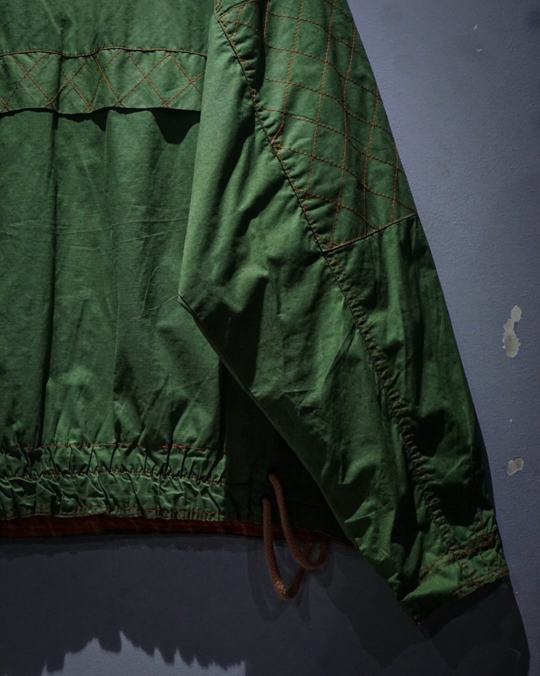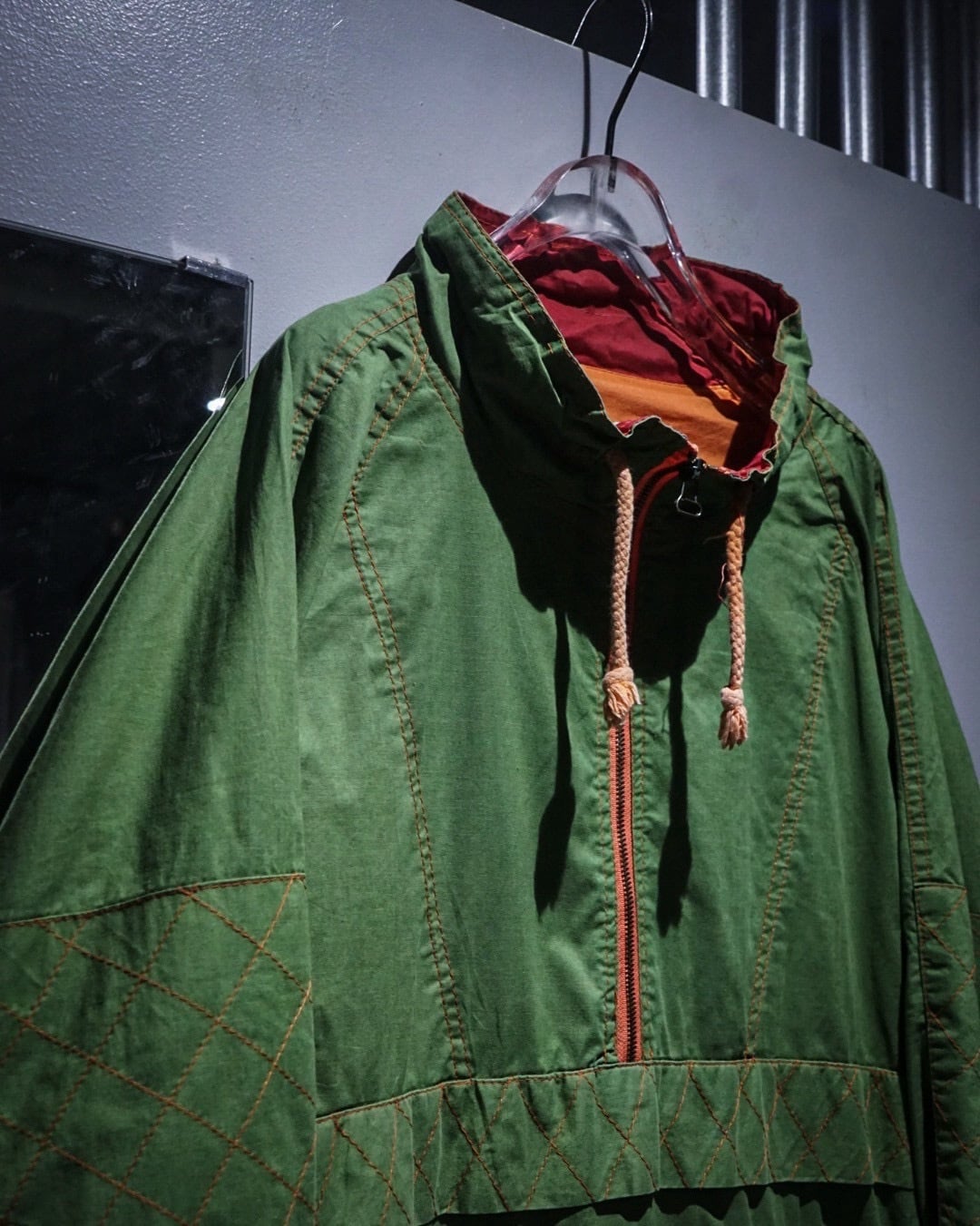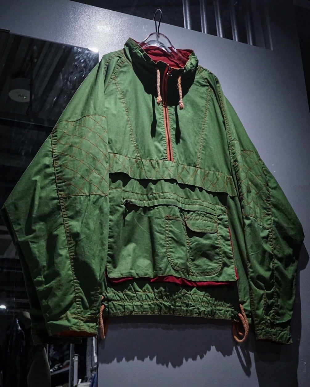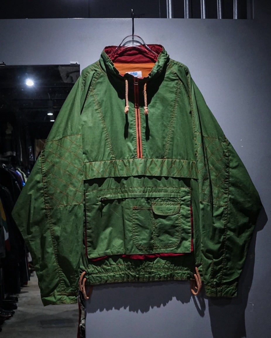 鮮やかなグリーンのボディが目を惹く、アノラックタイプのプルオーバージャケット。