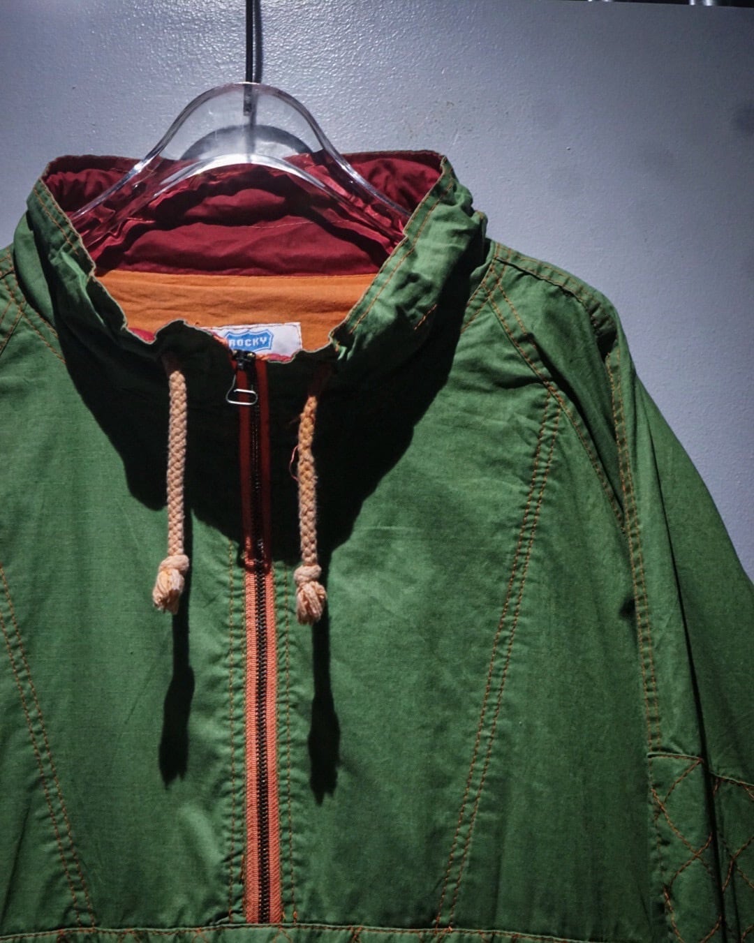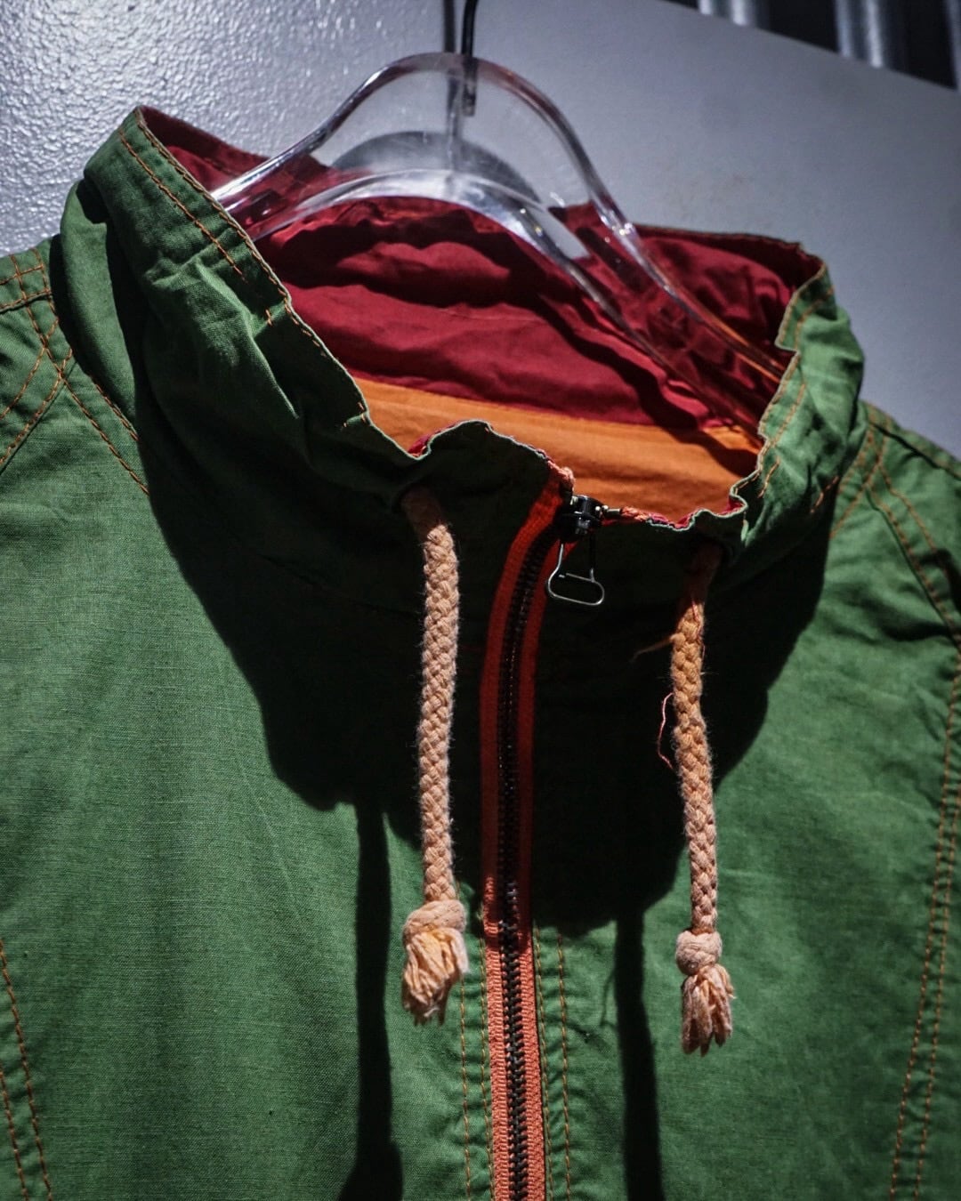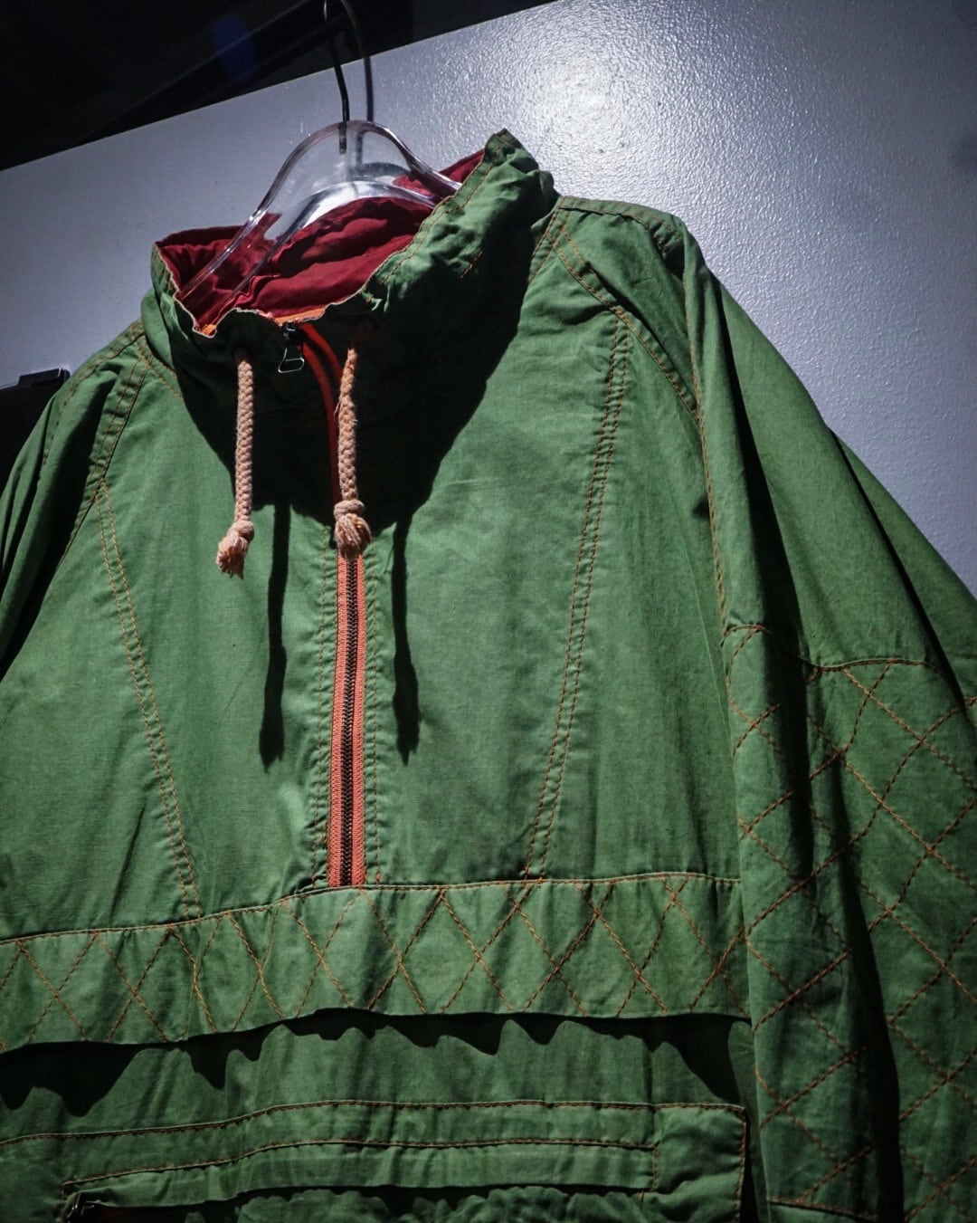 鮮やかなグリーンのボディが目を惹く、アノラックタイプのプルオーバージャケット。
