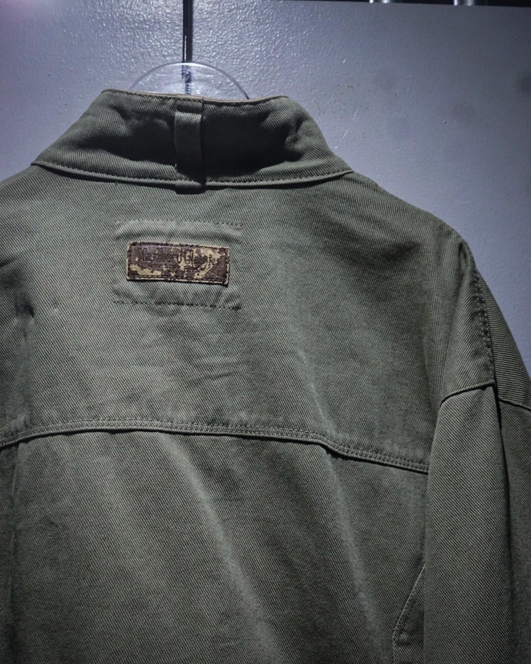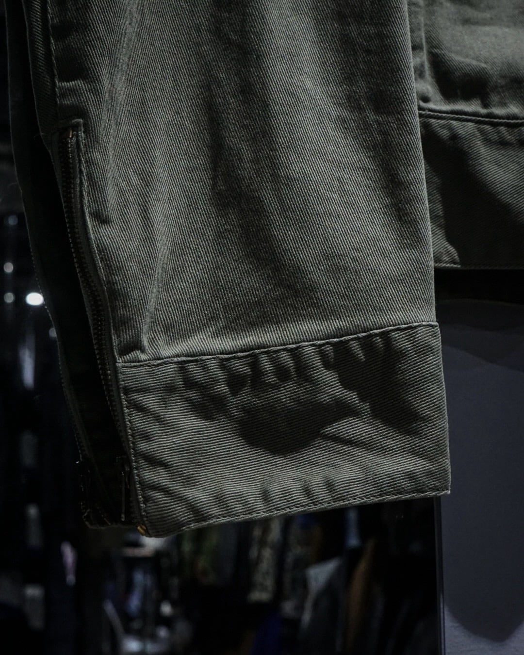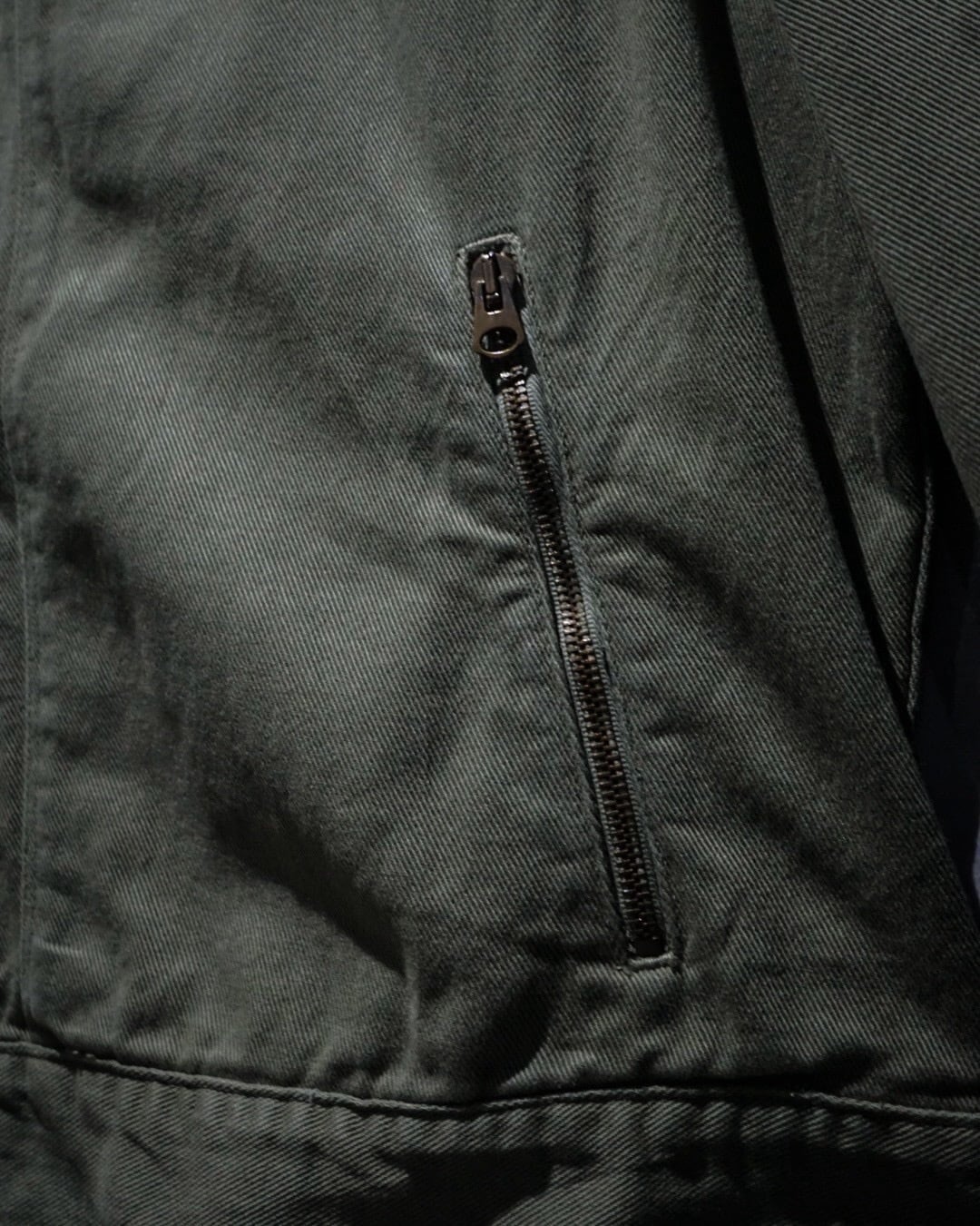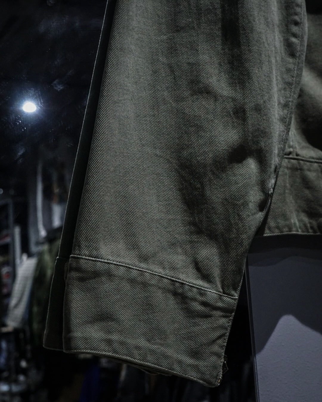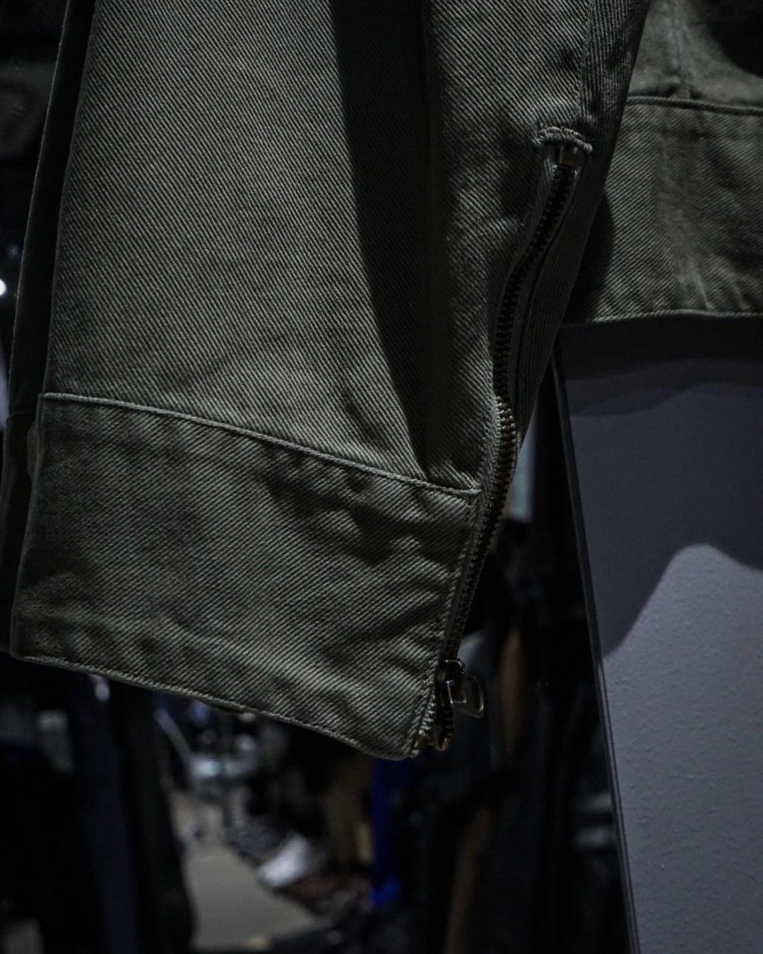 ボディにはハリのあるコットンツイル生地を採用。しっかりとしたタフな質感を持ちながらも、着込むほどに柔らかく体に馴染んでいく経年変化も魅力の一つです。