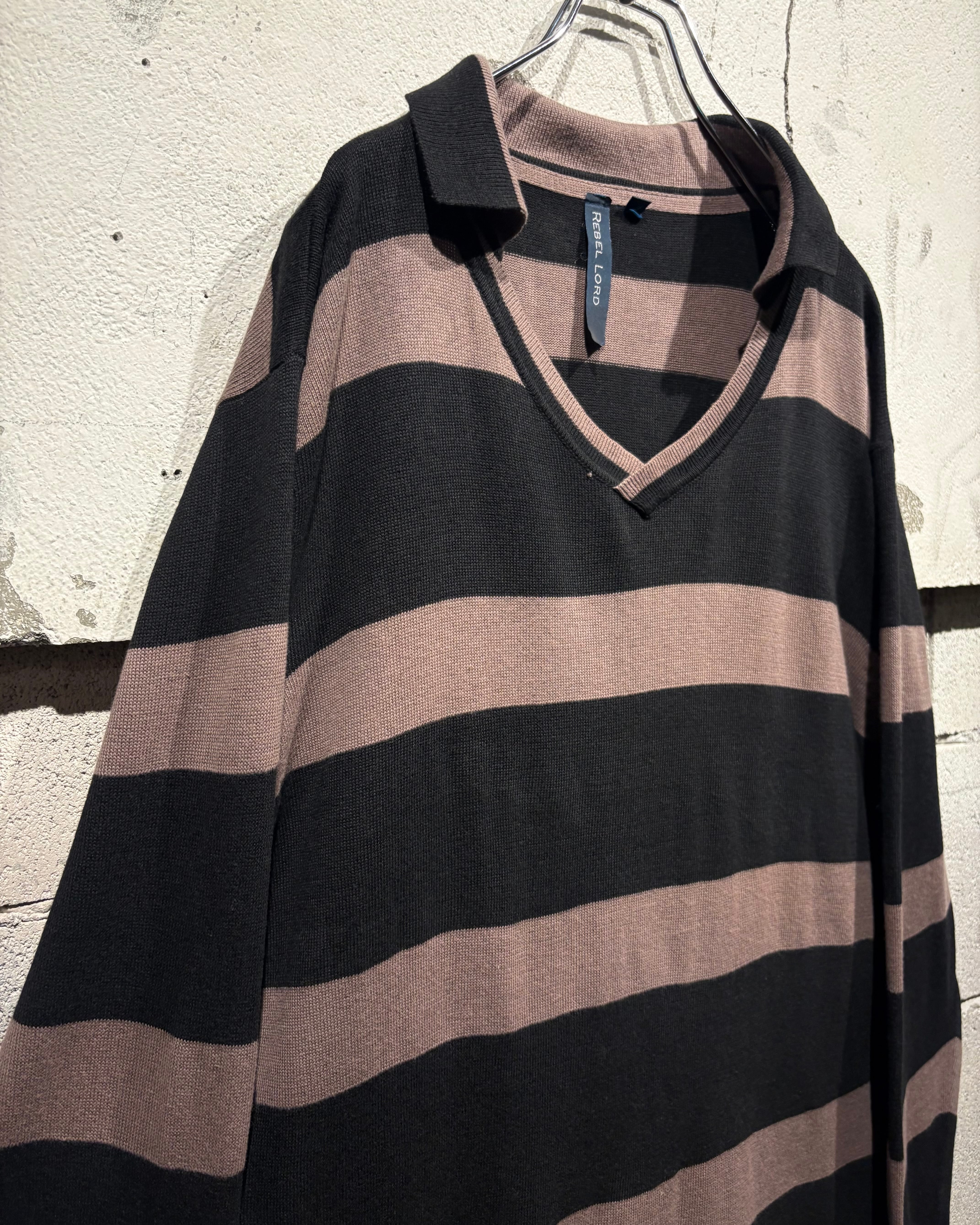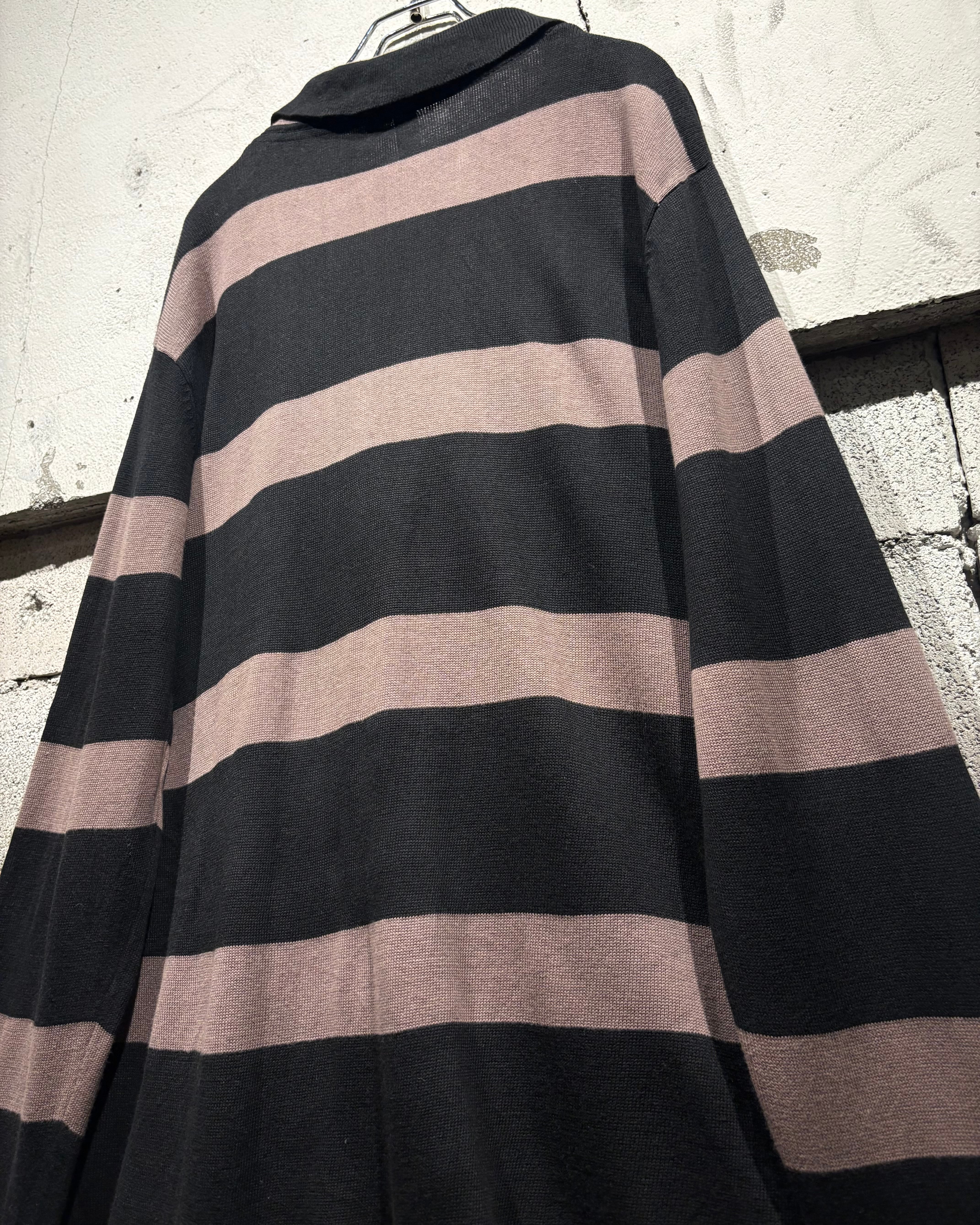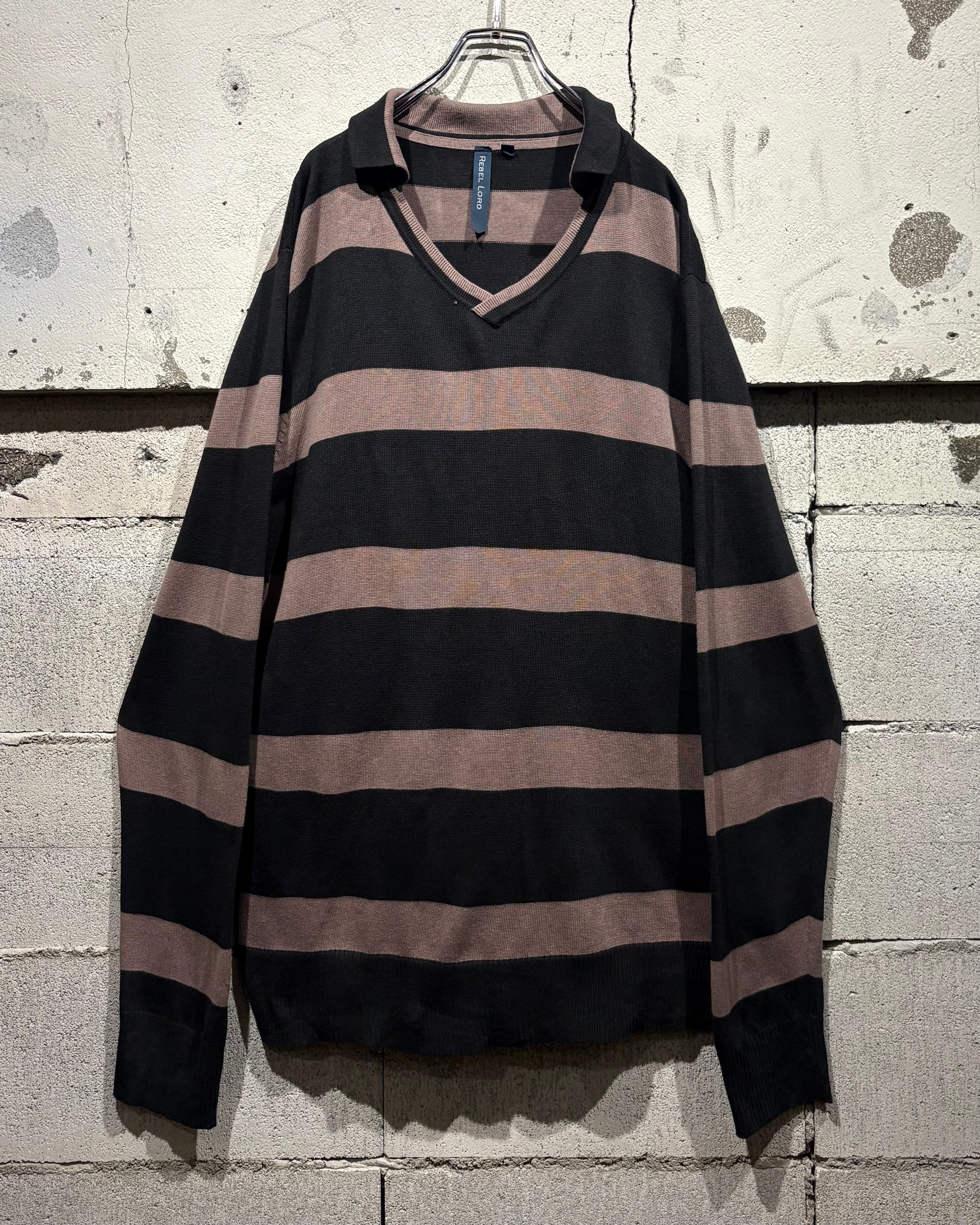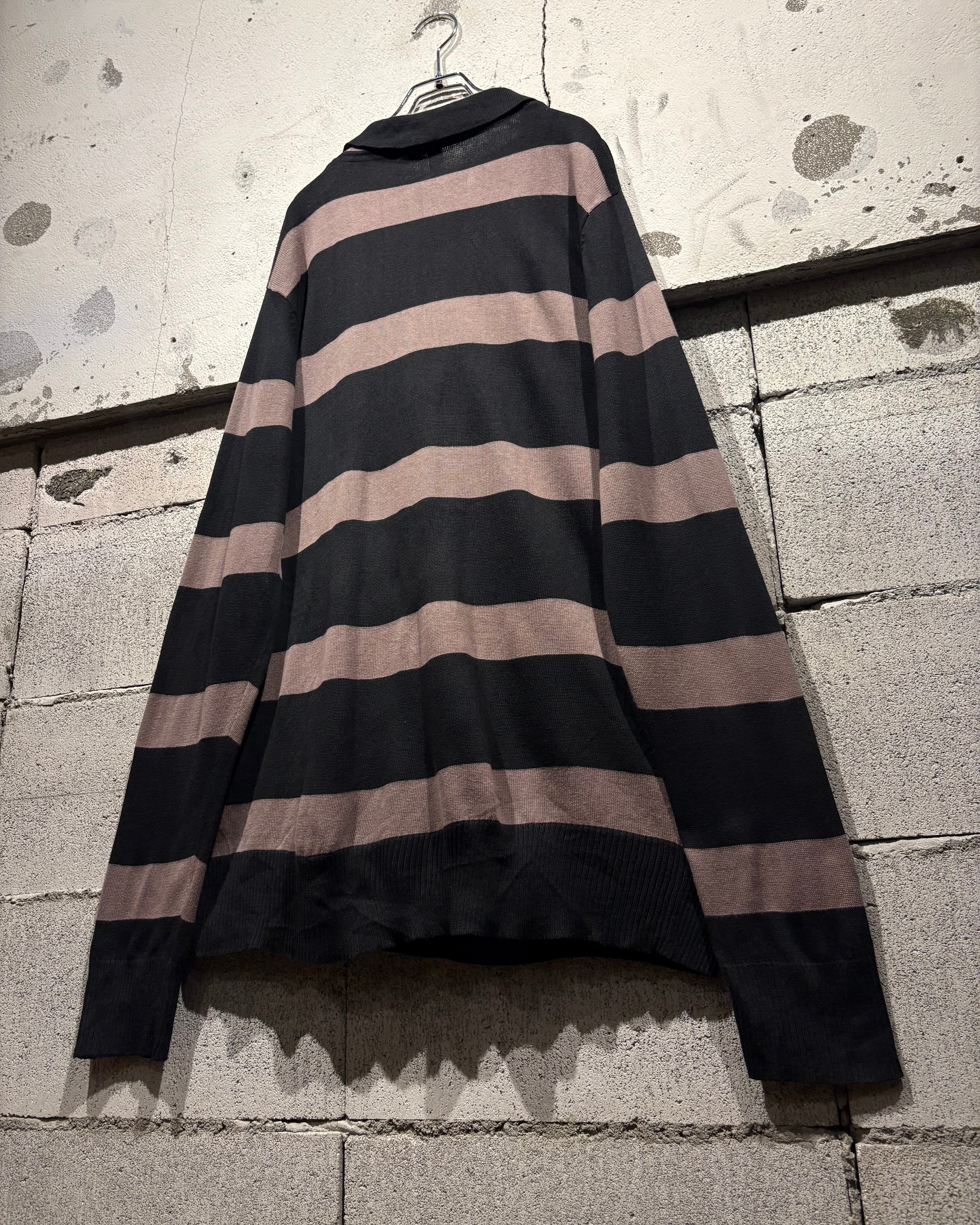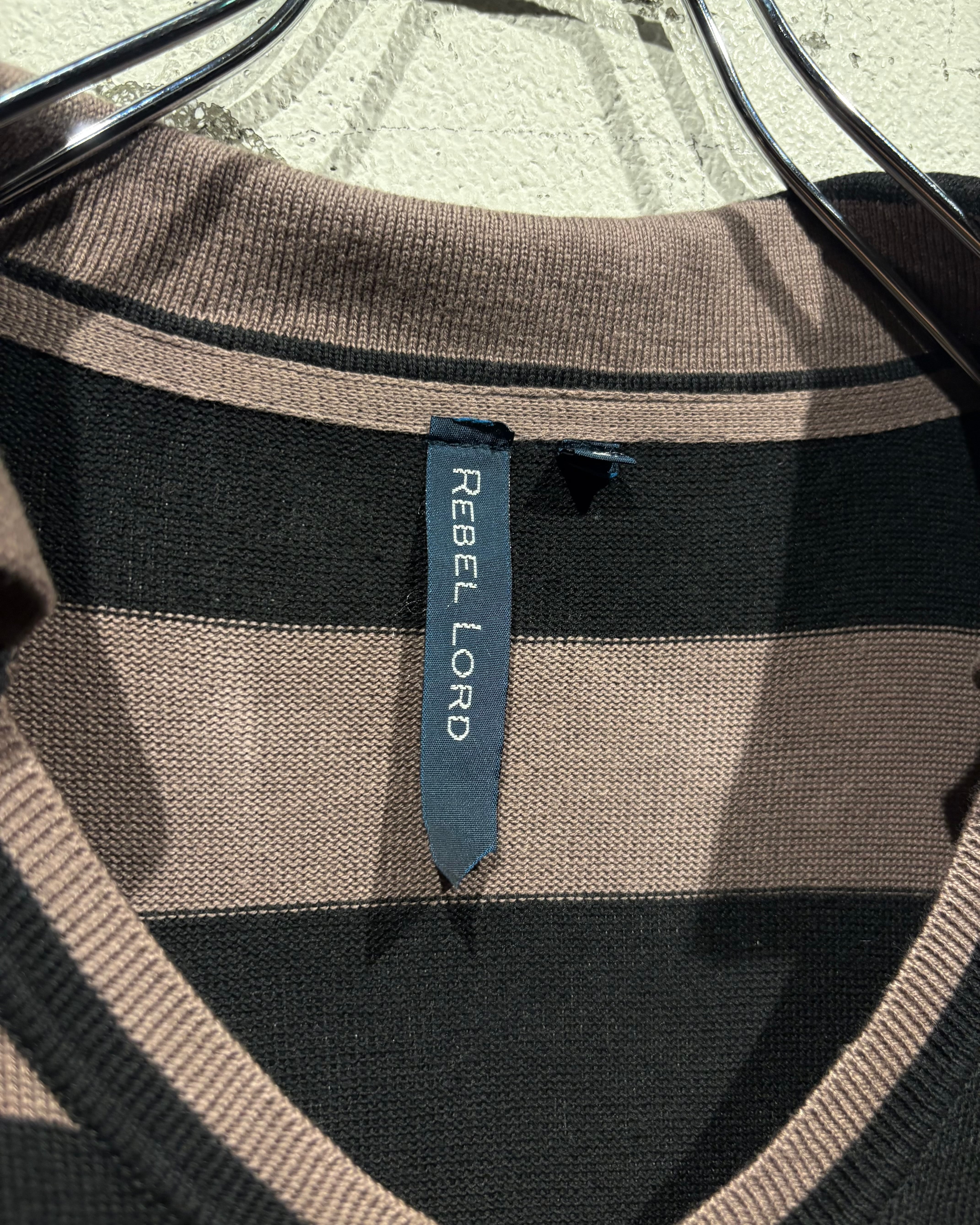 ブラックをベースにブラウンがかったスモーキーなカラーを組み合わせたボーダーパターンで、太めのピッチで表現されたボーダーがインパクトを持ちながらも、落ち着いた色味によってスタイリングに馴染みやすい仕上がりとなっています。