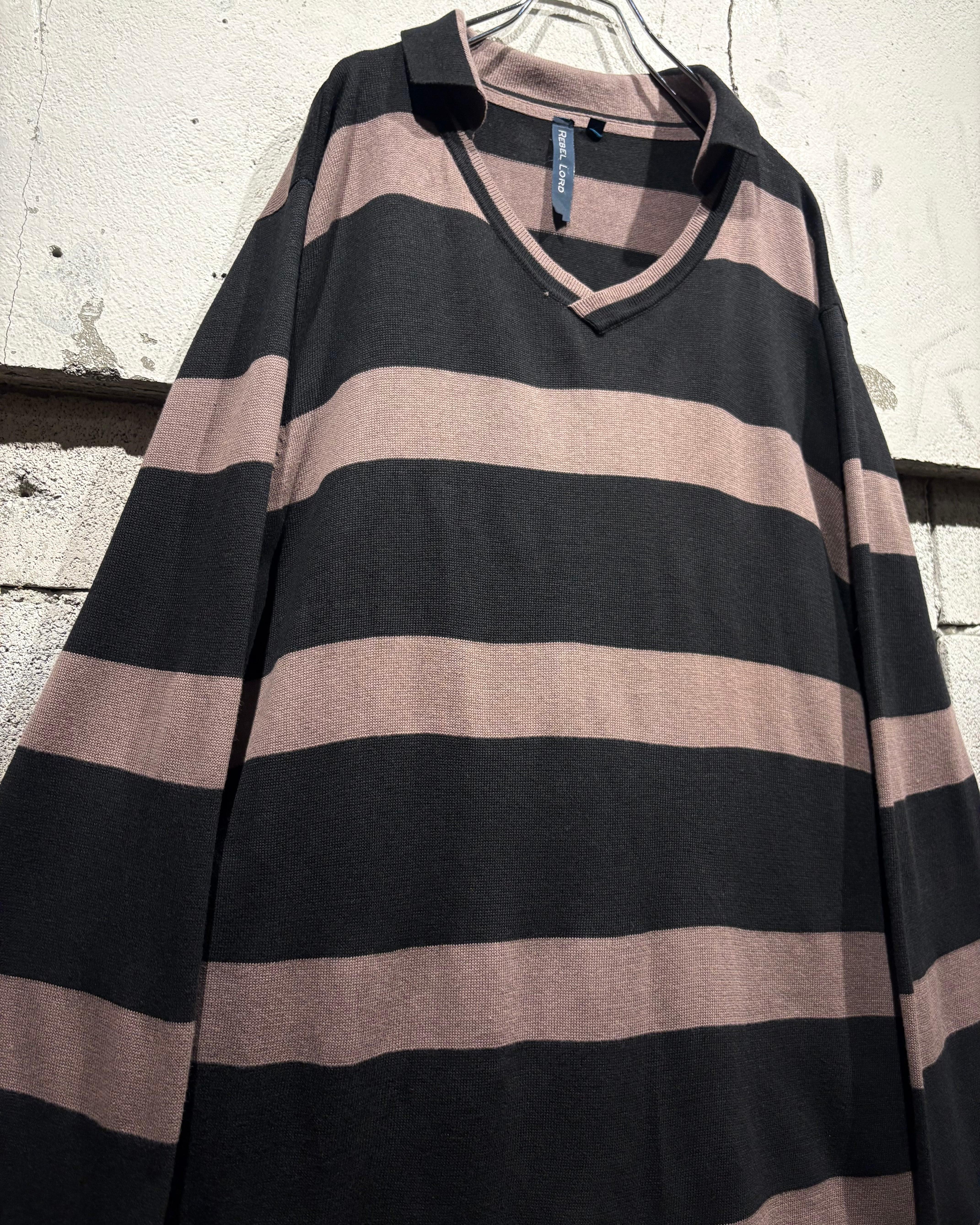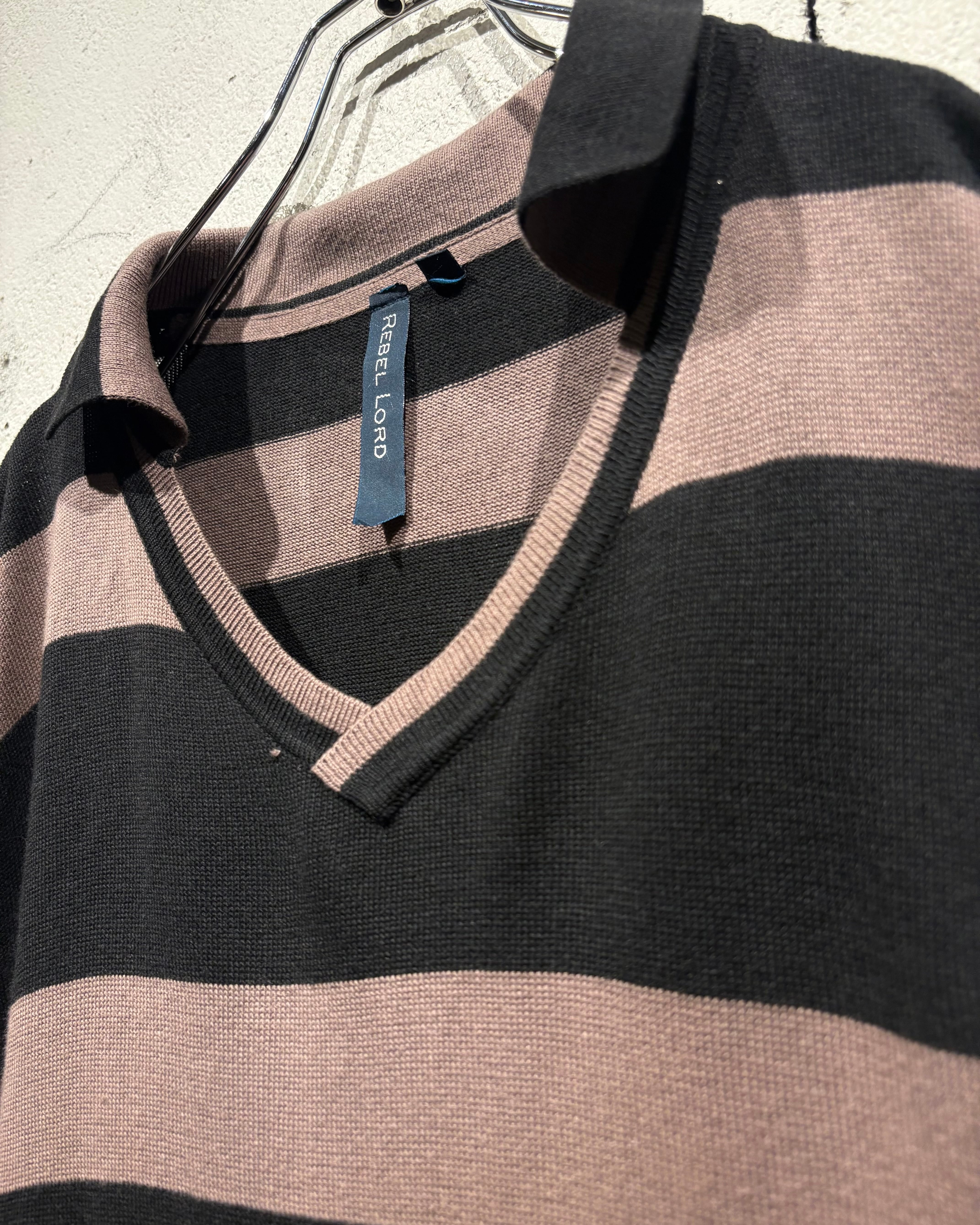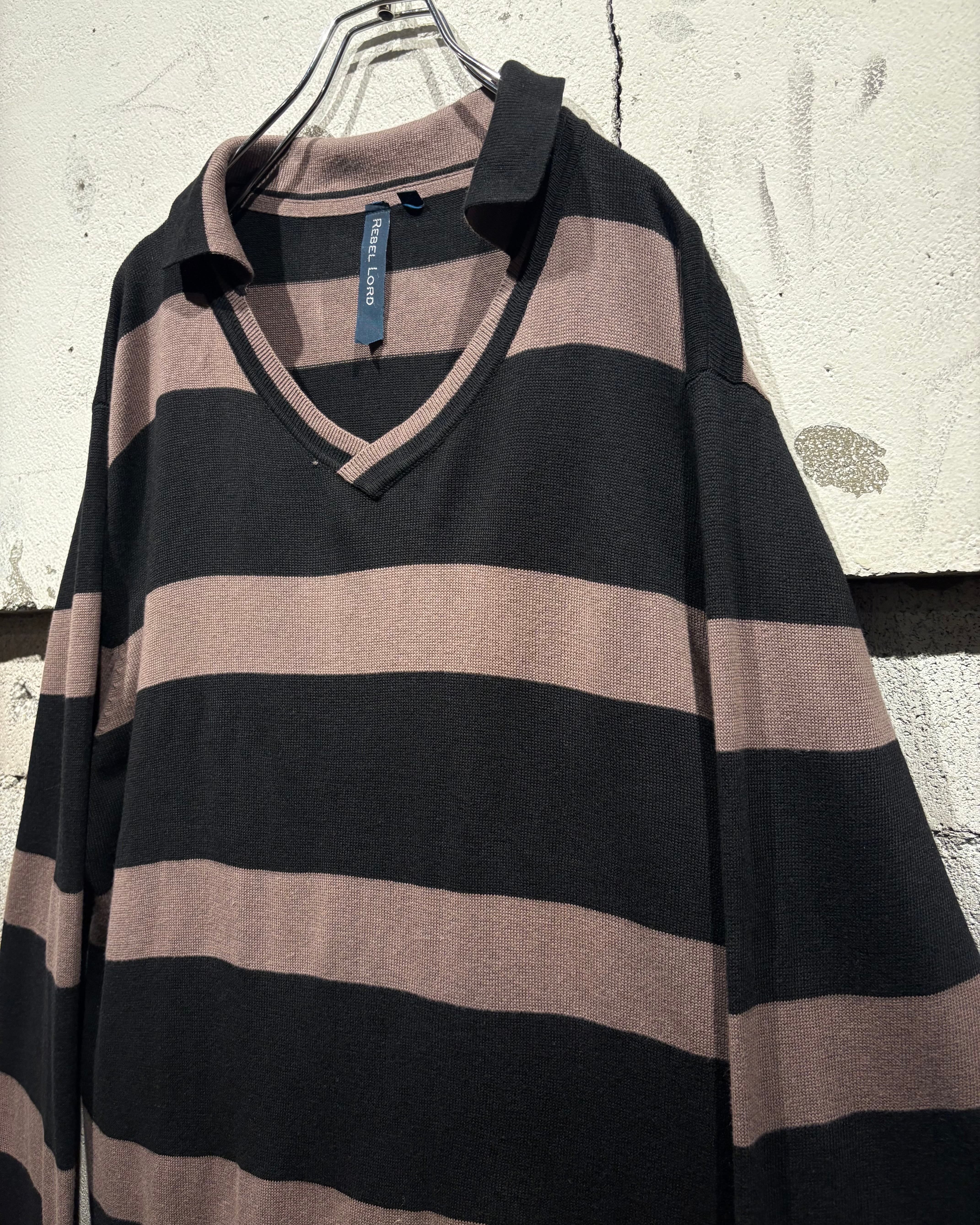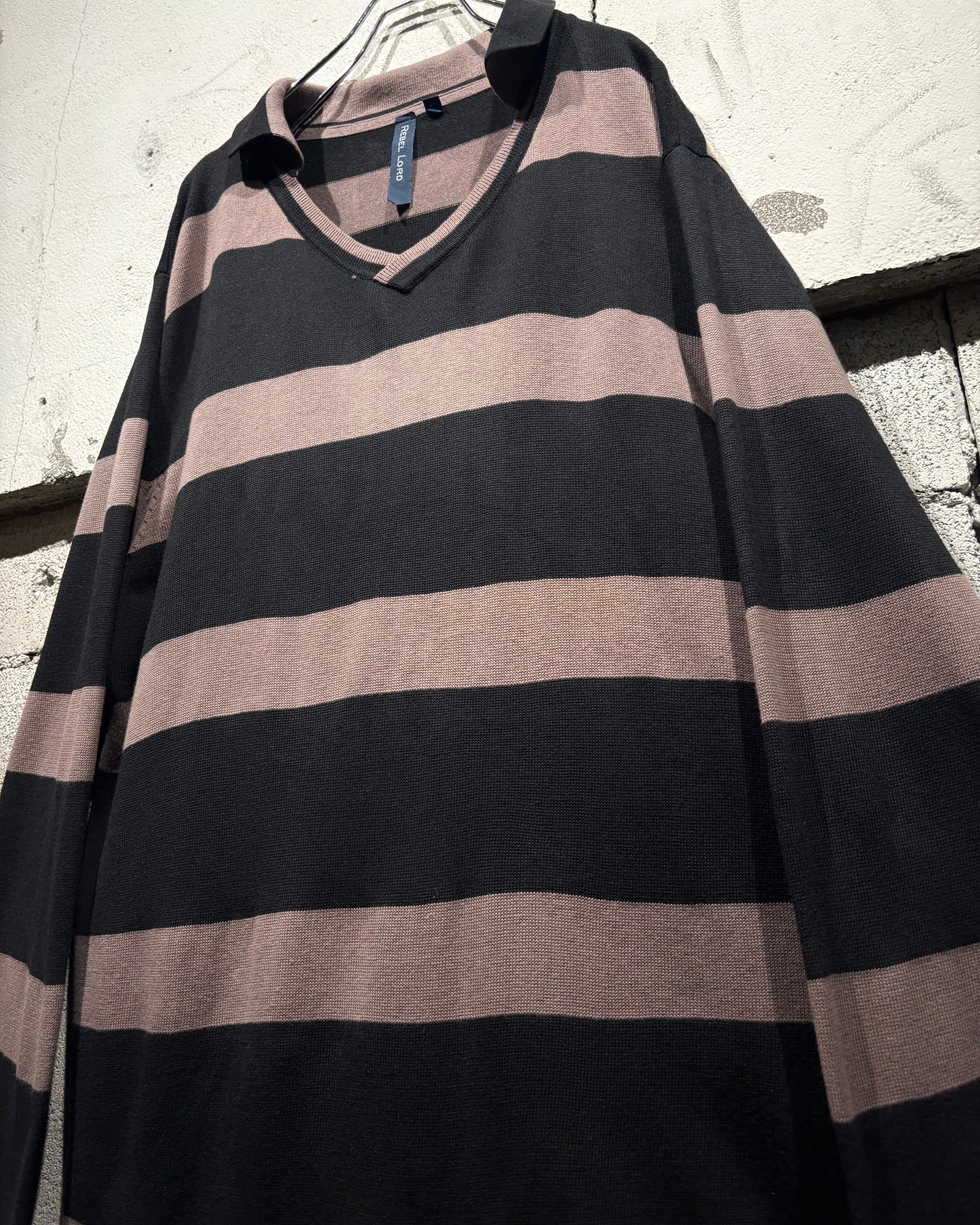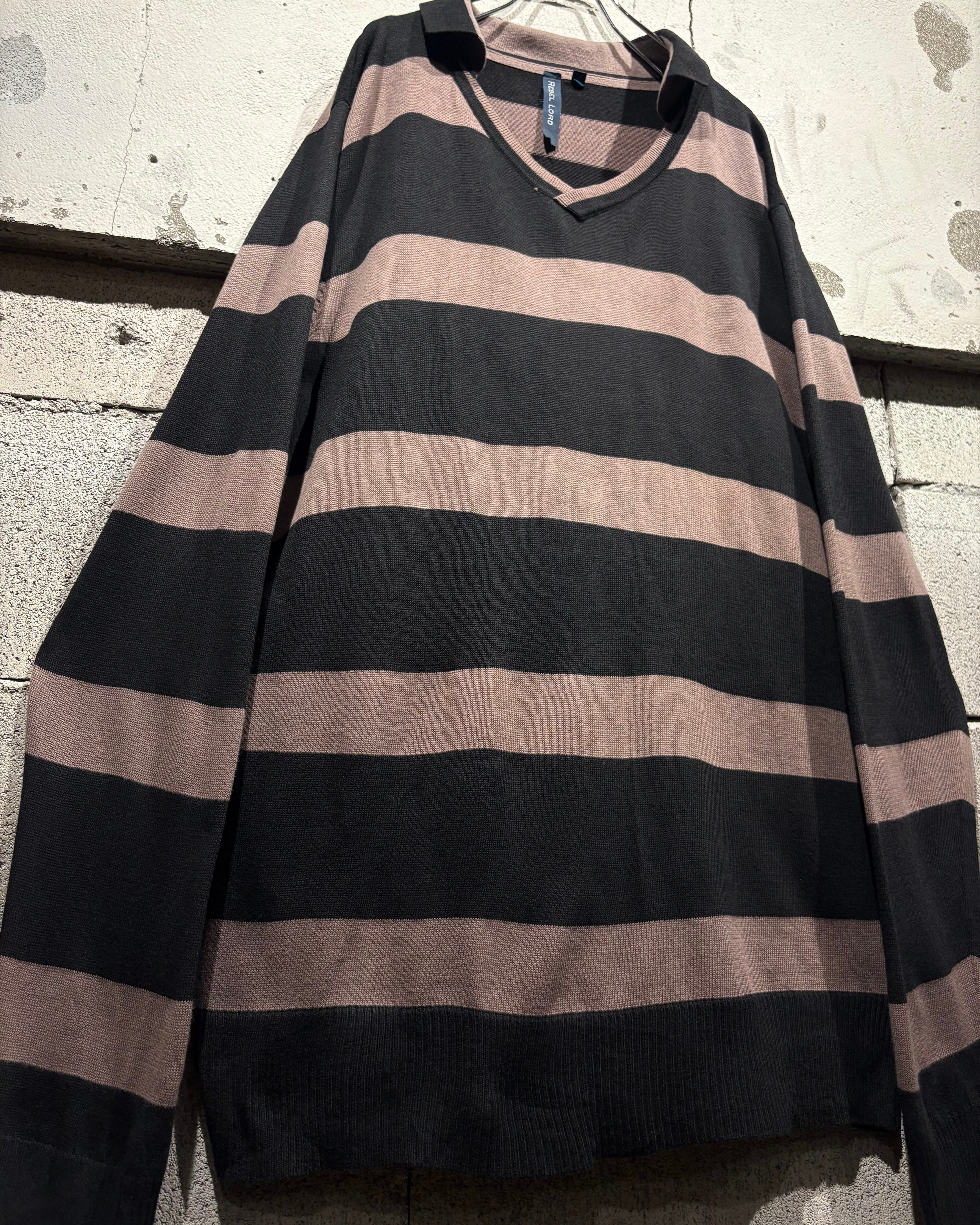 ブラックをベースにブラウンがかったスモーキーなカラーを組み合わせたボーダーパターンで、太めのピッチで表現されたボーダーがインパクトを持ちながらも、落ち着いた色味によってスタイリングに馴染みやすい仕上がりとなっています。