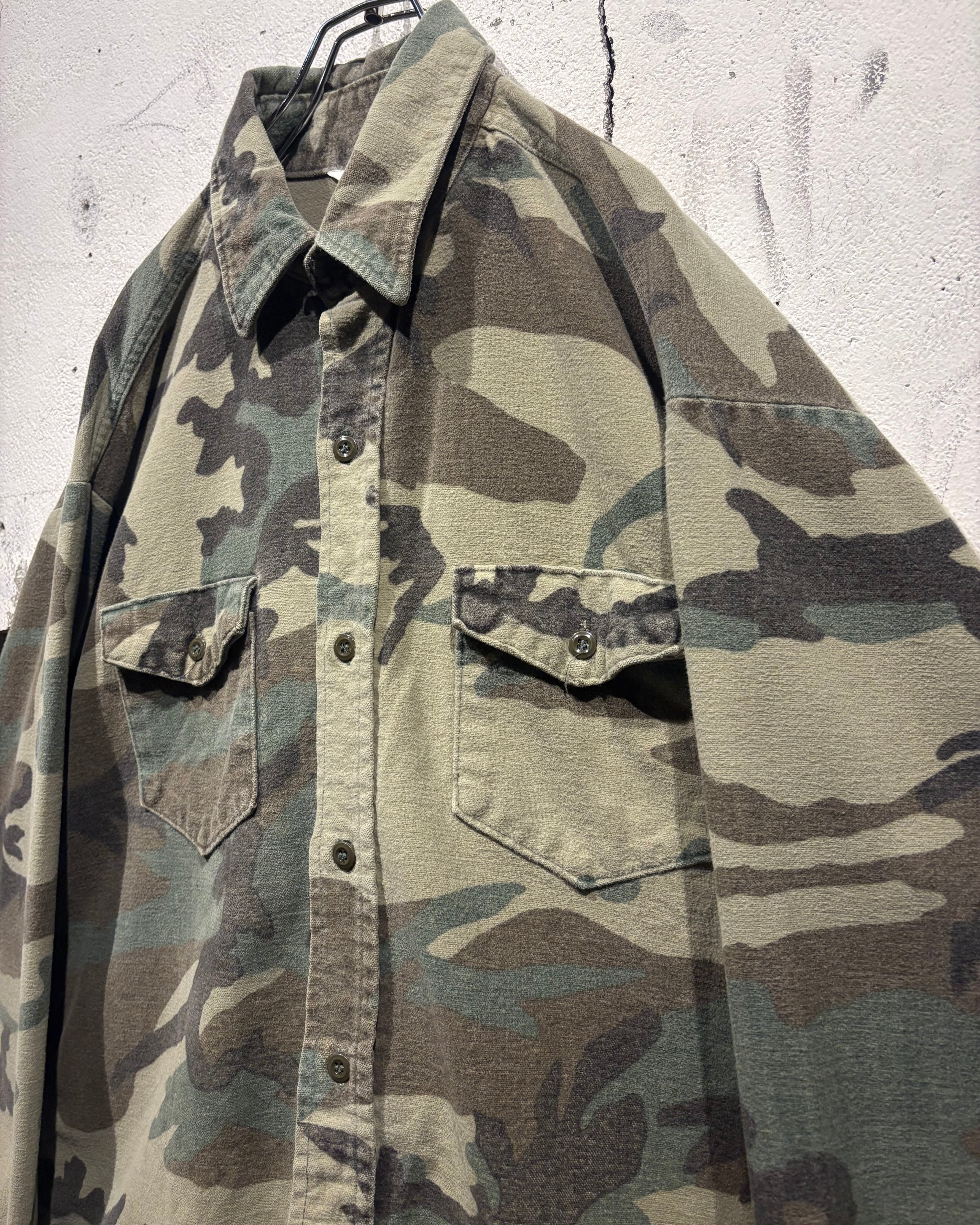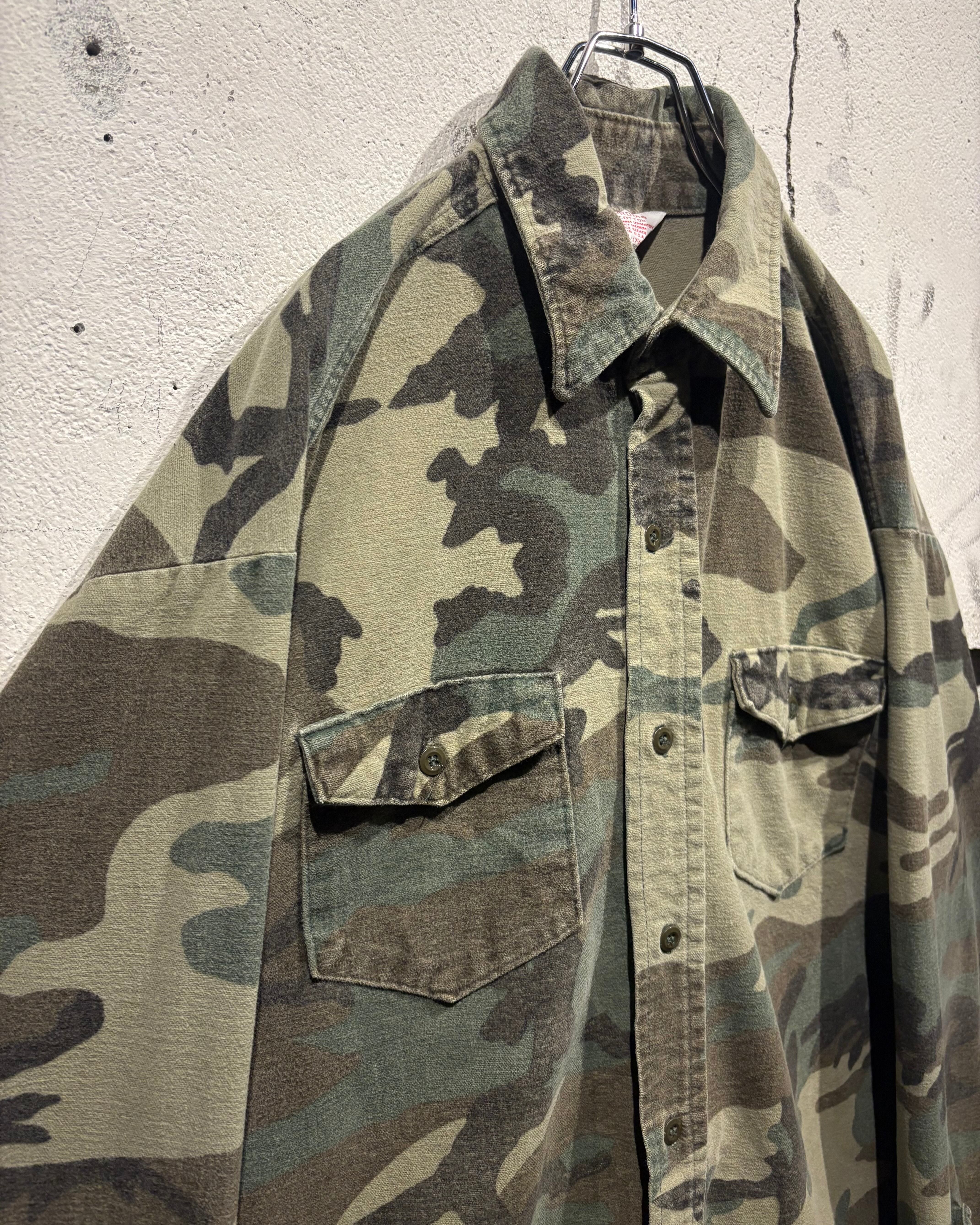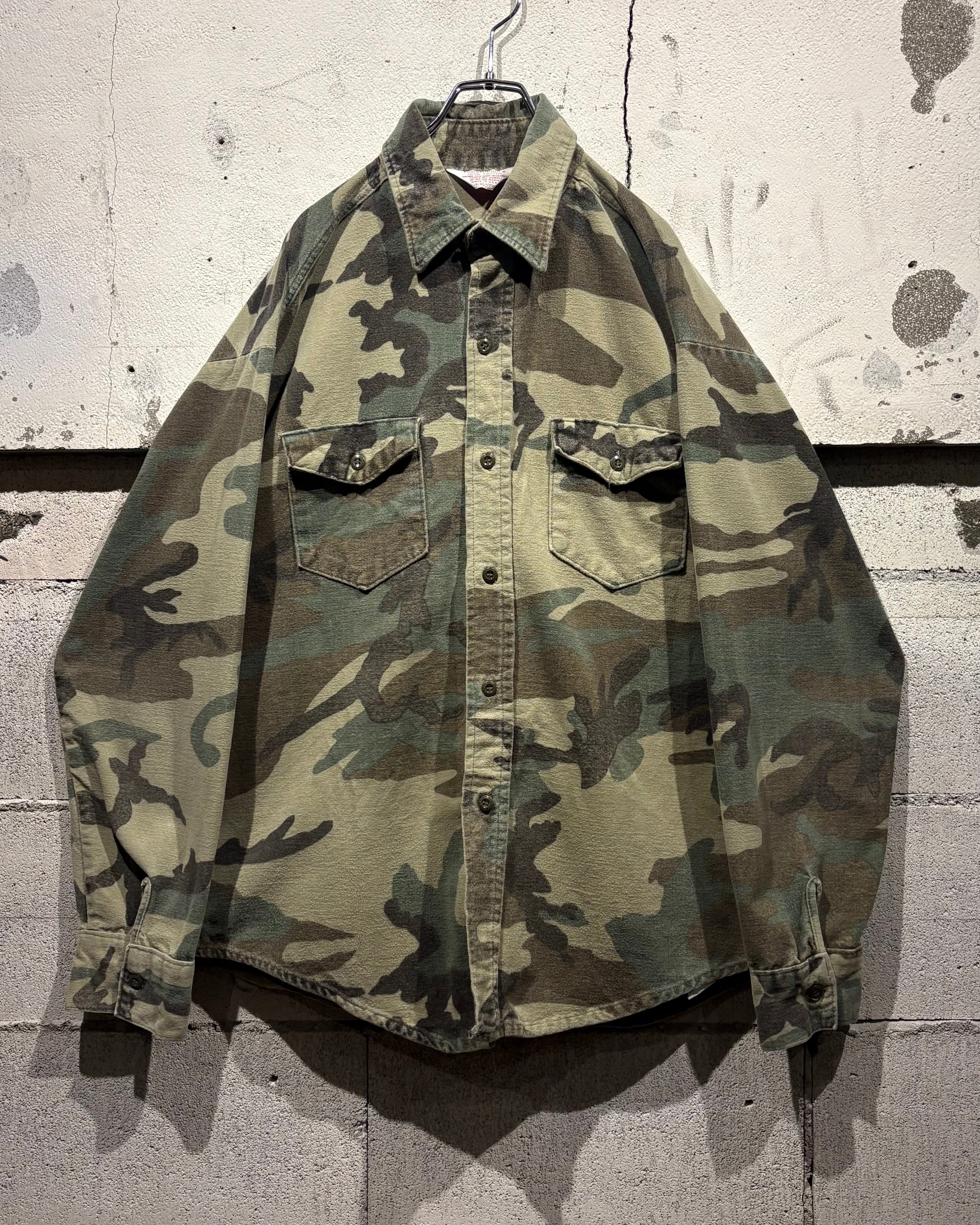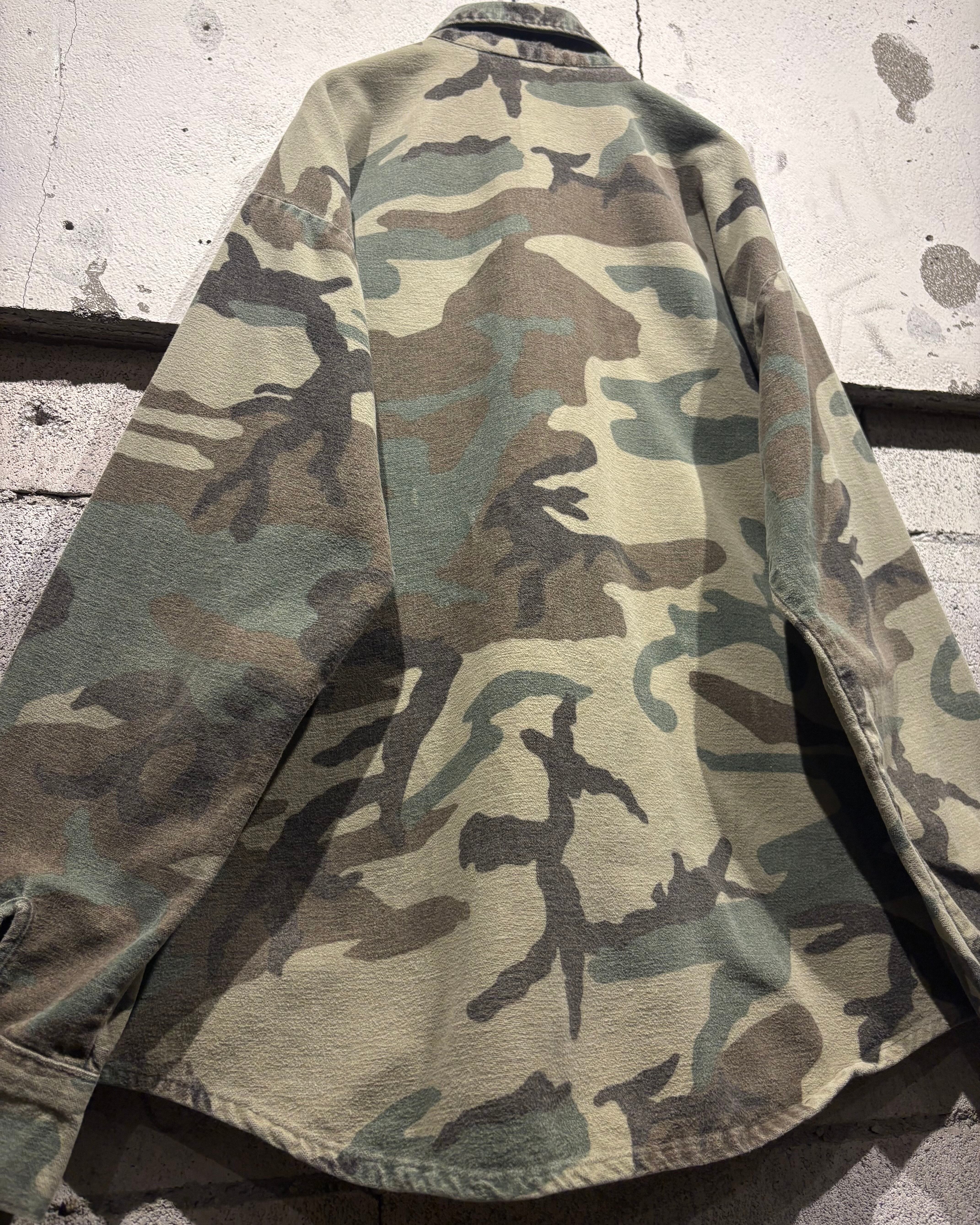 トレンド感のある、ウッドランドカモ柄を落とし込んだ70's〜80'sヴィンテージのシャモアシャツ。