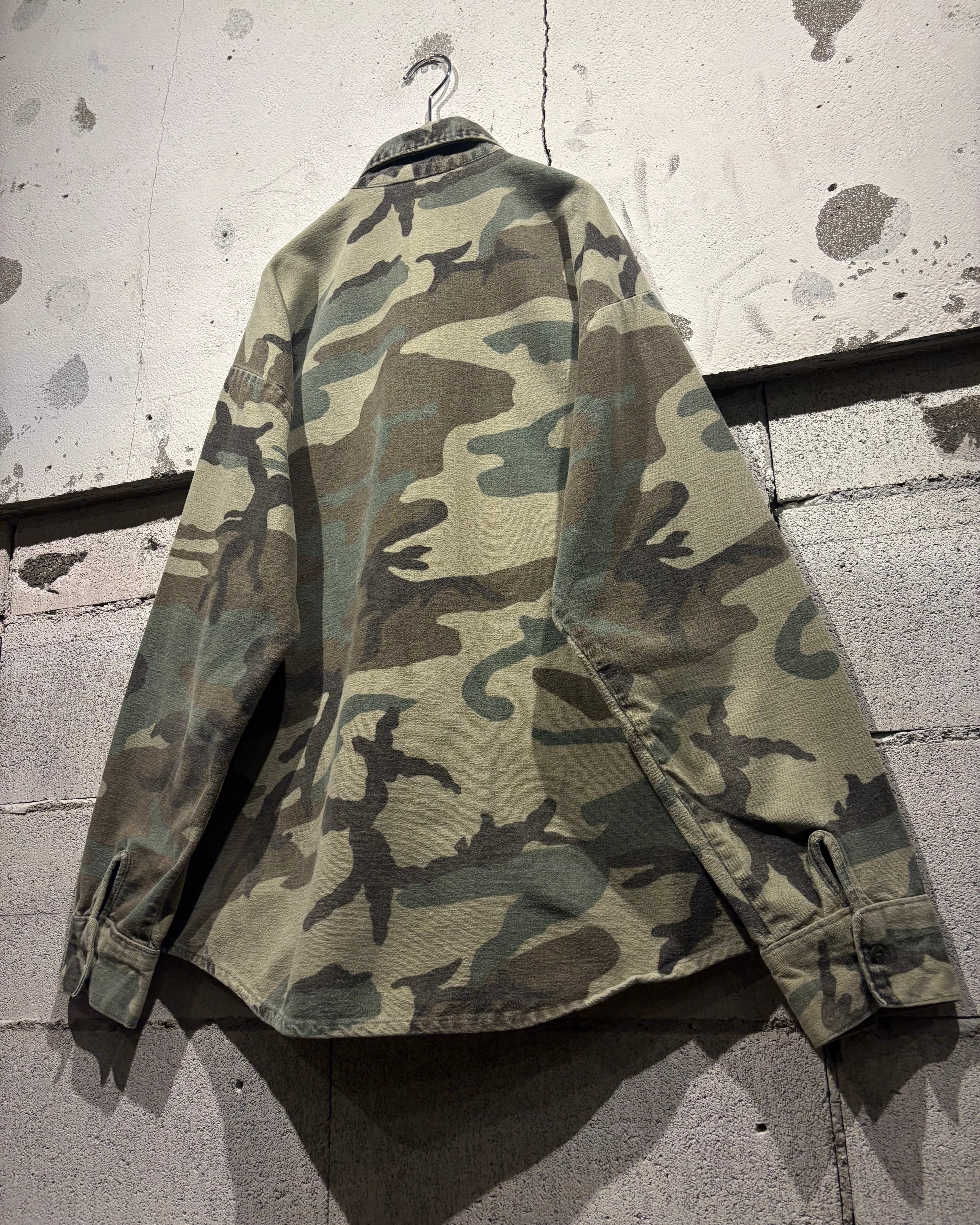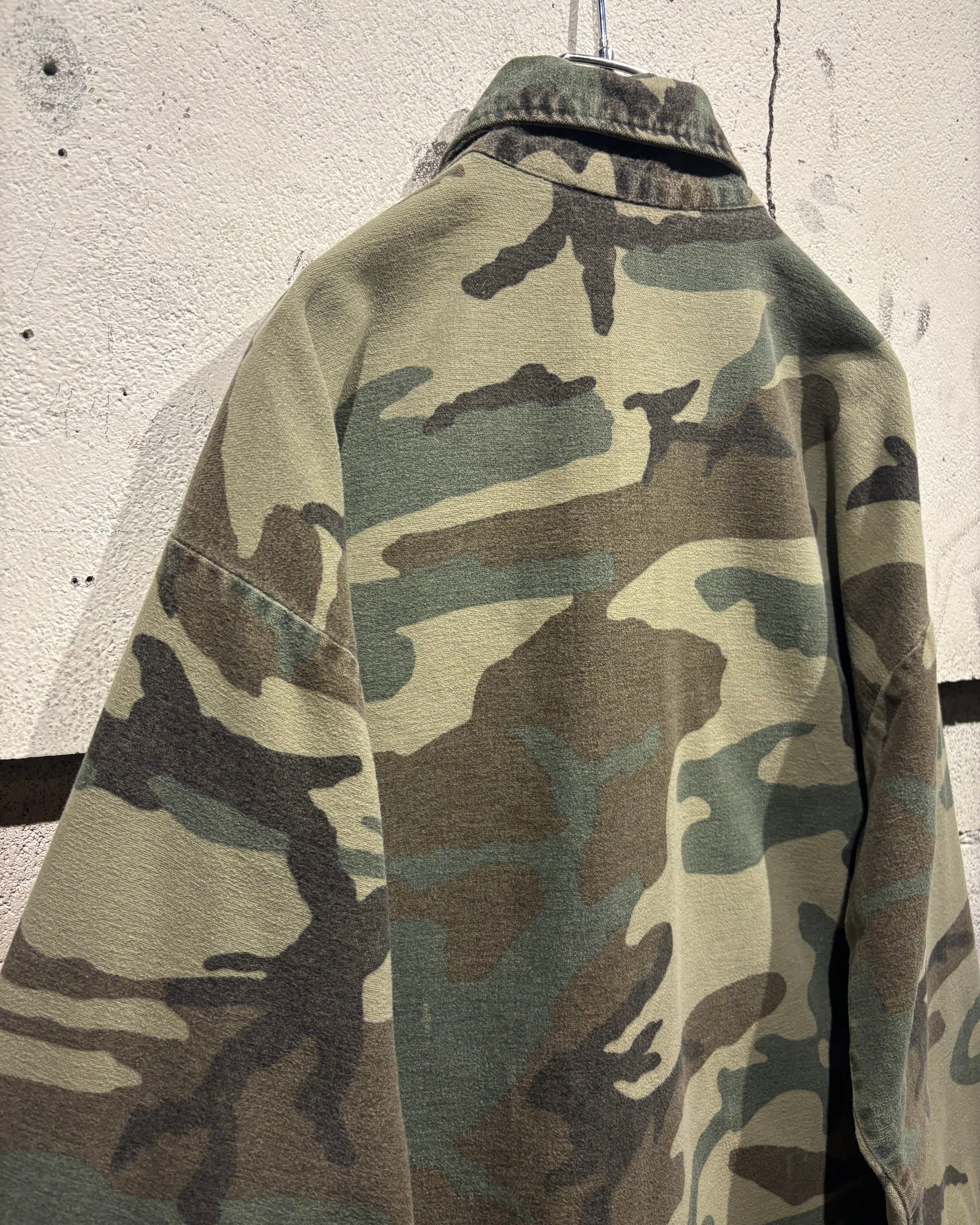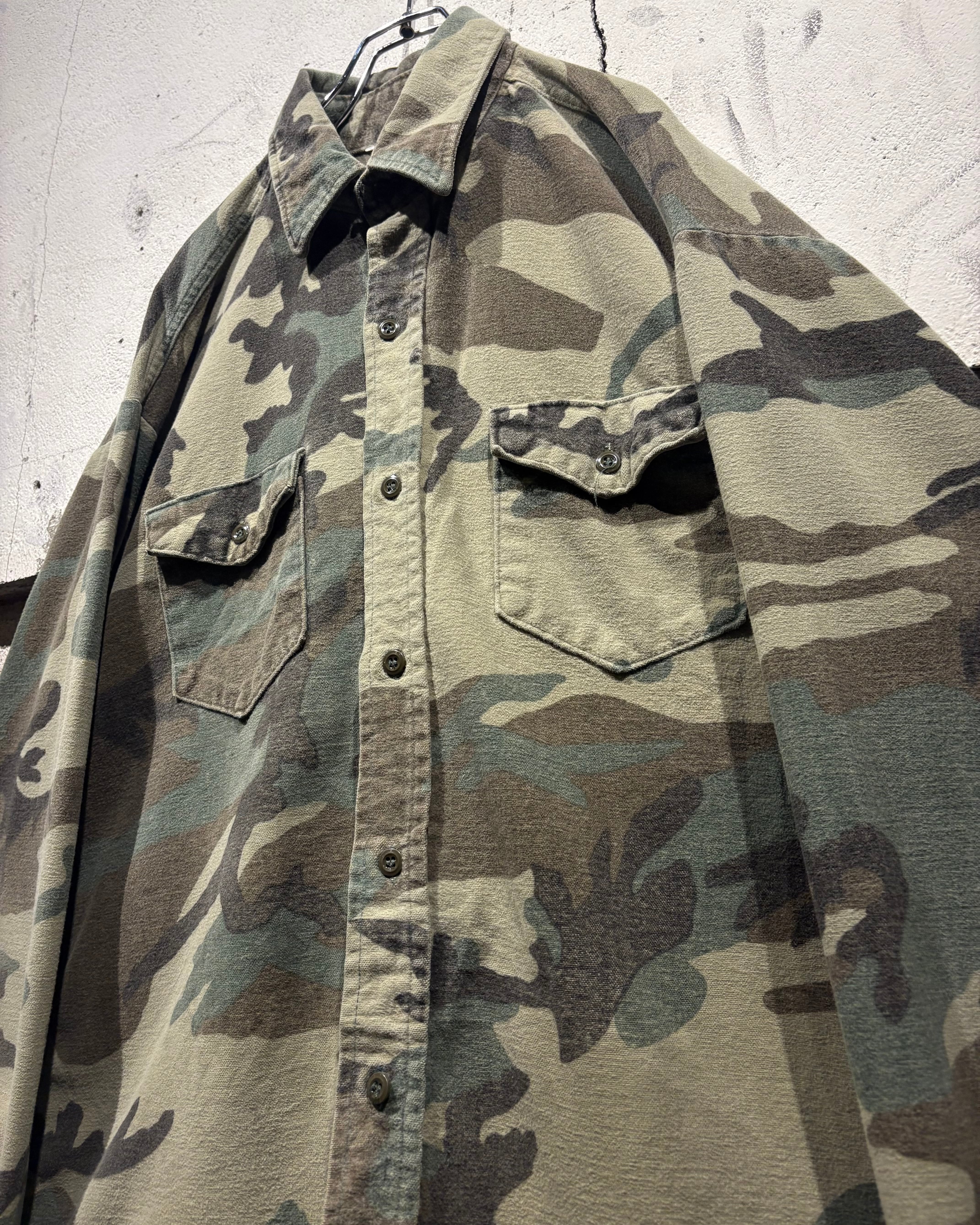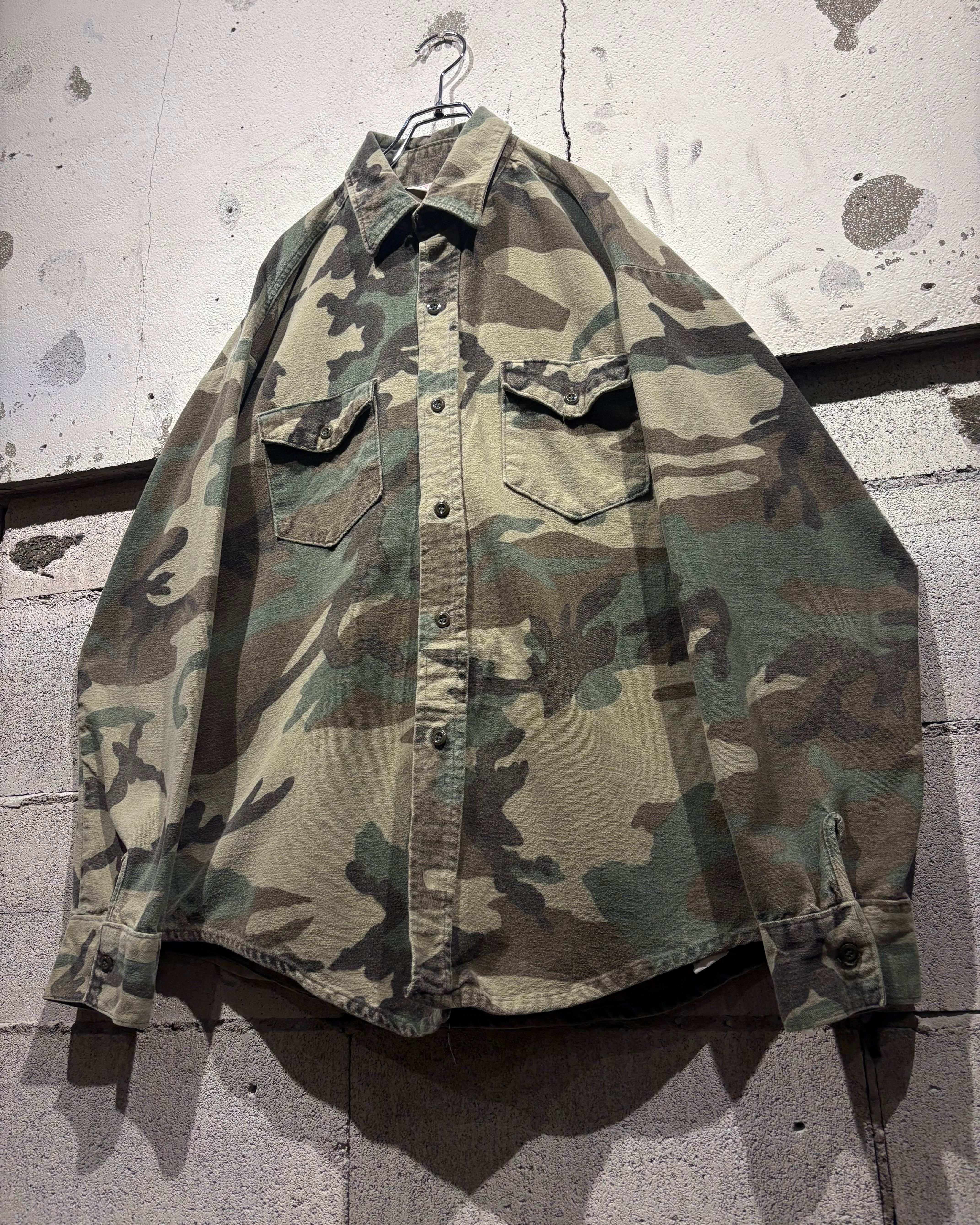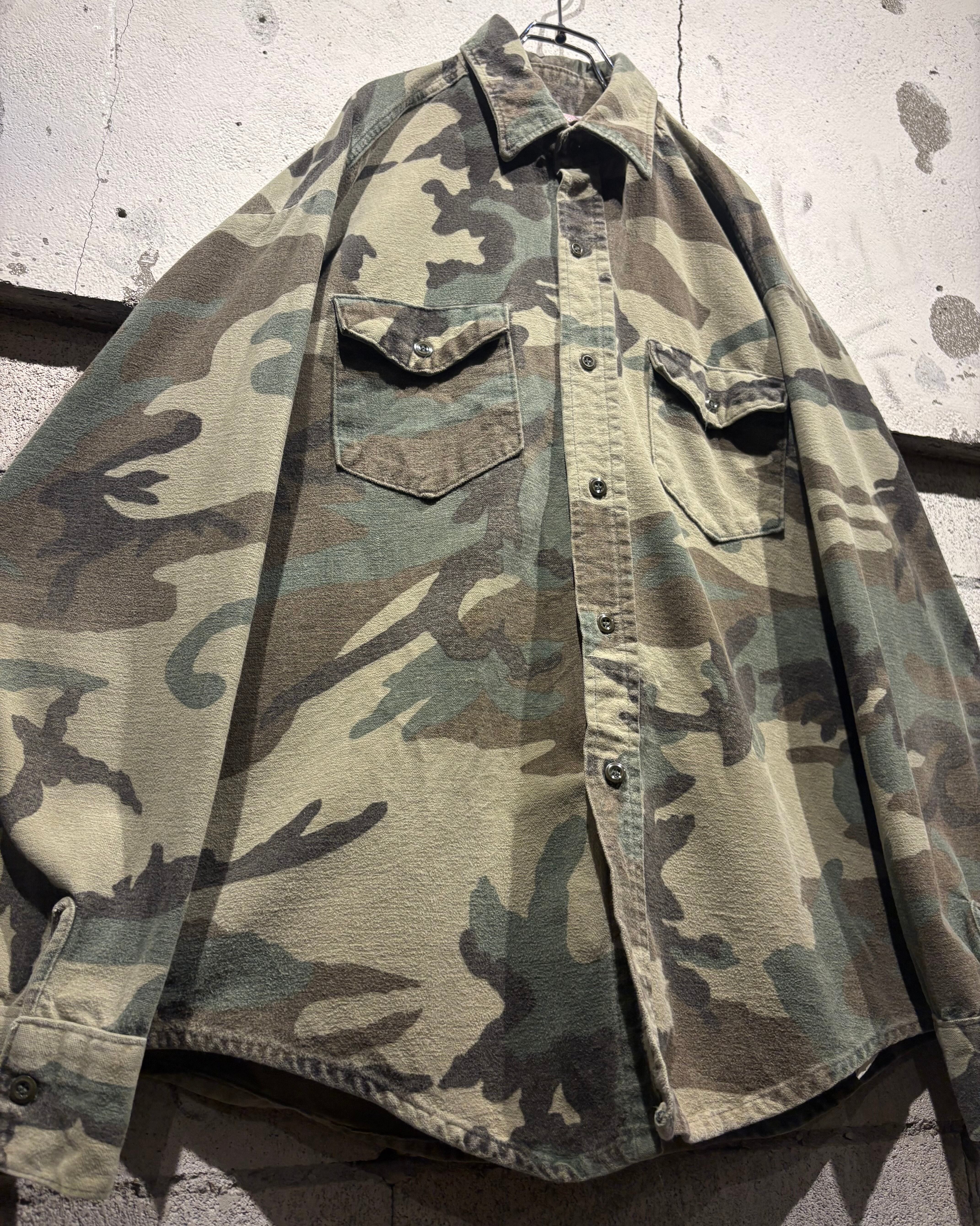 トレンド感のある、ウッドランドカモ柄を落とし込んだ70's〜80'sヴィンテージのシャモアシャツ。