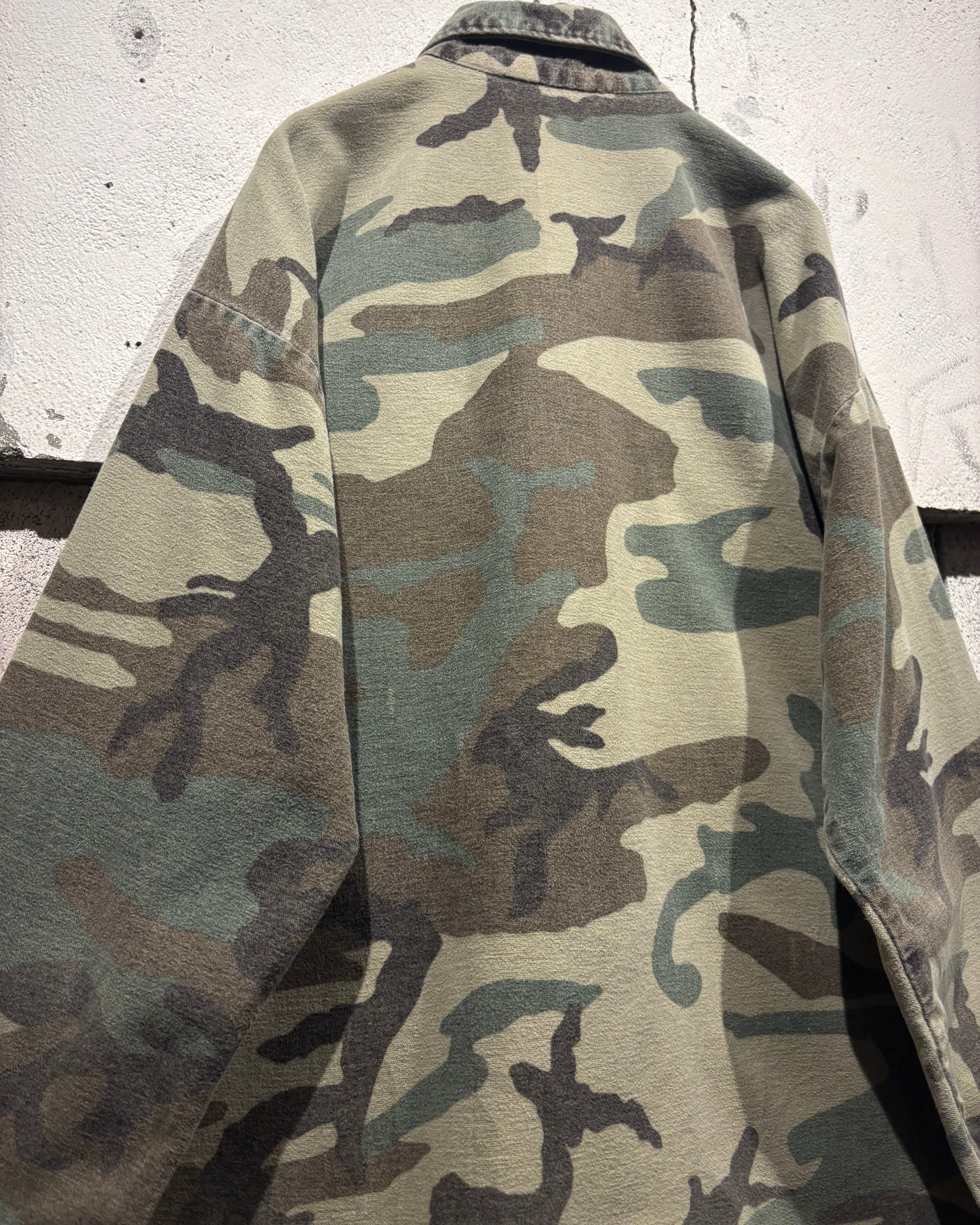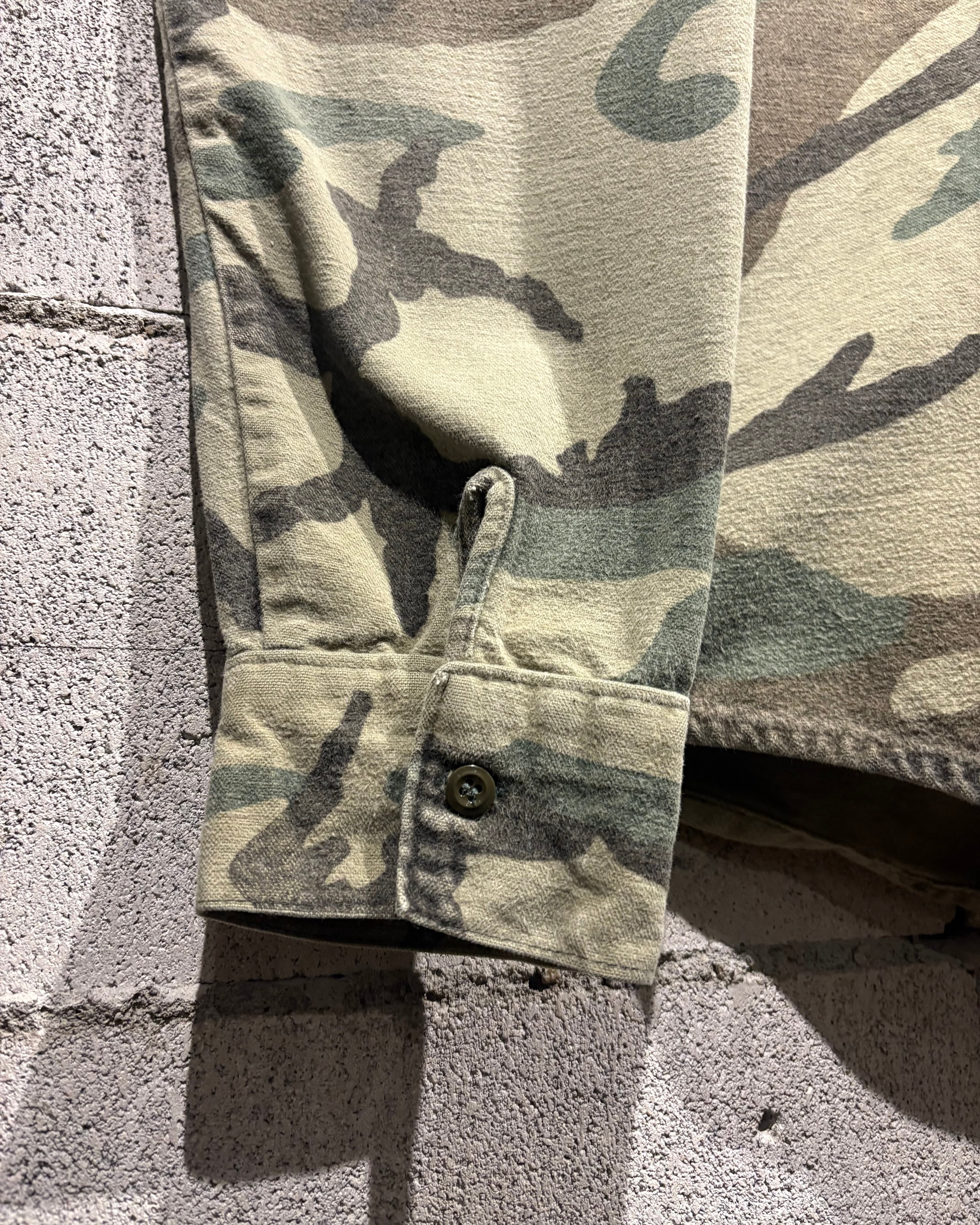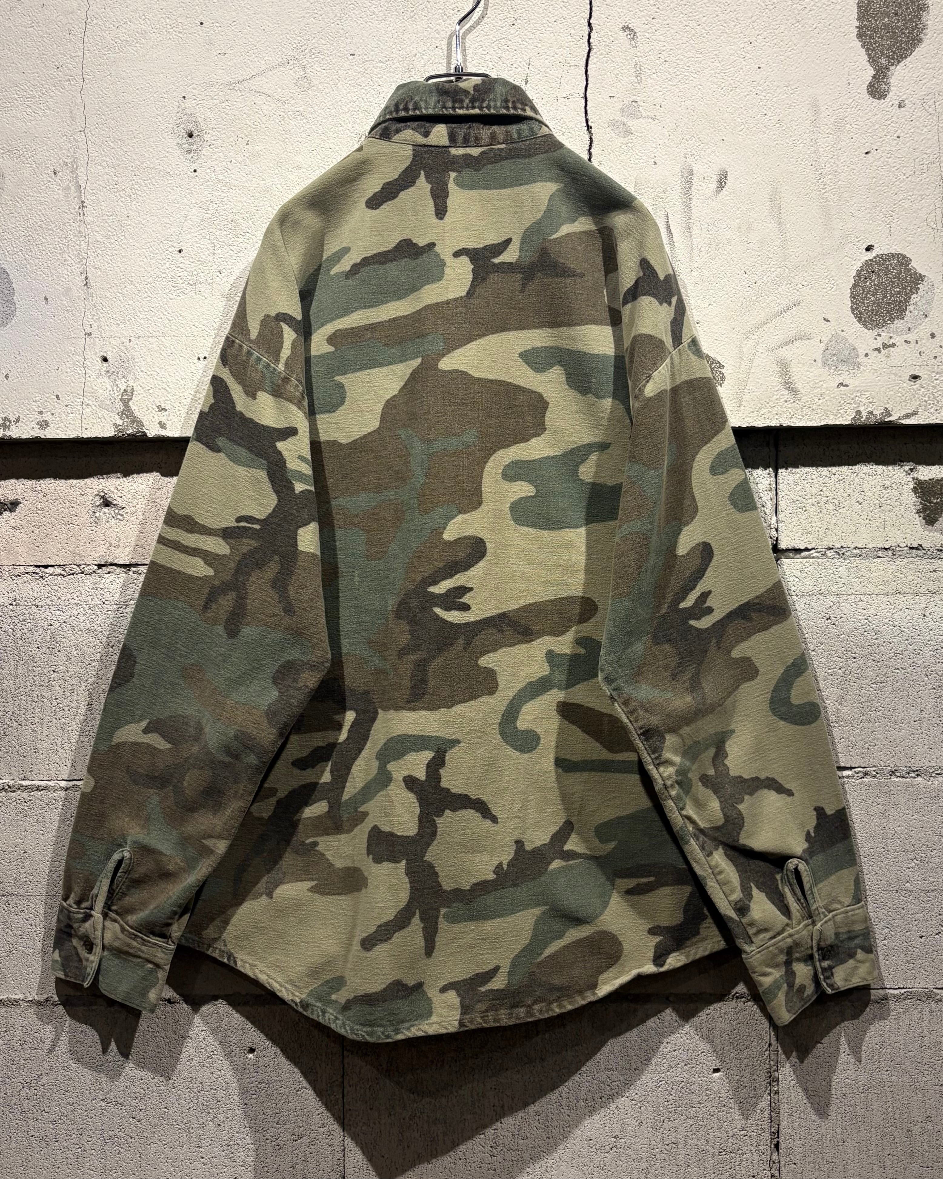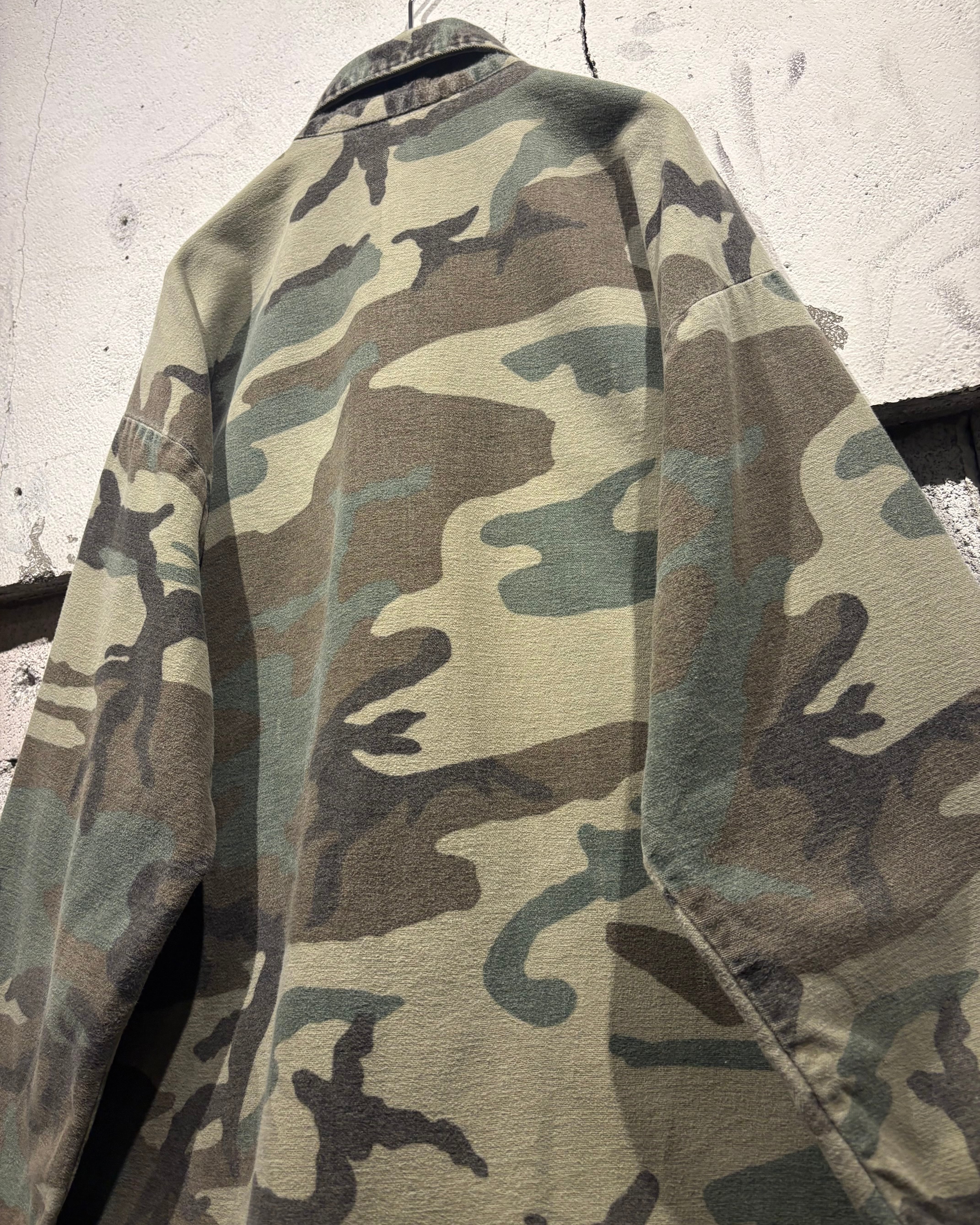 トレンド感のある、ウッドランドカモ柄を落とし込んだ70's〜80'sヴィンテージのシャモアシャツ。