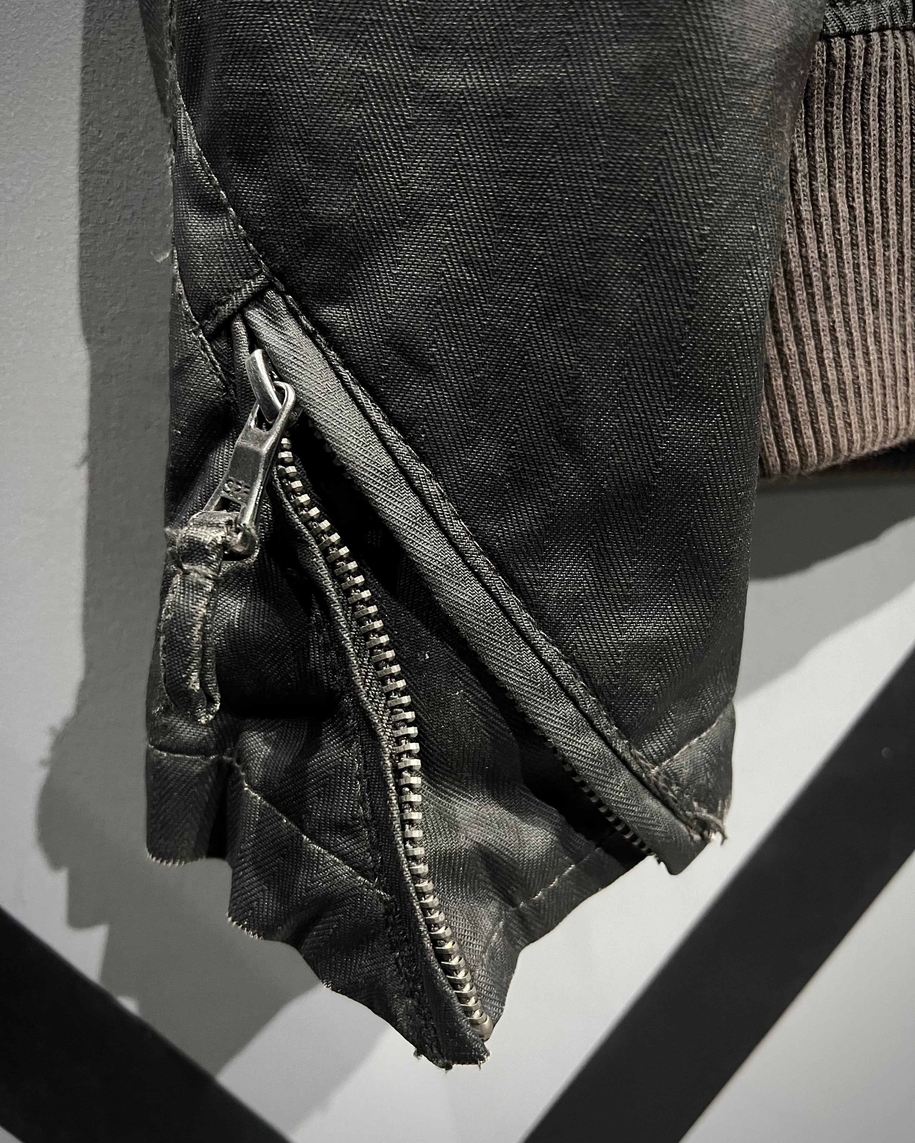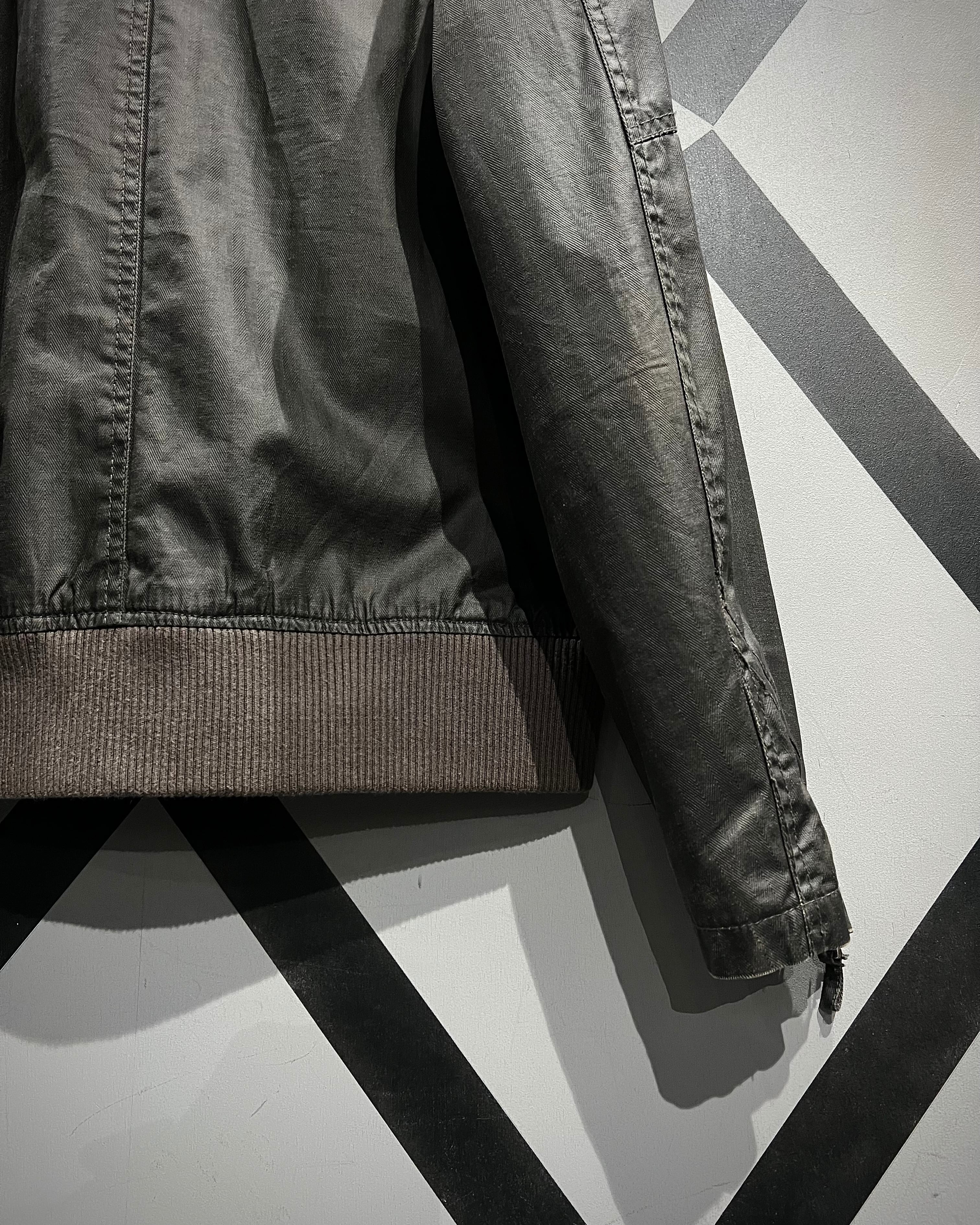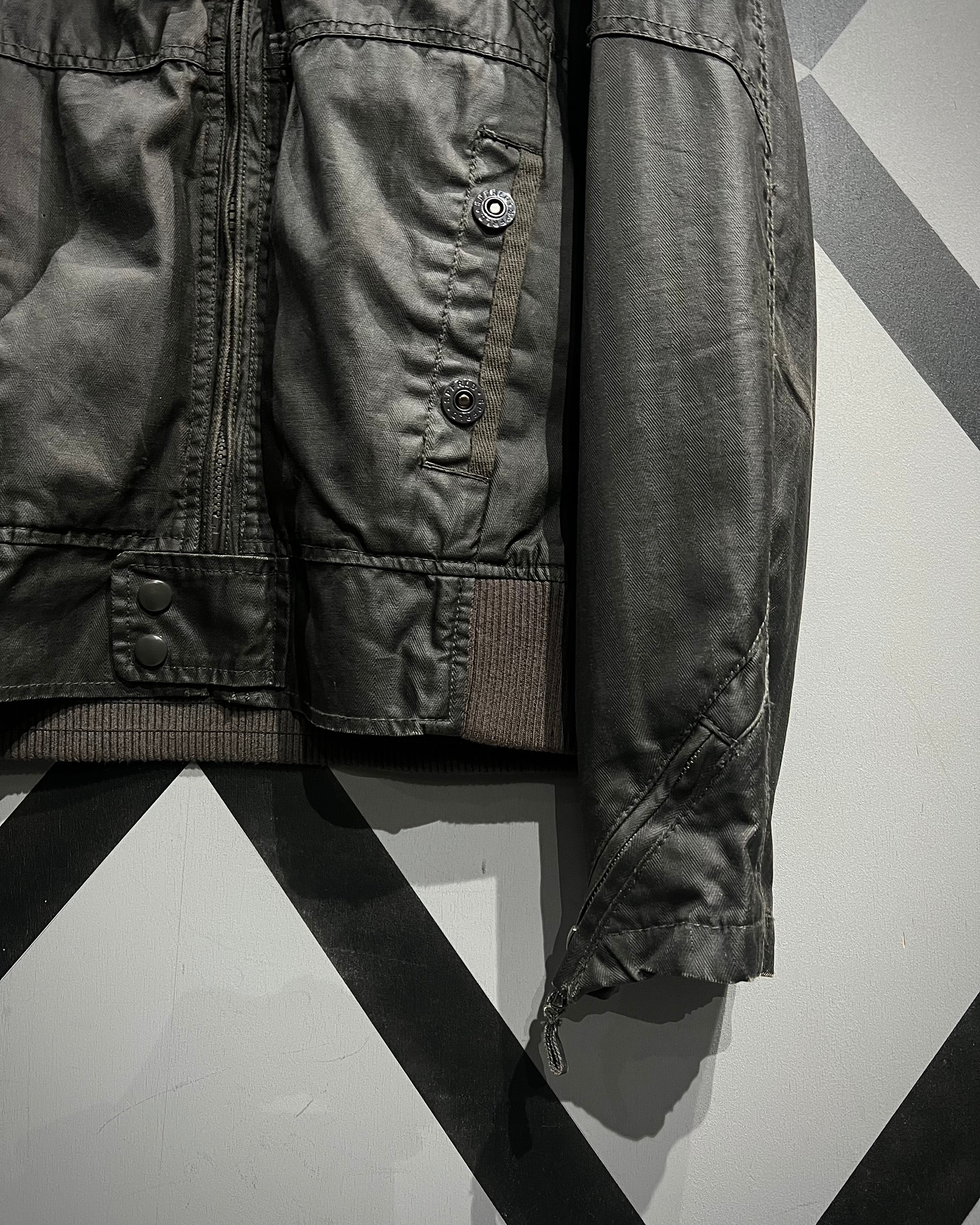 フロントのフラップポケットに加え、サイドにはアクセスしやすいスラッシュポケットを配置。肩のベルト、スタンドカラーに備えられたチンストラップなど、バイカージャケットらしいギミックを忠実に踏襲。袖口には可動域を広げるジップを配し、細部まで精巧に作り込まれたディテールが服好きの心をくすぐります。