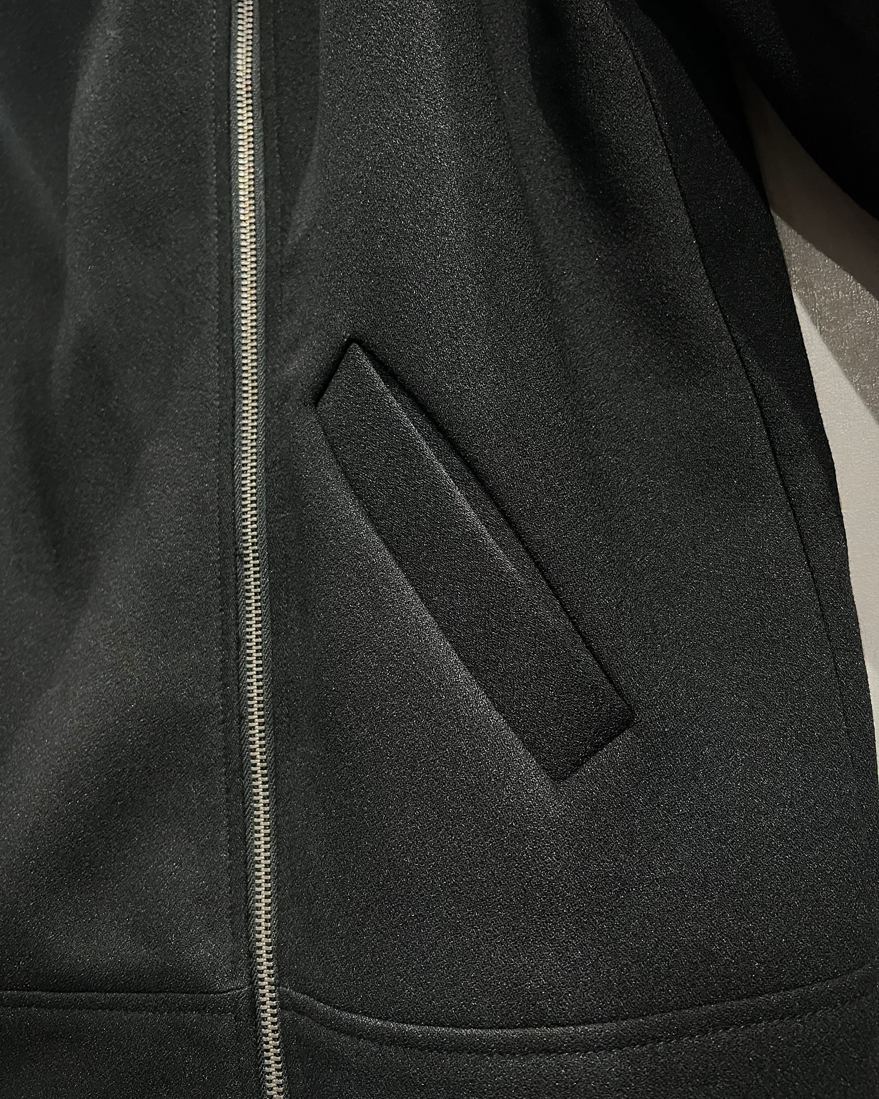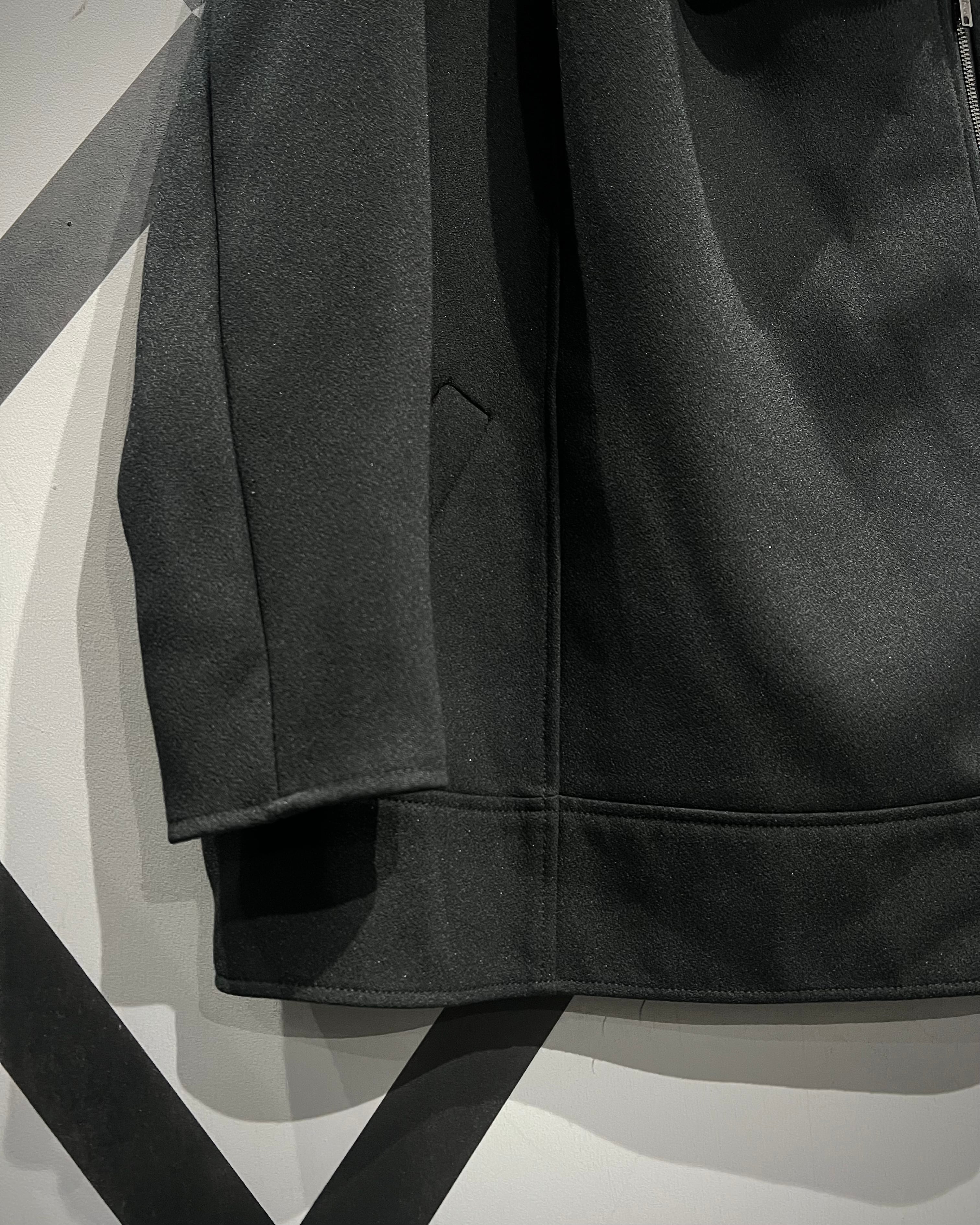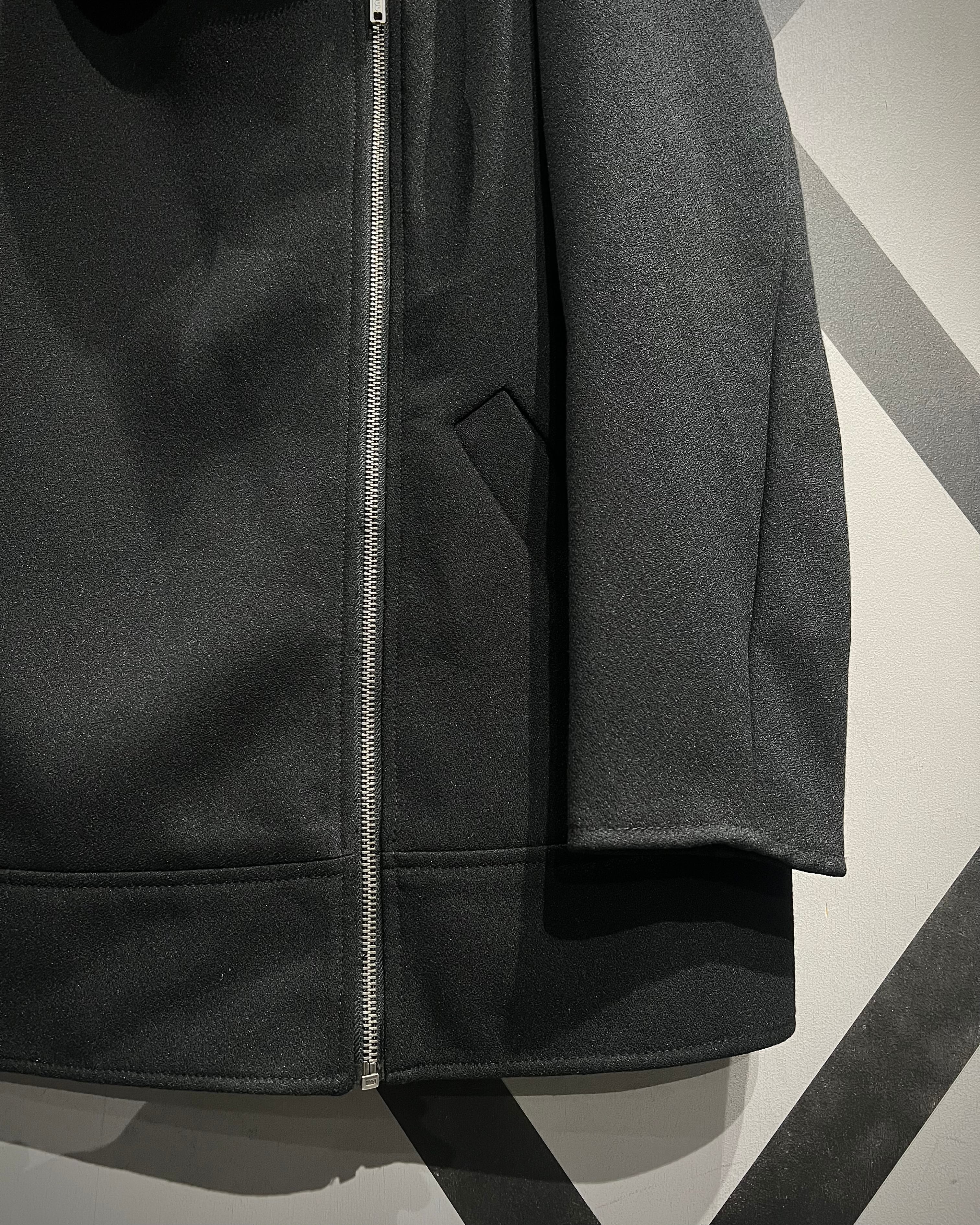 レザーで仕立てられることの多いライダースデザインを、上質でしなやかなファブリックで表現することで、ハードさを抑えつつどこかモードな空気感を纏った1着へと昇華しています。