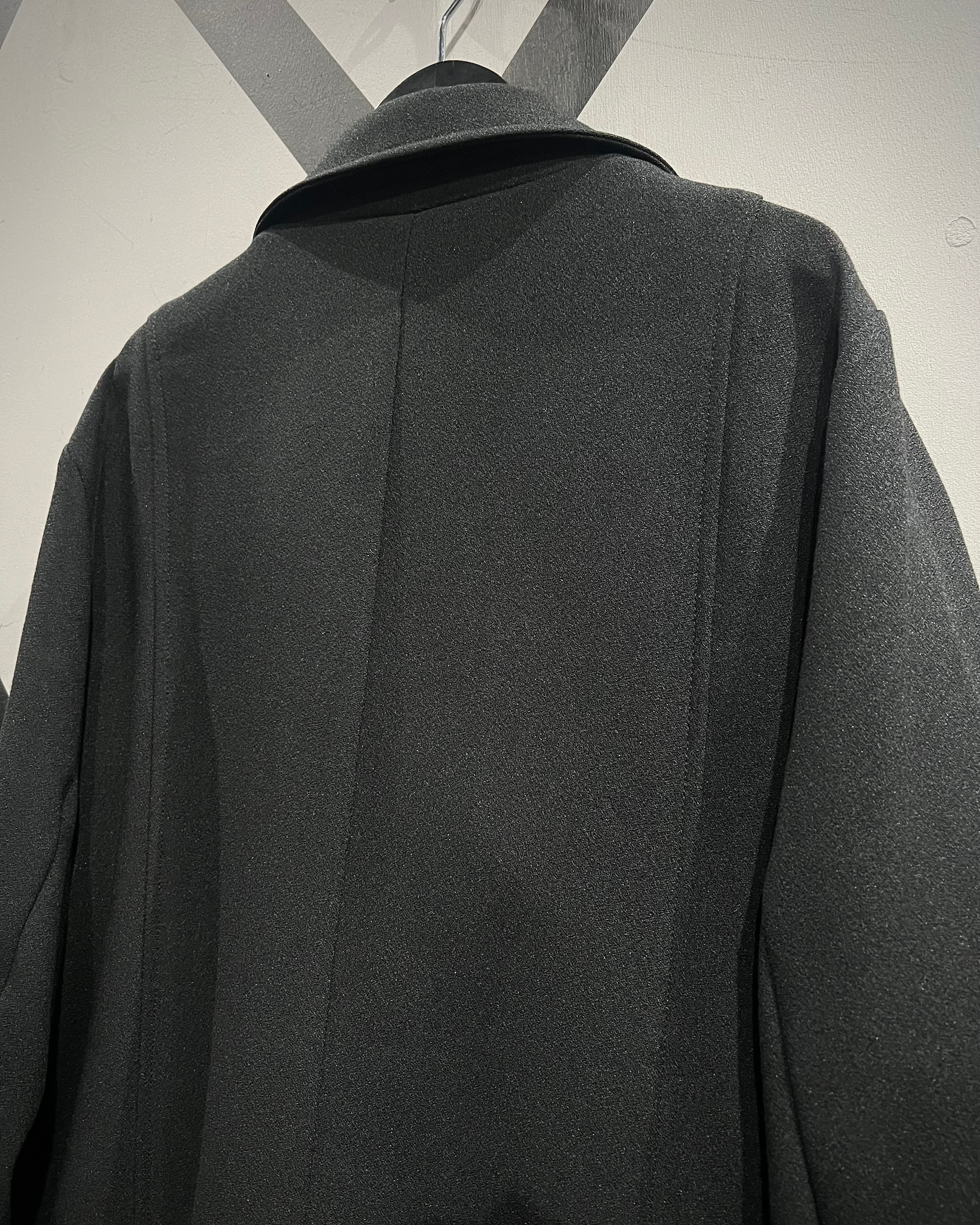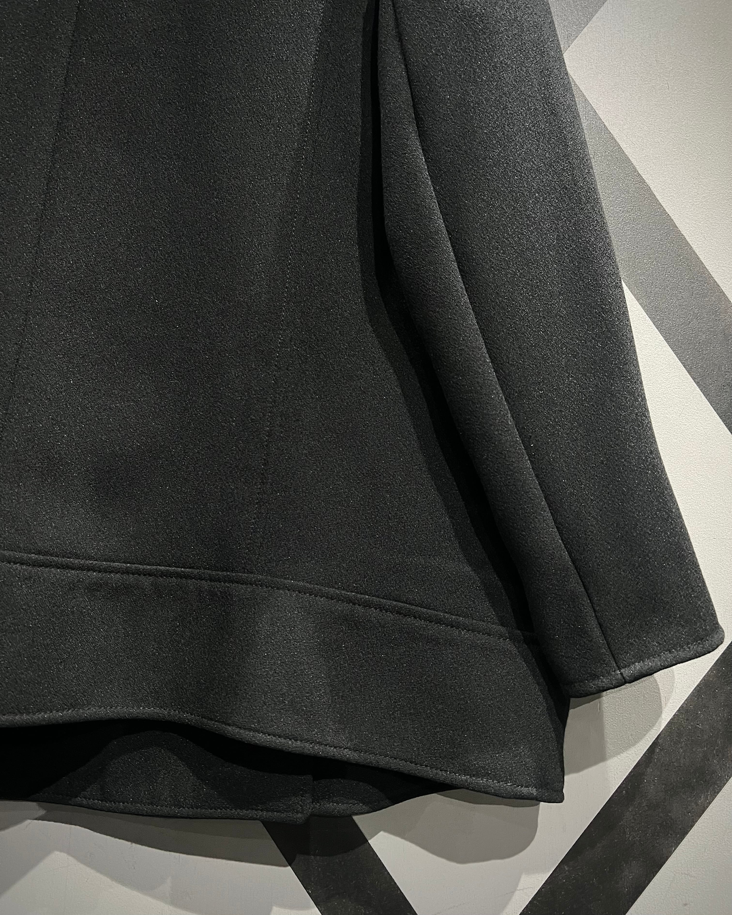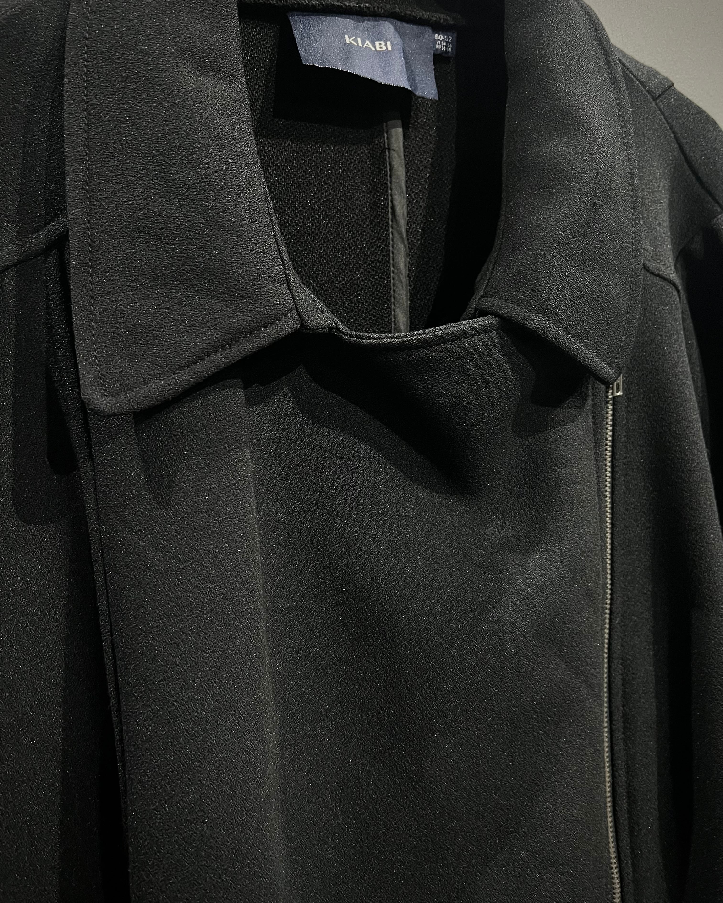 レザーで仕立てられることの多いライダースデザインを、上質でしなやかなファブリックで表現することで、ハードさを抑えつつどこかモードな空気感を纏った1着へと昇華しています。