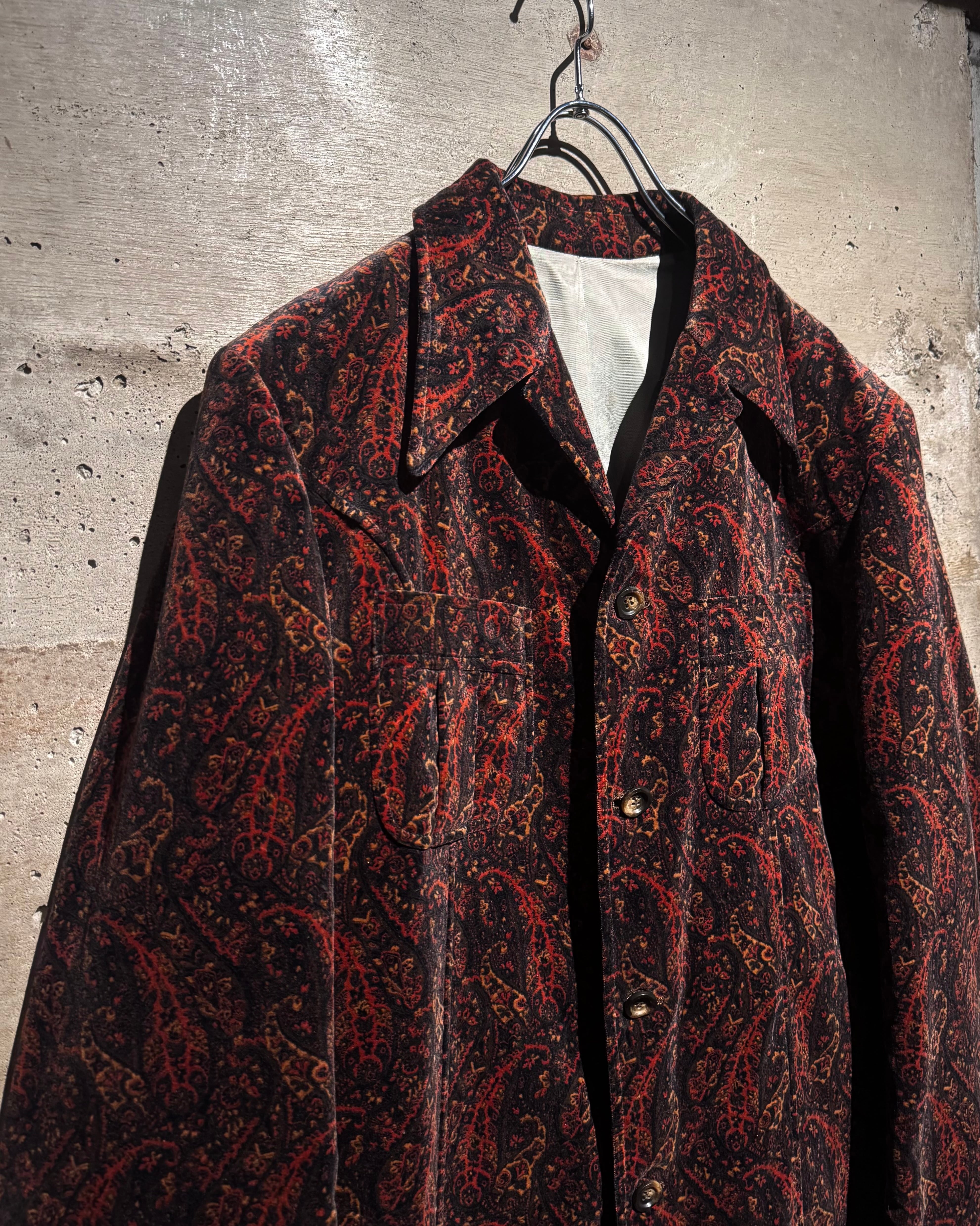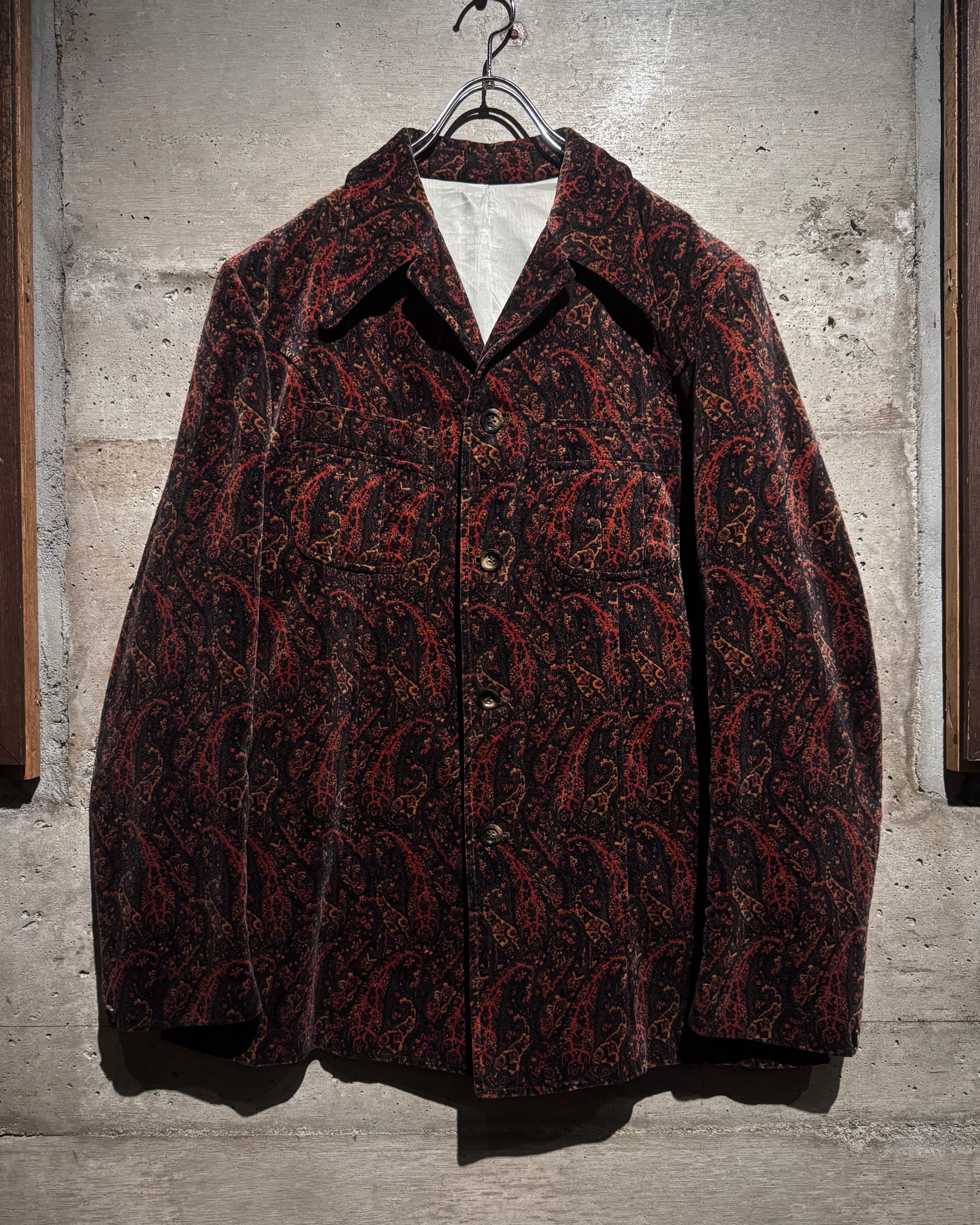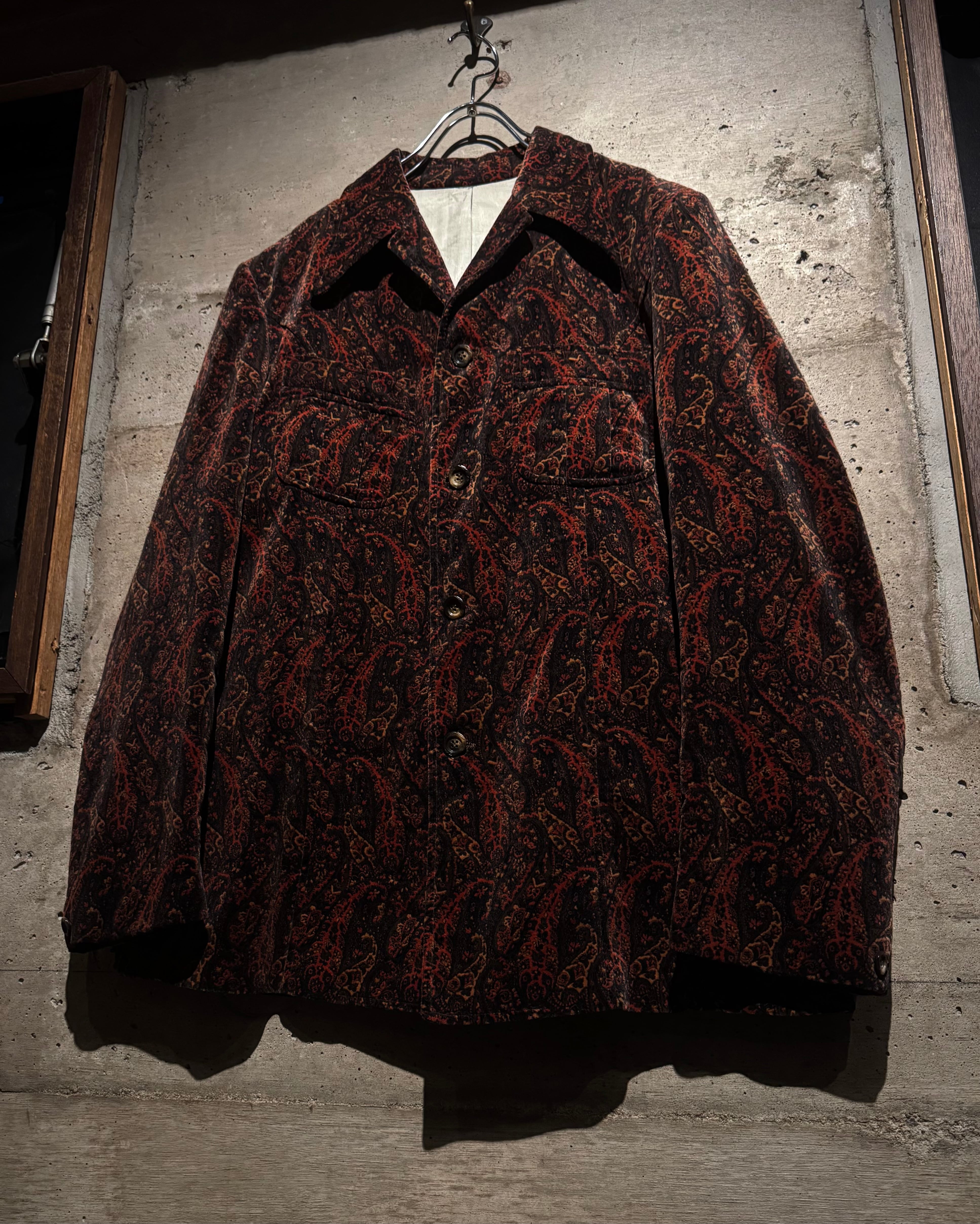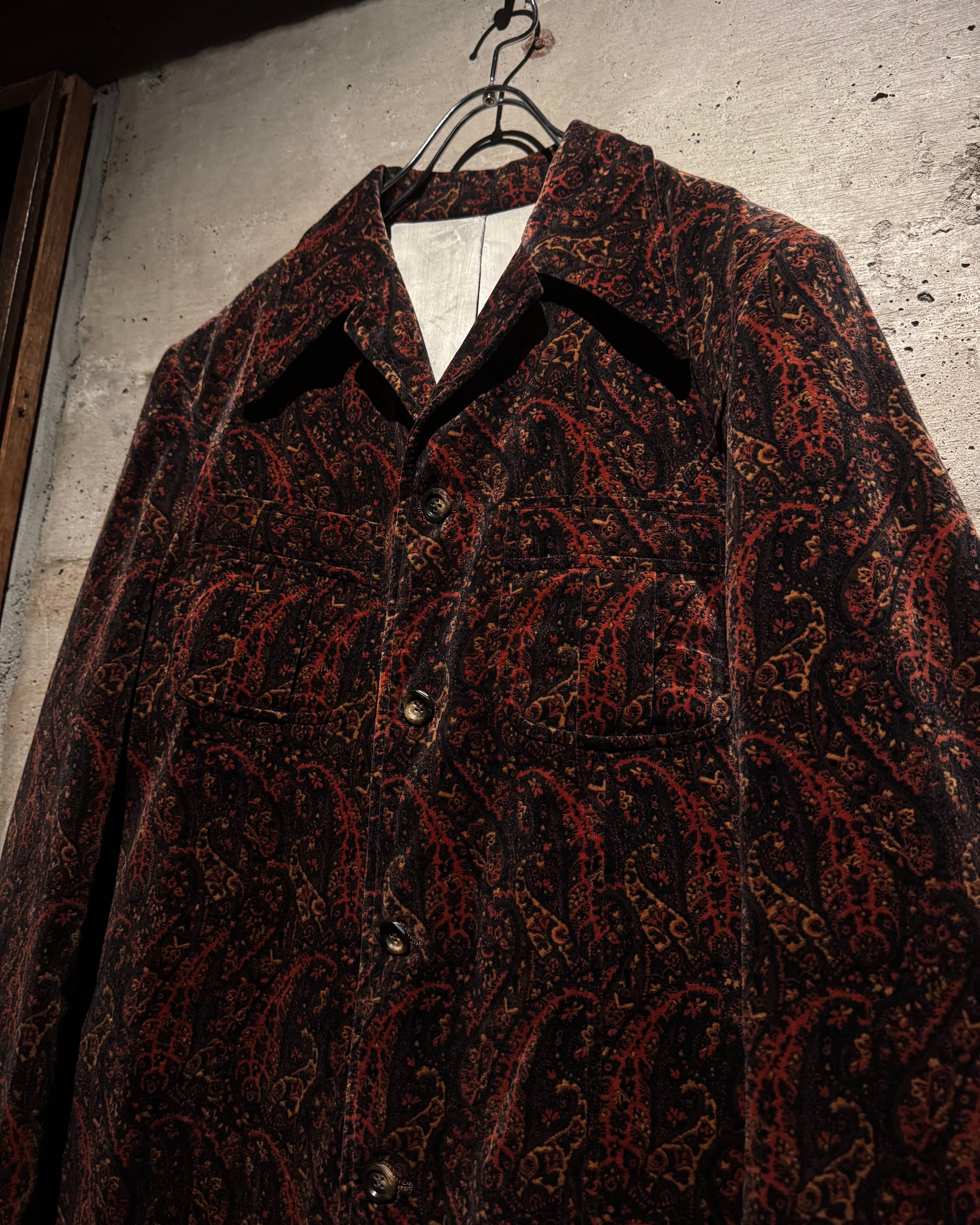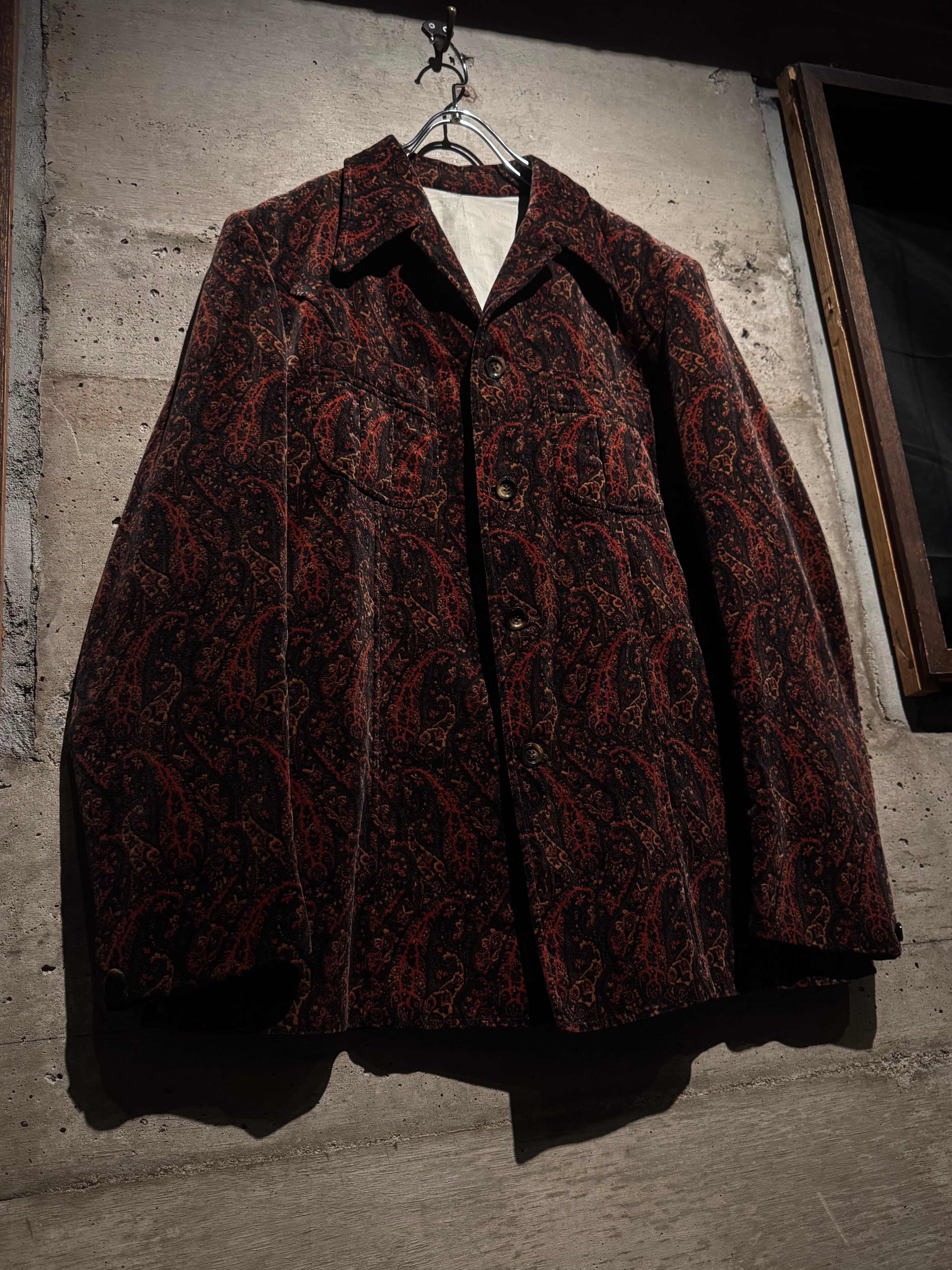 ボディ全体にペイズリー柄を載せた、落ち着いた気品とどこか妖艶なムードを纏う、60's〜70'sヴィンテージのカスタムオーダーベロアジャケット。