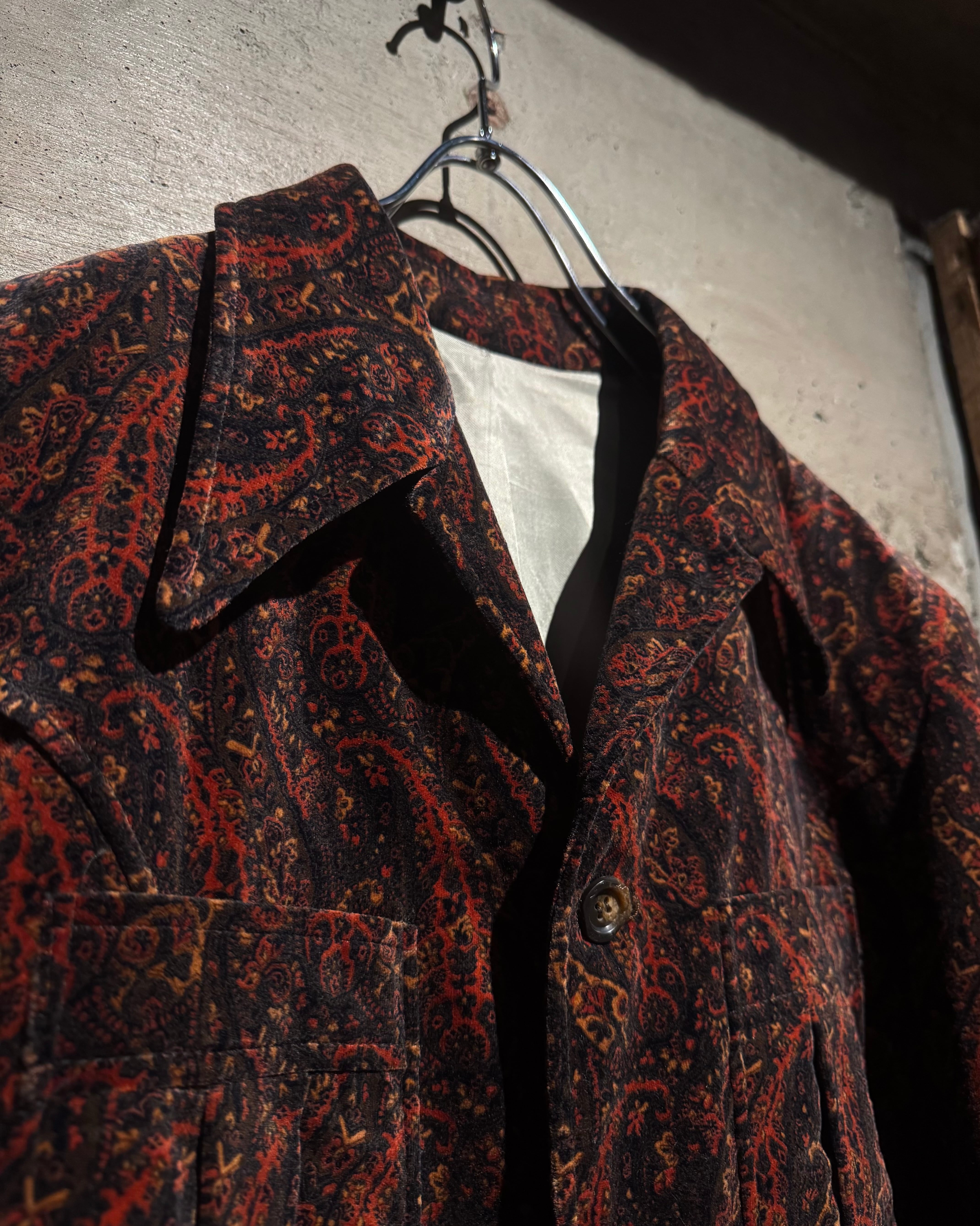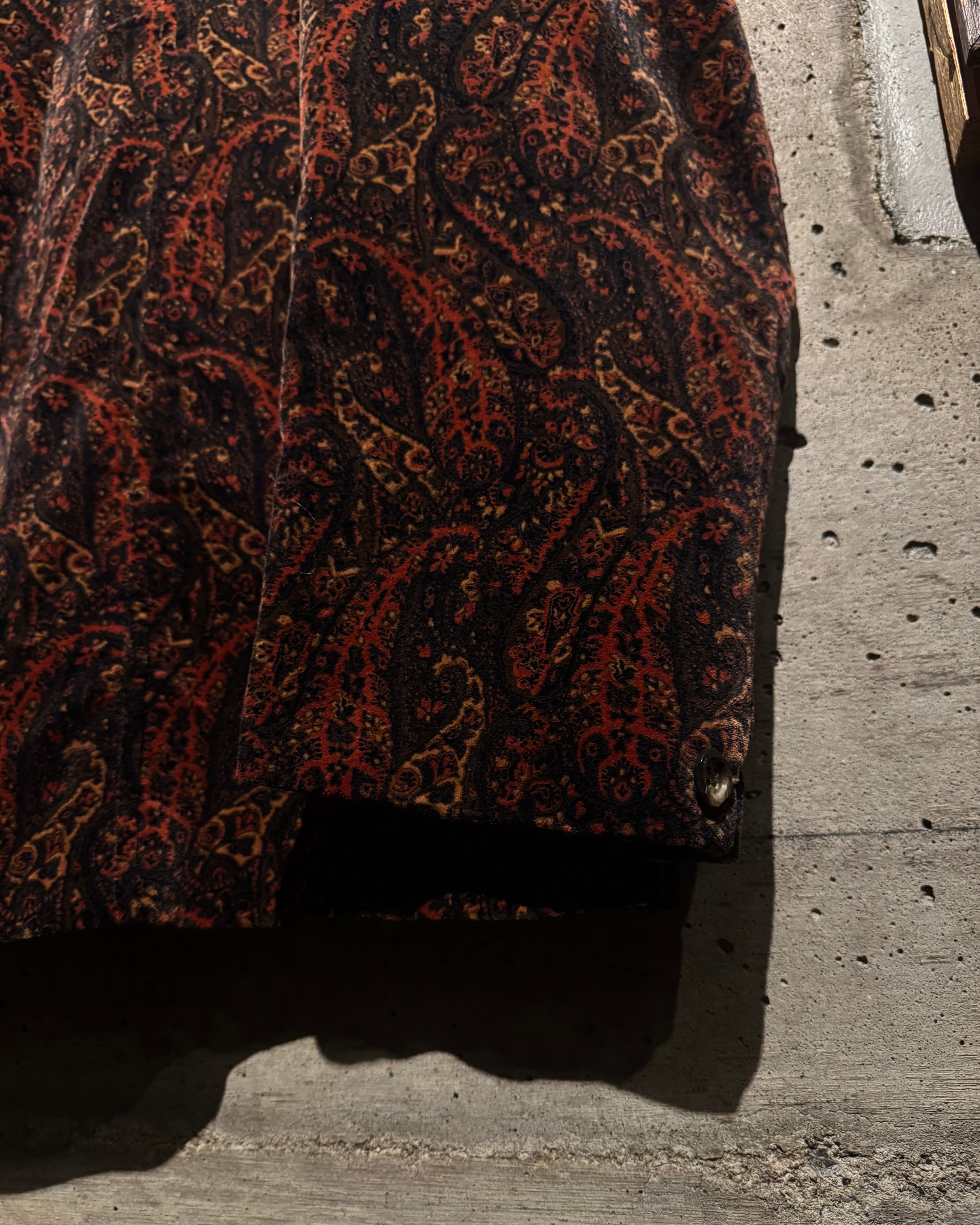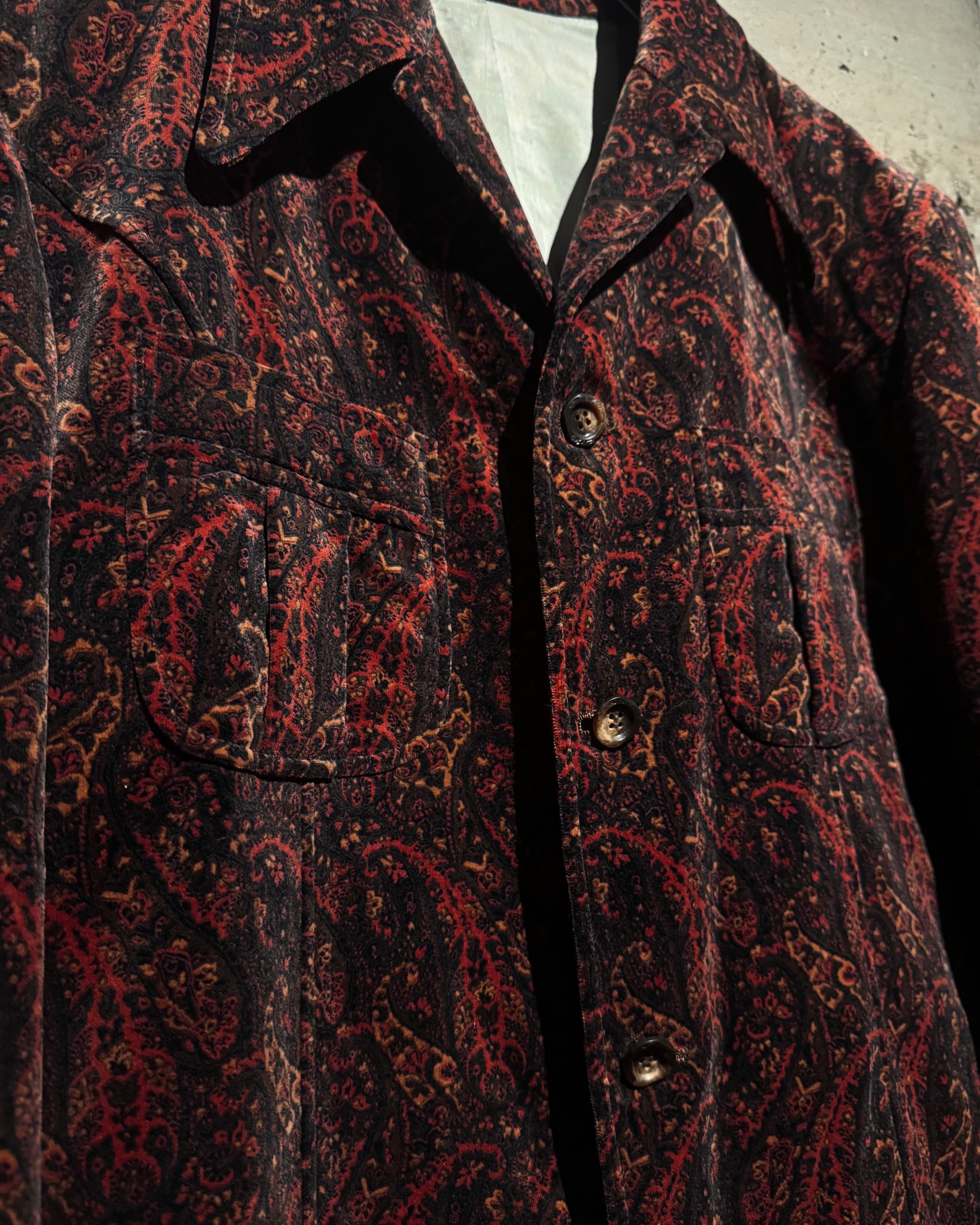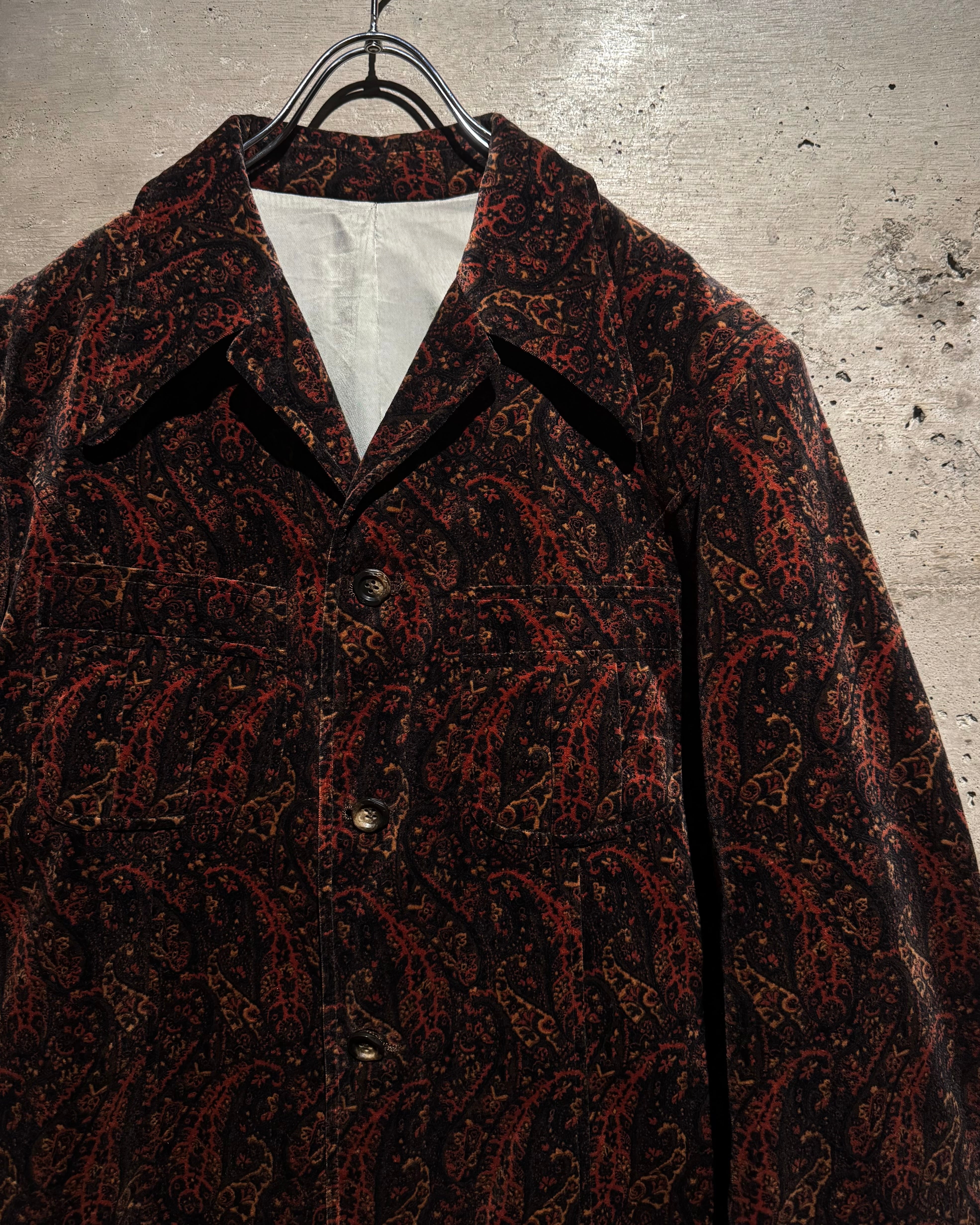 ボディ全体にペイズリー柄を載せた、落ち着いた気品とどこか妖艶なムードを纏う、60's〜70'sヴィンテージのカスタムオーダーベロアジャケット。