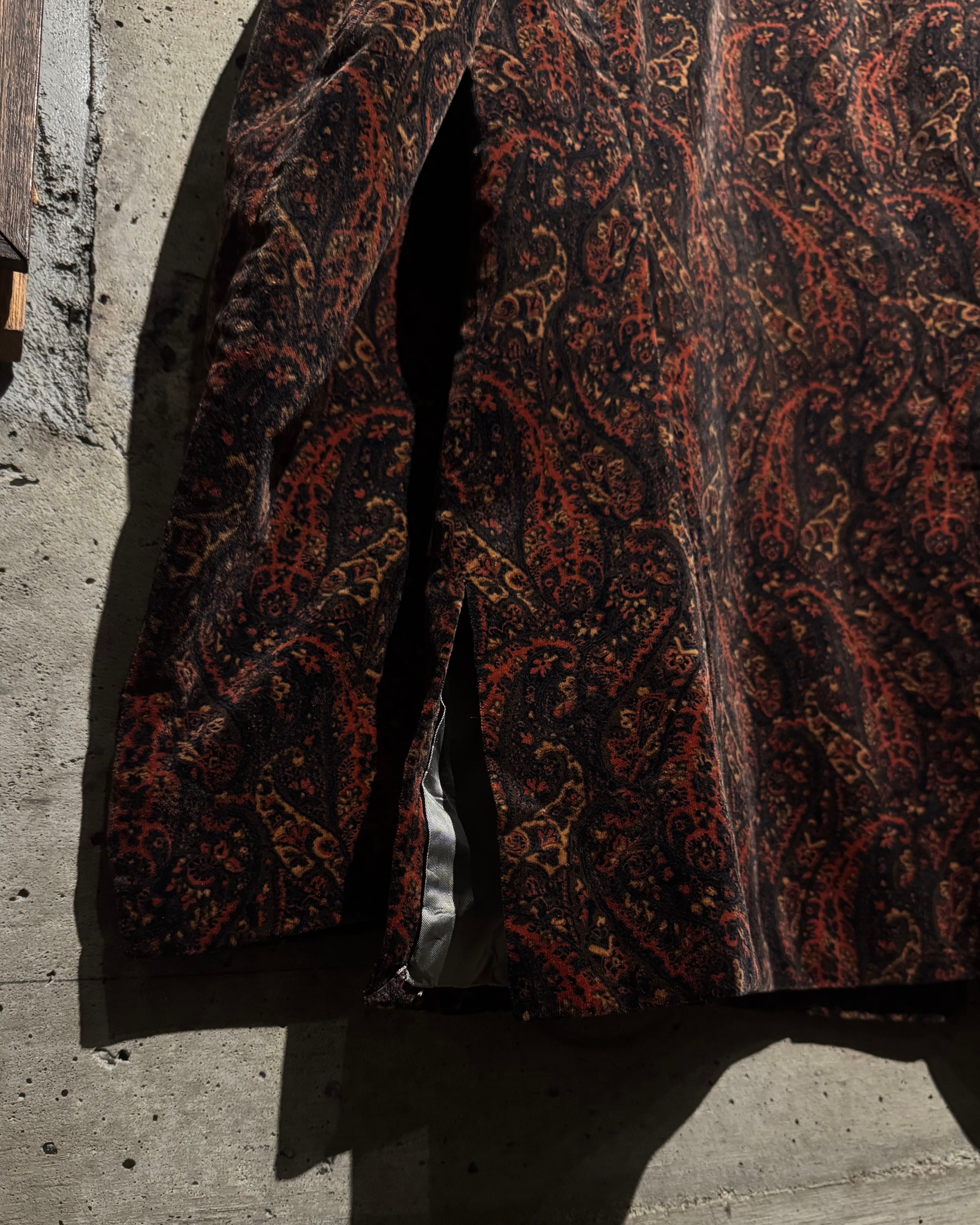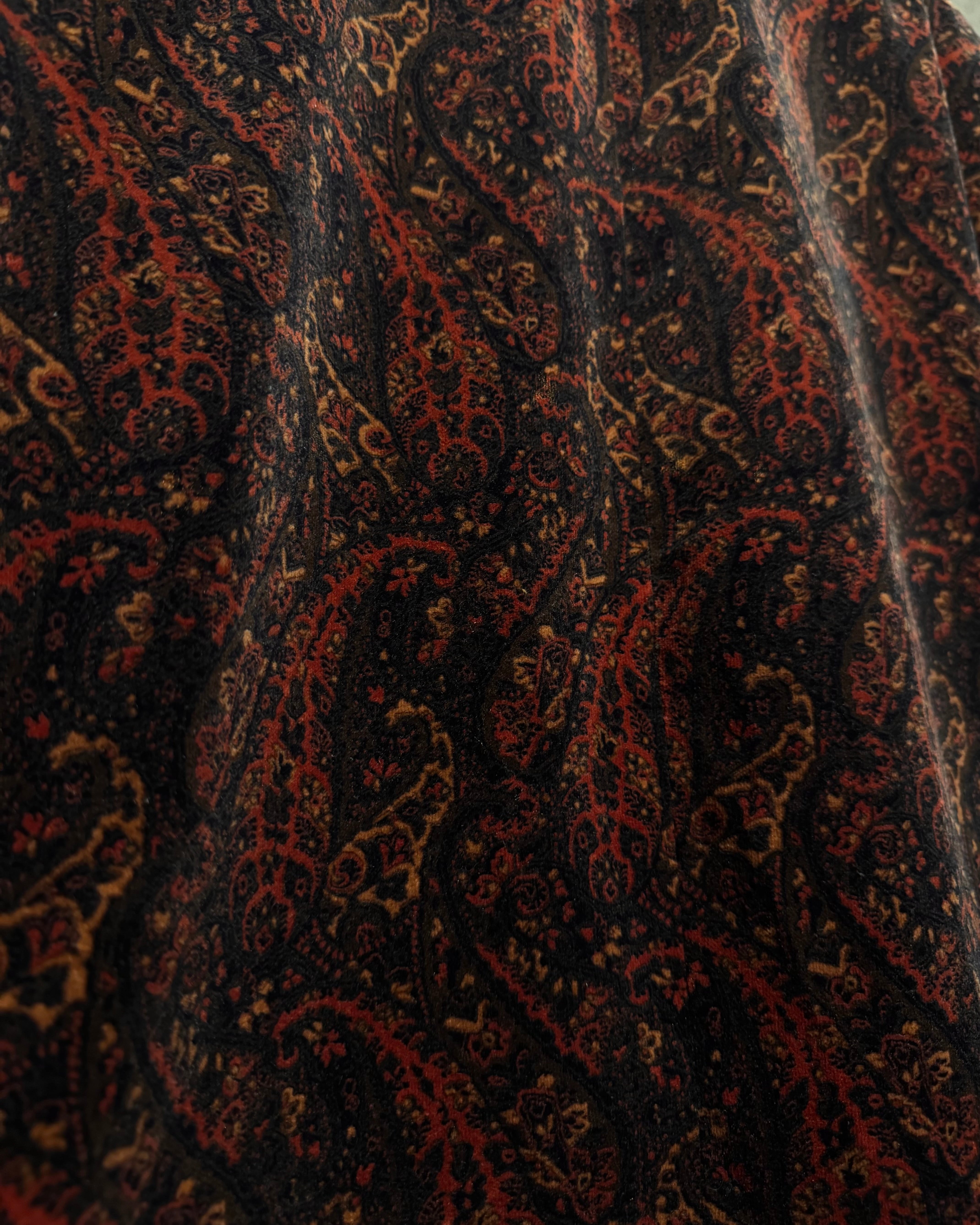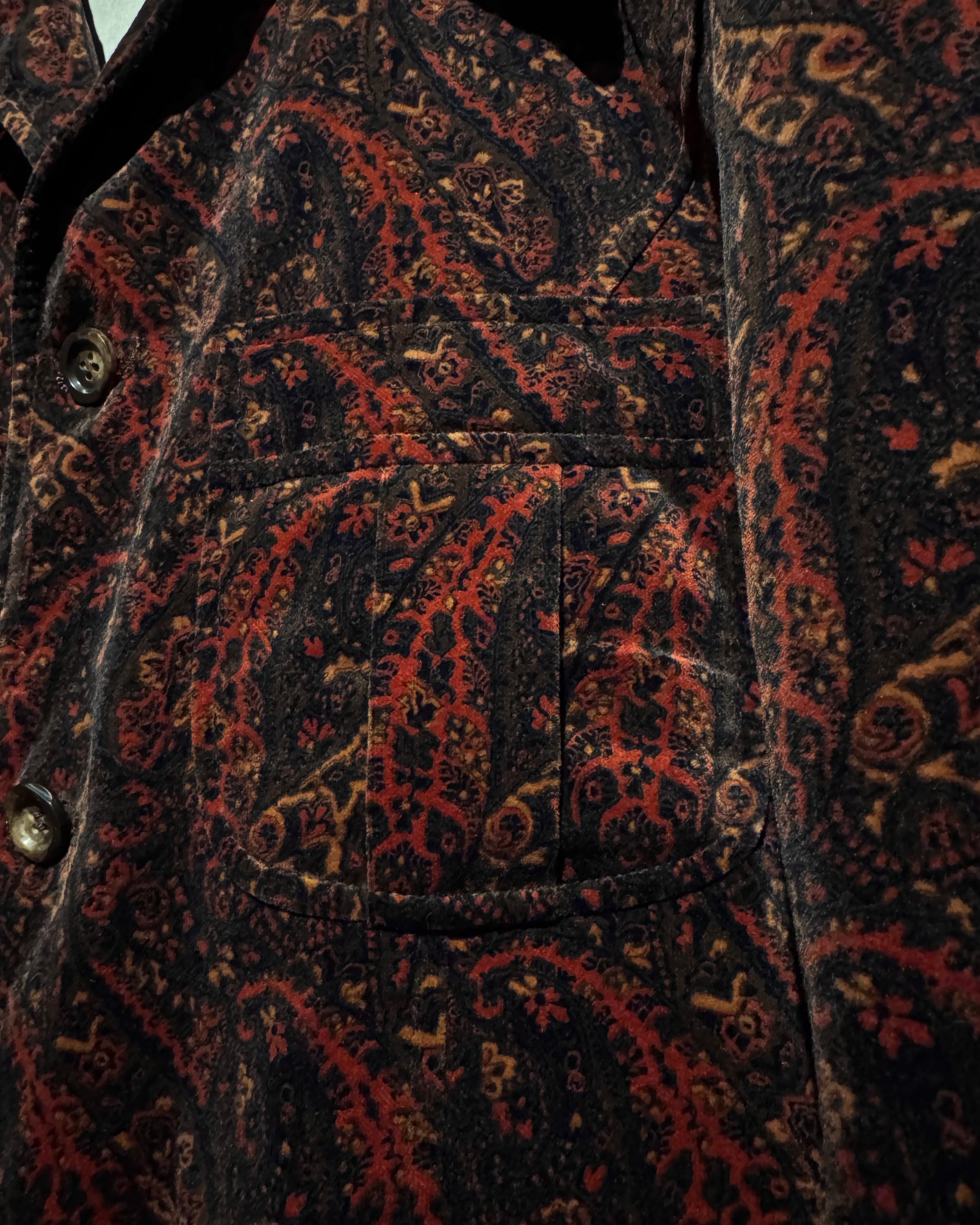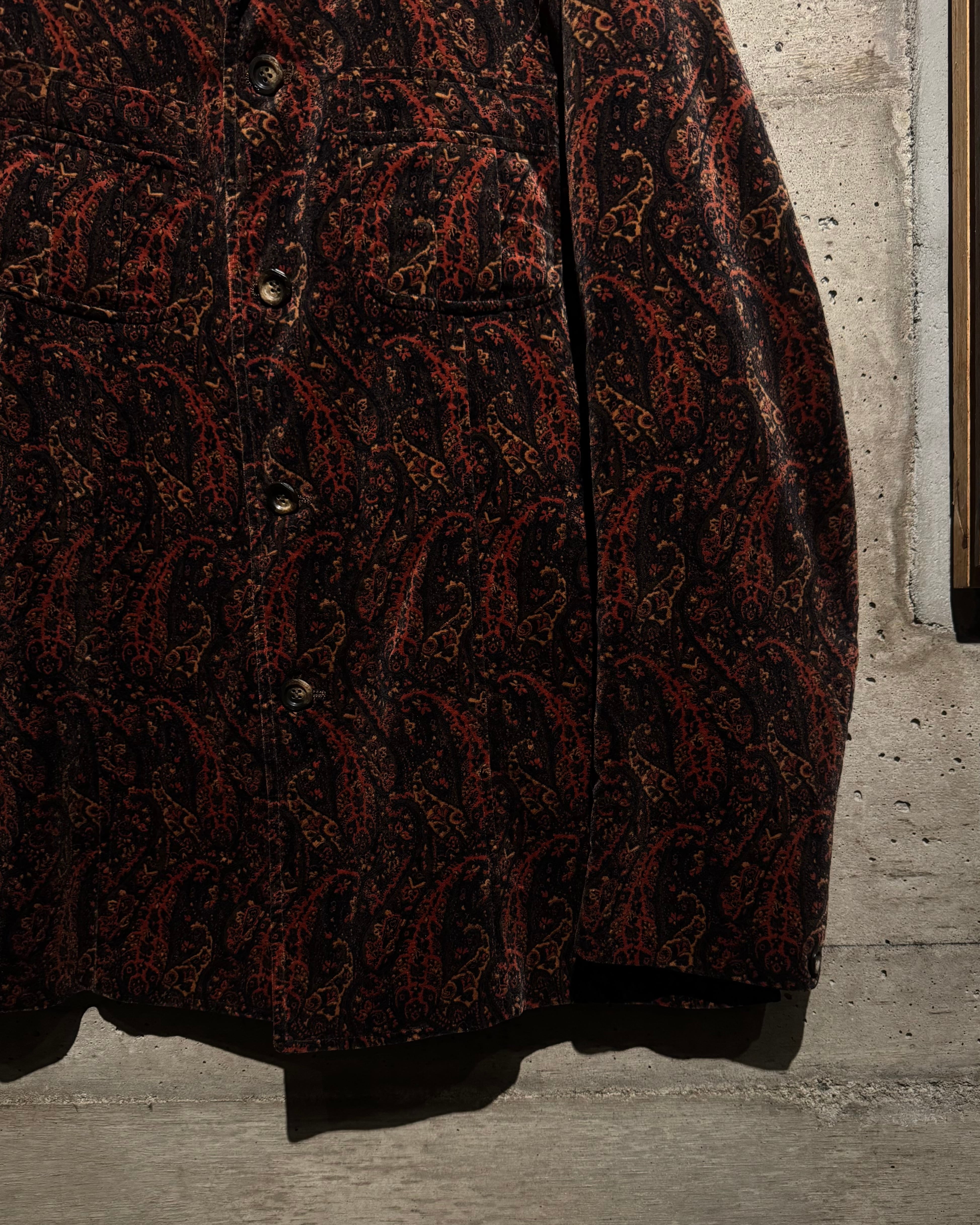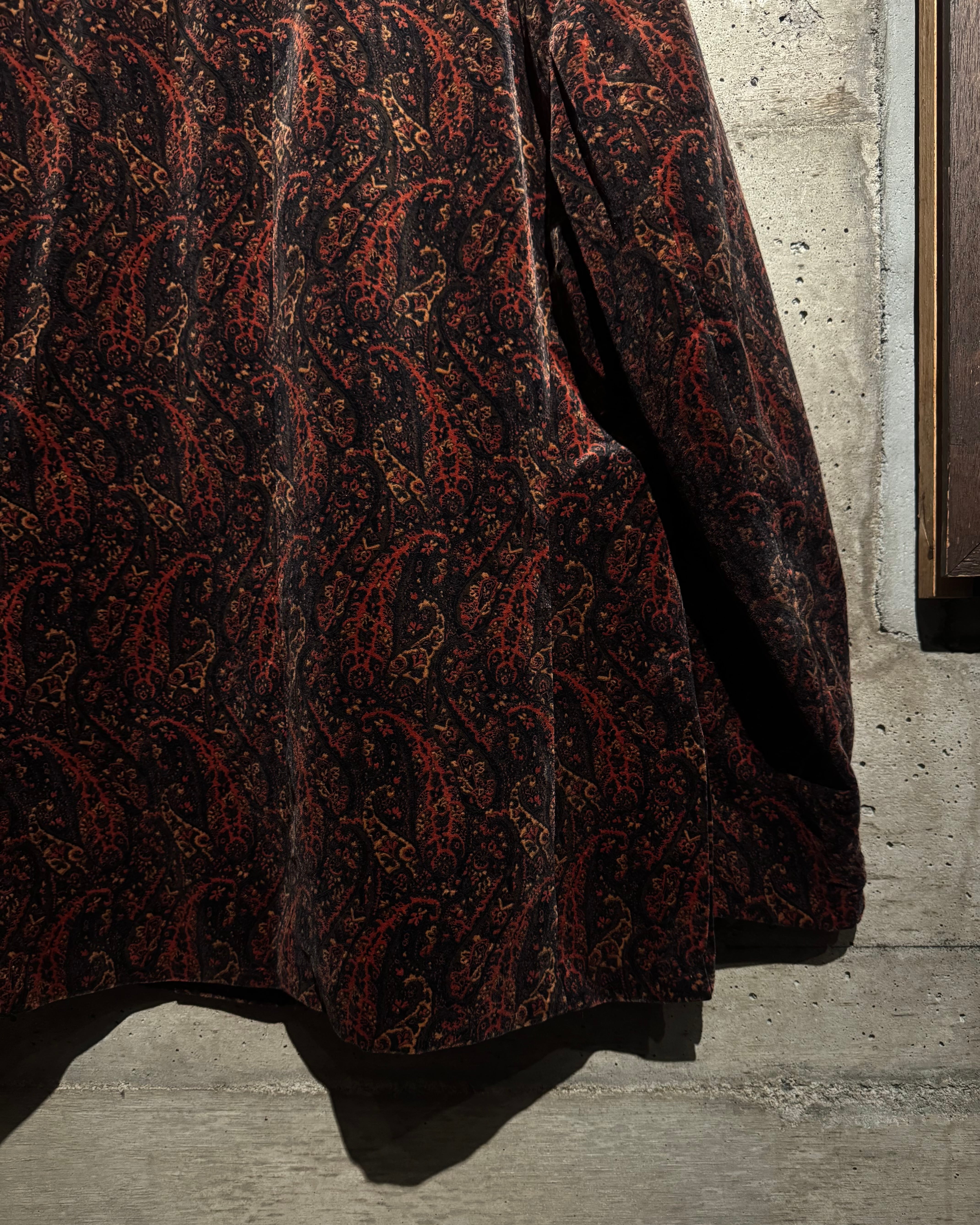 ボディ全体にペイズリー柄を載せた、落ち着いた気品とどこか妖艶なムードを纏う、60's〜70'sヴィンテージのカスタムオーダーベロアジャケット。