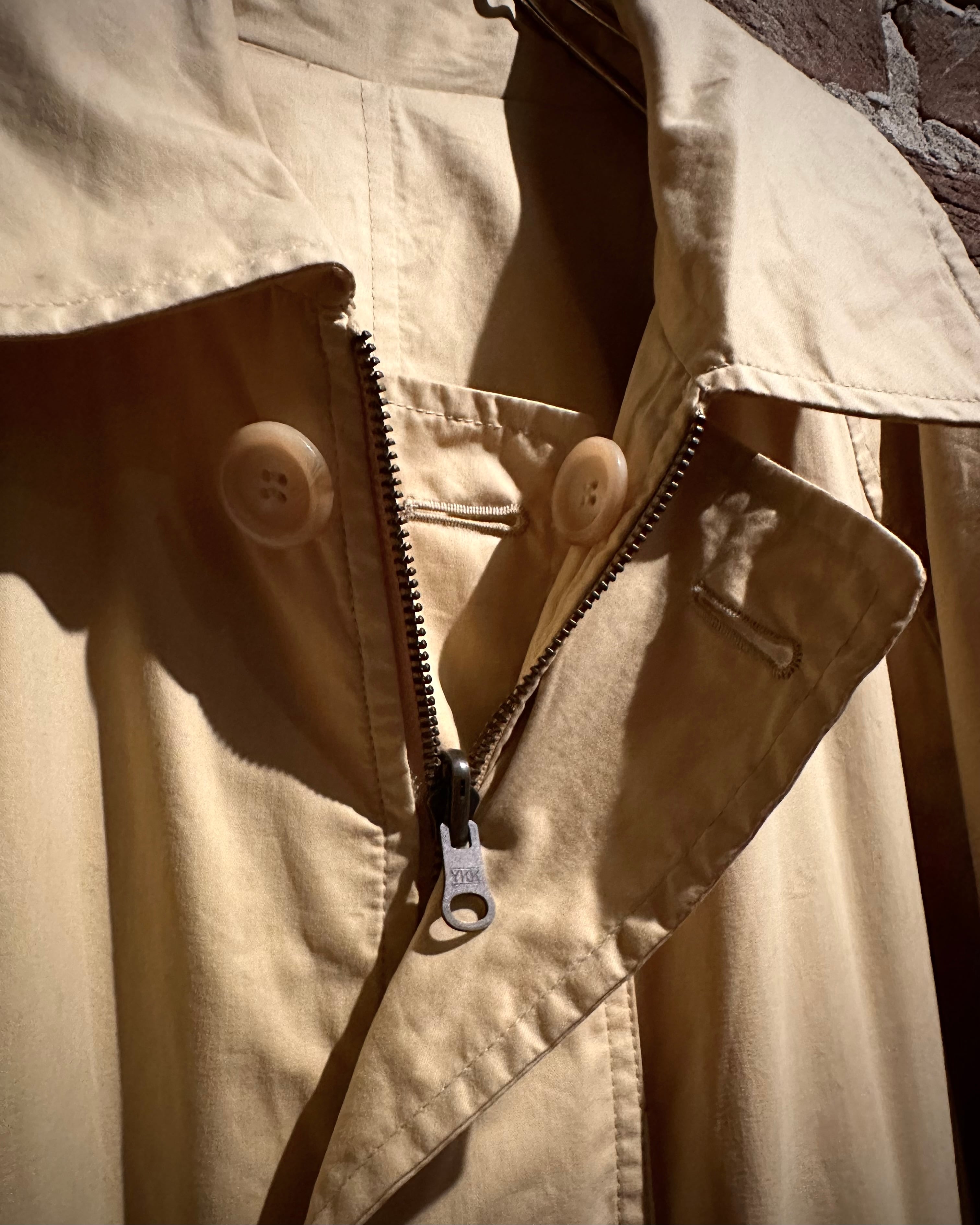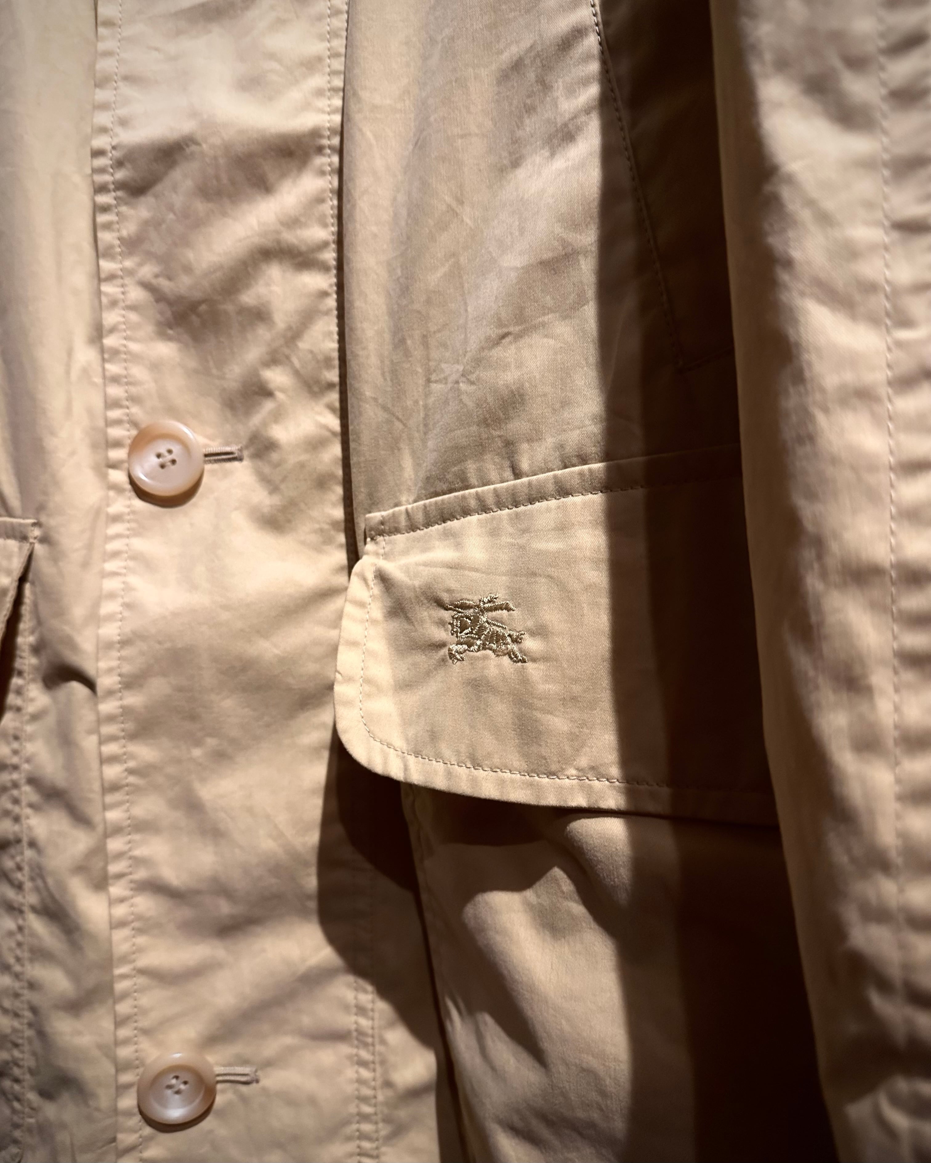 ボタンダウン仕様に加え、内側にはジップを備えた二重構造のディテール。フラップポケットにはBurberryのアイコニックなロゴ刺繍がさりげなく施されており、ブランドらしい気品を感じさせるアクセントとなっています。
