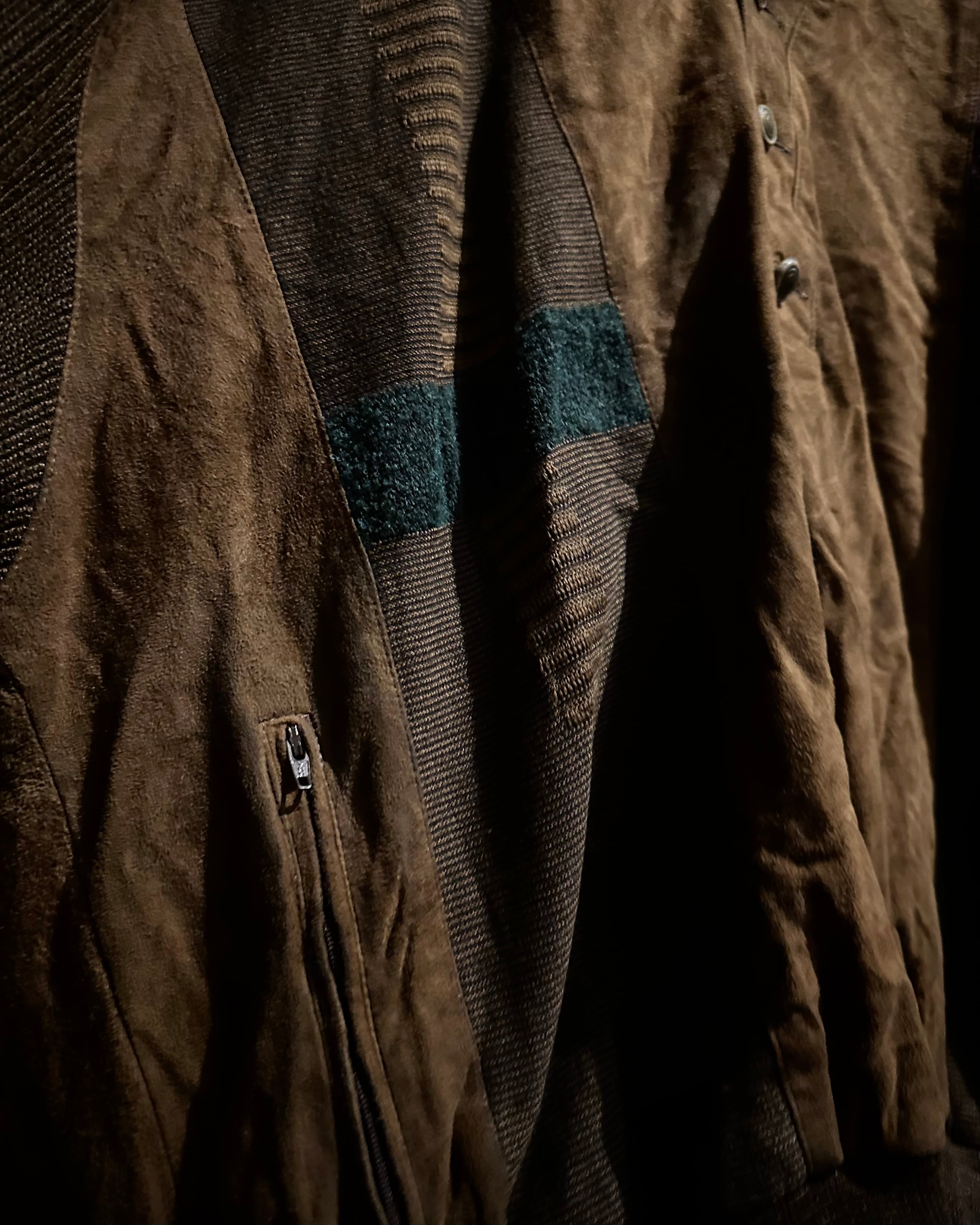 ニットとスエードレザーという異素材の組み合わせが生み出す唯一無二感。素材、配色、シルエットのバランスが非常に美しいスペシャルな1着です。