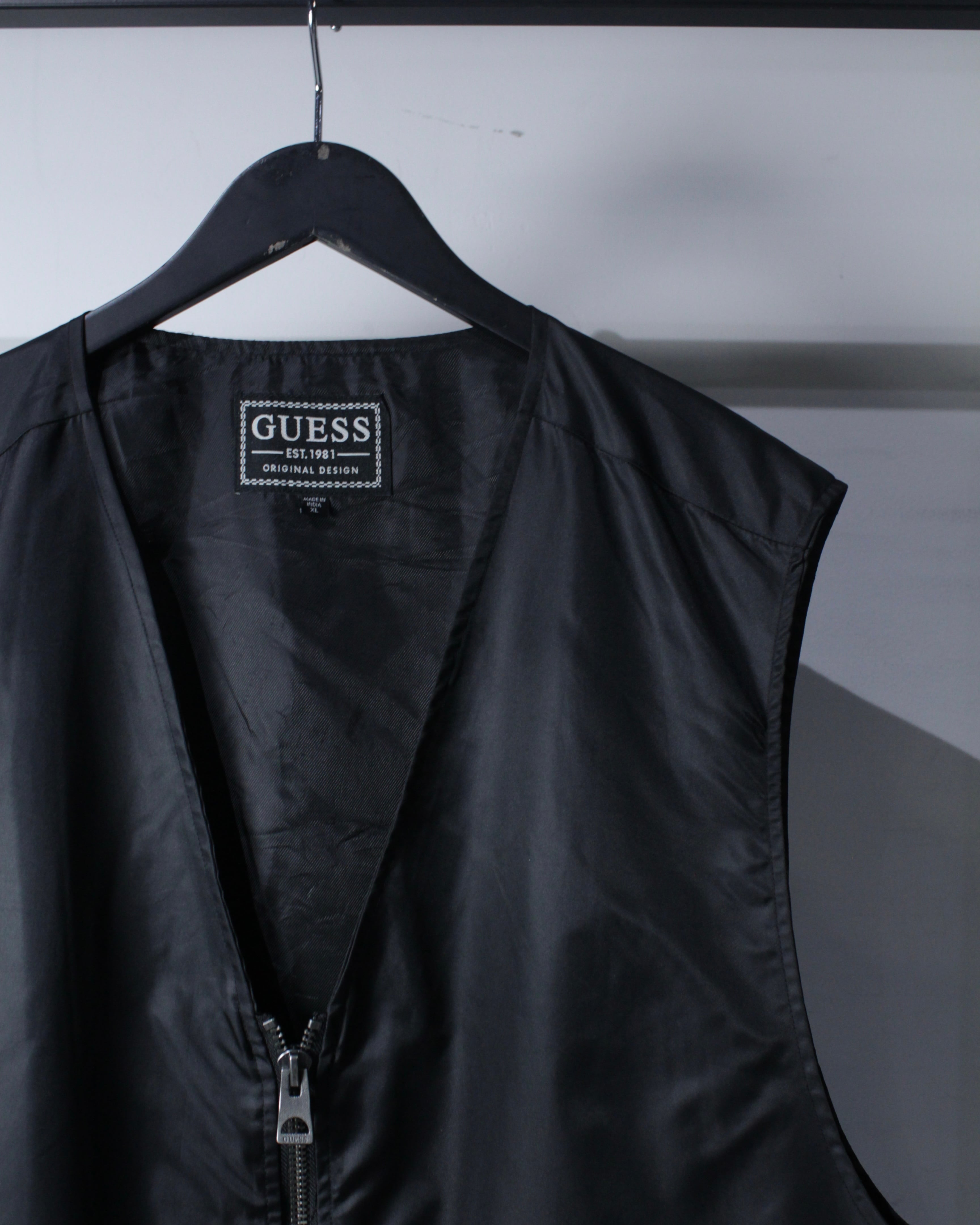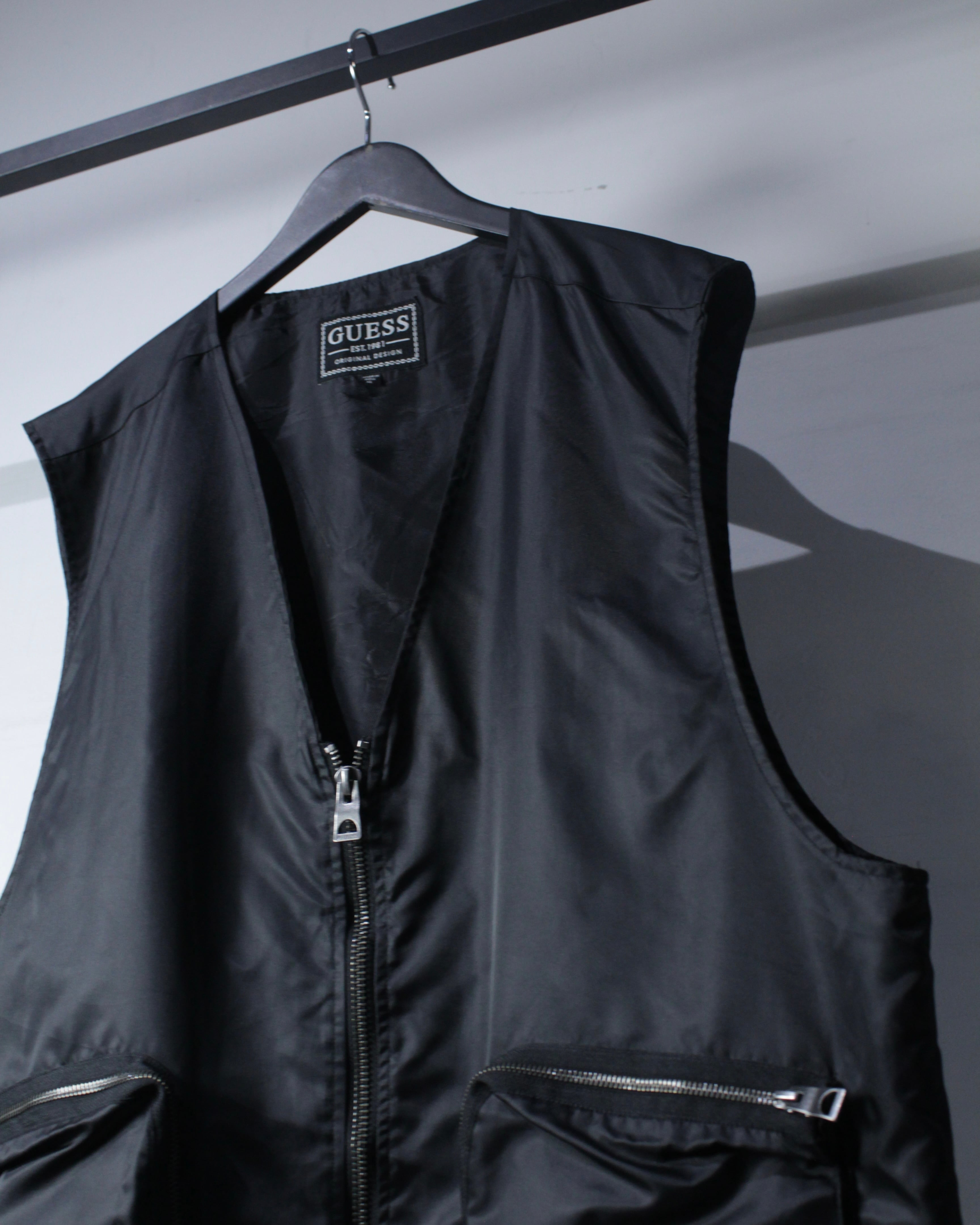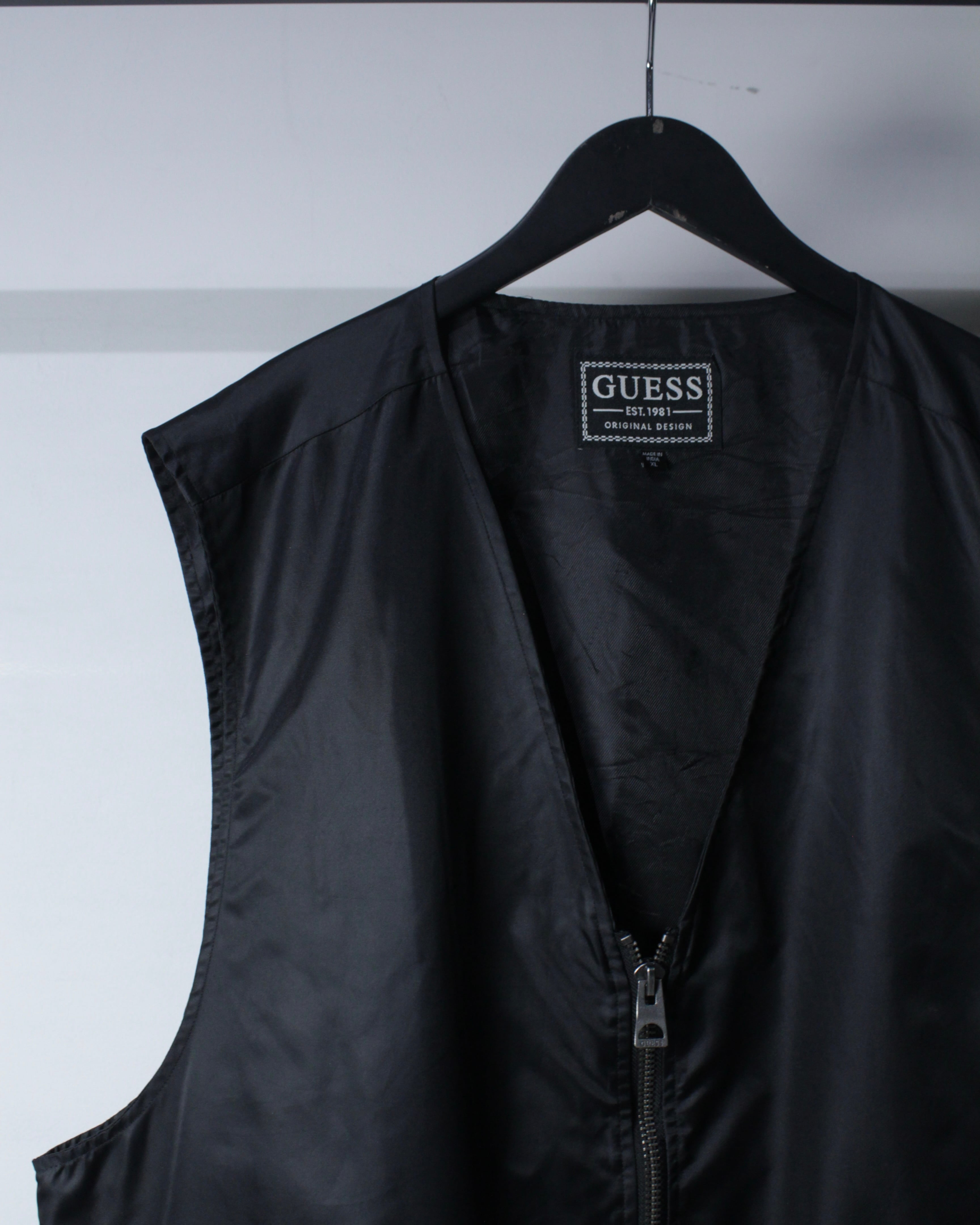 1981年の創業以来、デニムカルチャーを軸にストリートでも人気を博したブランド“GUESS”より、ミニマルなデザインが魅力のナイロンベストをご紹介いたします。