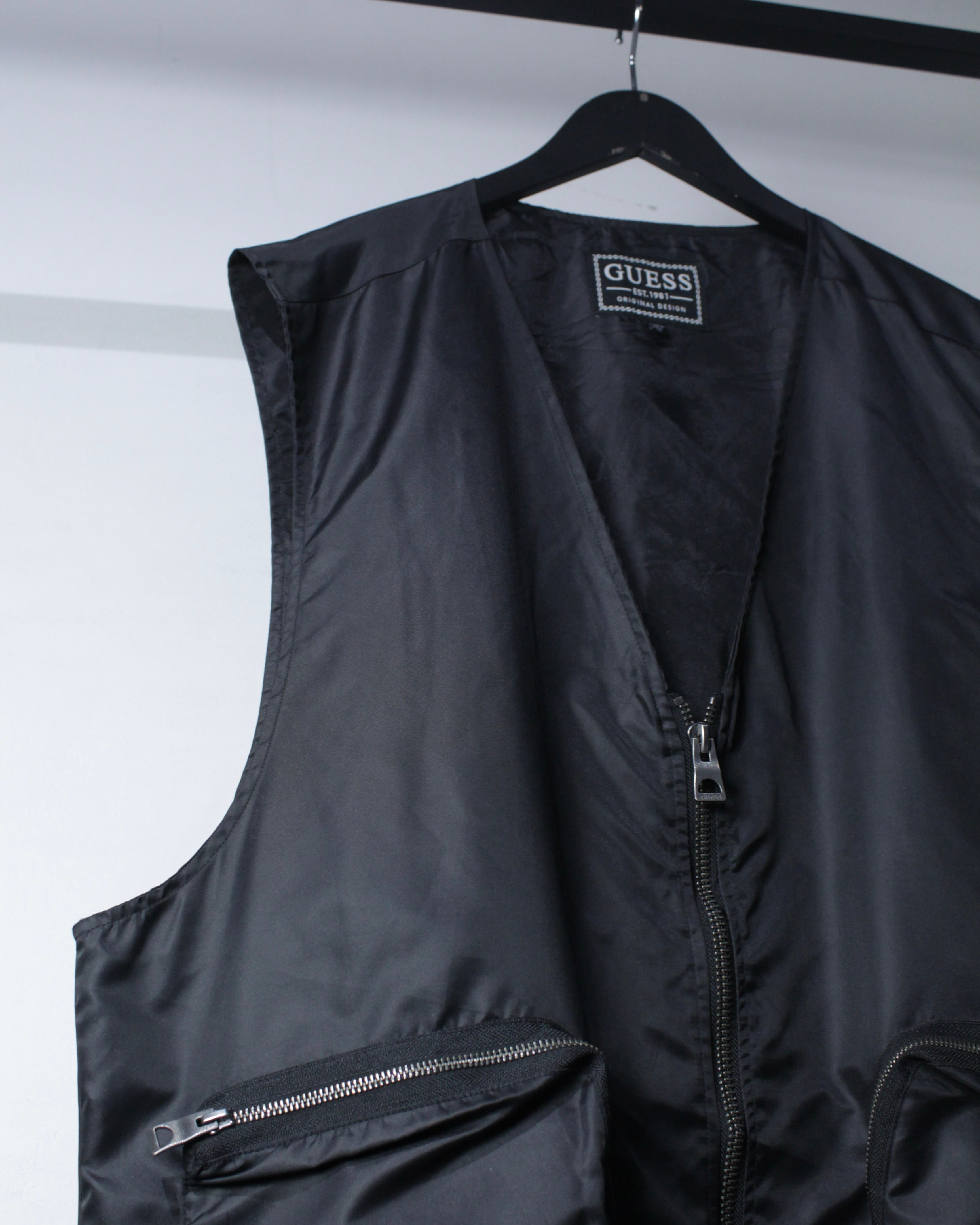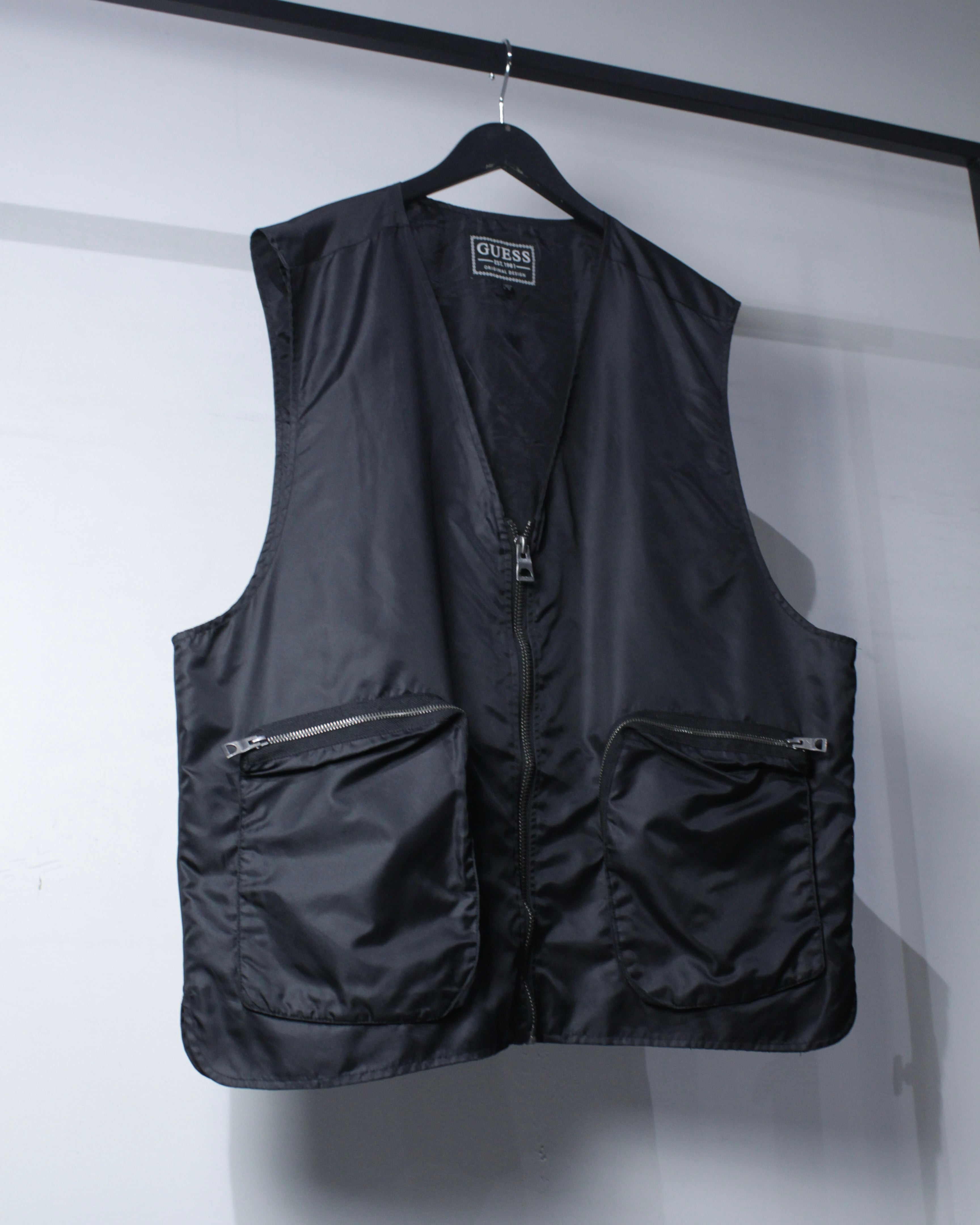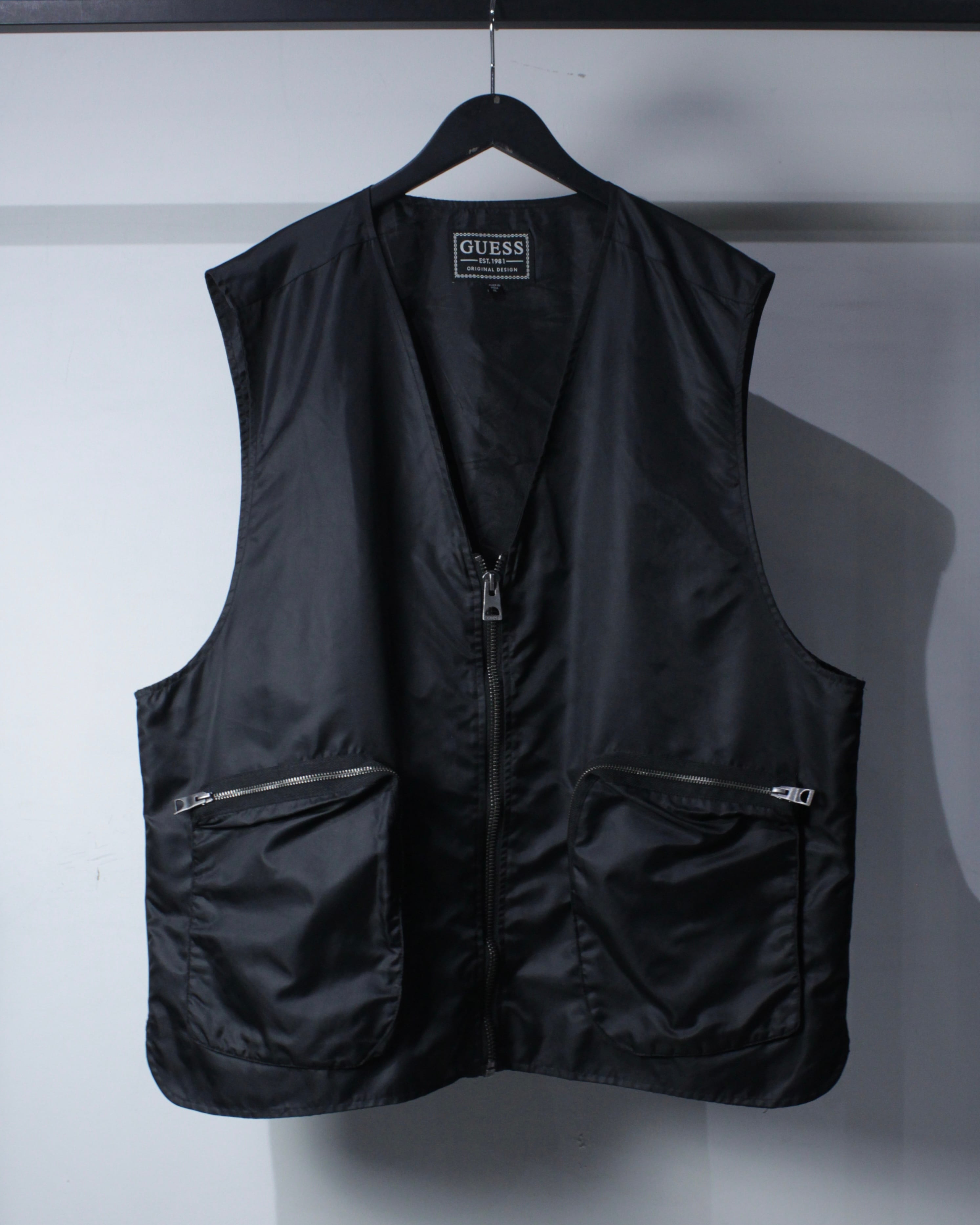 1981年の創業以来、デニムカルチャーを軸にストリートでも人気を博したブランド“GUESS”より、ミニマルなデザインが魅力のナイロンベストをご紹介いたします。