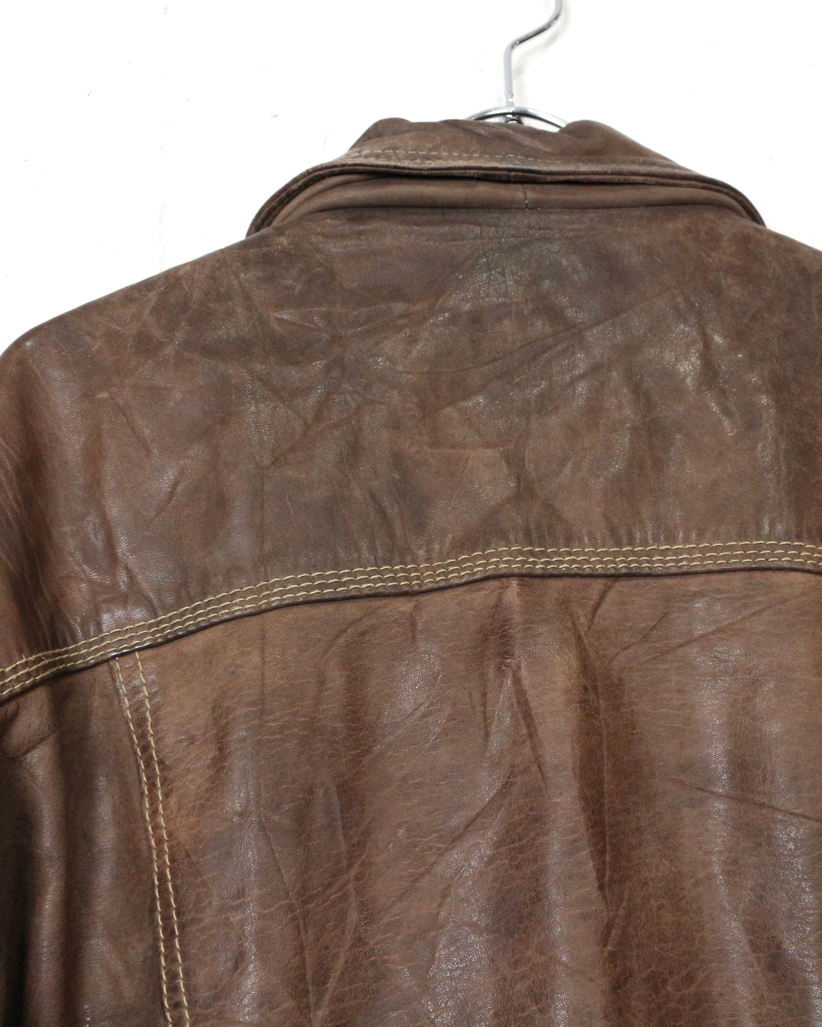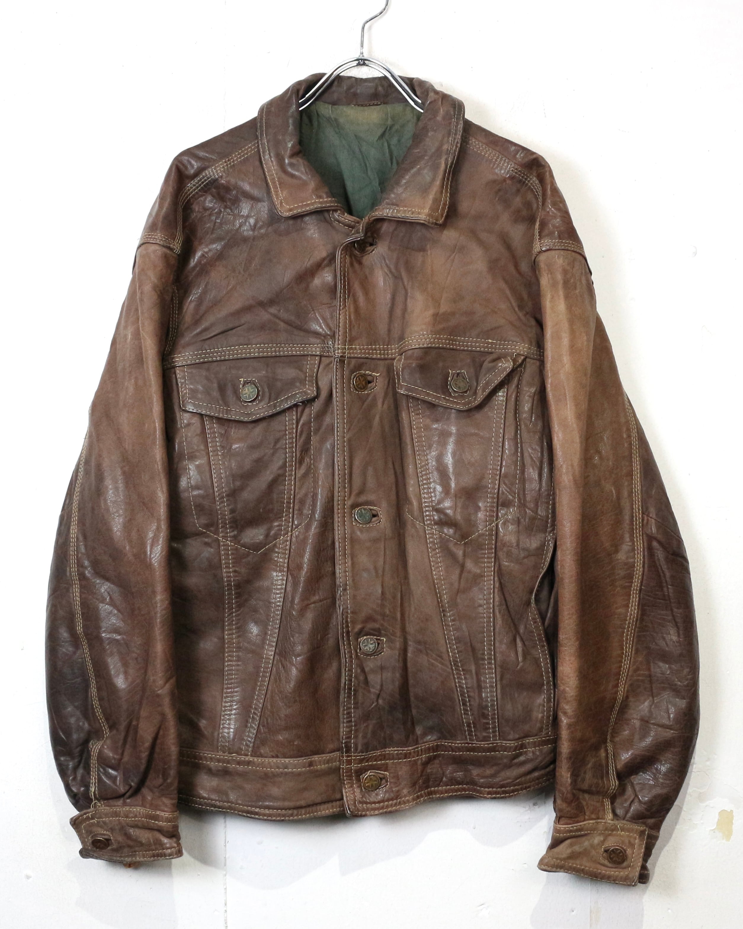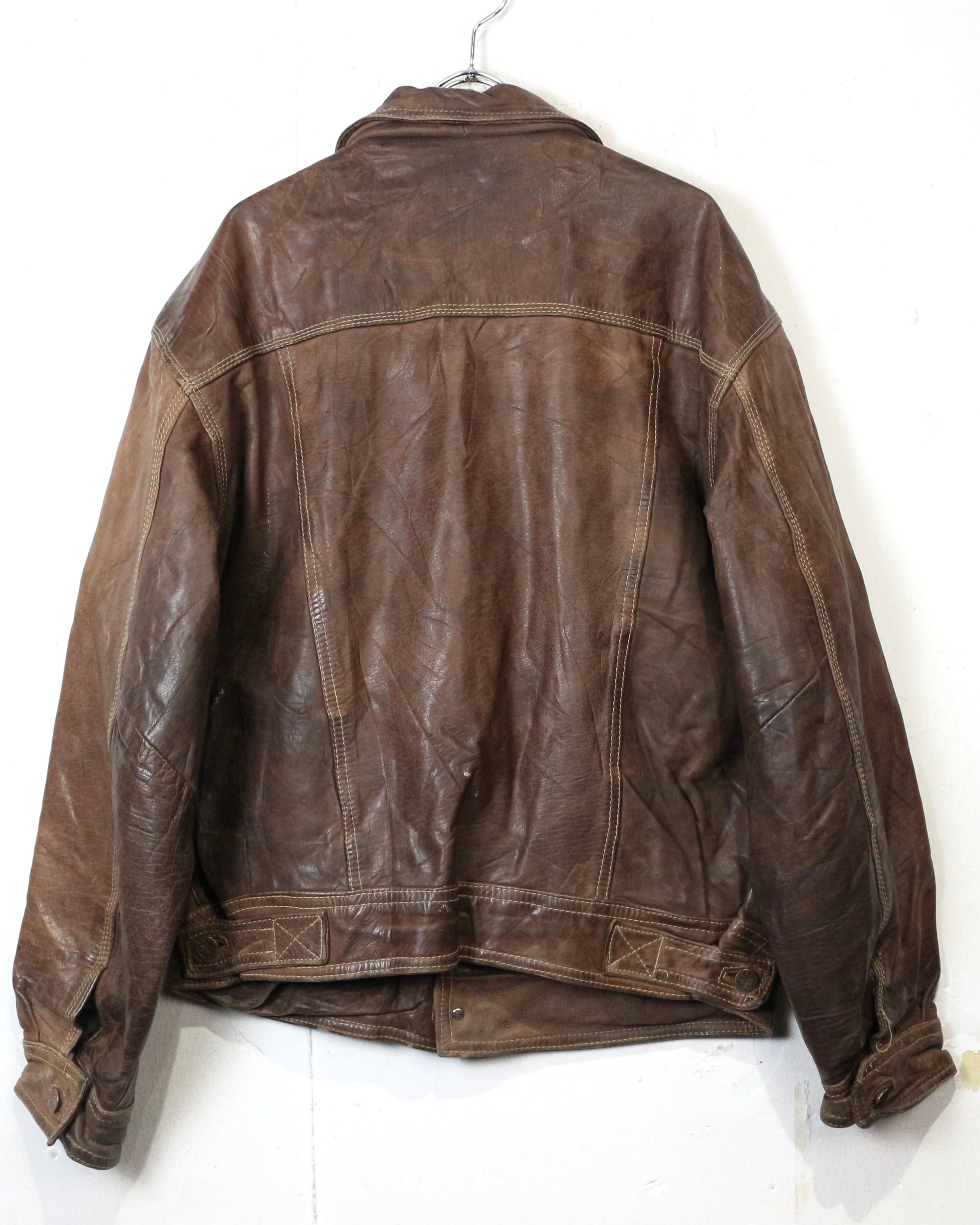 重厚な素材感と、USEDならではの佇まいが魅力の、稀少な90'sユーロヴィンテージのレザートラッカージャケット。