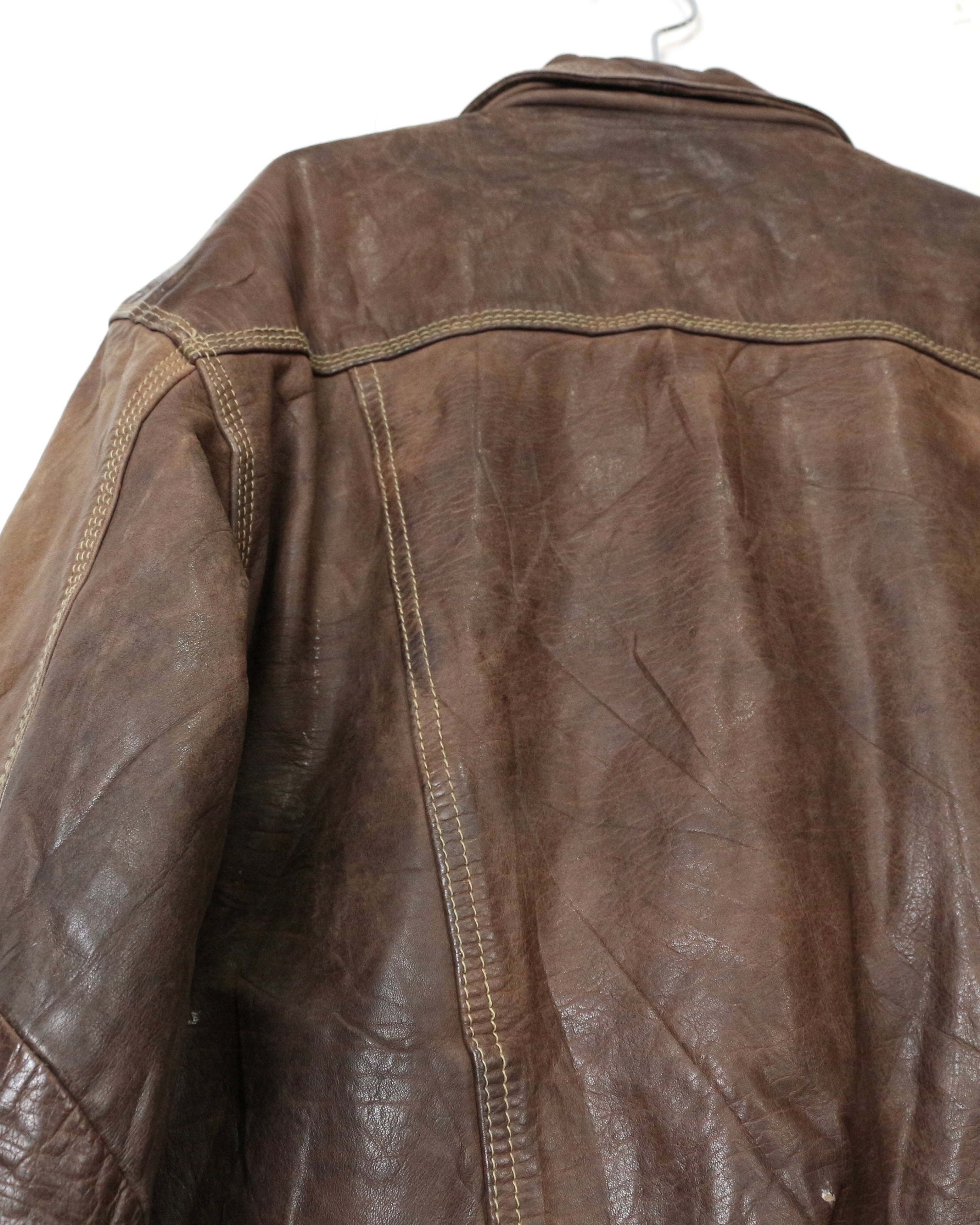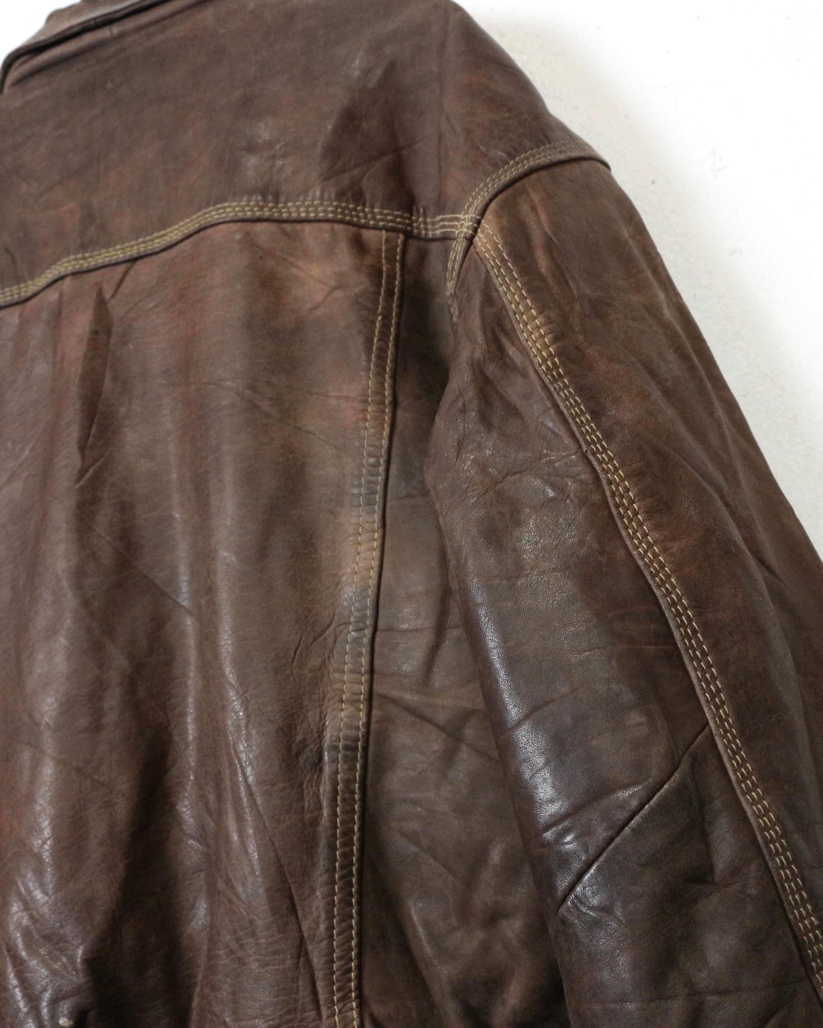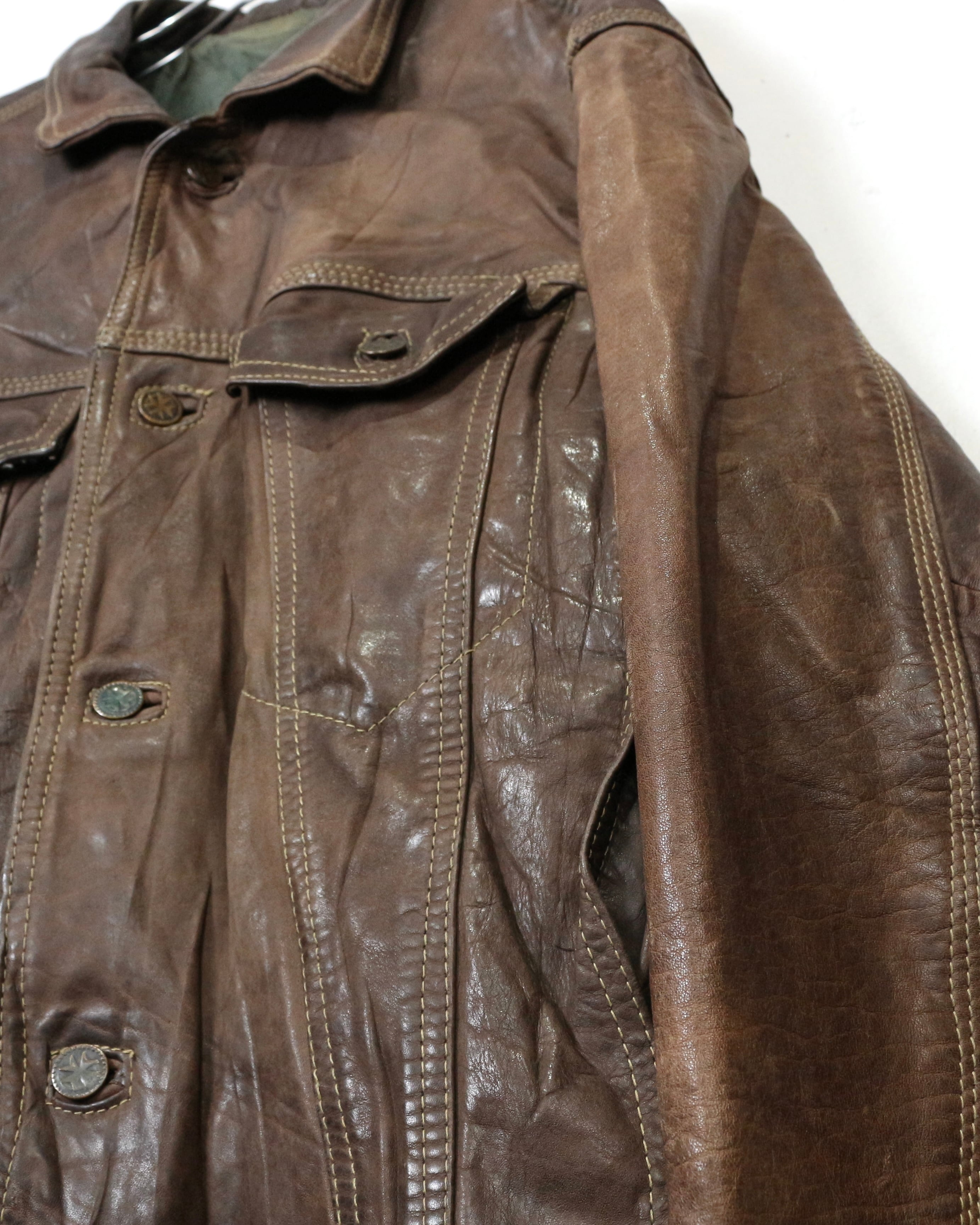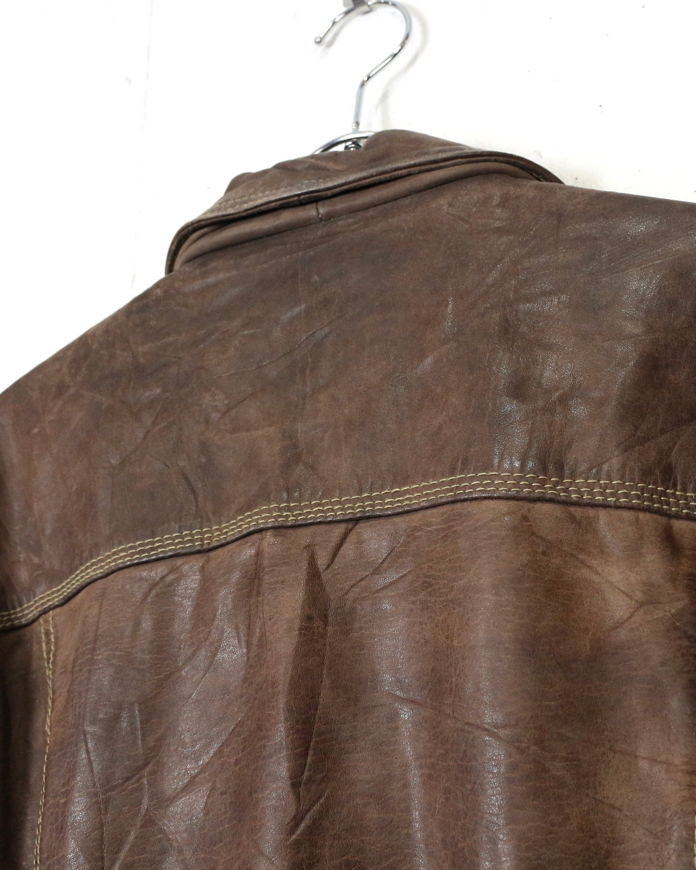 重厚な素材感と、USEDならではの佇まいが魅力の、稀少な90'sユーロヴィンテージのレザートラッカージャケット。
