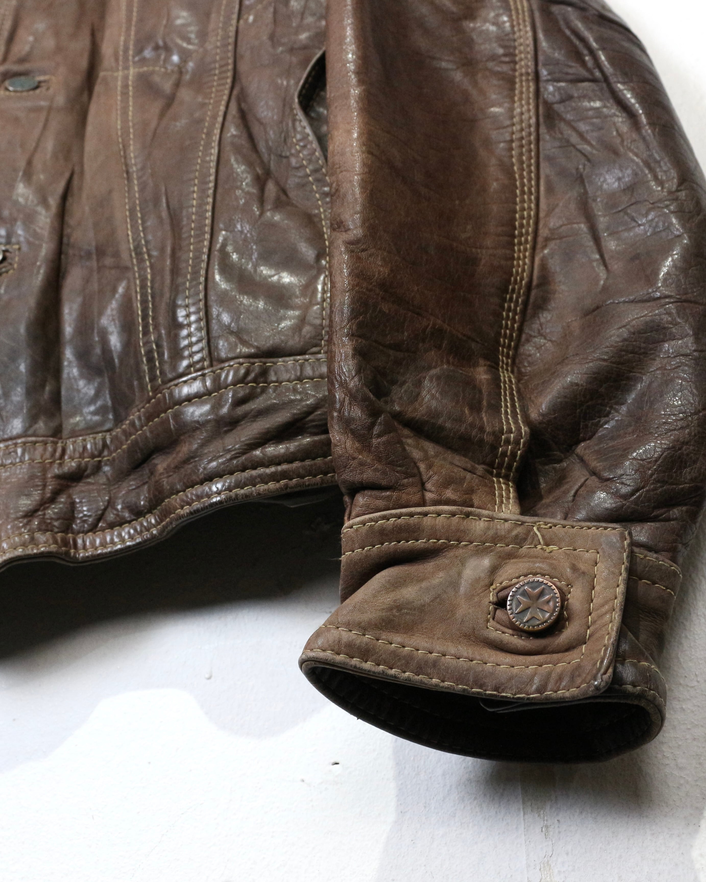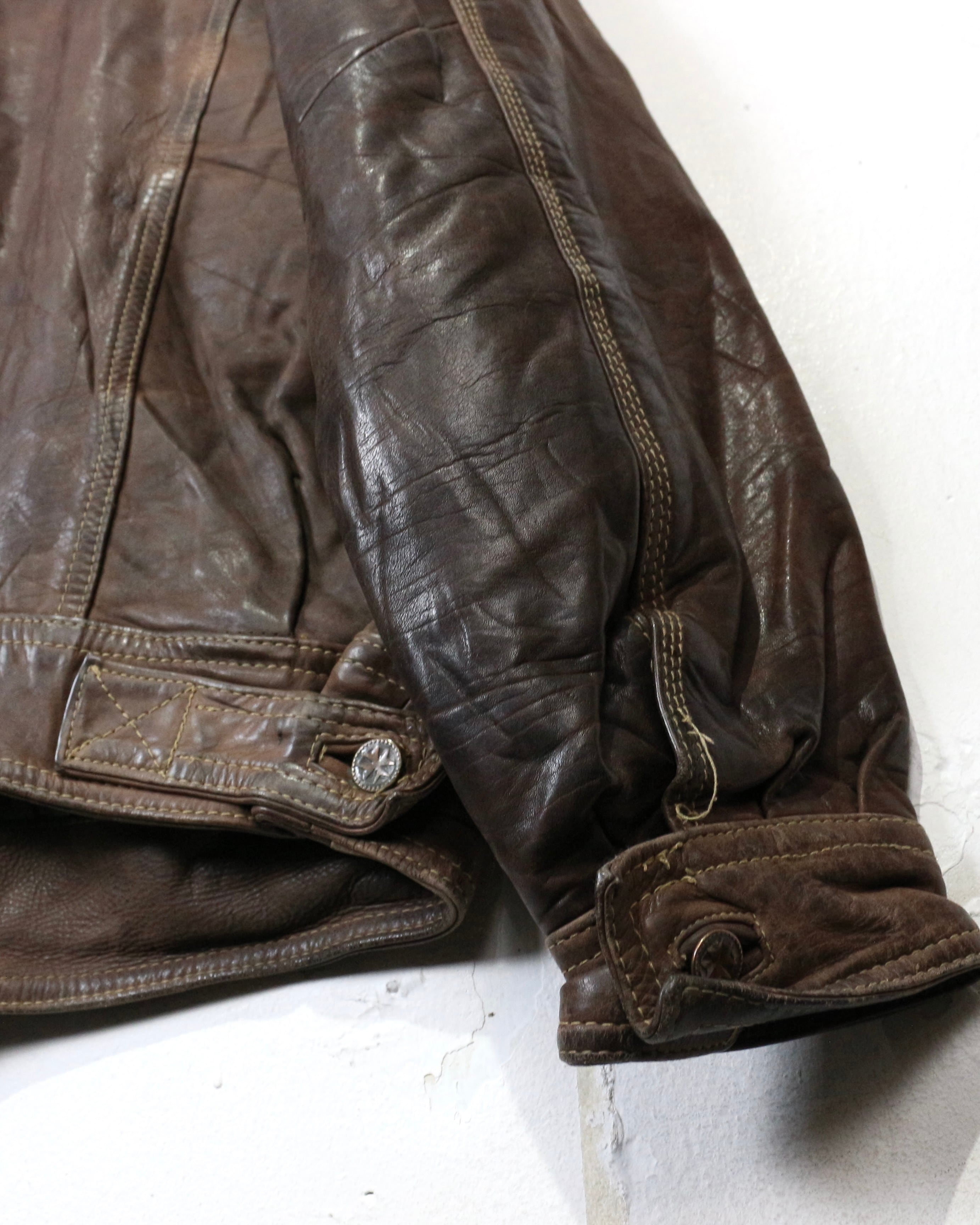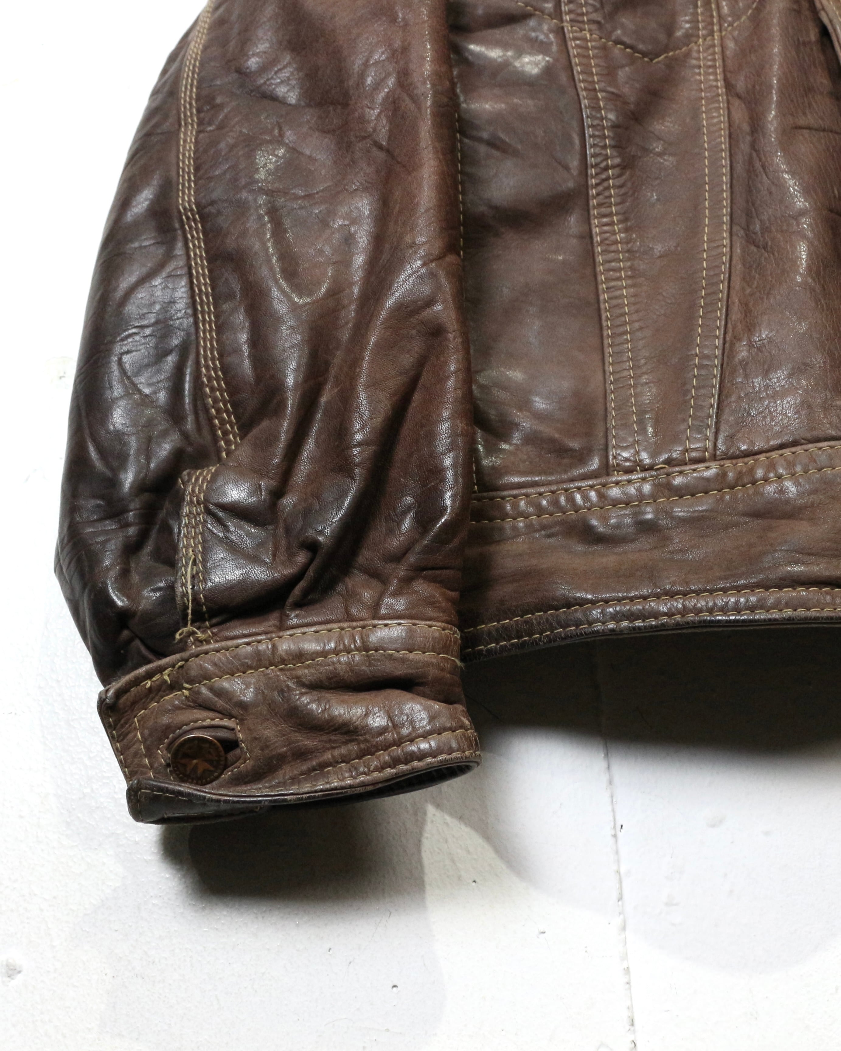 長年の経年変化によって完成した風合いを纏った、ヴィンテージならではの魅力が詰まった稀有なレザートラッカージャケットです。