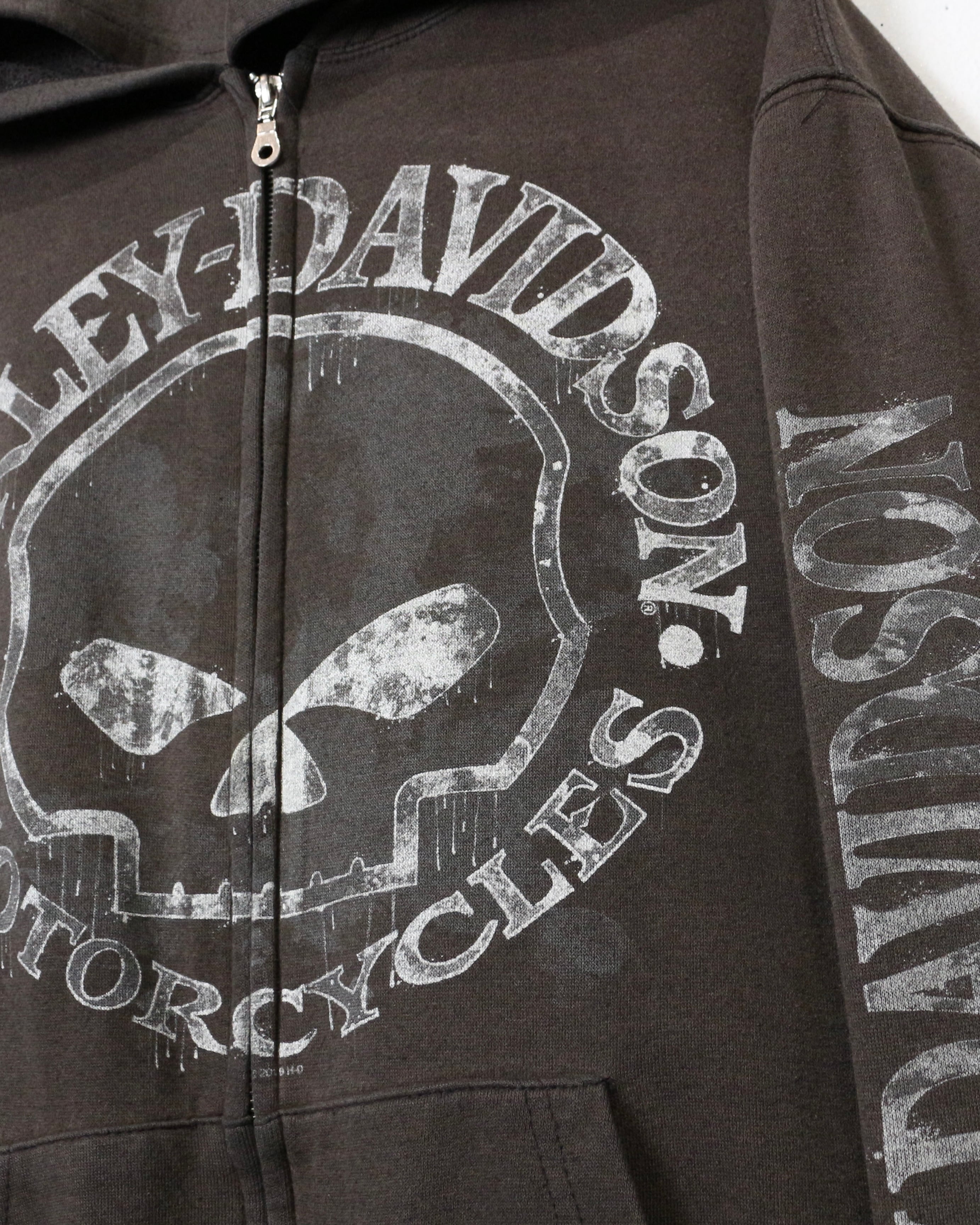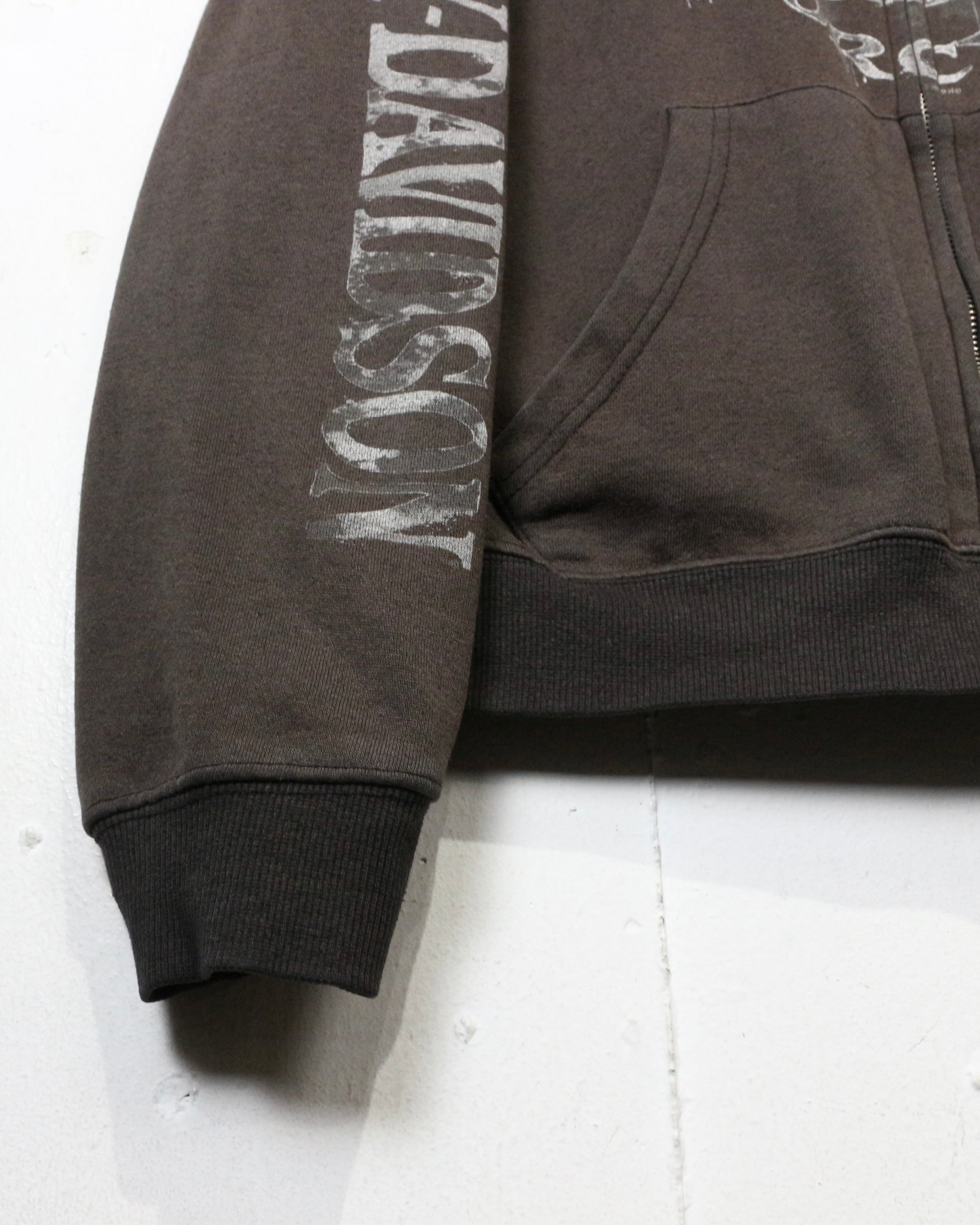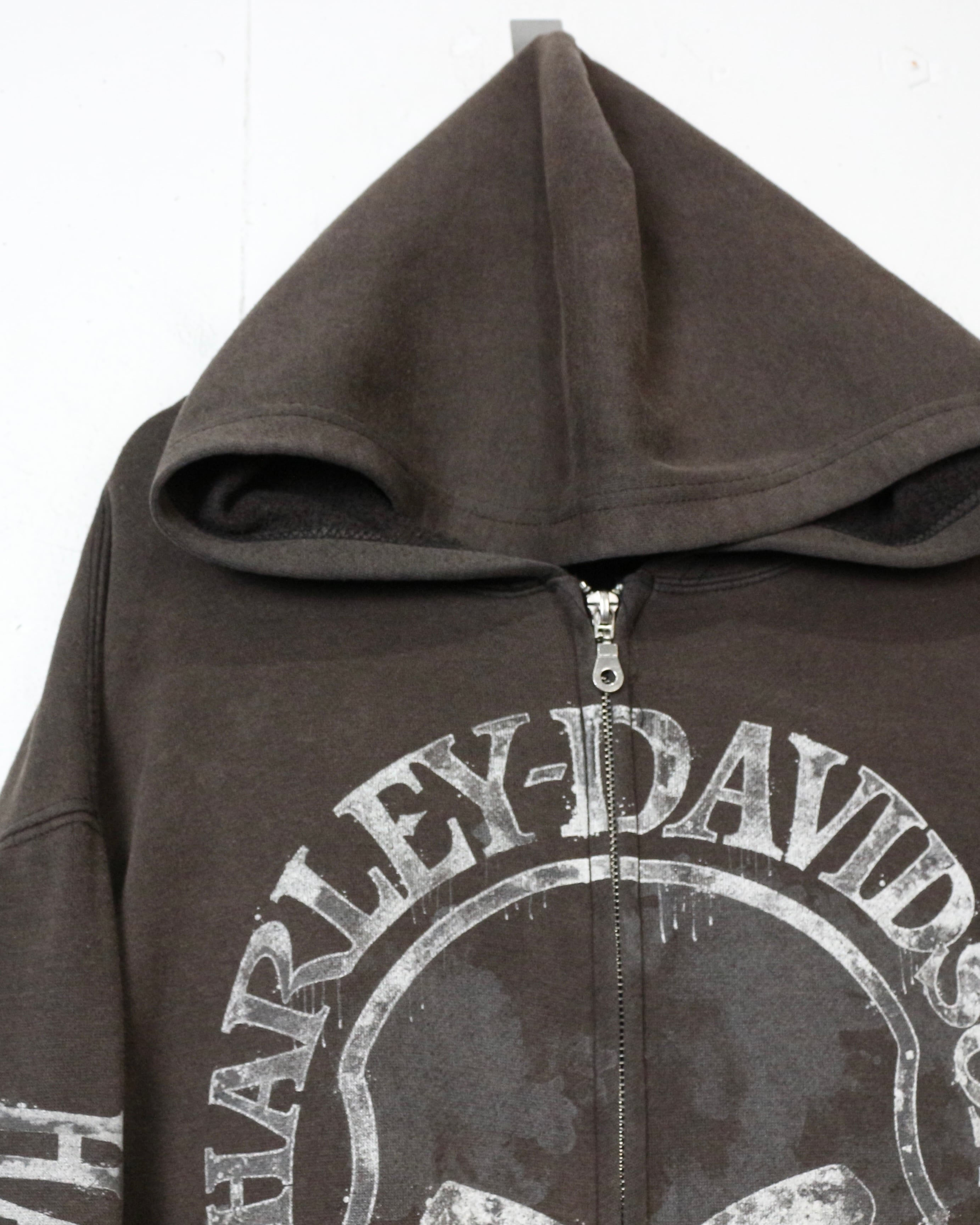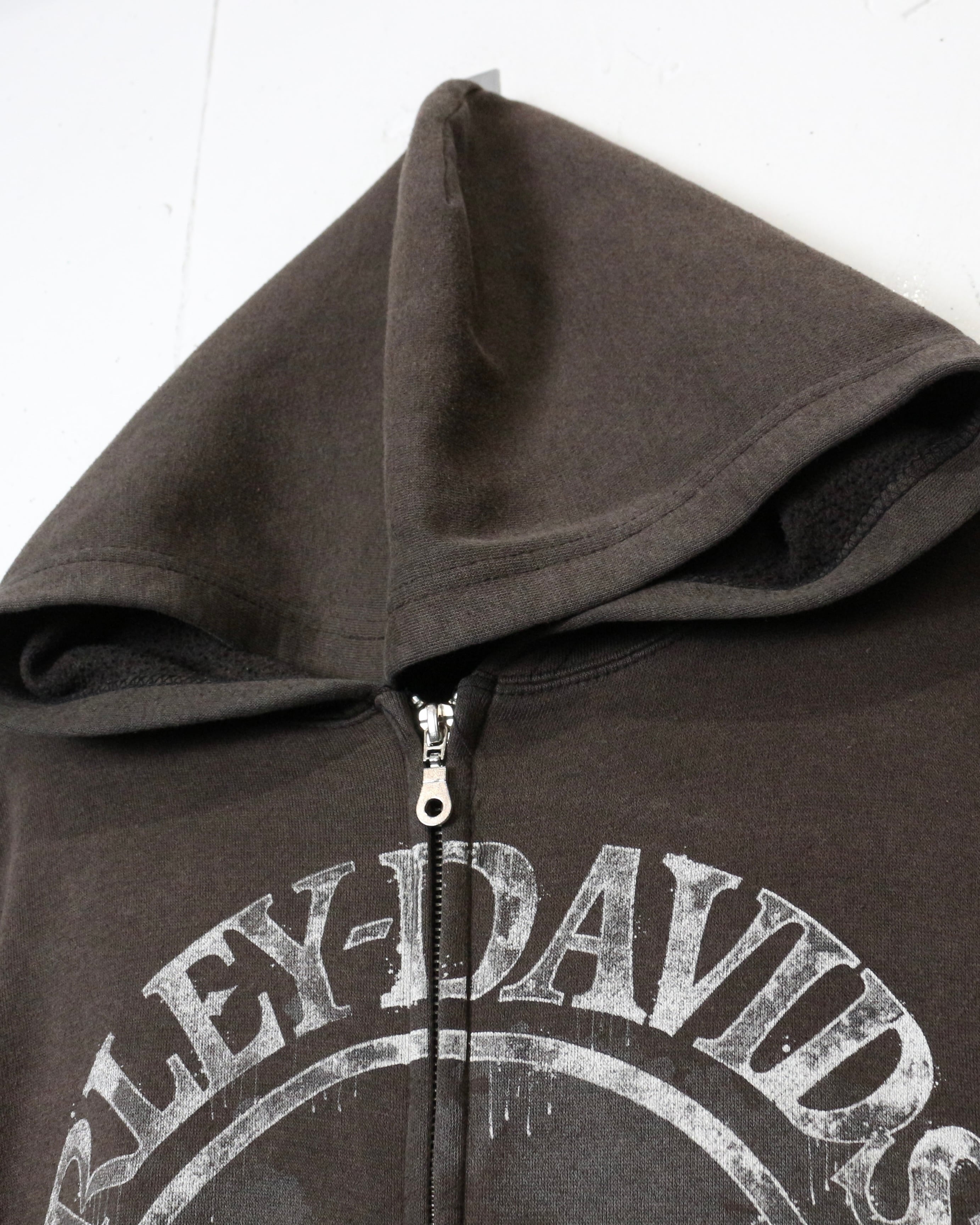 ブランド力、グラフィック、そしてヴィンテージ特有のフェード感が三拍子揃った“HARLEY DAVIDSON”のジップアップフーディです。
